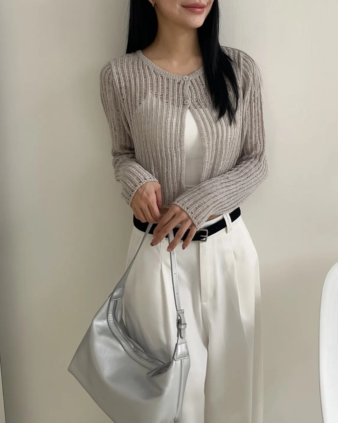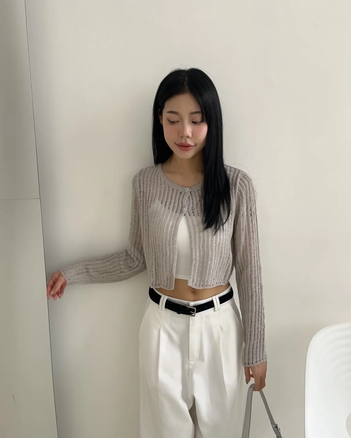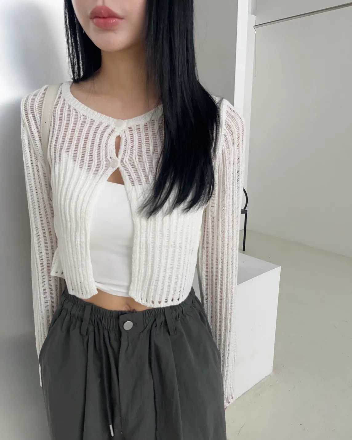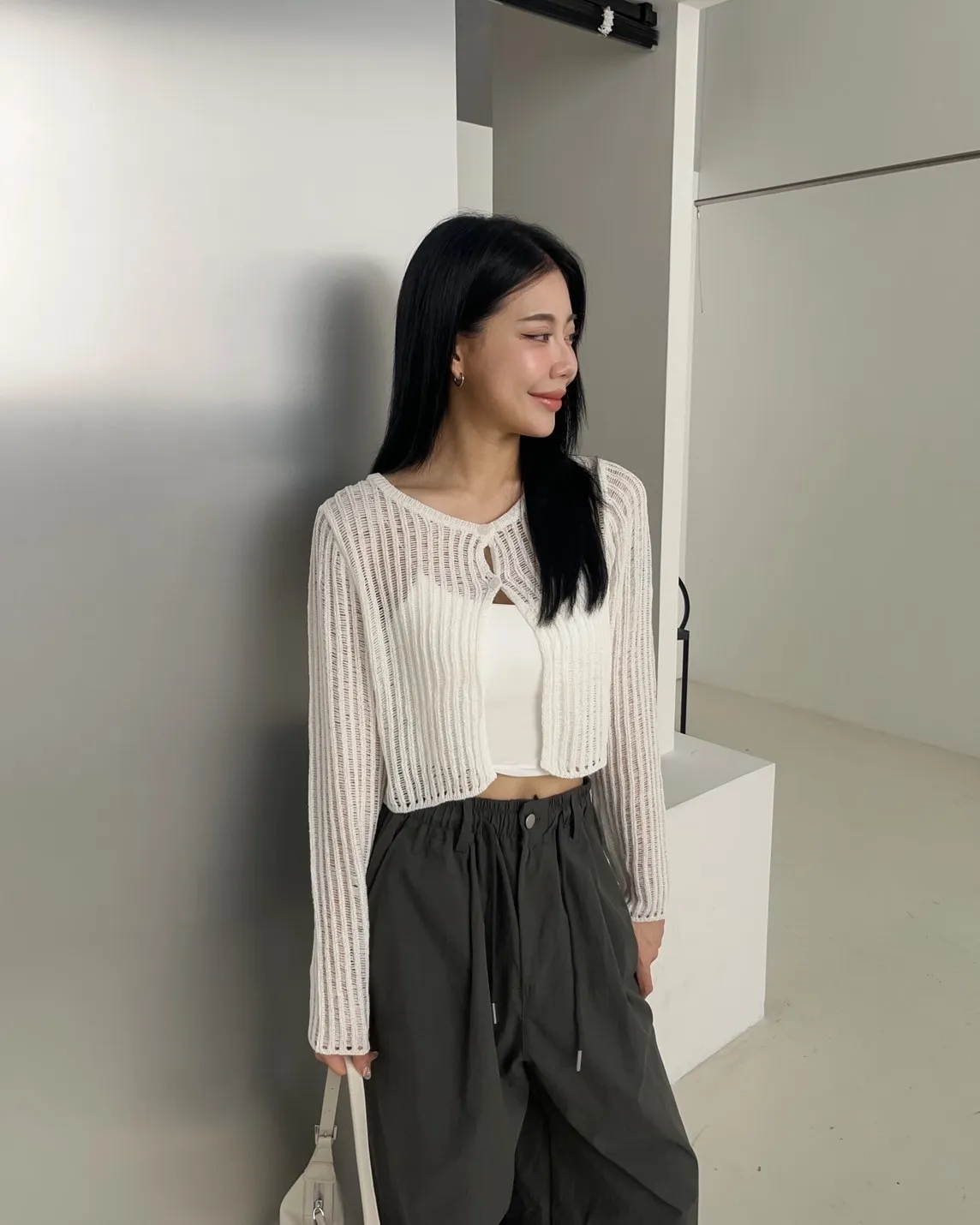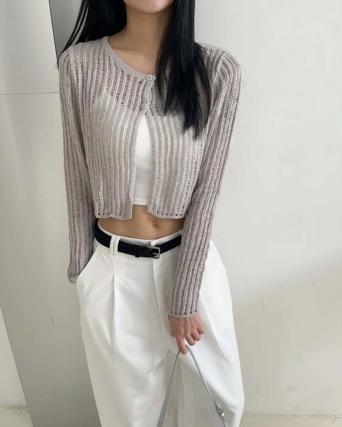 U0042圈圈針織兩扣短版罩衫(米白/綠/灰/黑)(售完不補)