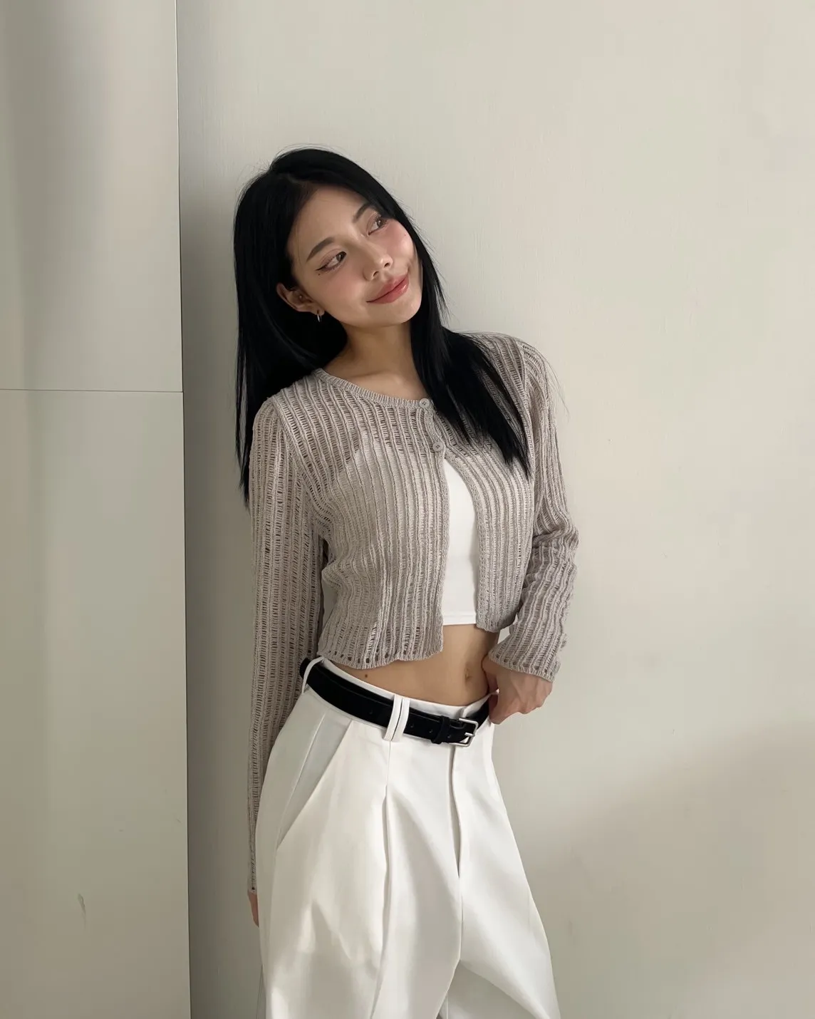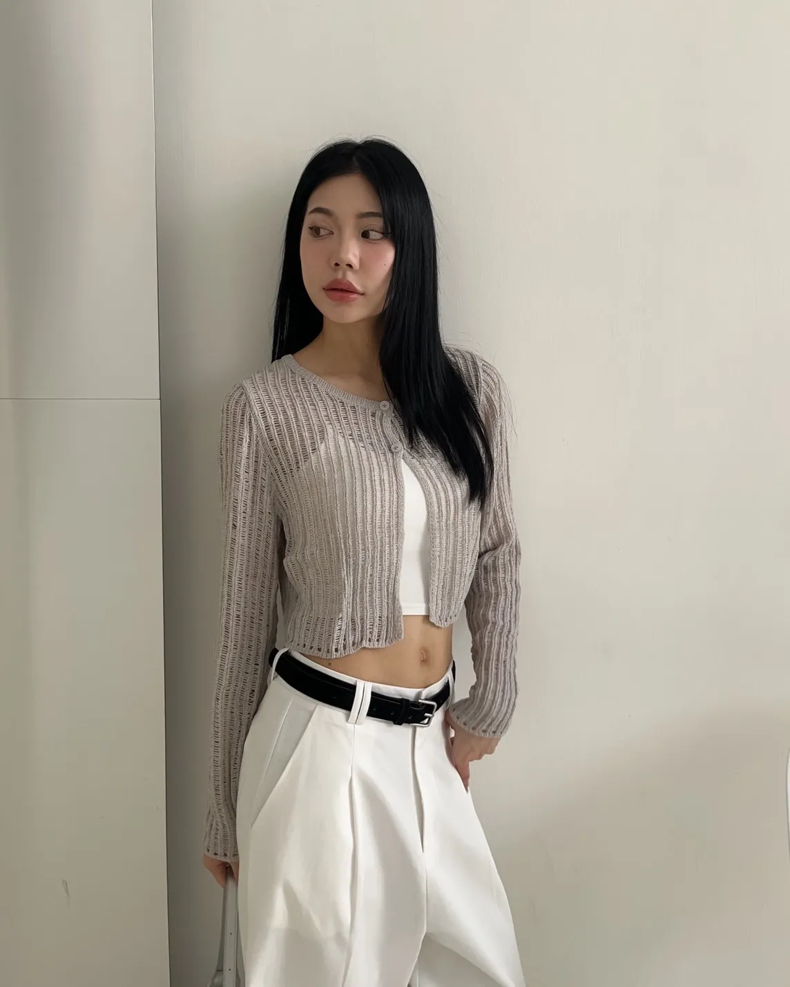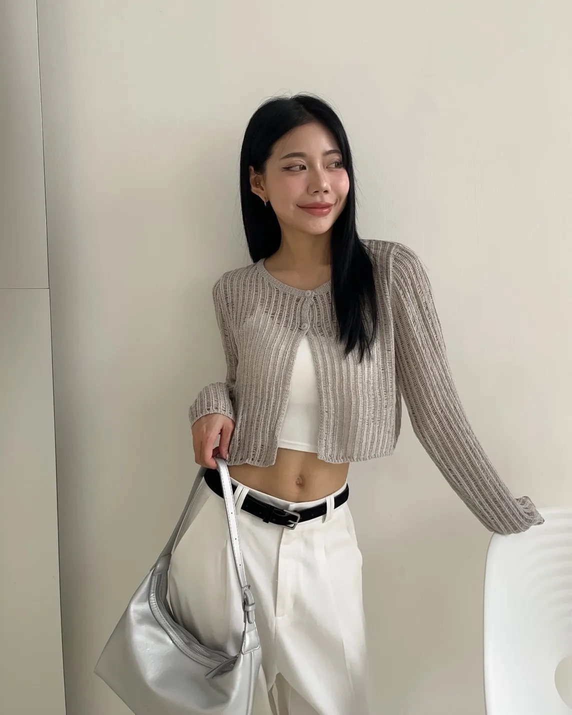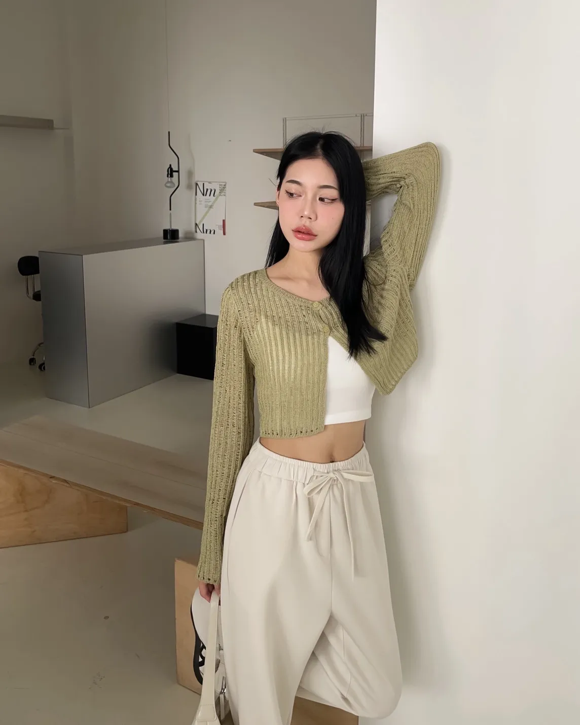 U0042圈圈針織兩扣短版罩衫(米白/綠/灰/黑)(售完不補)