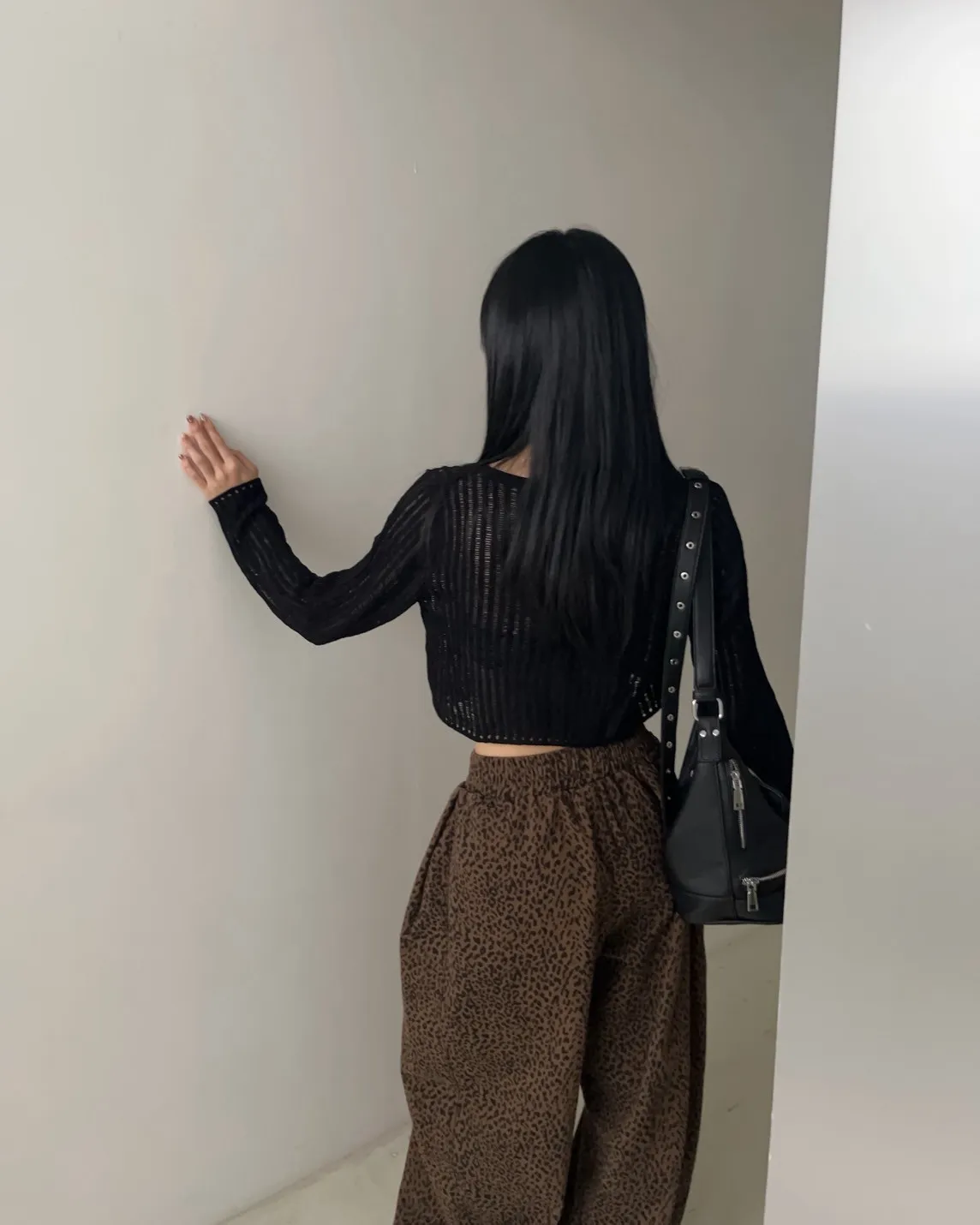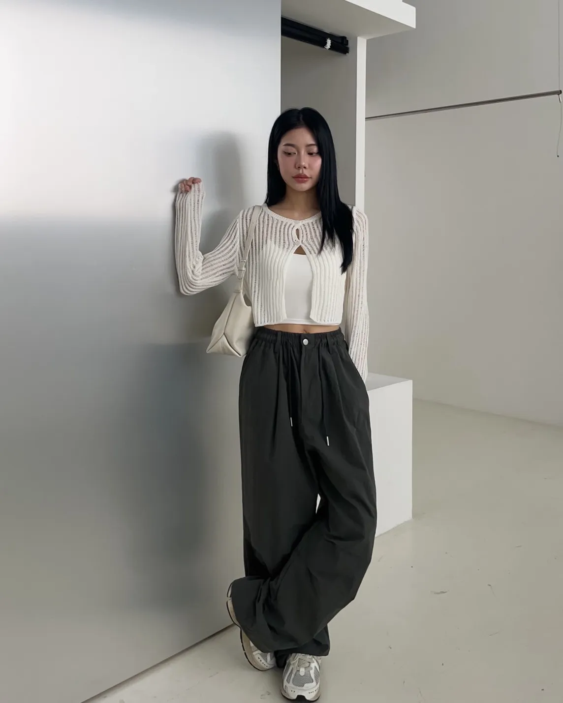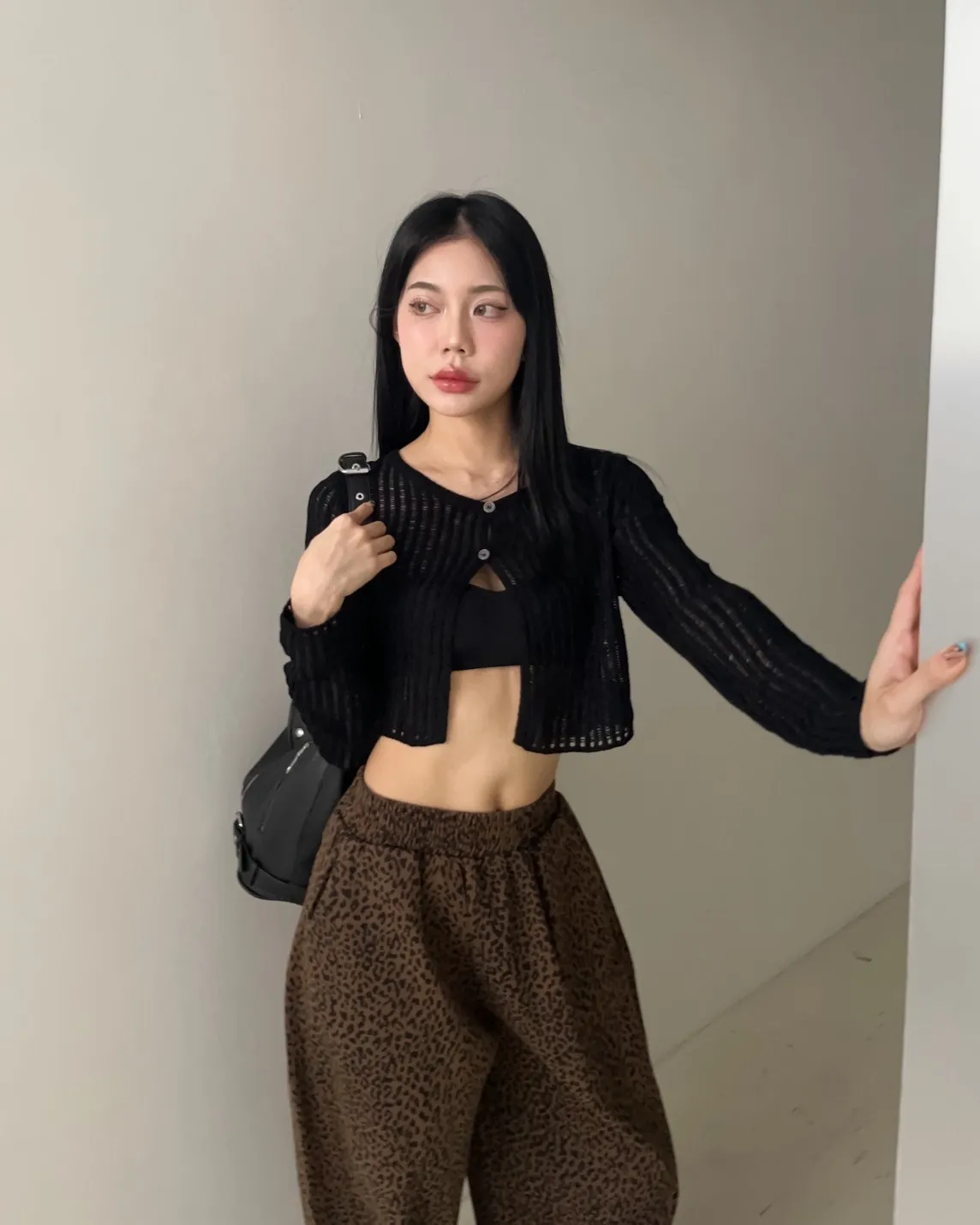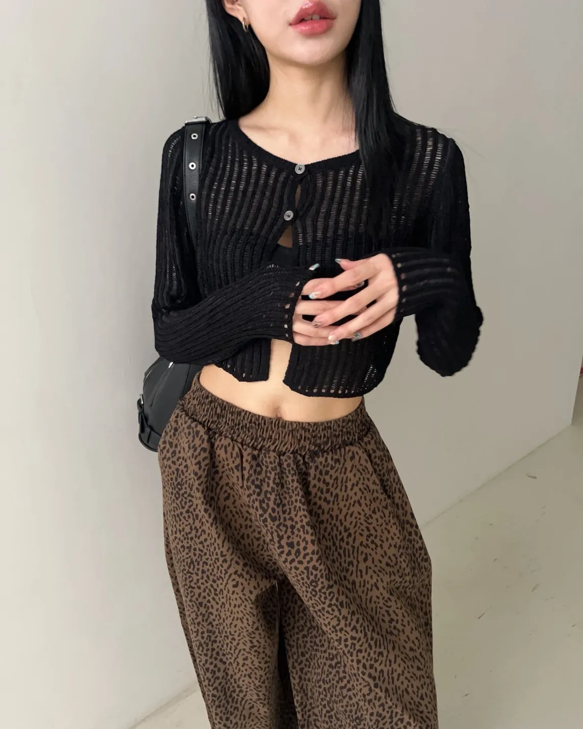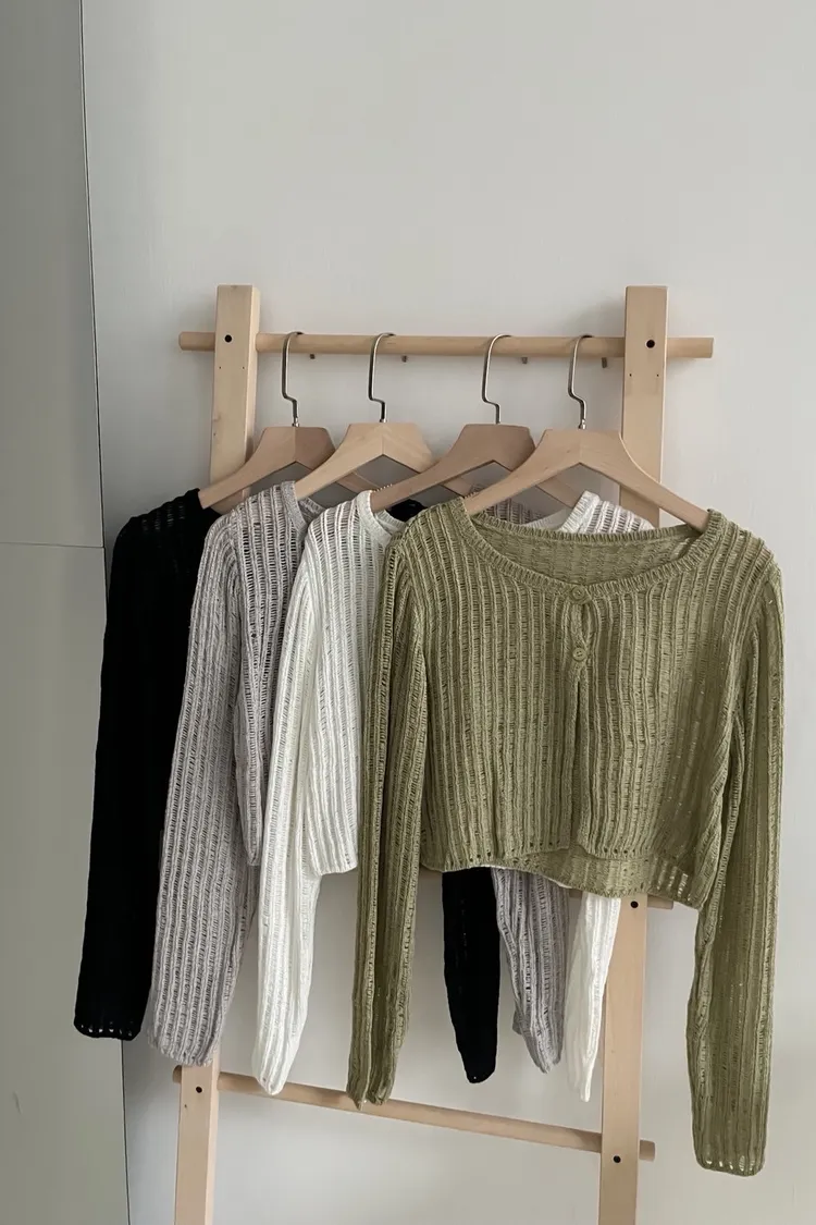 U0042圈圈針織兩扣短版罩衫(米白/綠/灰/黑)(售完不補)