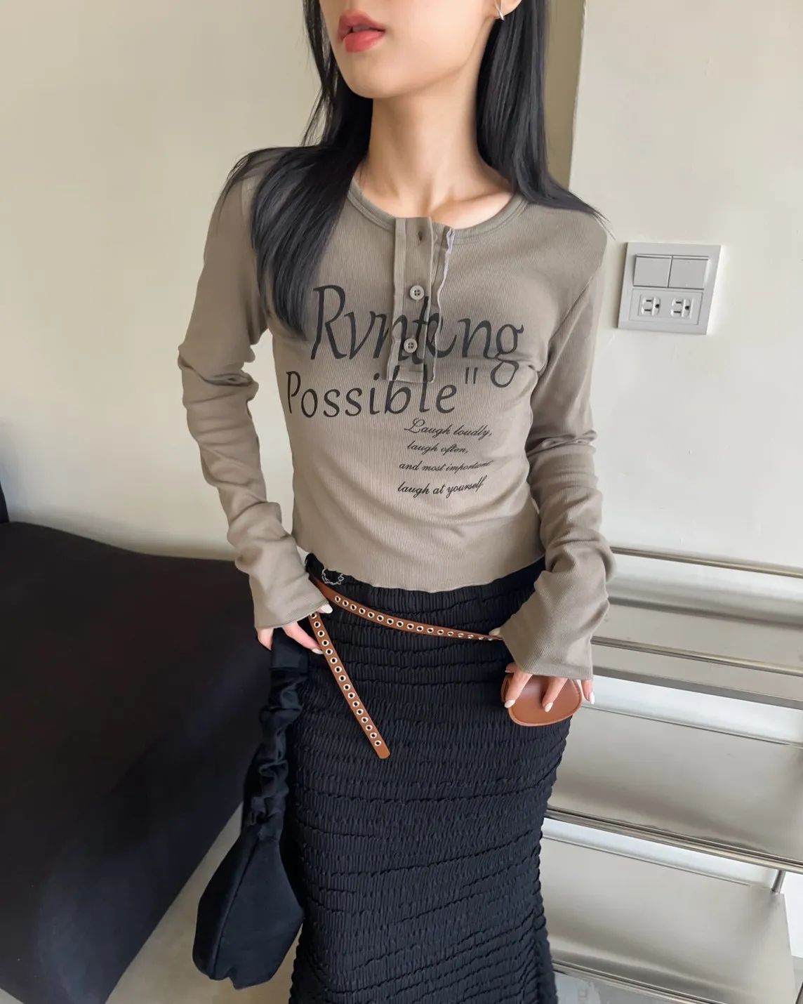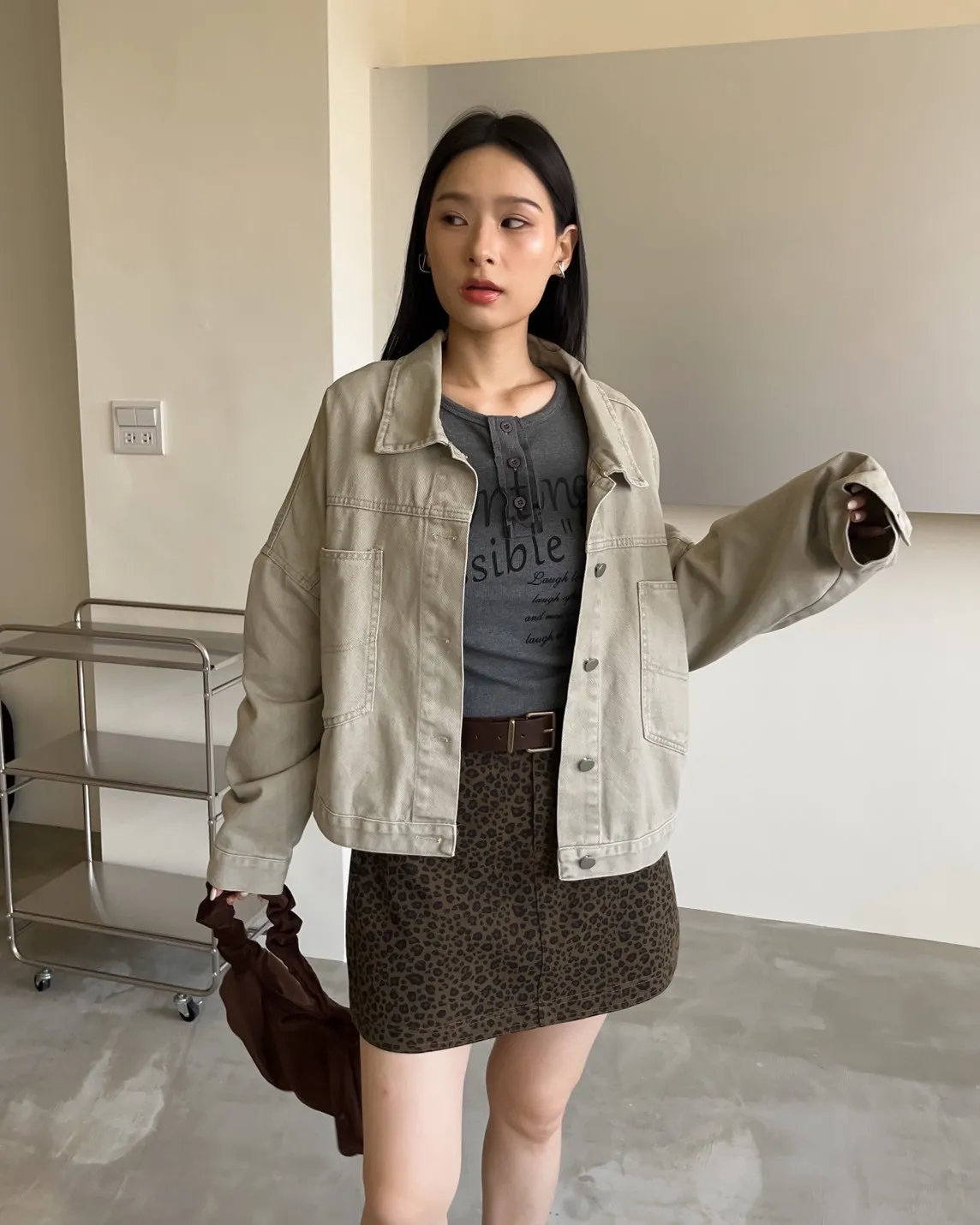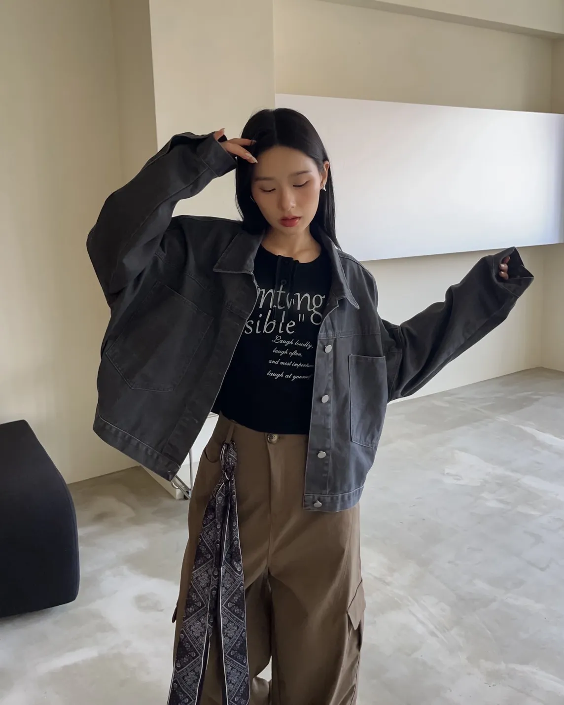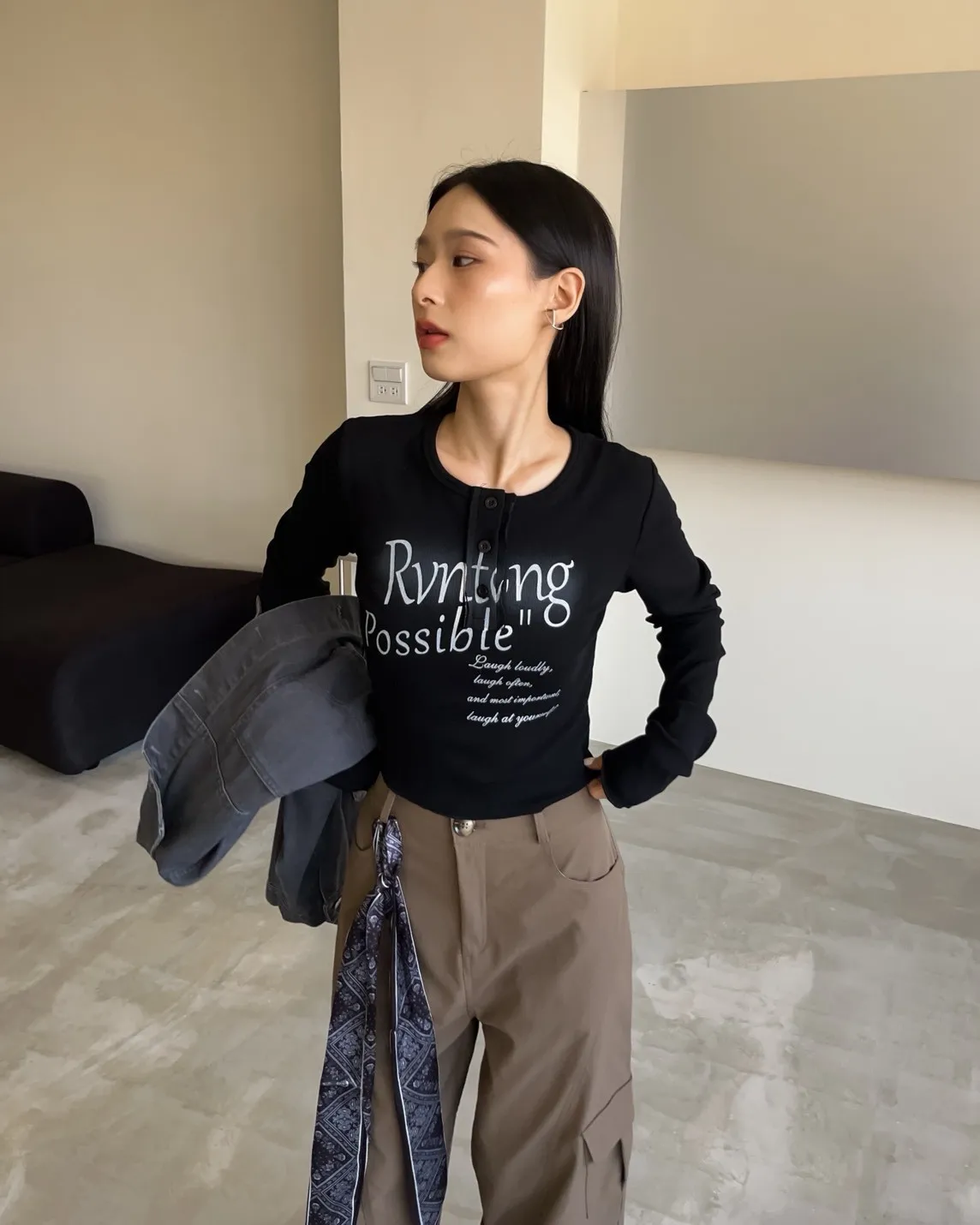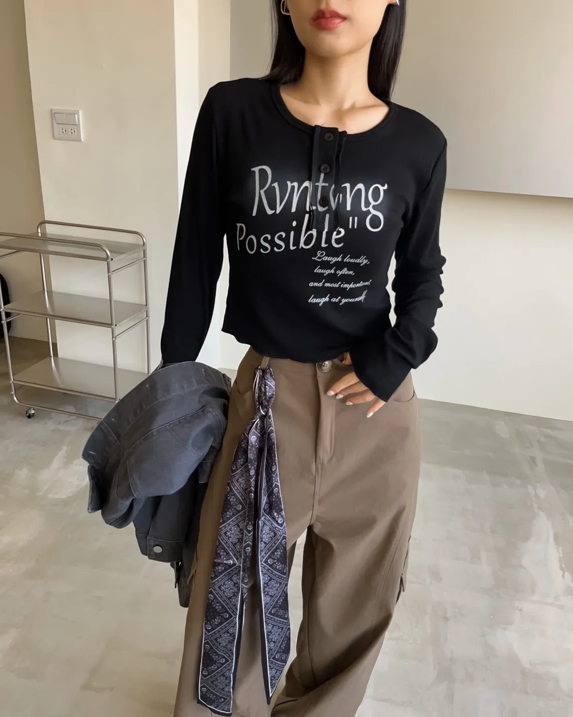 V0044草寫英文字染色坑紋上衣(咖啡/綠/灰/黑)