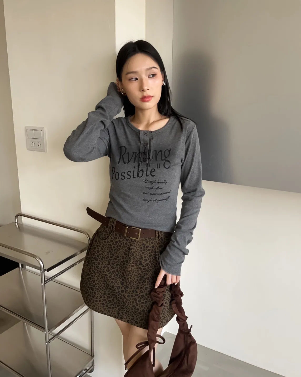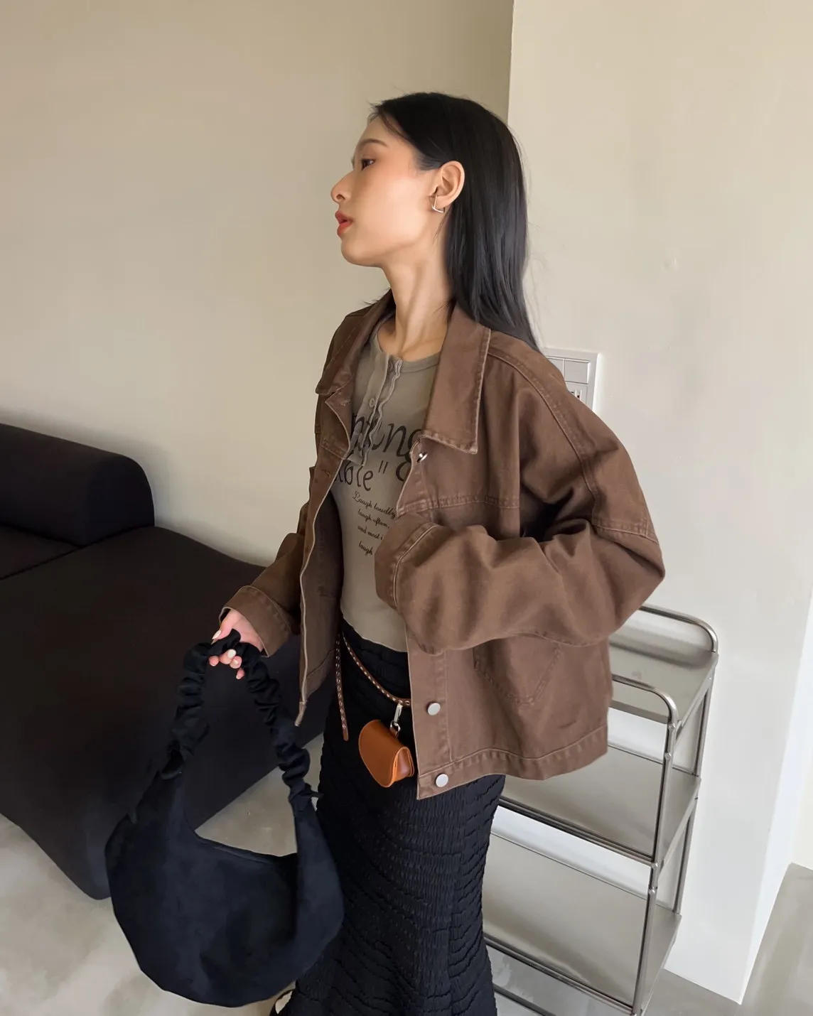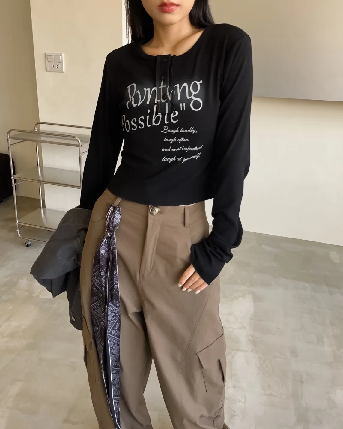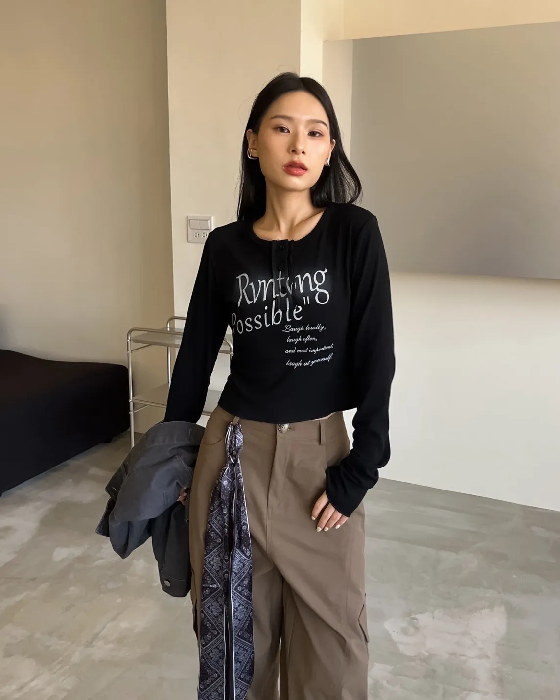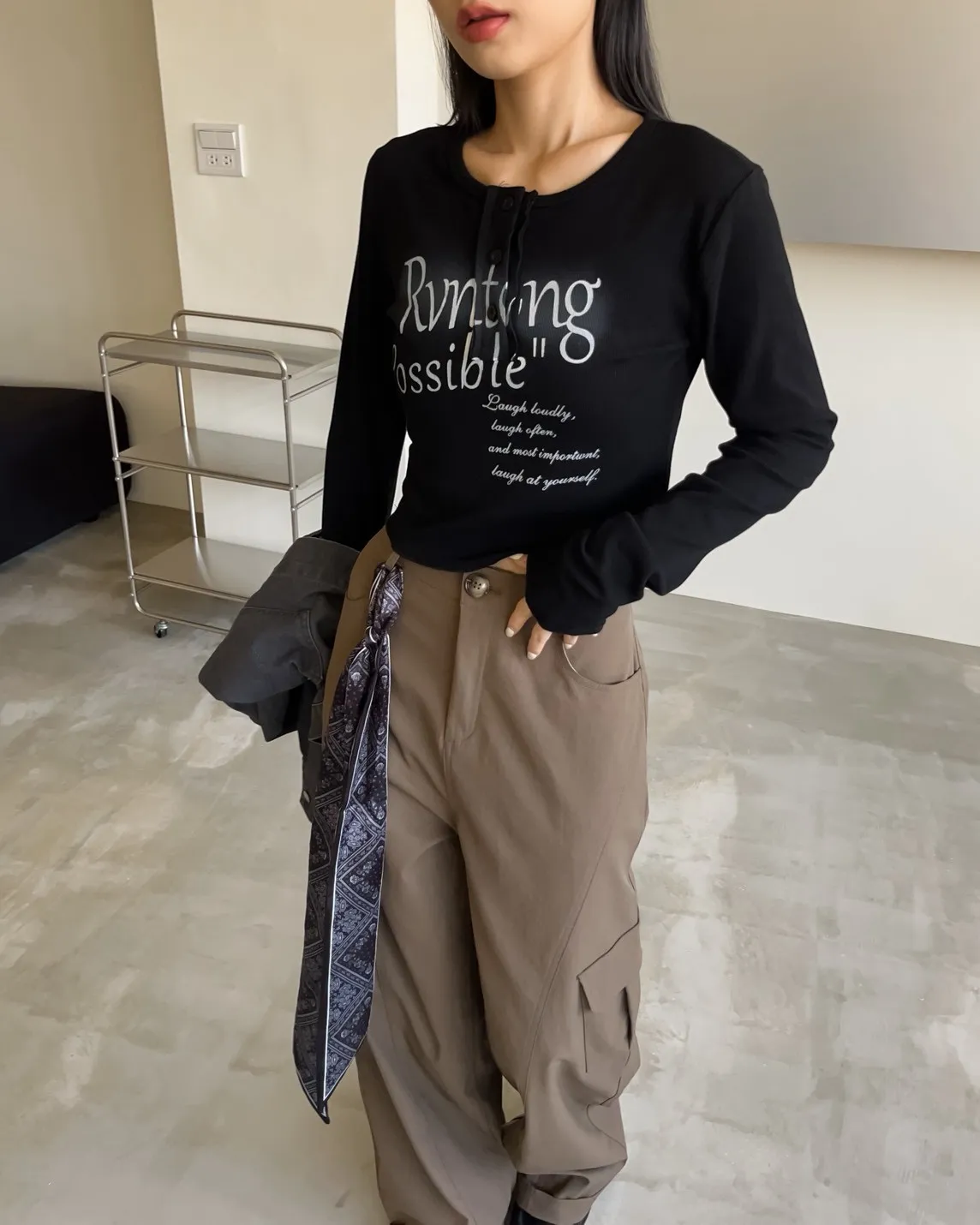 V0044草寫英文字染色坑紋上衣(咖啡/綠/灰/黑)
