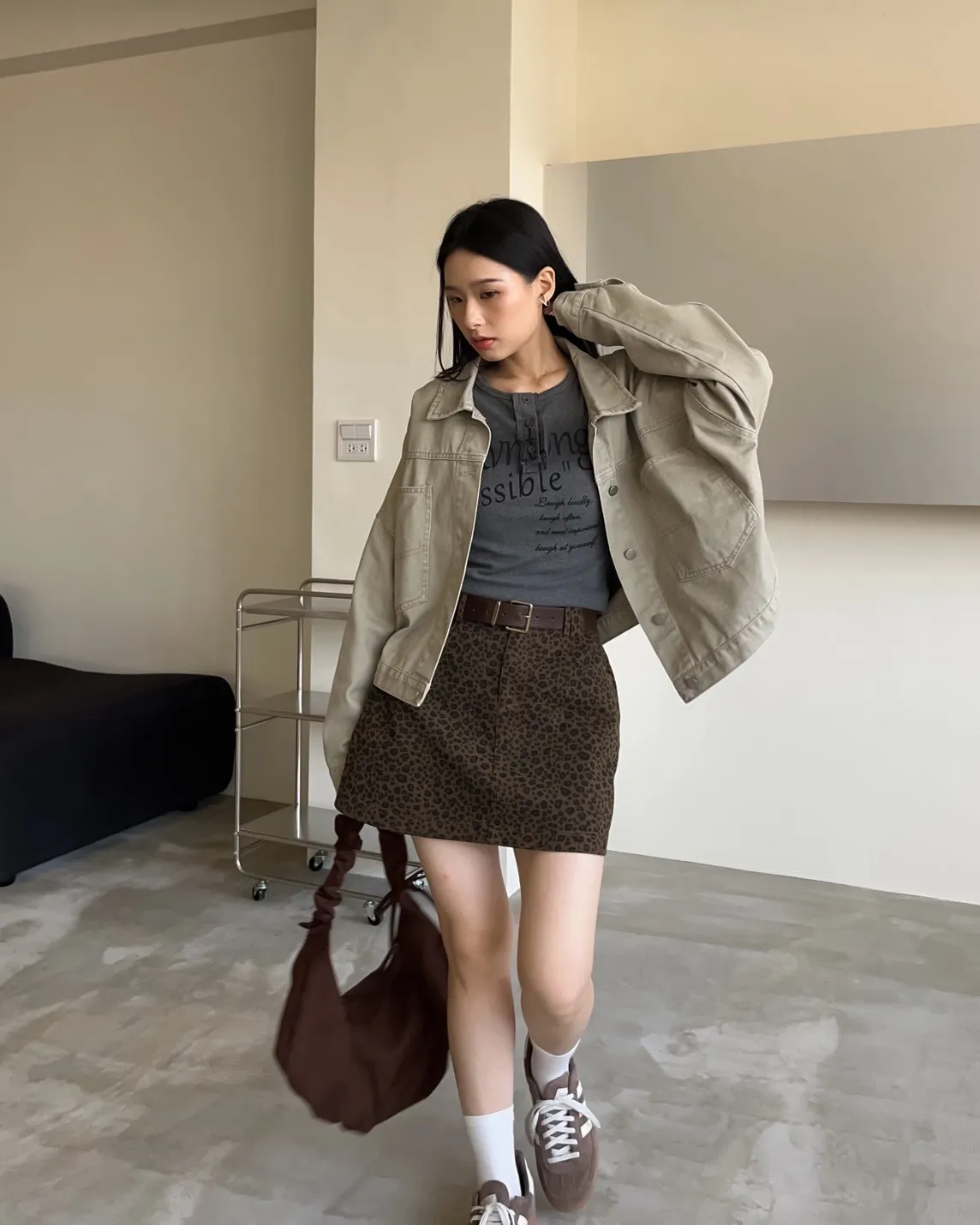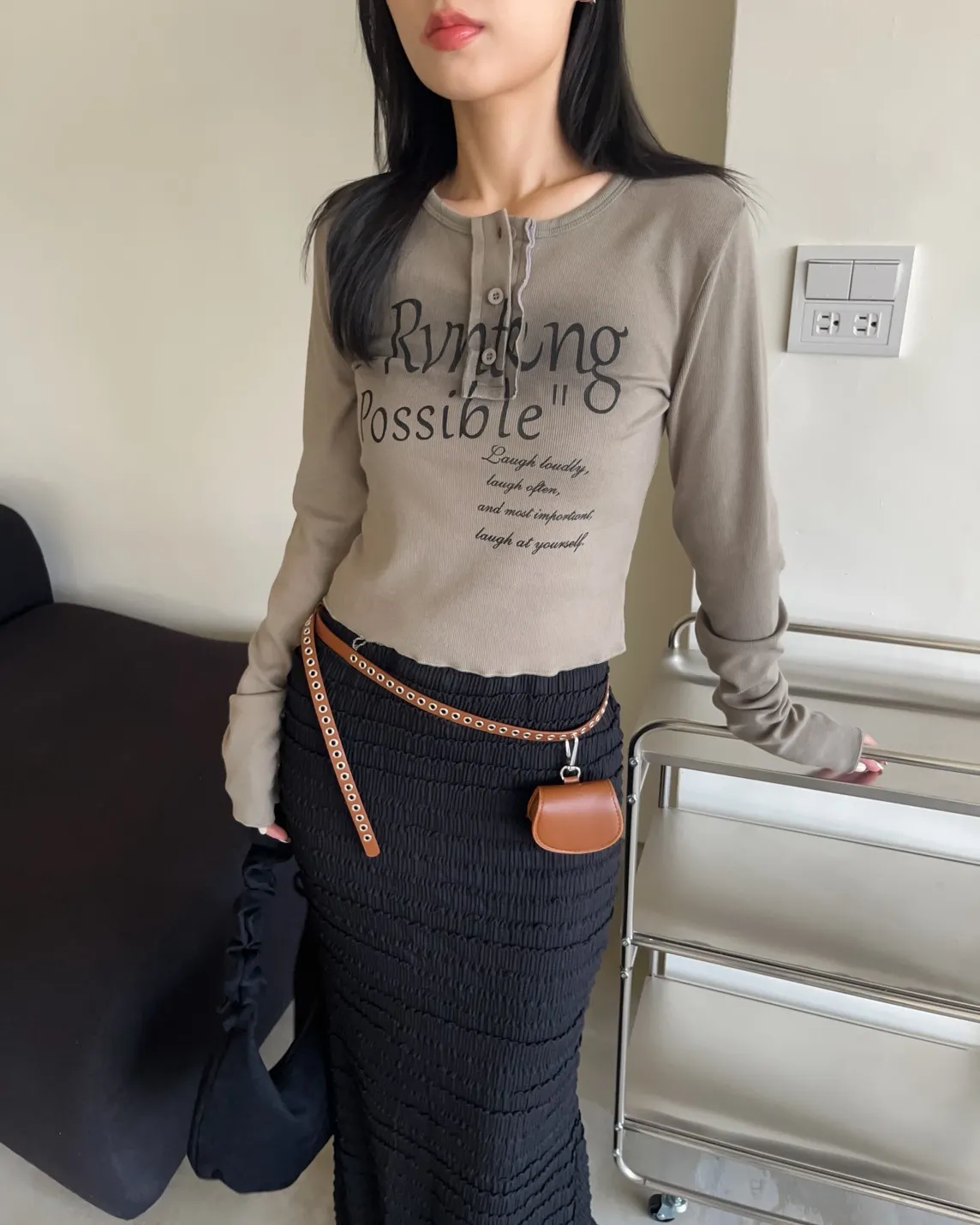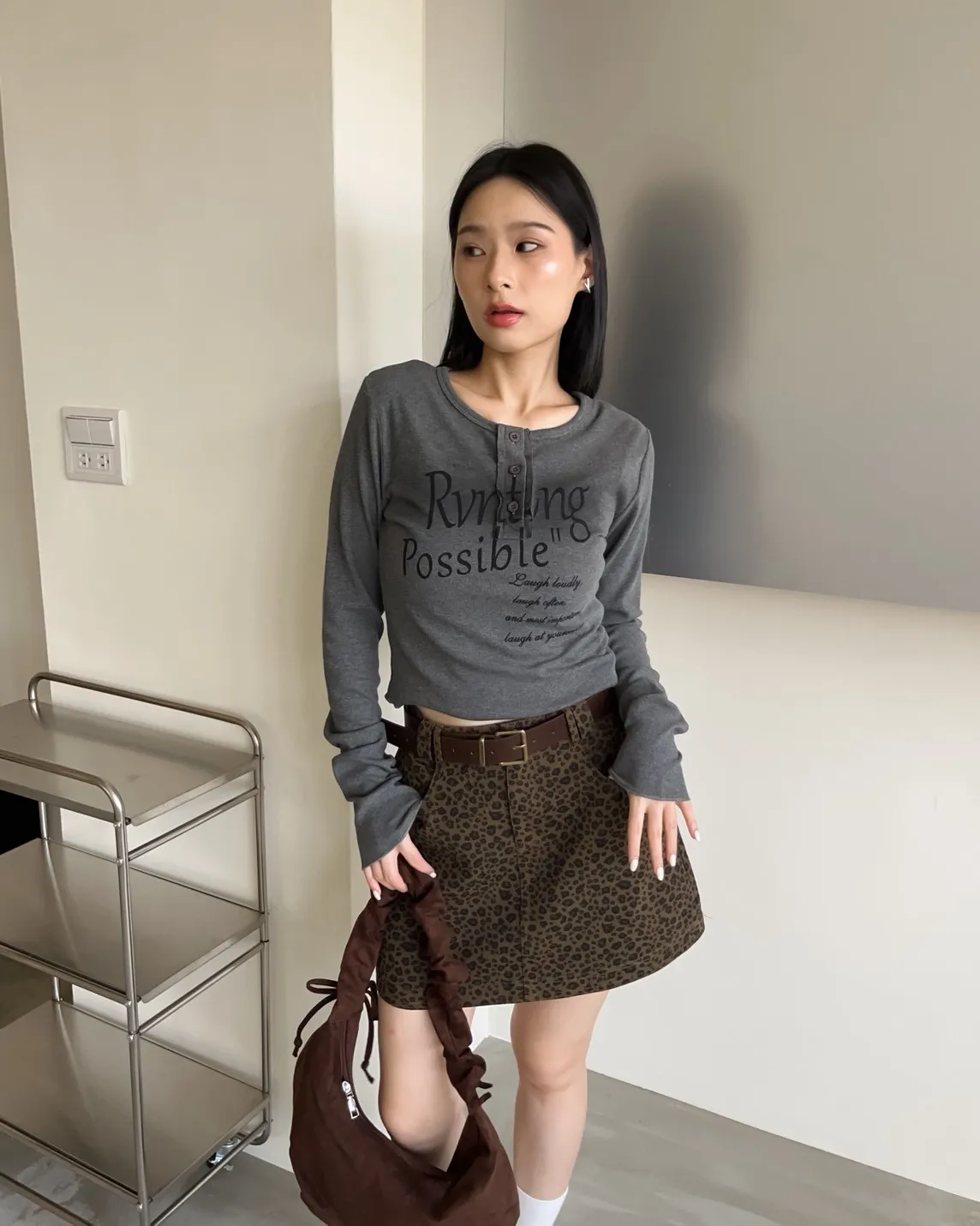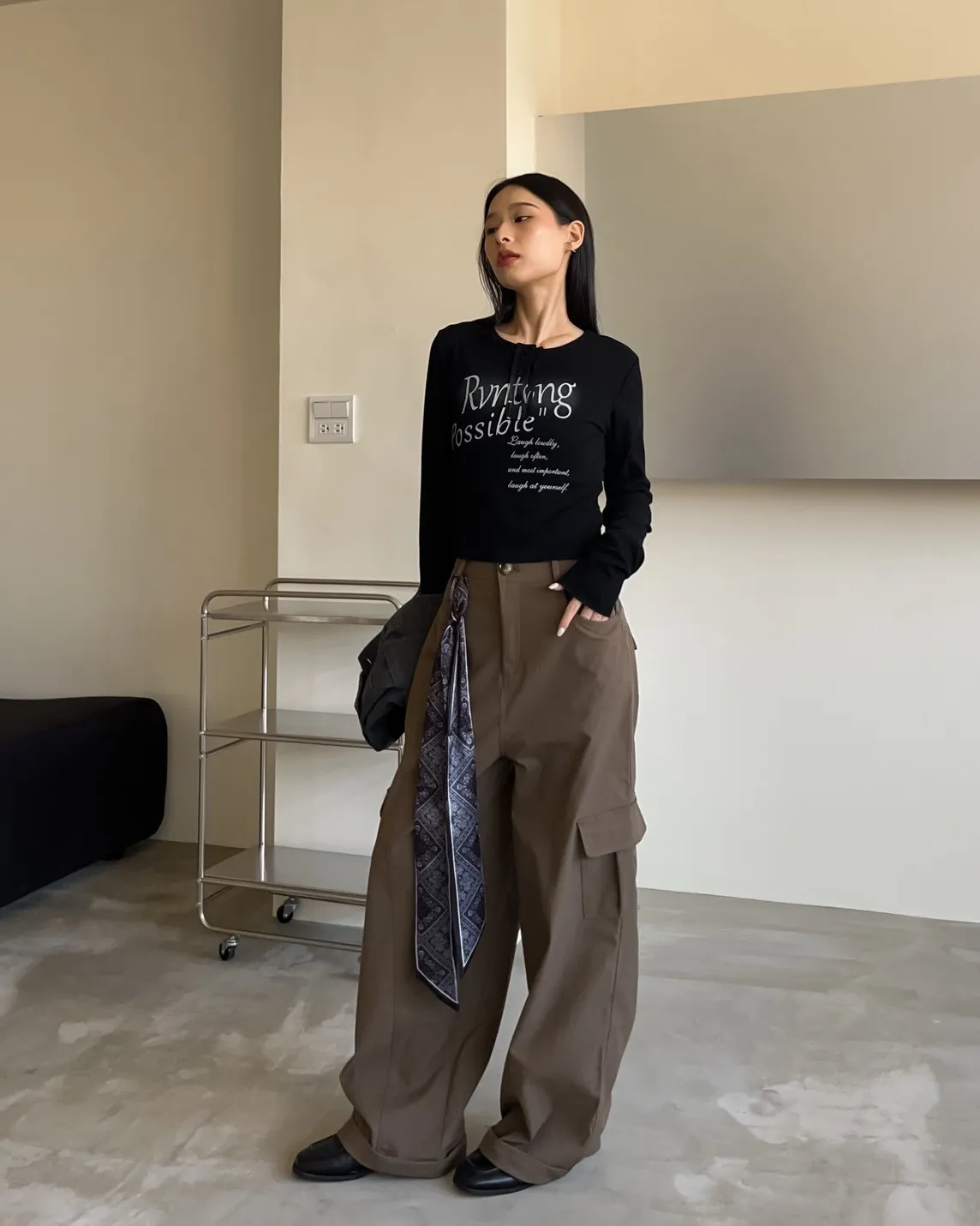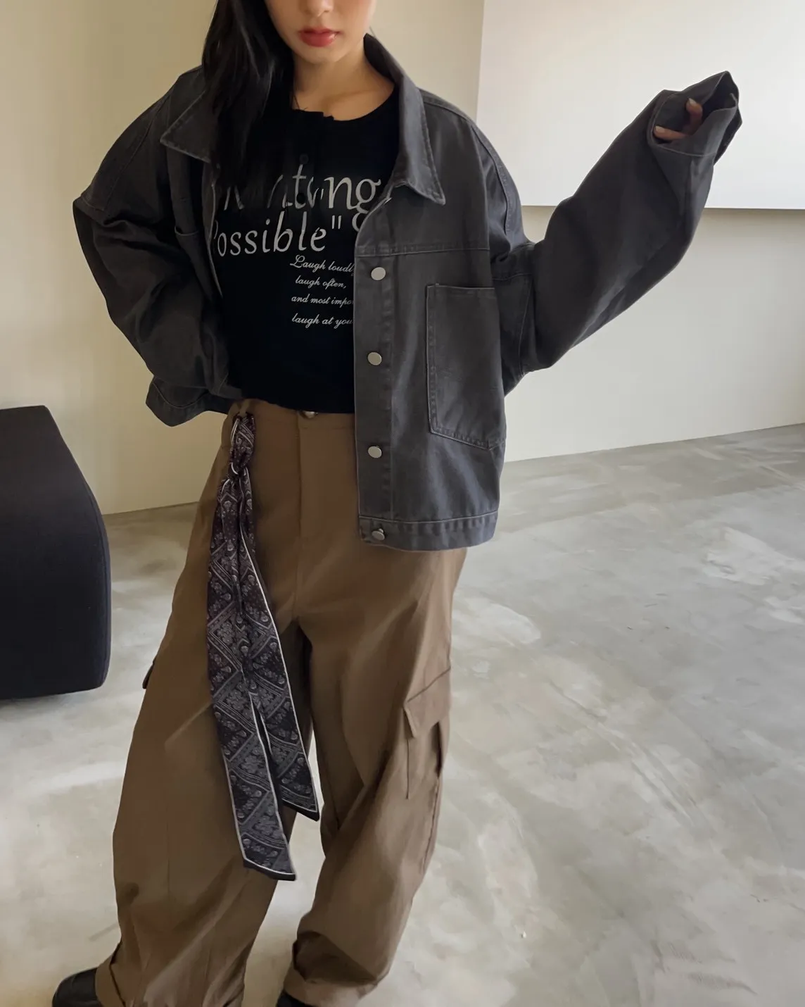 V0044草寫英文字染色坑紋上衣(咖啡/綠/灰/黑)