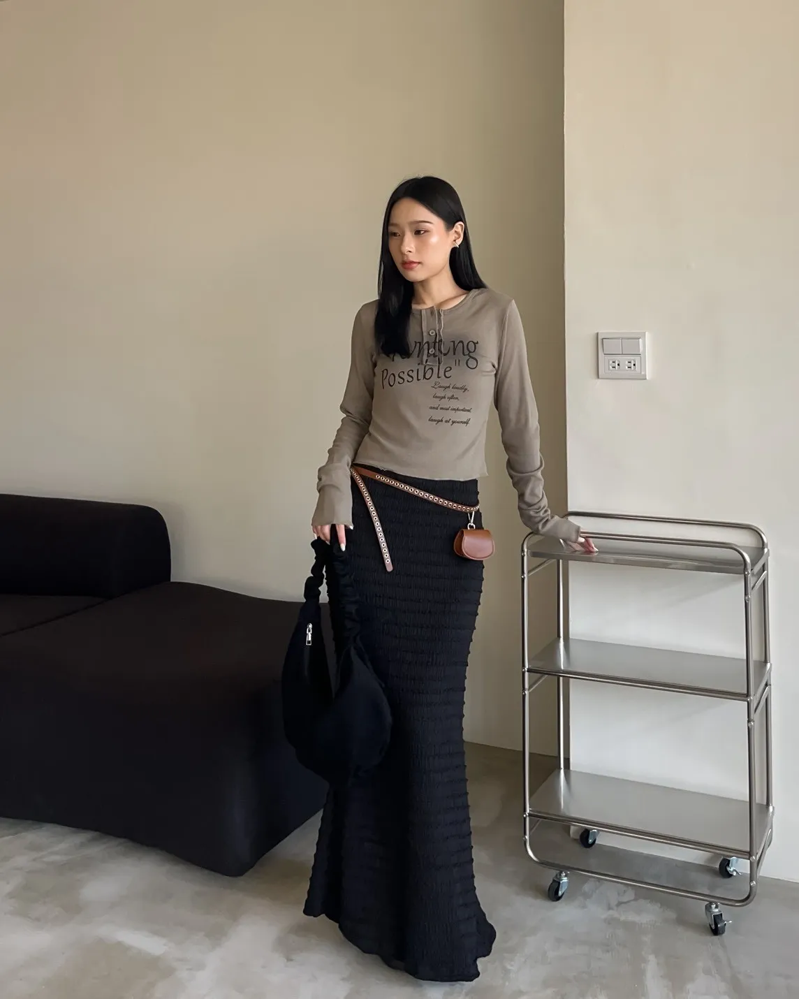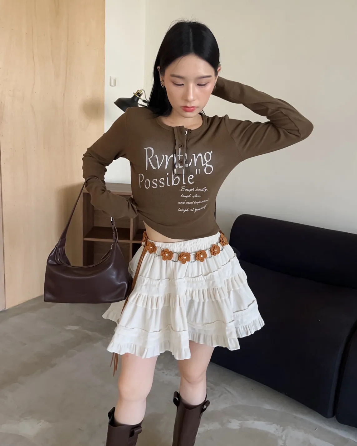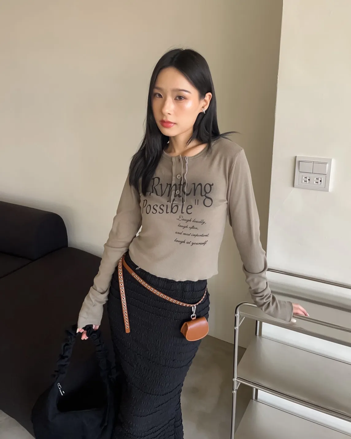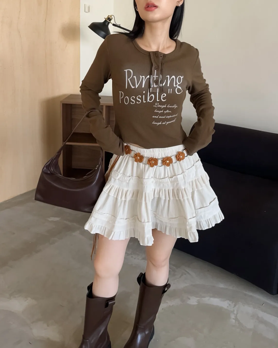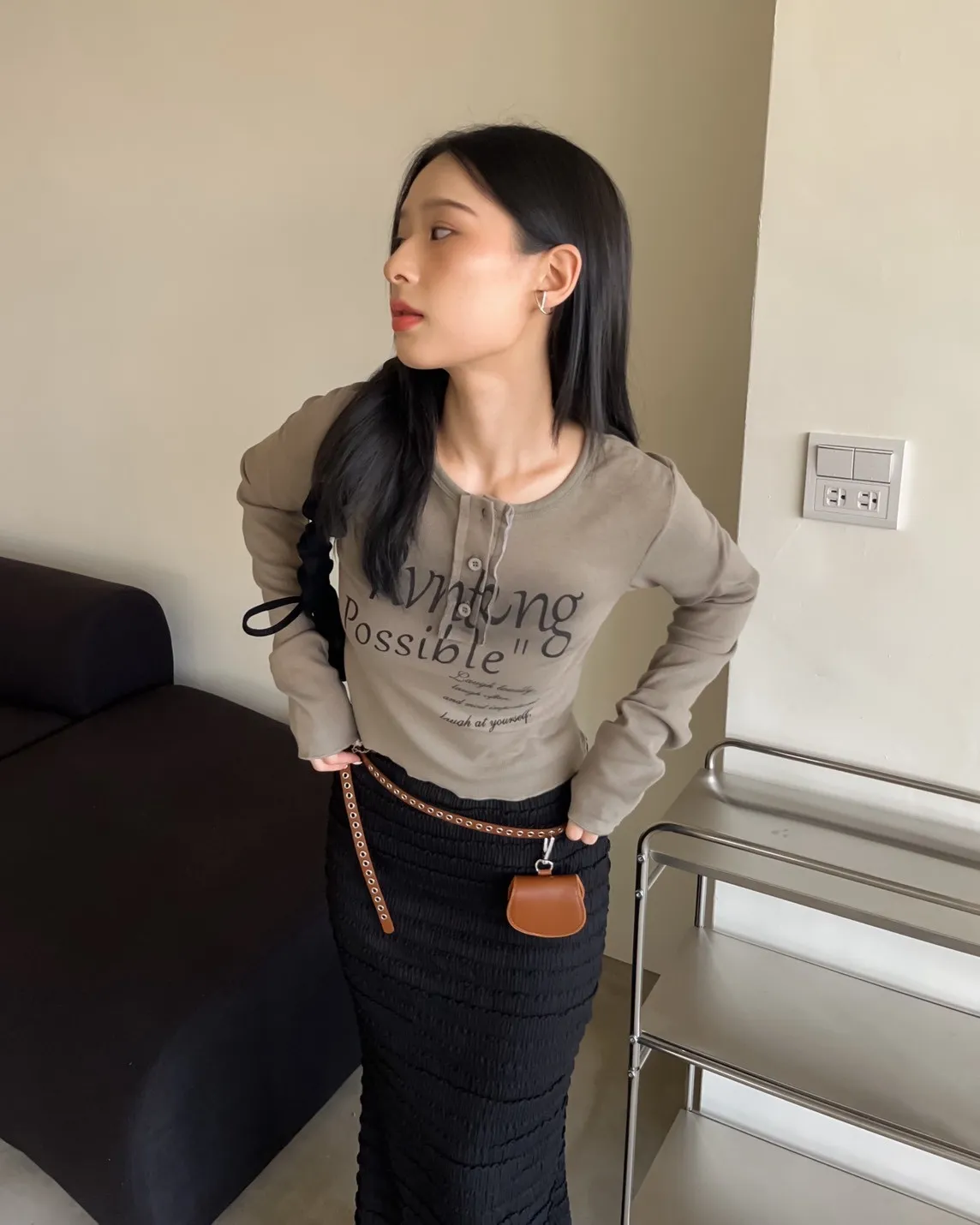 V0044草寫英文字染色坑紋上衣(咖啡/綠/灰/黑)
