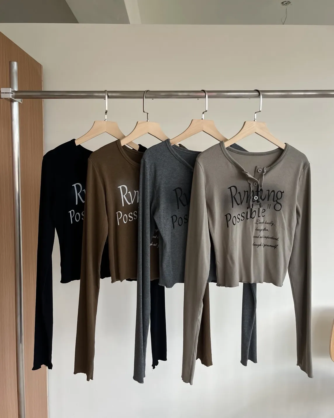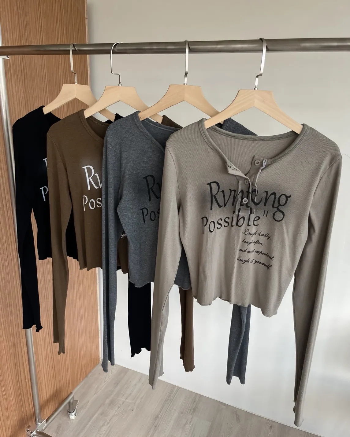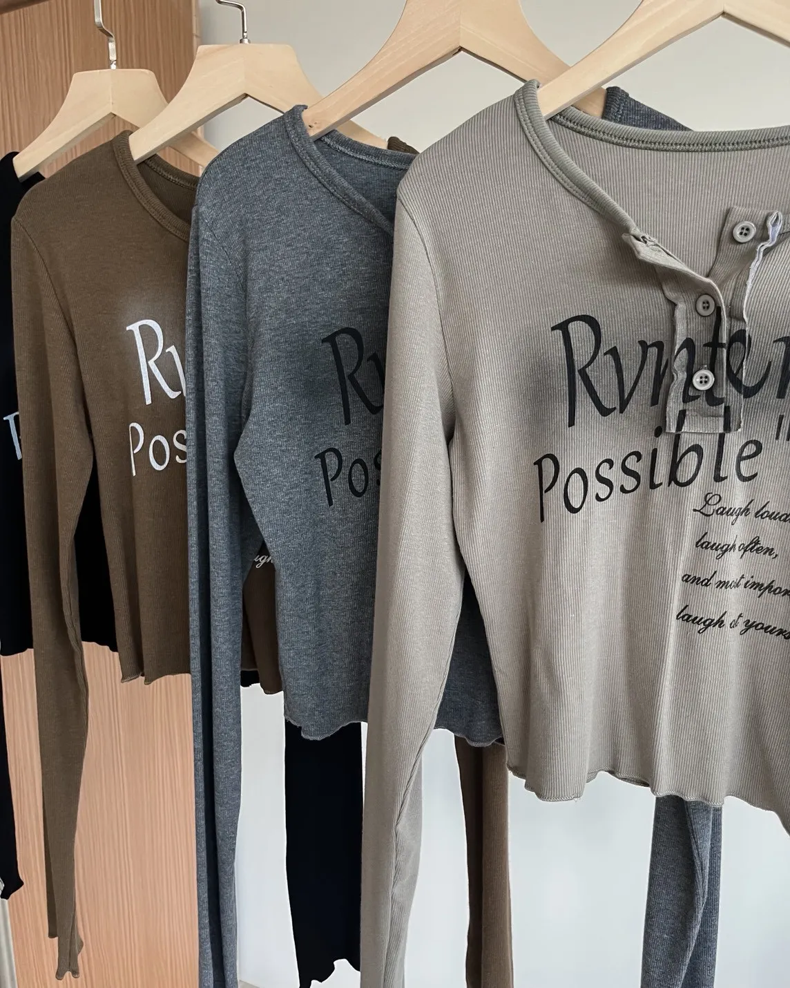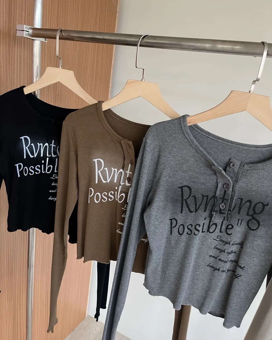 細細坑紋 袖長偏長 拷克邊 染色草寫英文字 鈕扣可開
