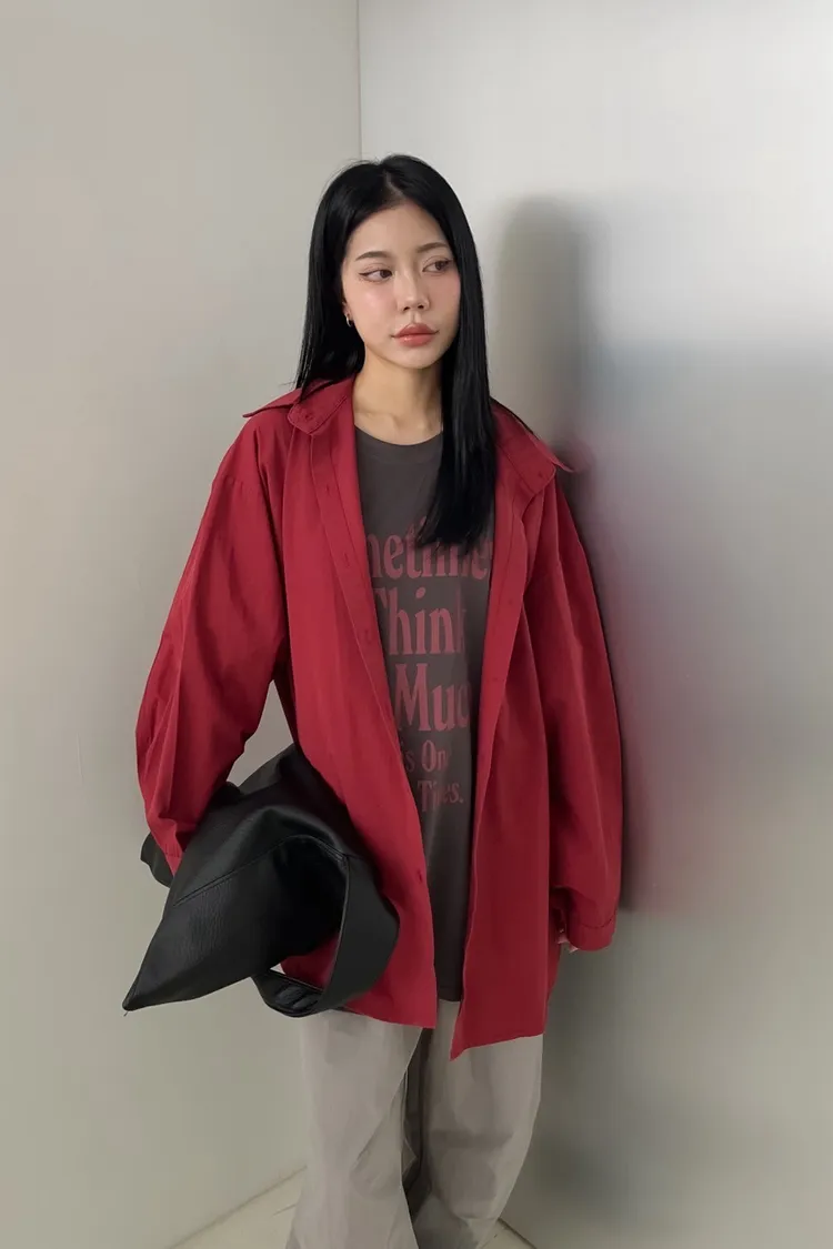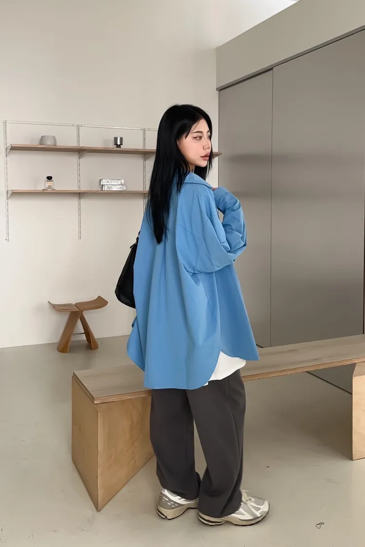 同色系鈕扣 後打折 寬鬆落肩 霧面感布料