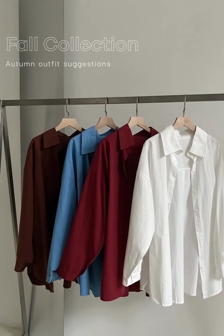 U0050小畫家同色扣霧面襯衫(白/咖啡/藍/紅)