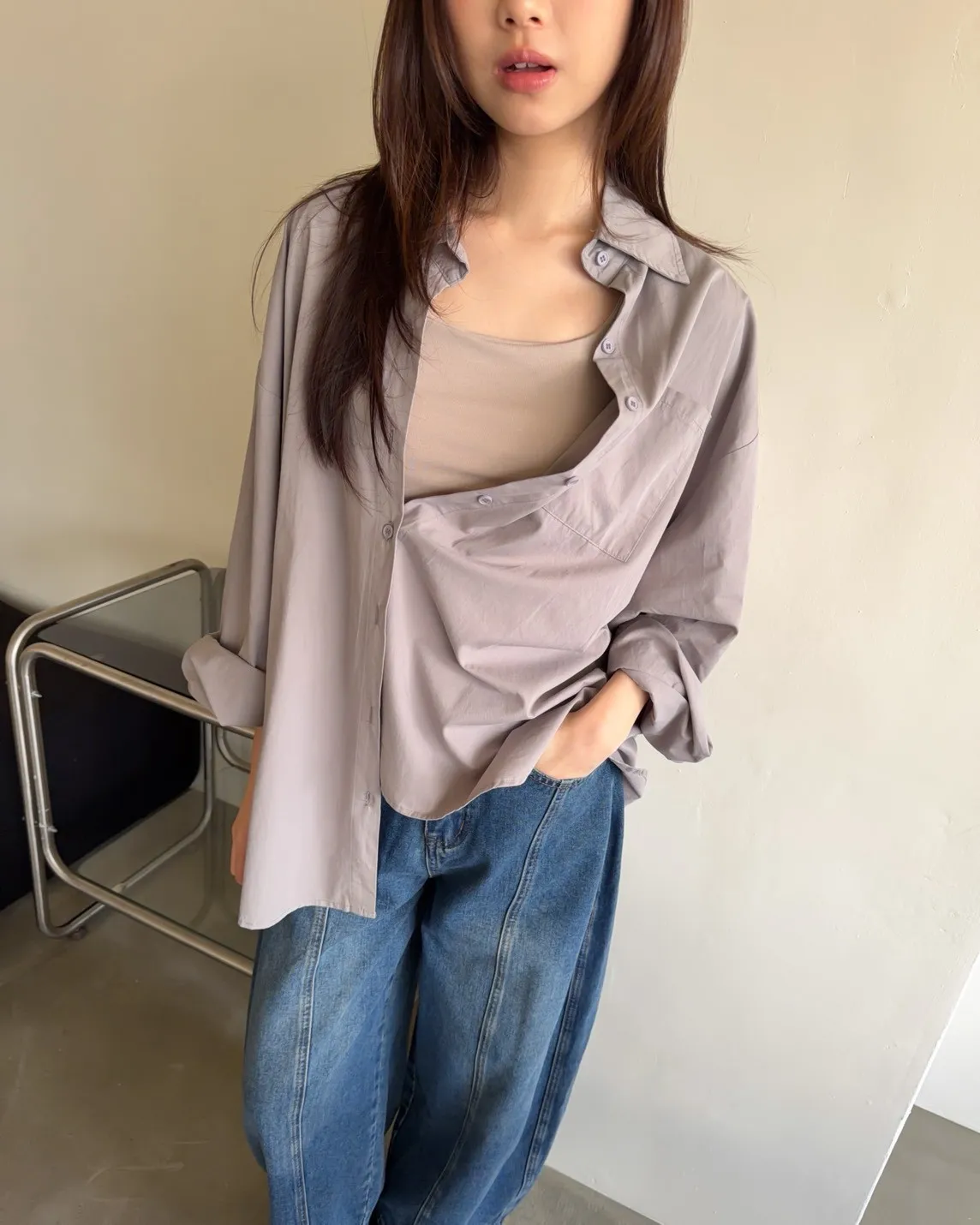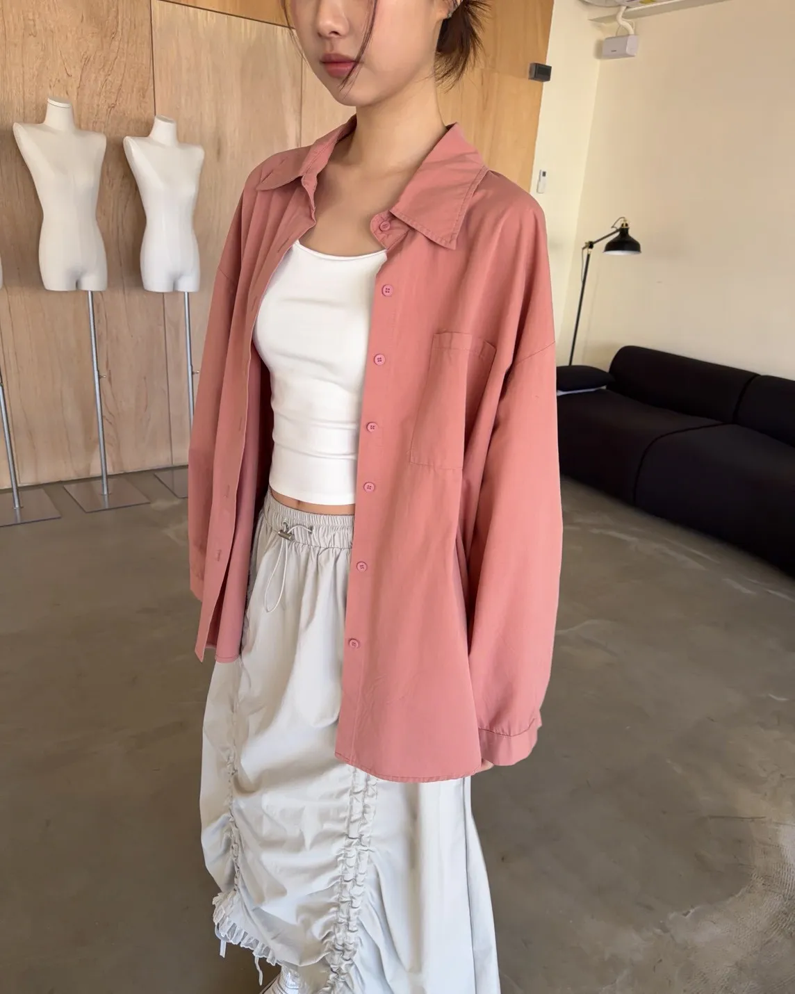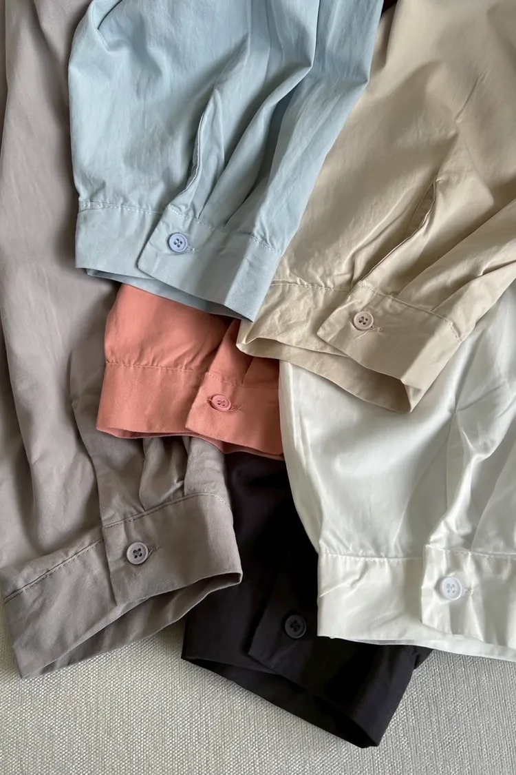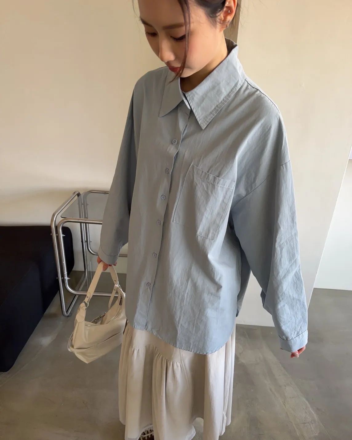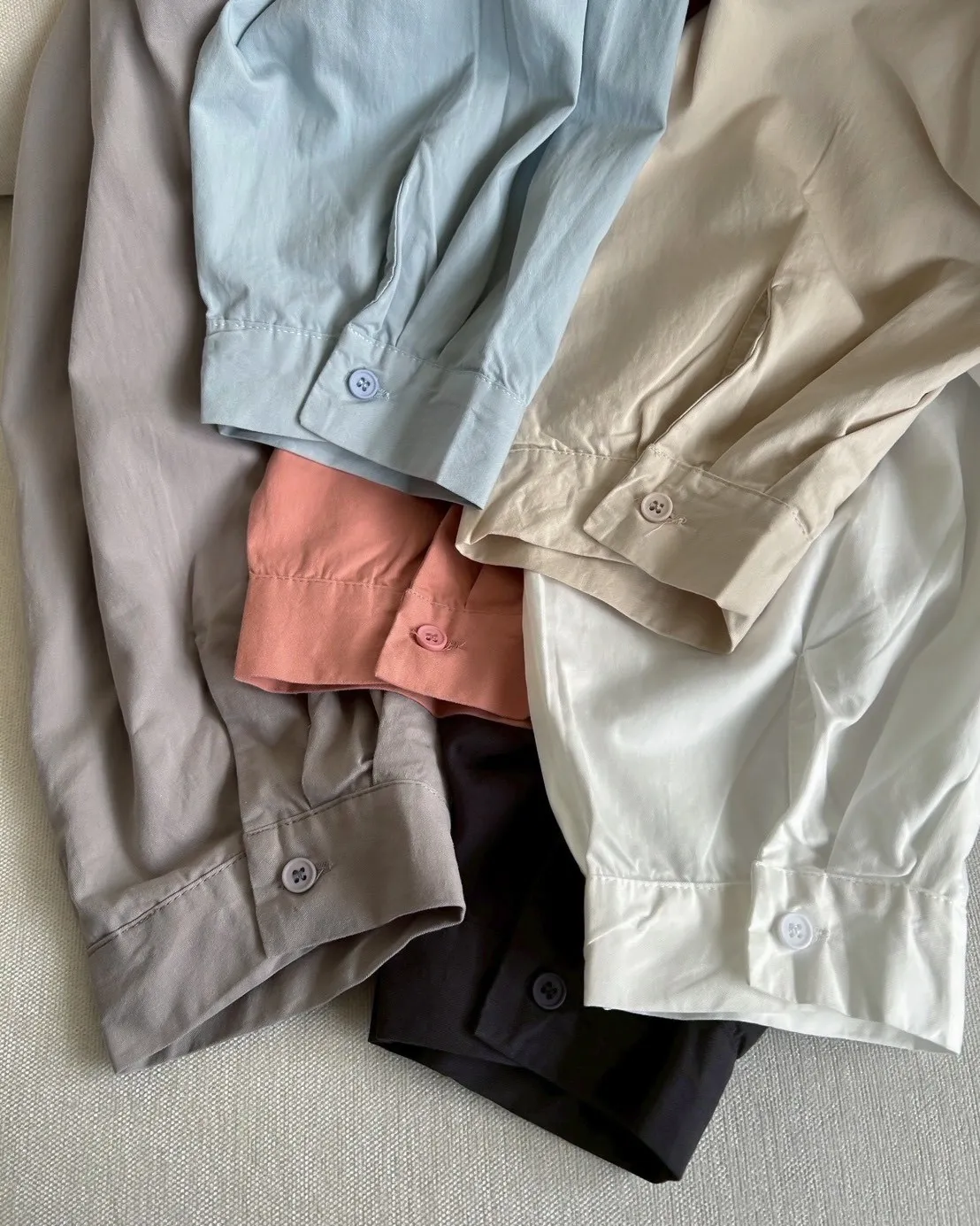 A0059(六色)小畫家同色扣寬版襯衫(白/杏/粉紅/淺藍/灰/深灰)