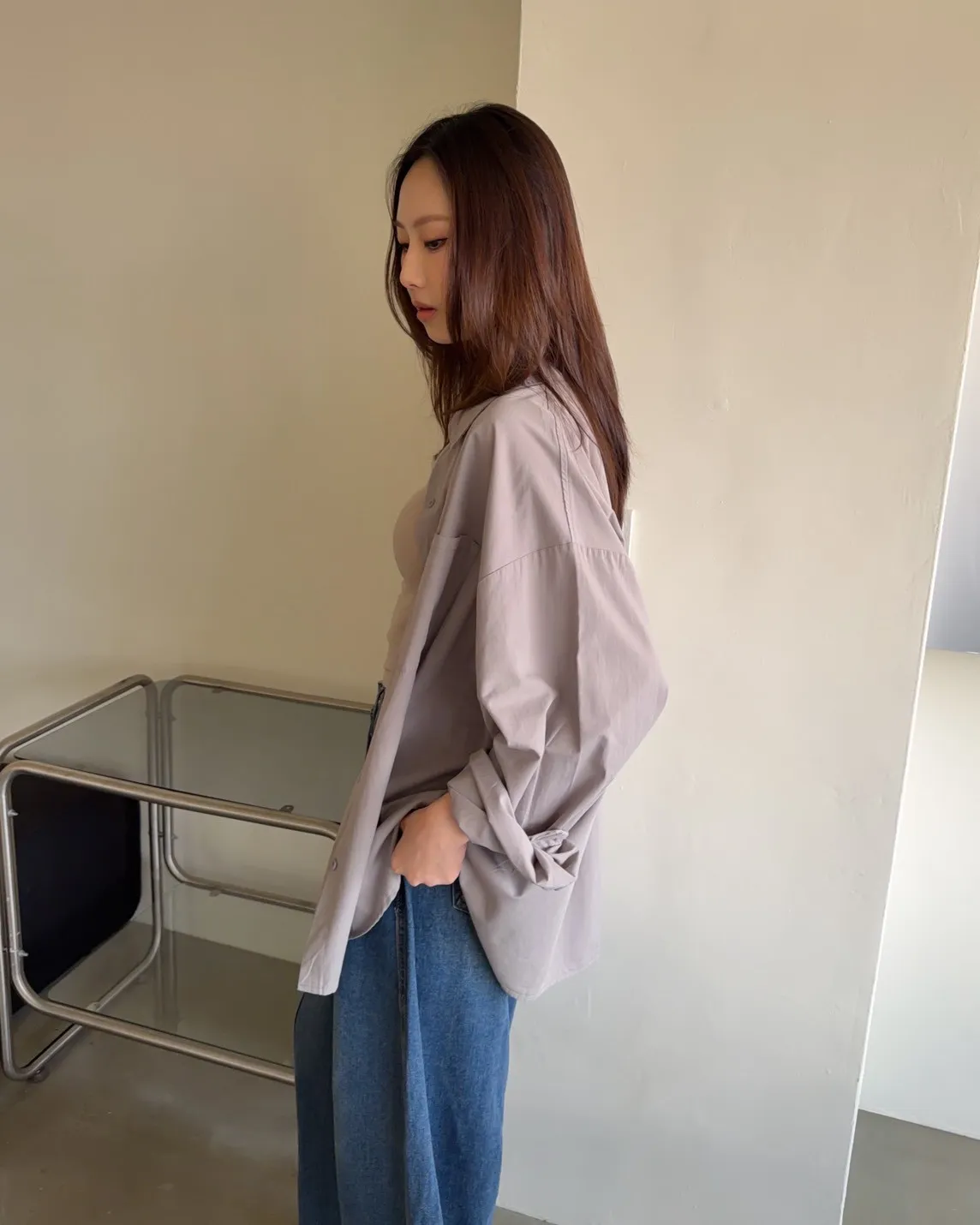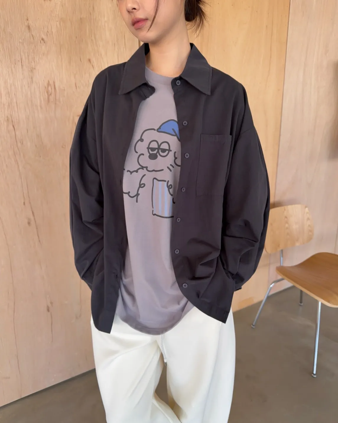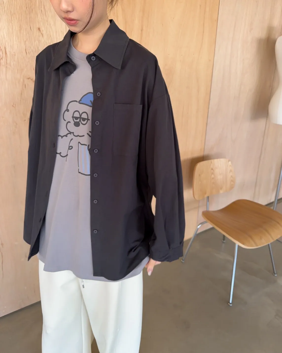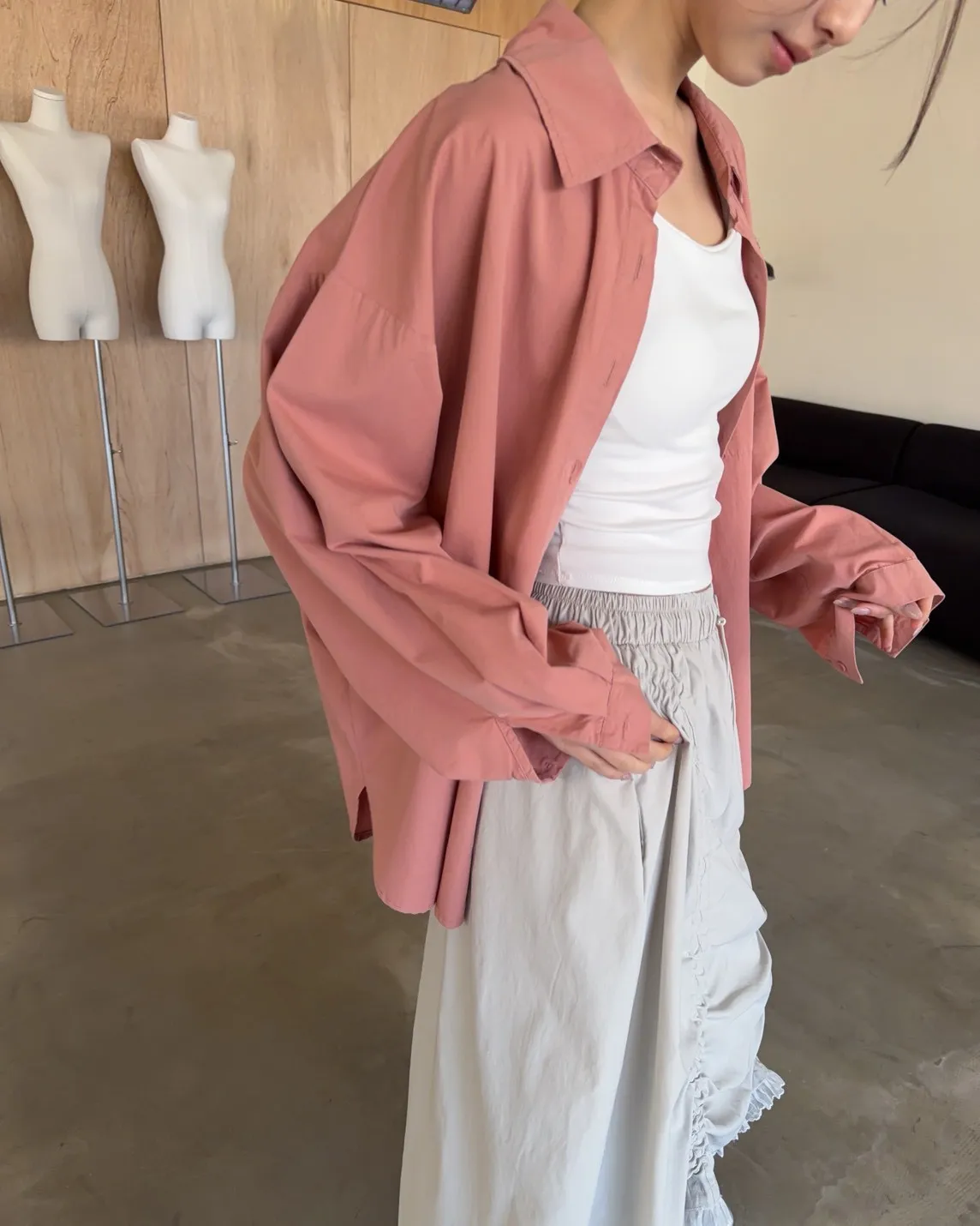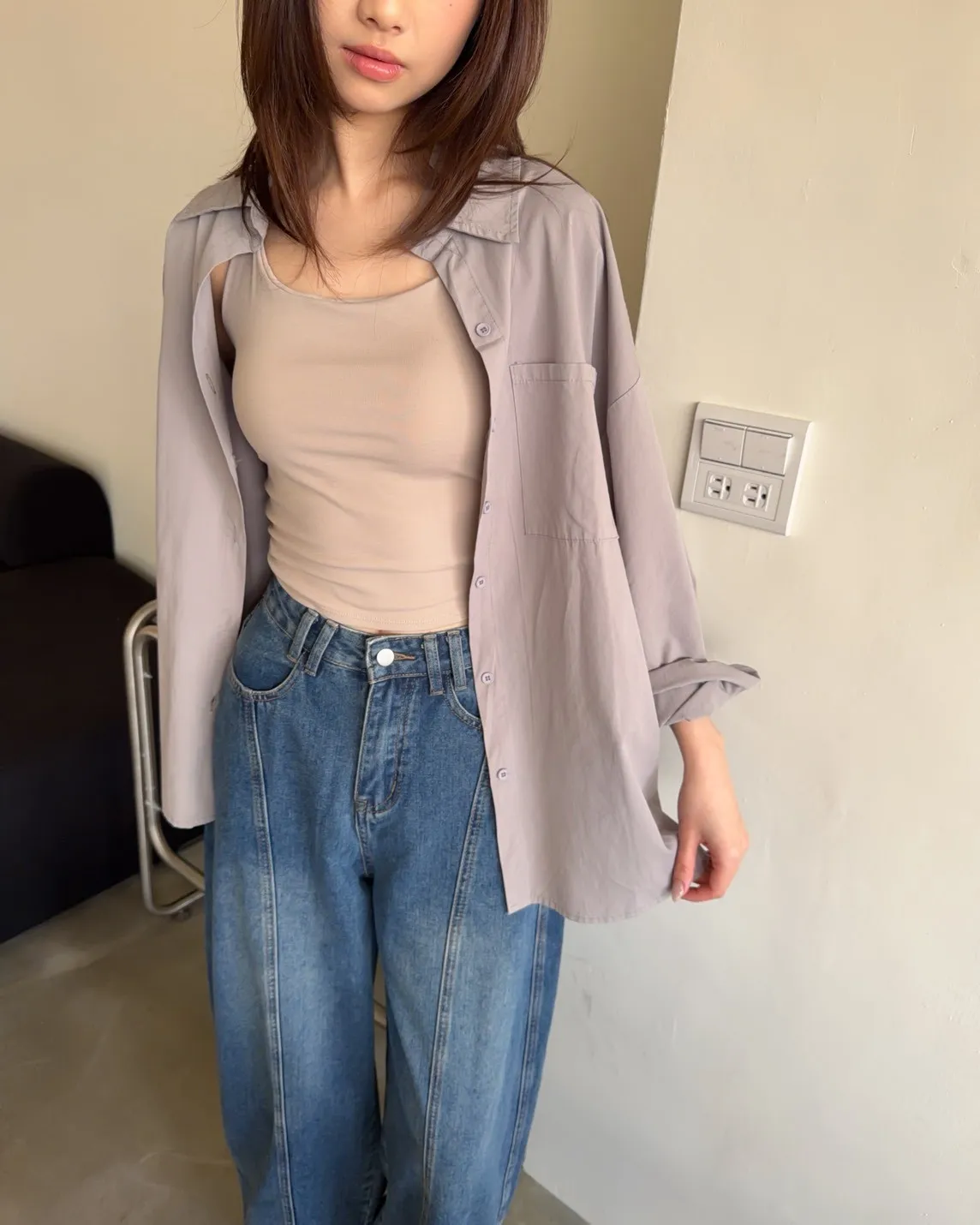 A0059(六色)小畫家同色扣寬版襯衫(白/杏/粉紅/淺藍/灰/深灰)