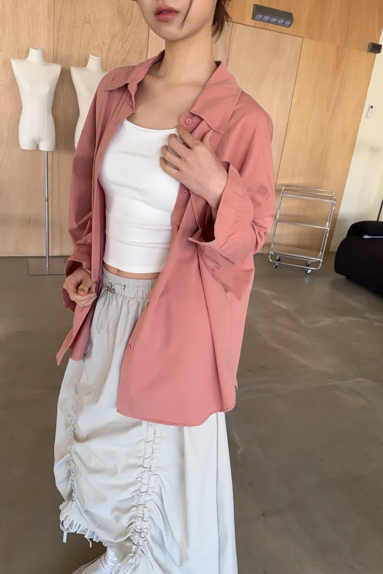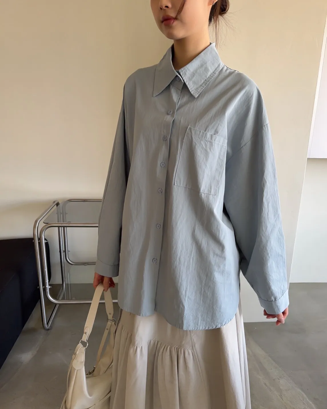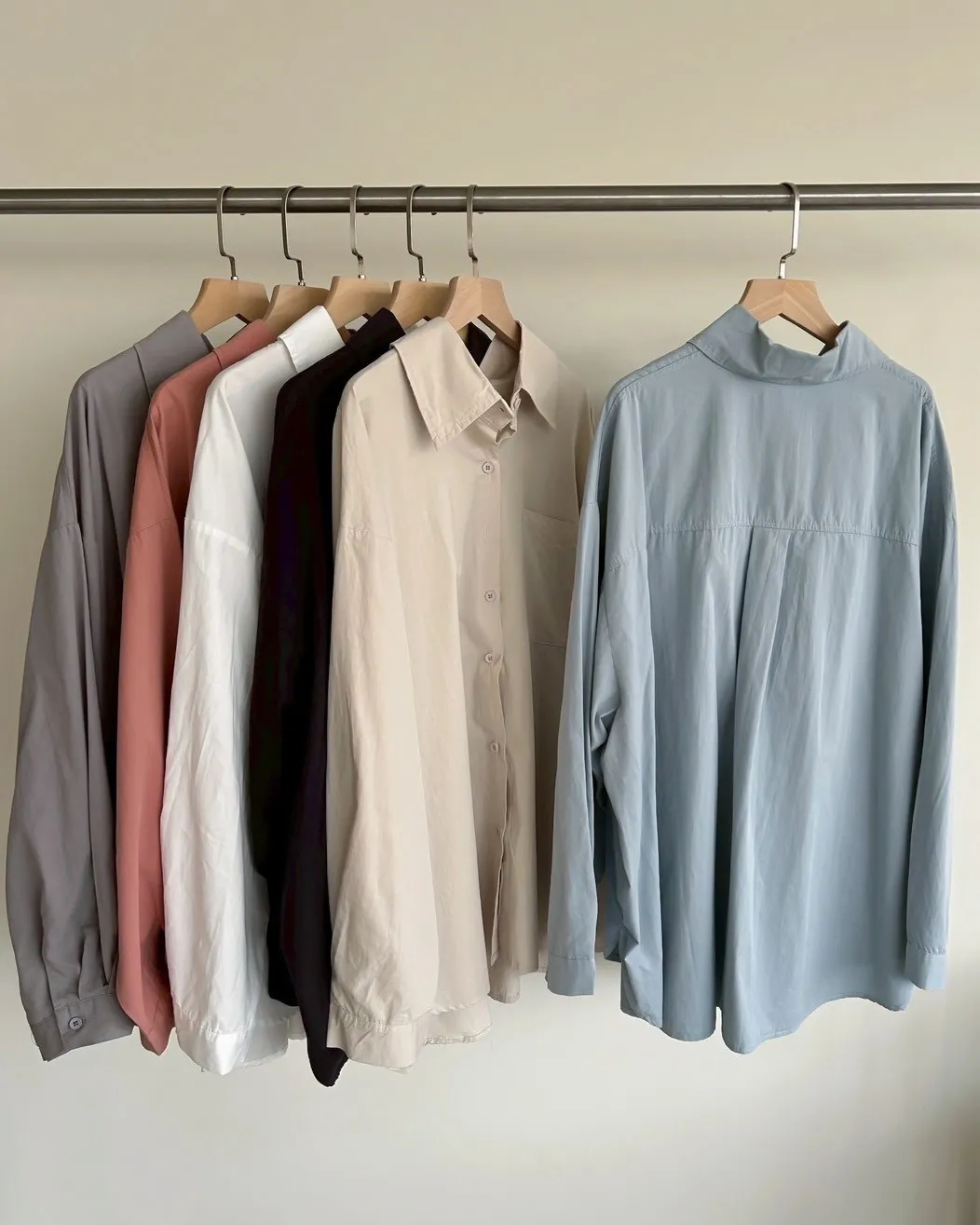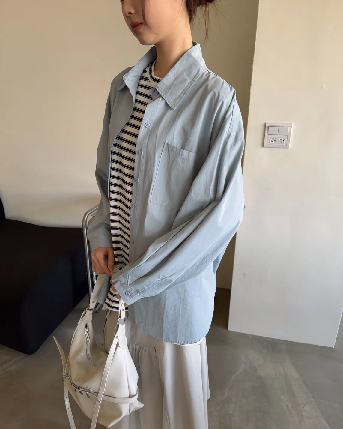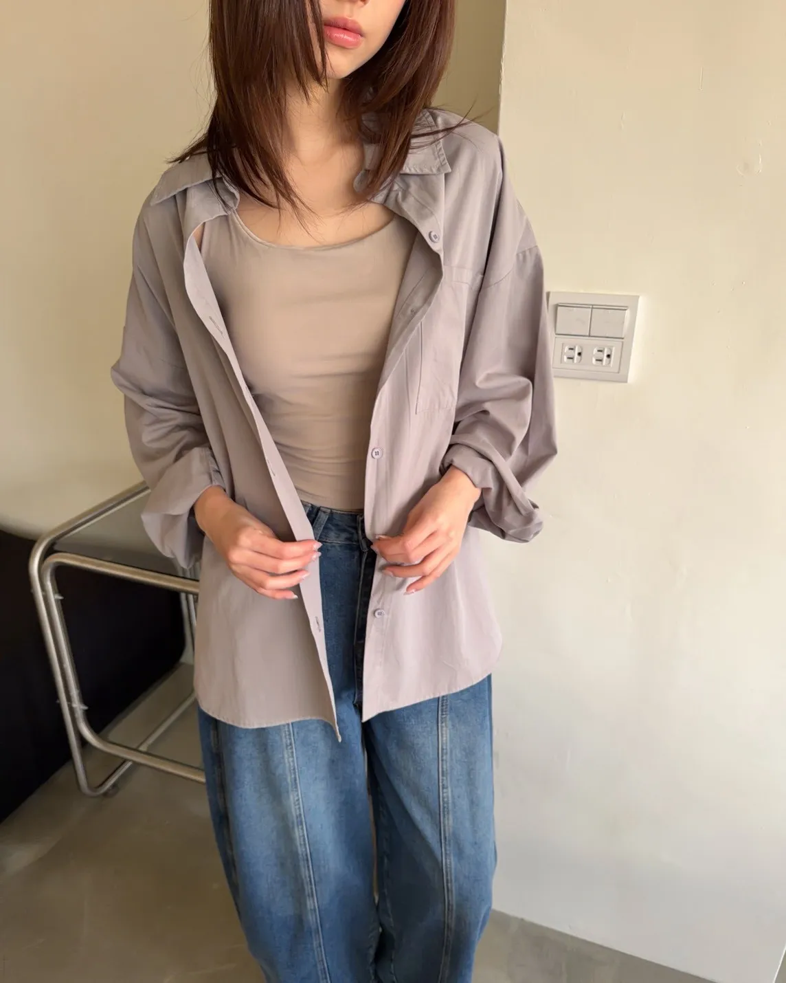 A0059(六色)小畫家同色扣寬版襯衫(白/杏/粉紅/淺藍/灰/深灰)