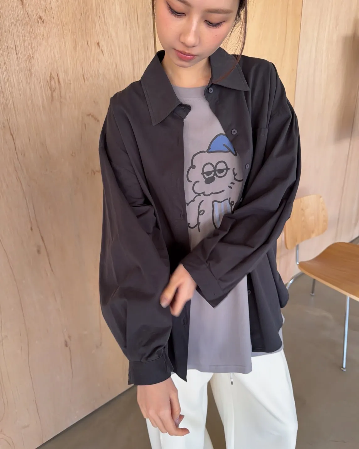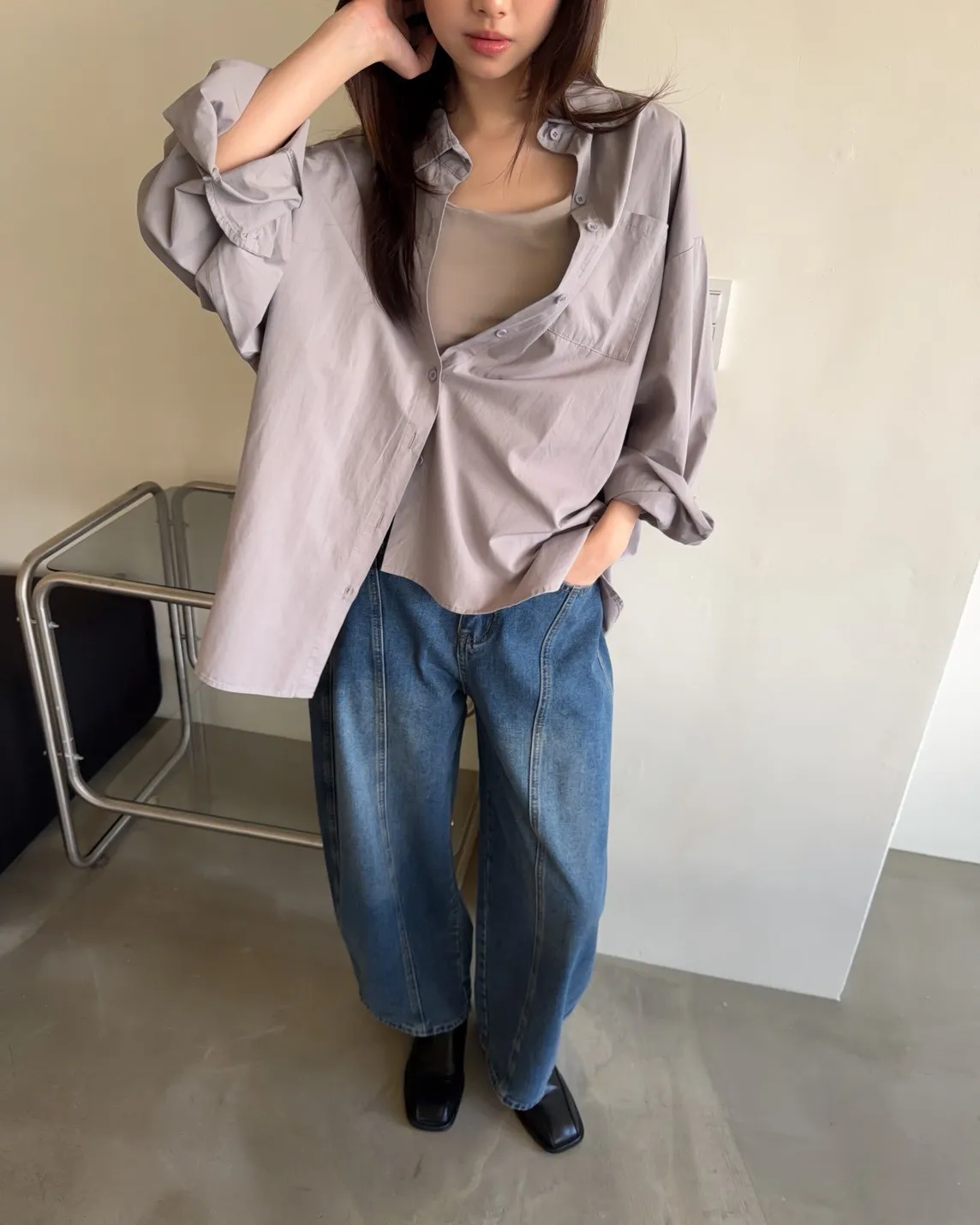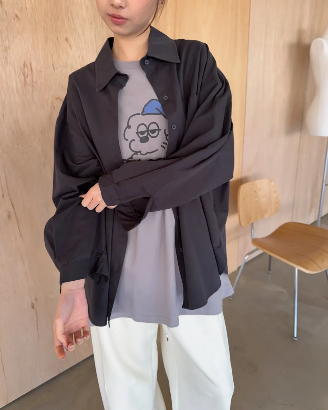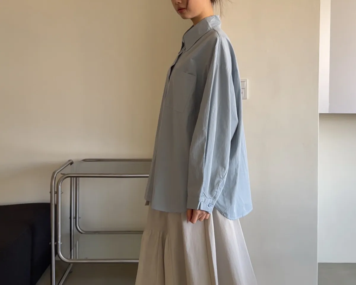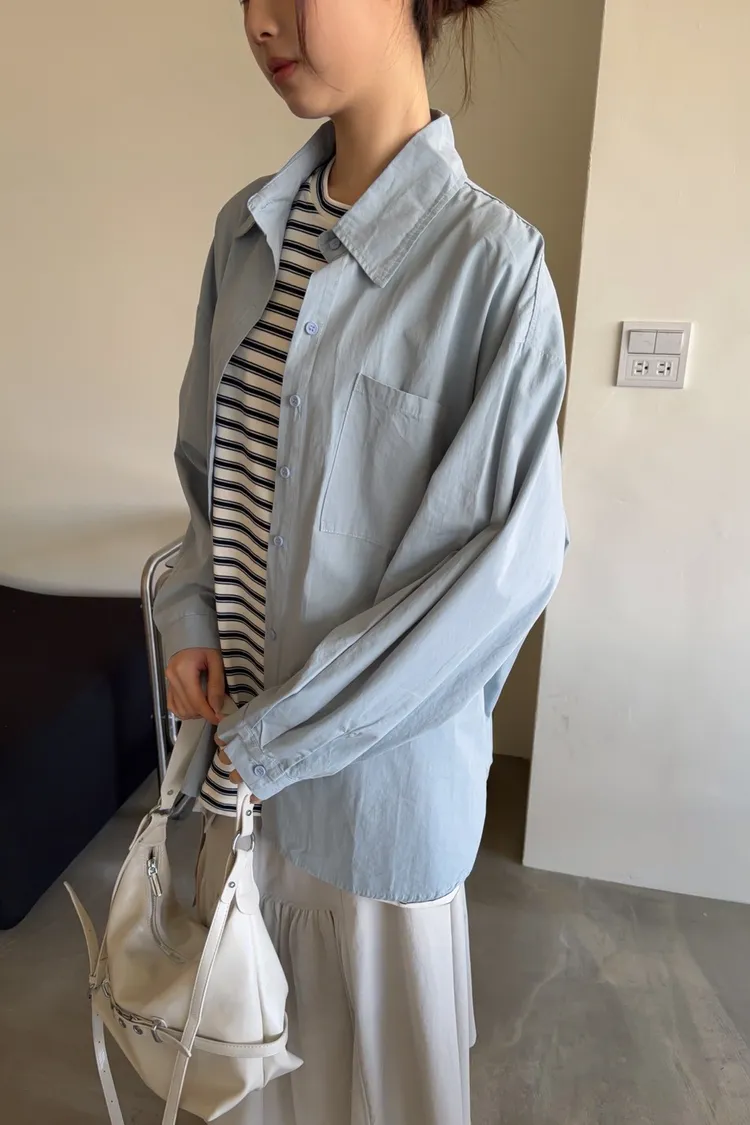 A0059(六色)小畫家同色扣寬版襯衫(白/杏/粉紅/淺藍/灰/深灰)