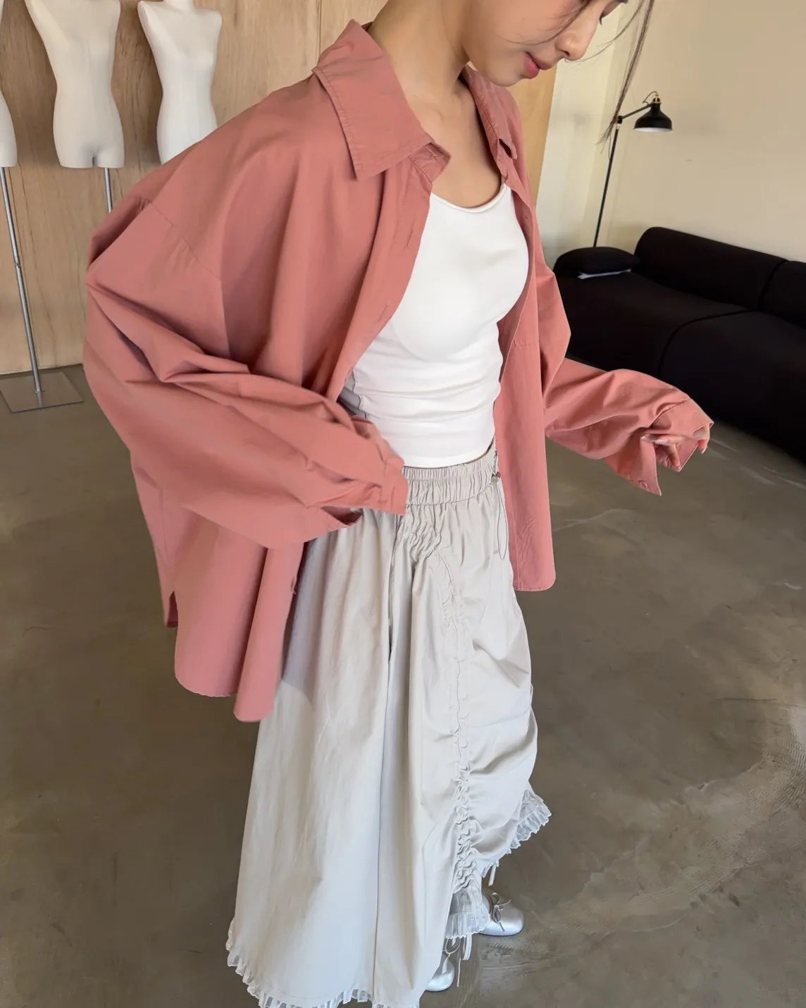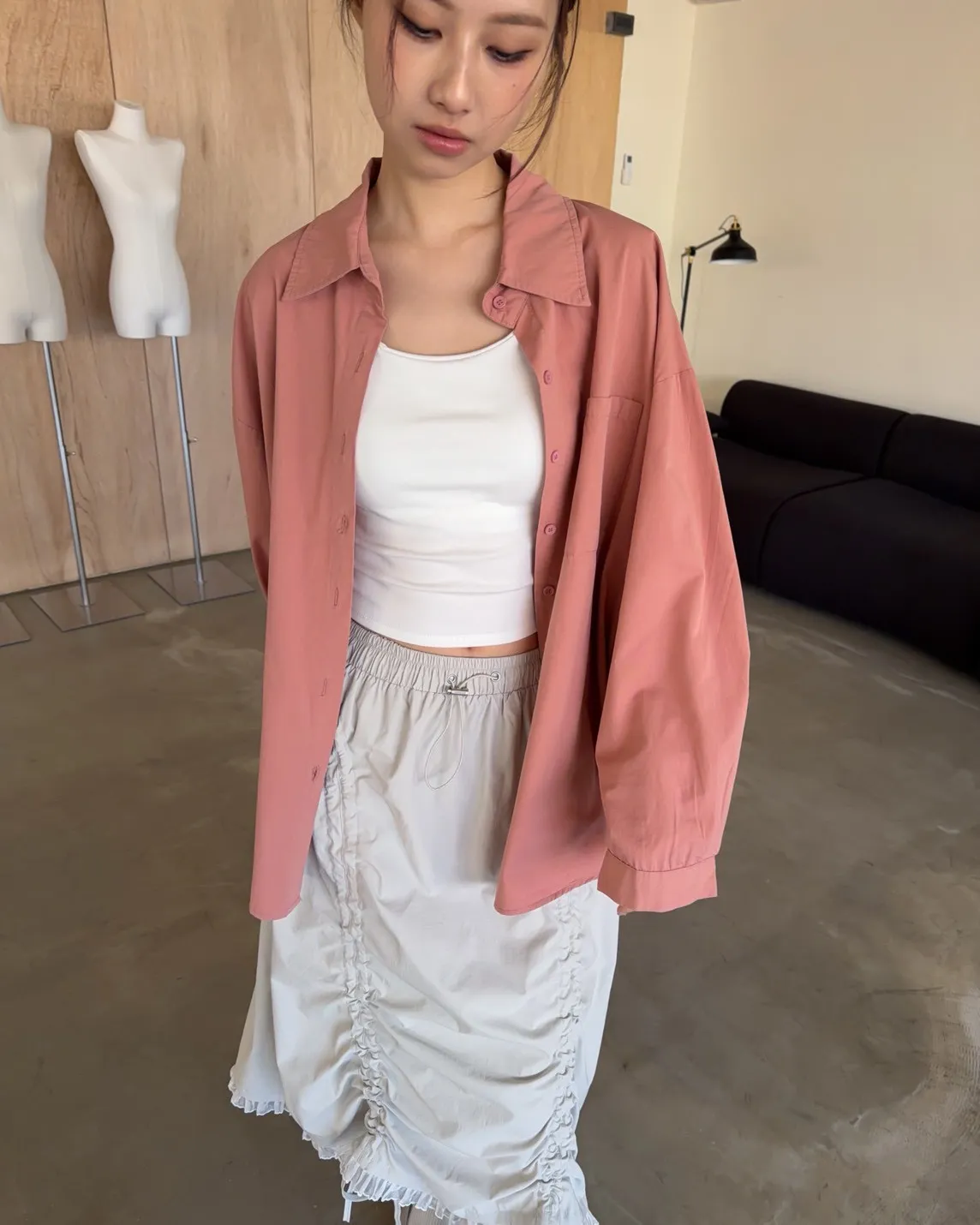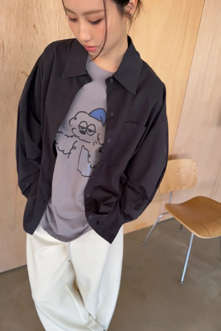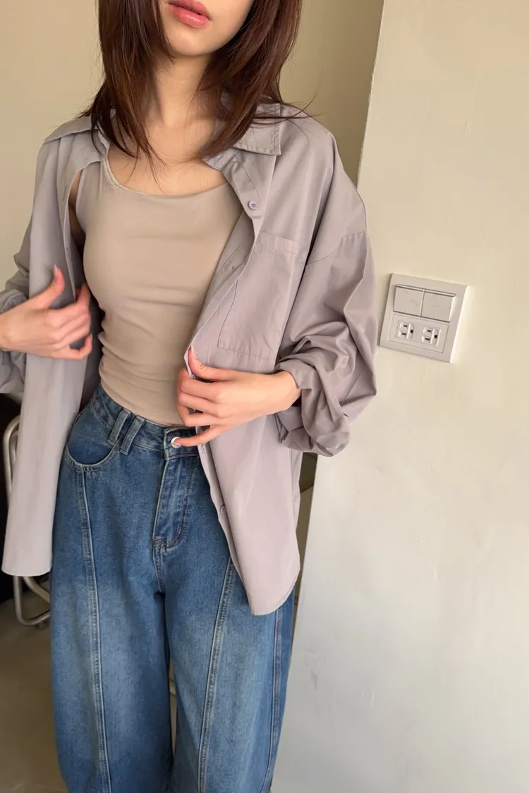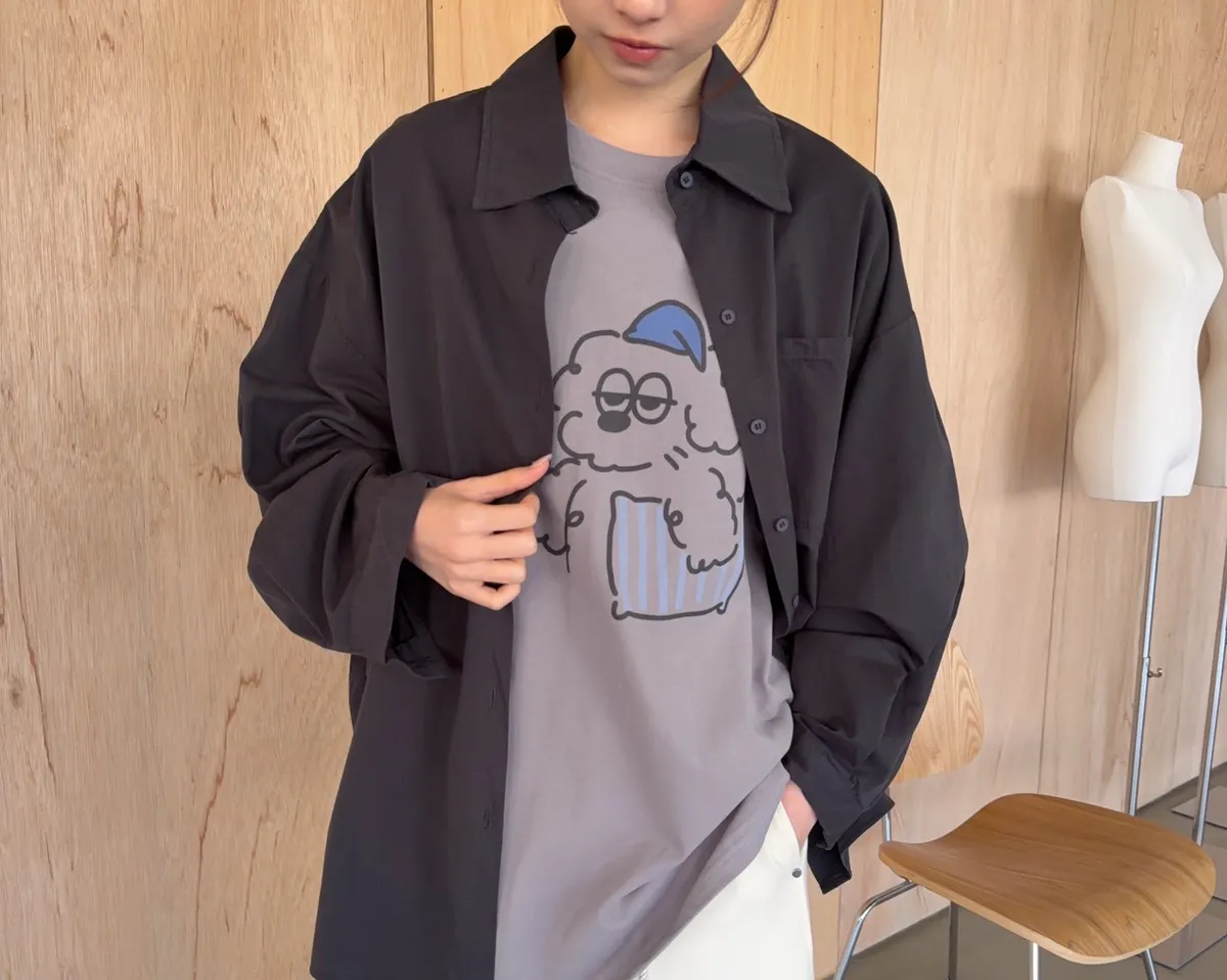 A0059(六色)小畫家同色扣寬版襯衫(白/杏/粉紅/淺藍/灰/深灰)