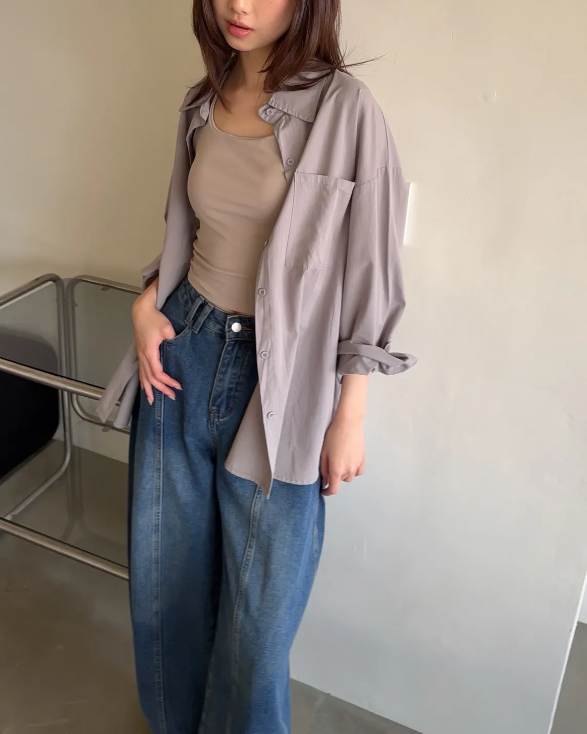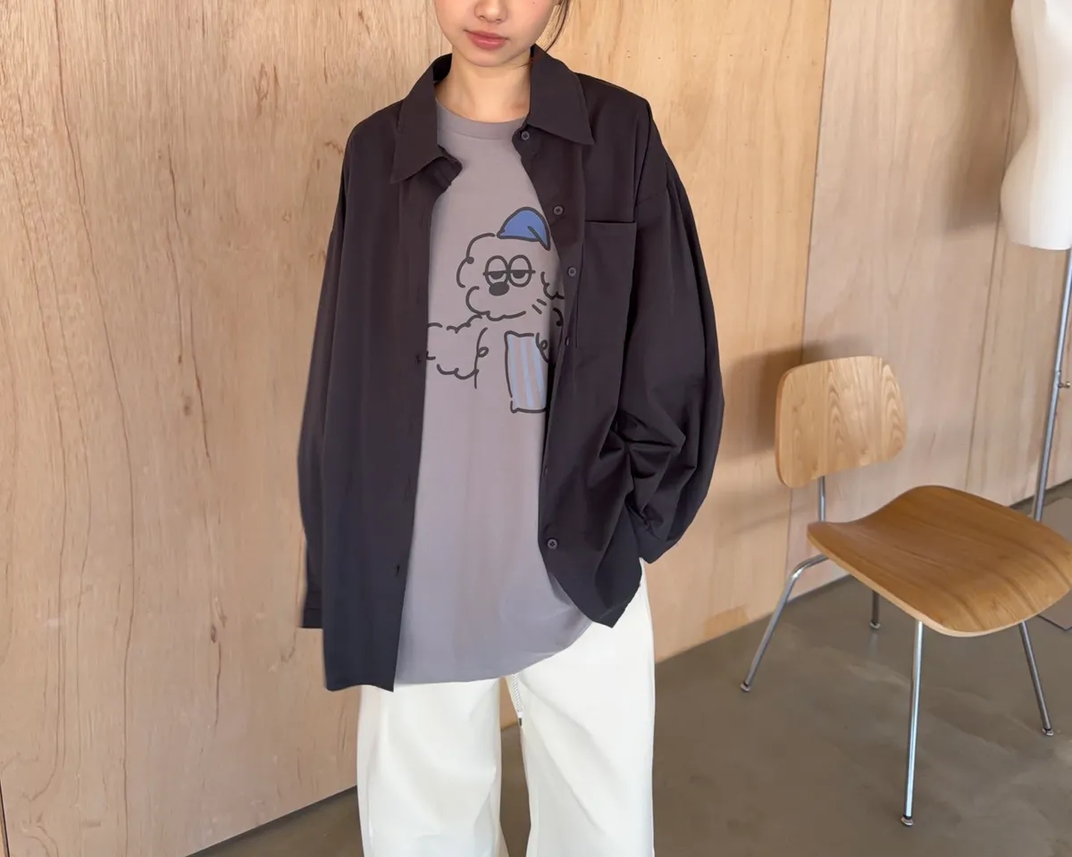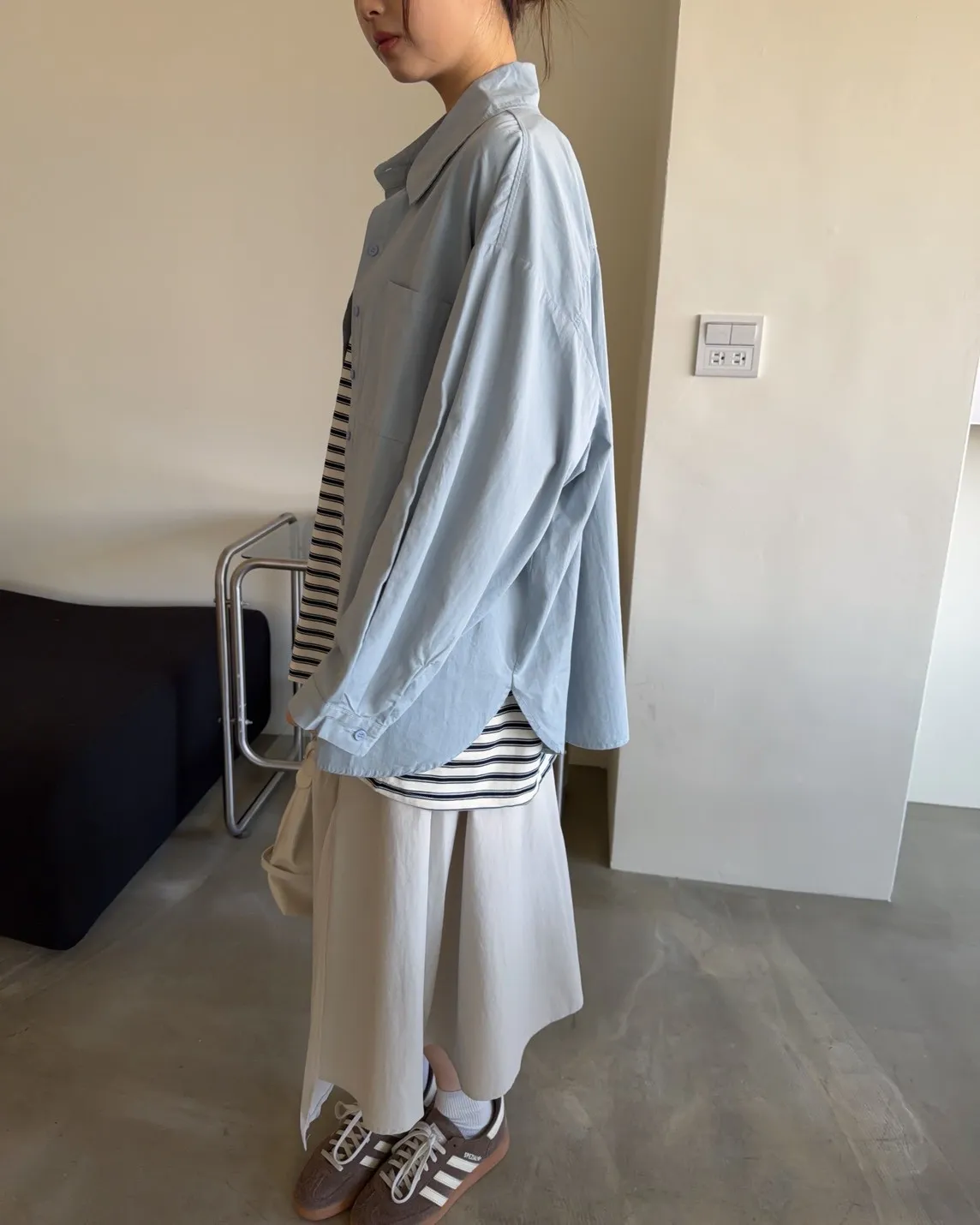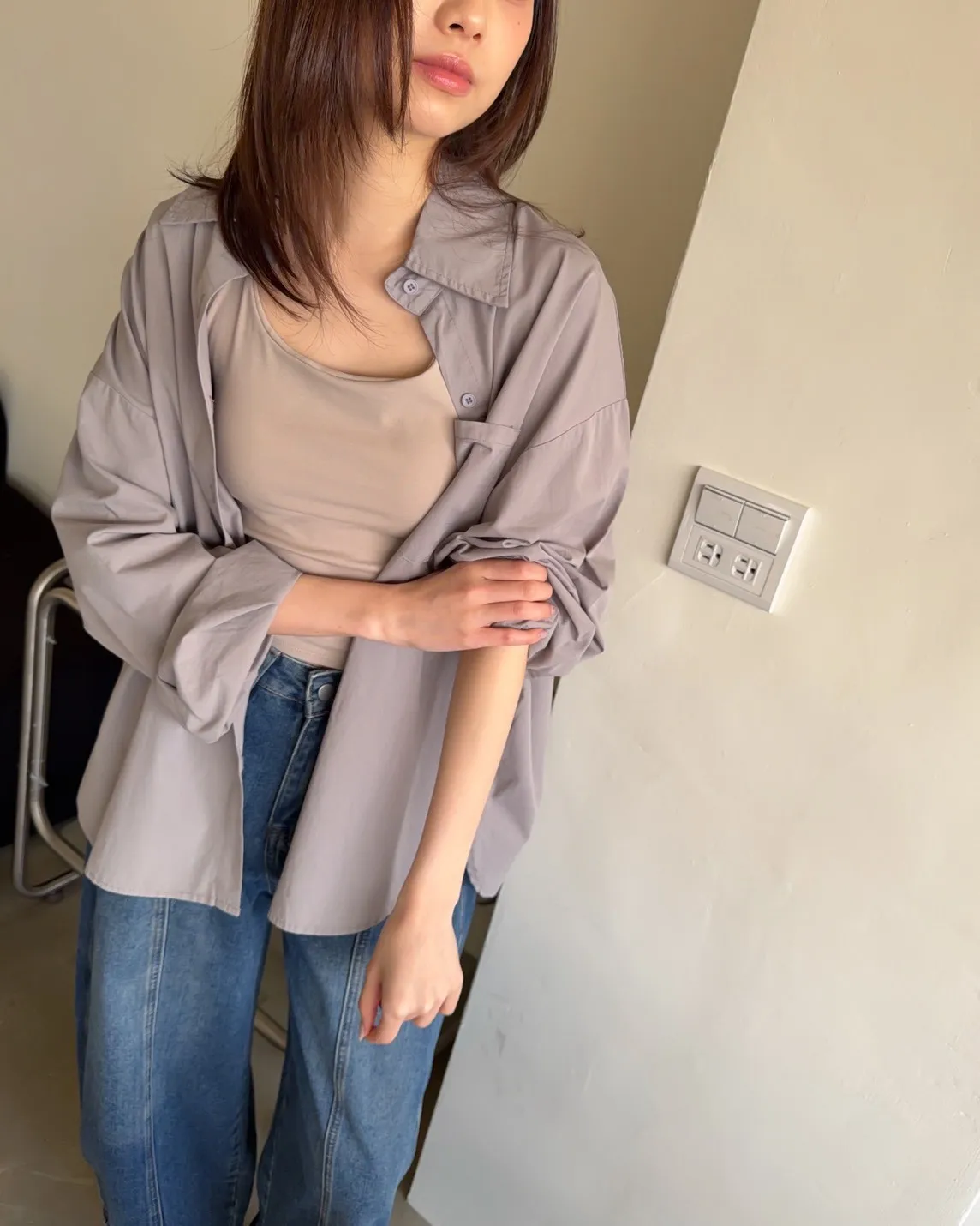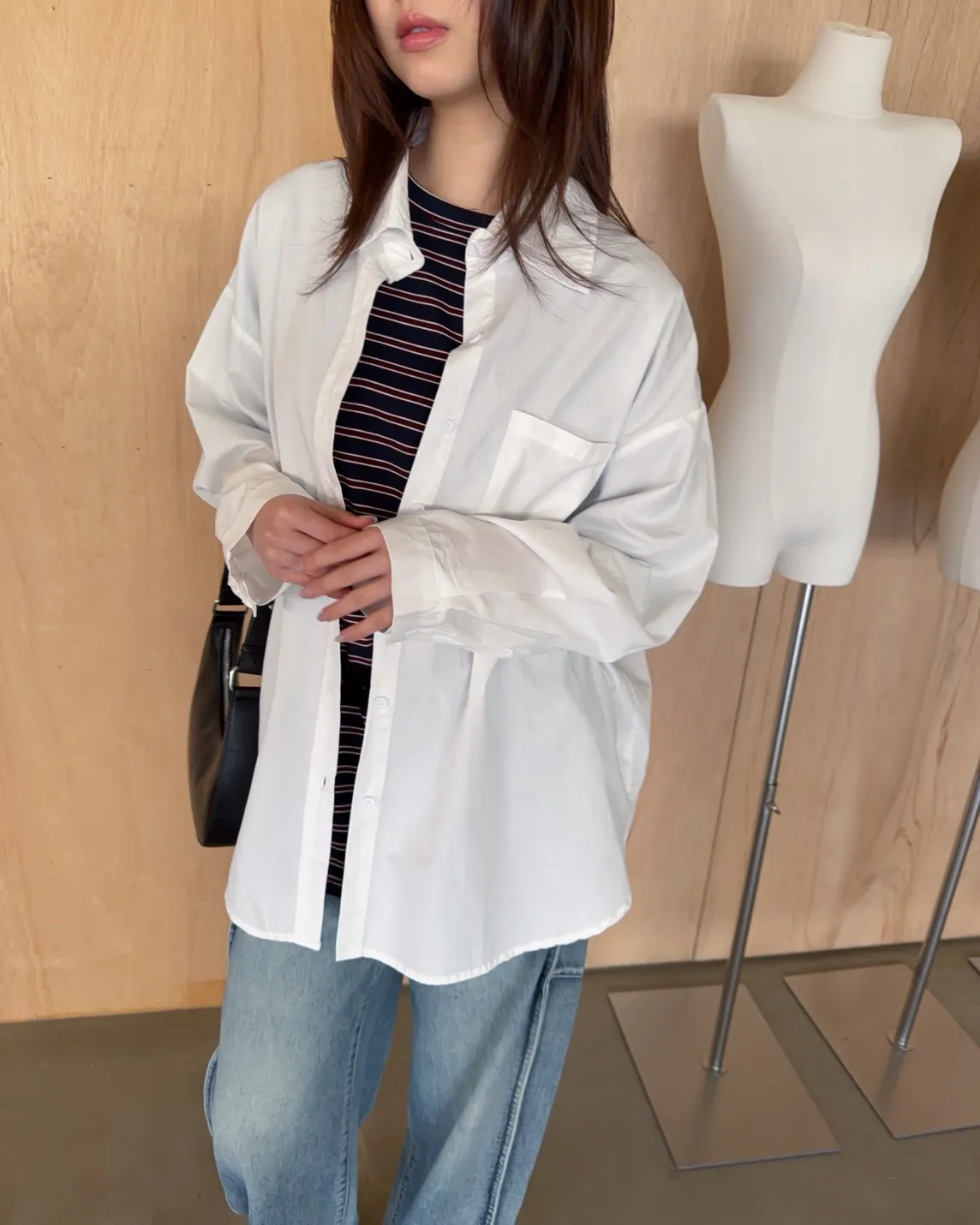 A0059(六色)小畫家同色扣寬版襯衫(白/杏/粉紅/淺藍/灰/深灰)