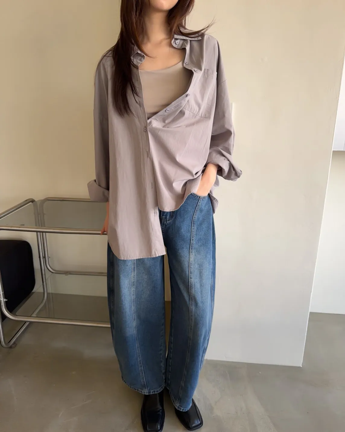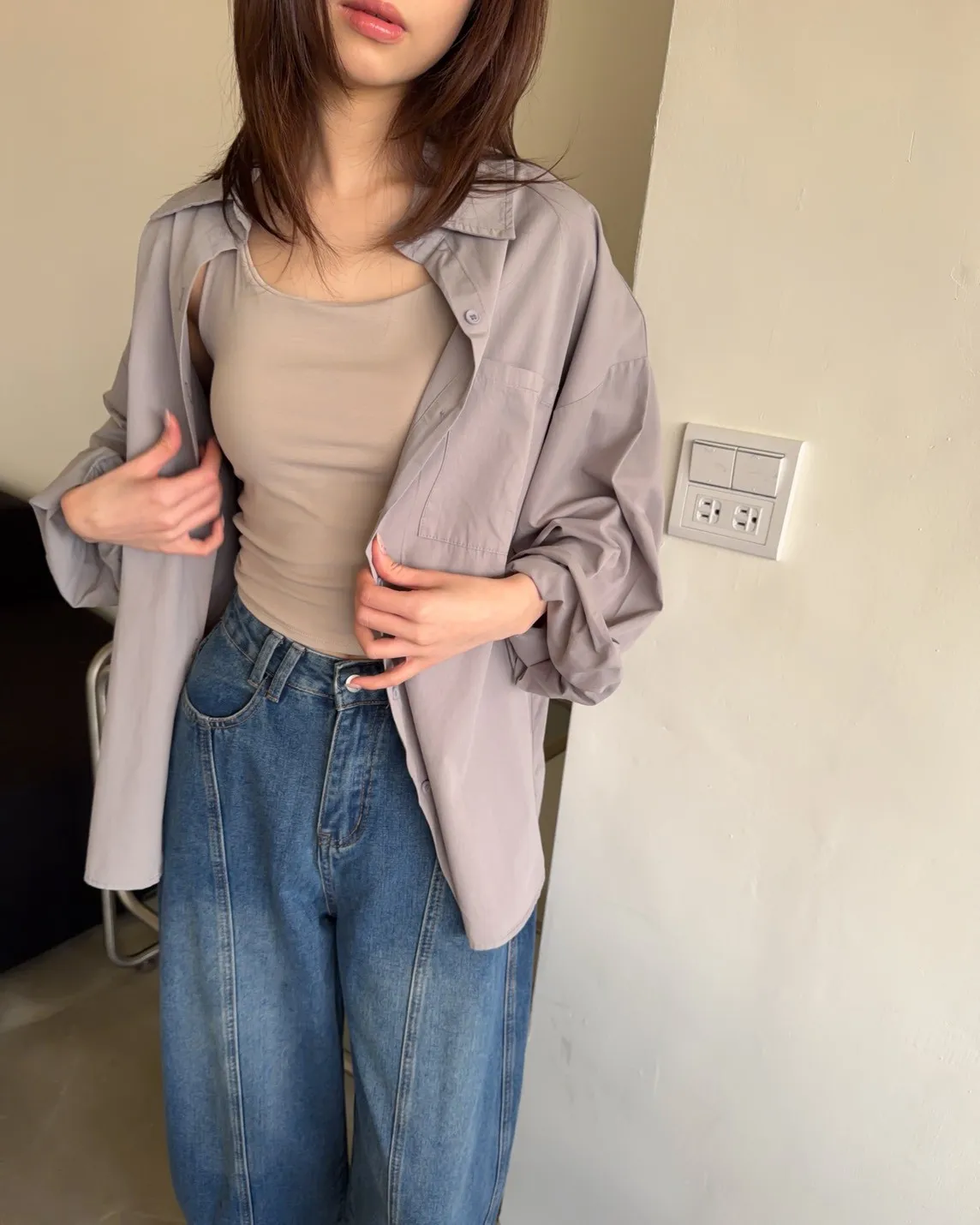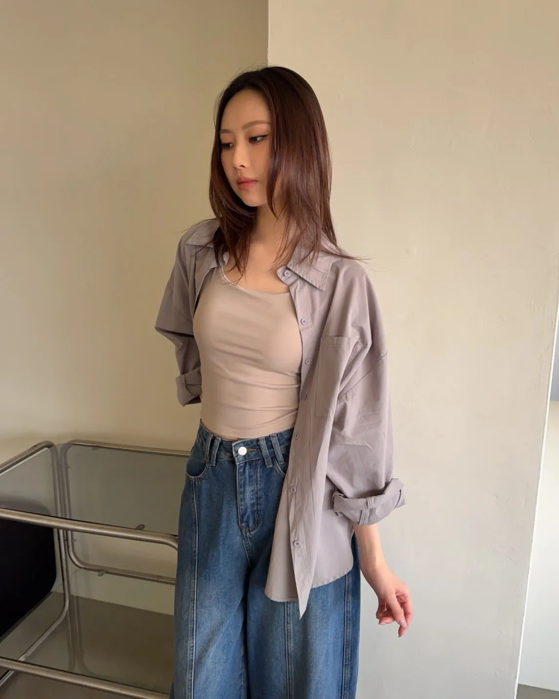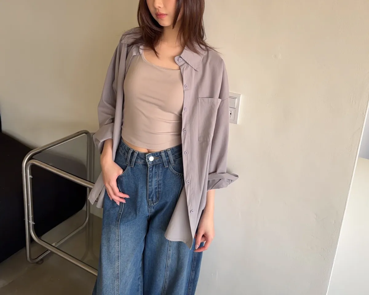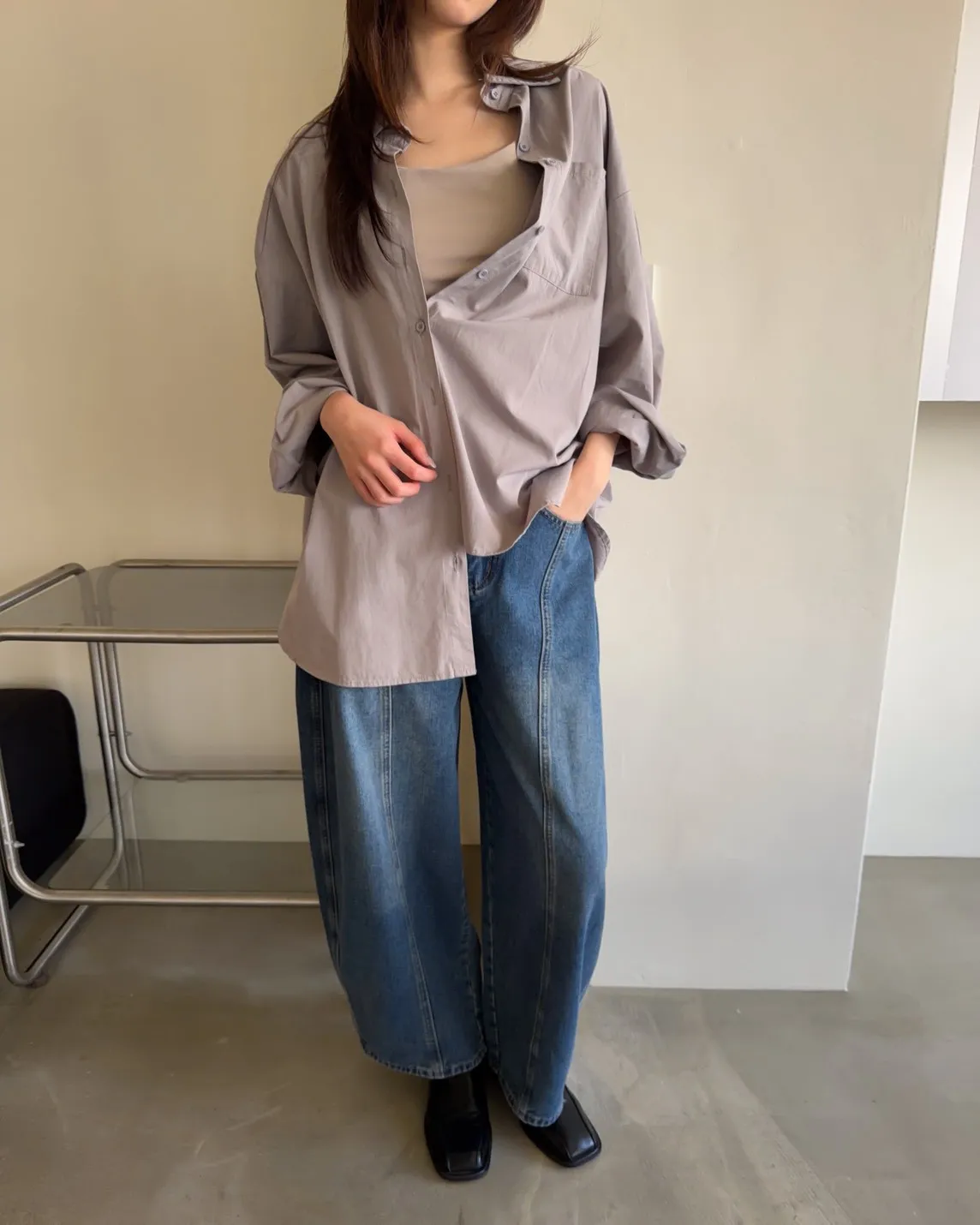 A0059(六色)小畫家同色扣寬版襯衫(白/杏/粉紅/淺藍/灰/深灰)
