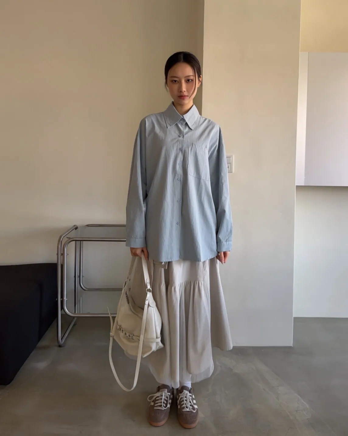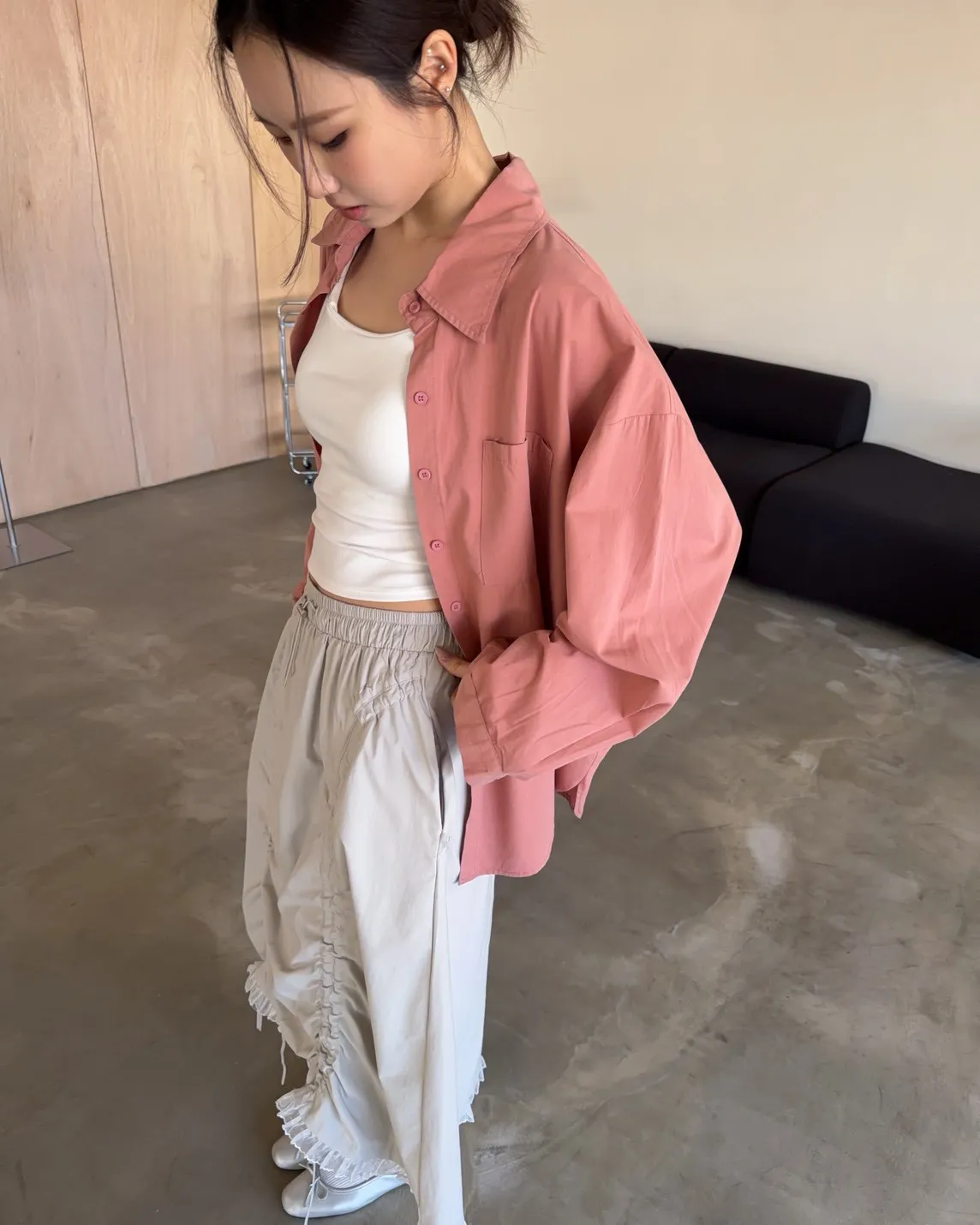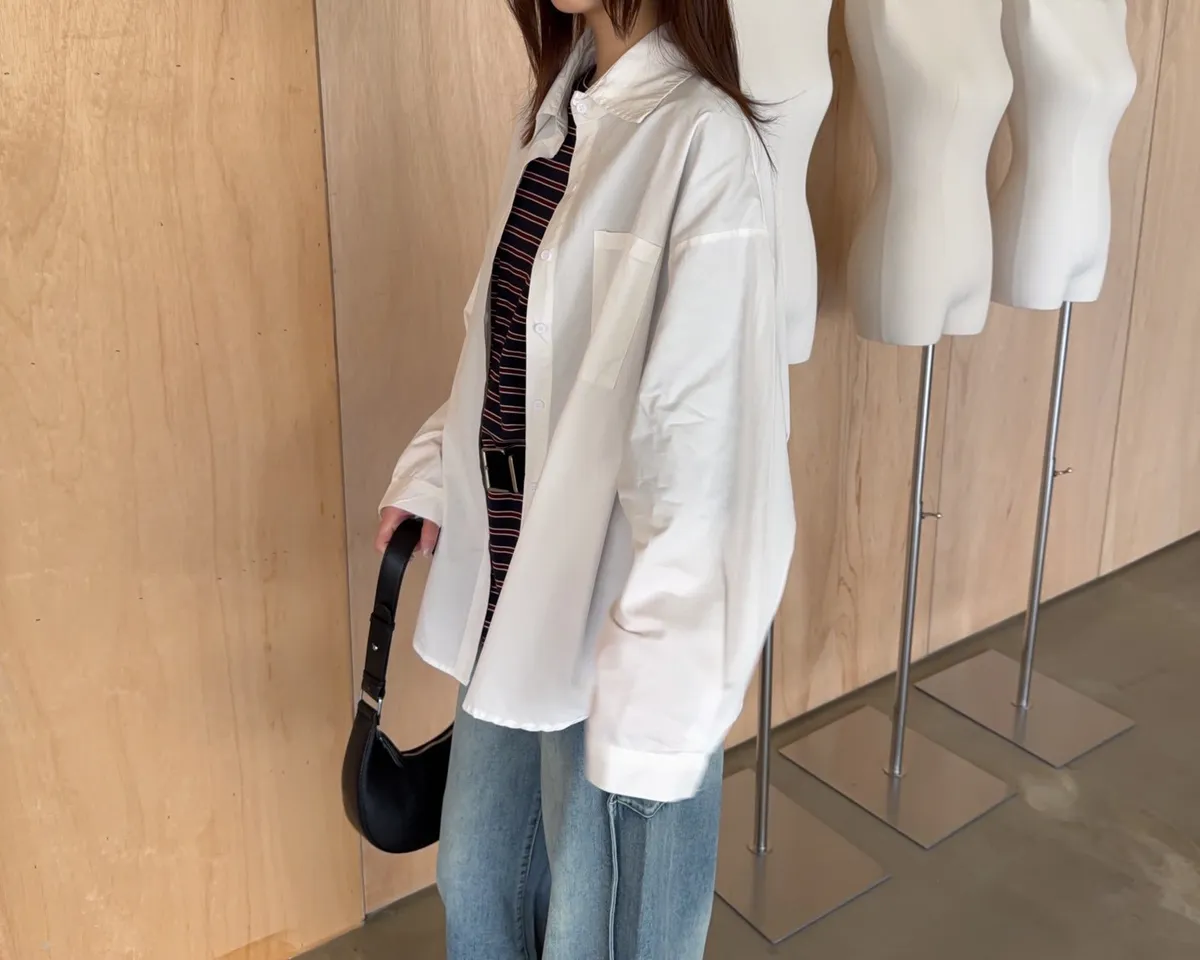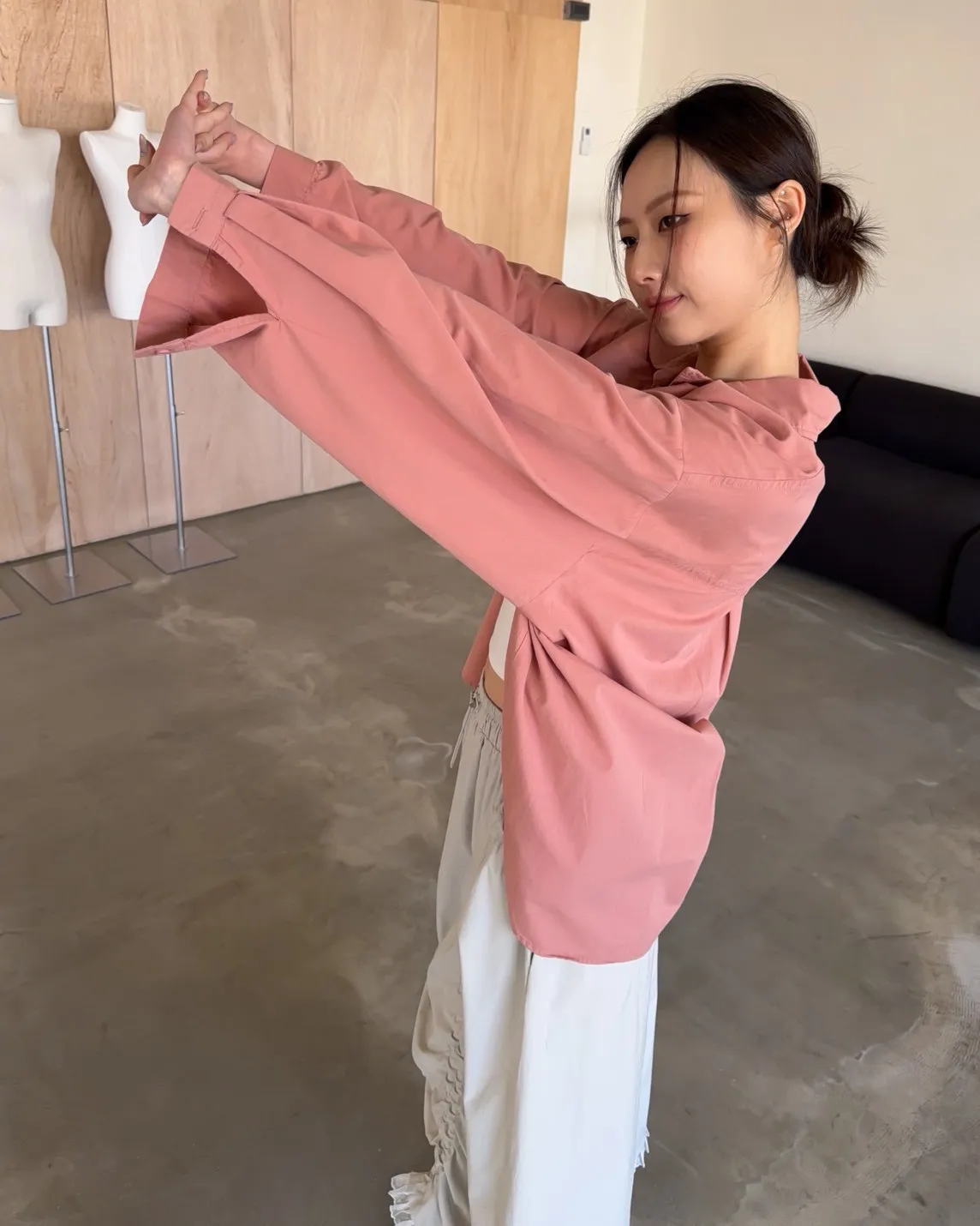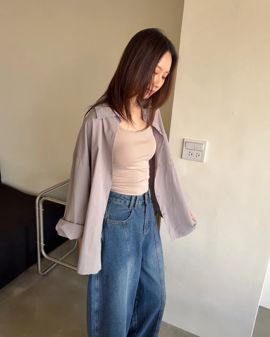 A0059(六色)小畫家同色扣寬版襯衫(白/杏/粉紅/淺藍/灰/深灰)