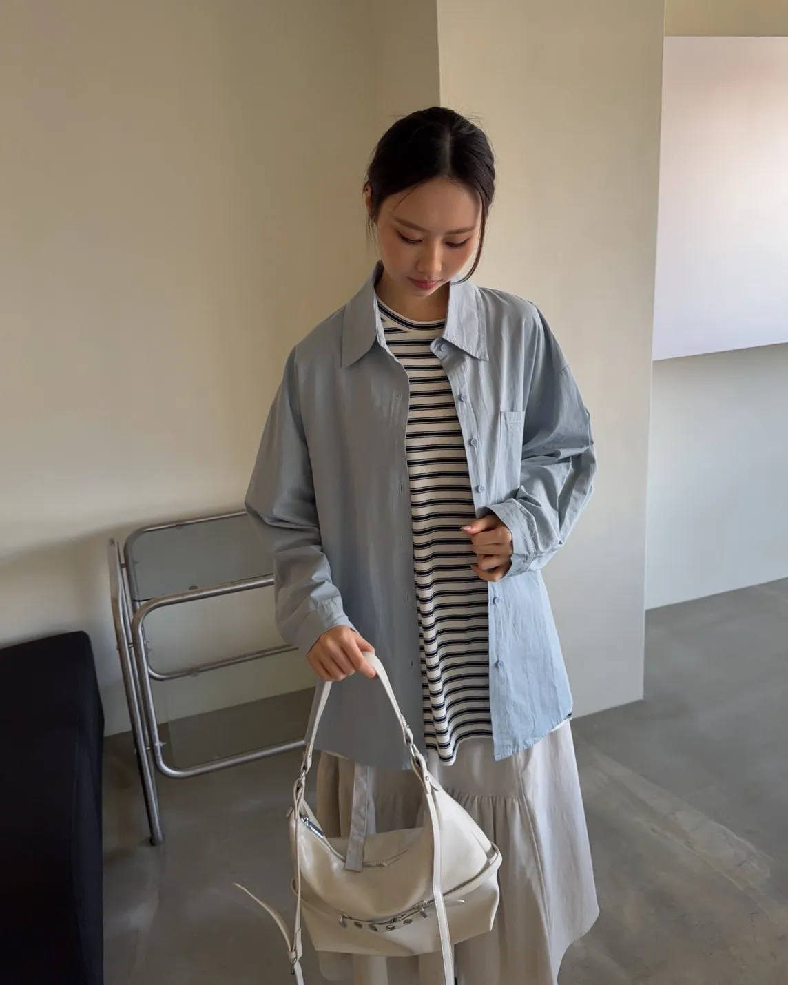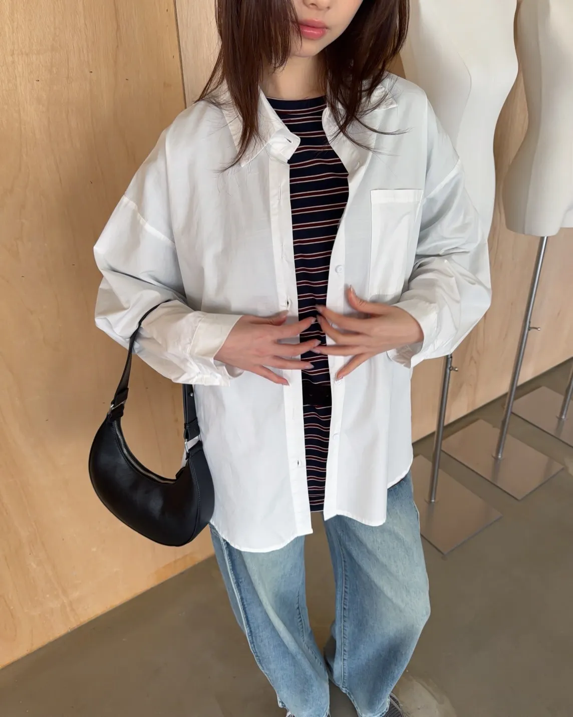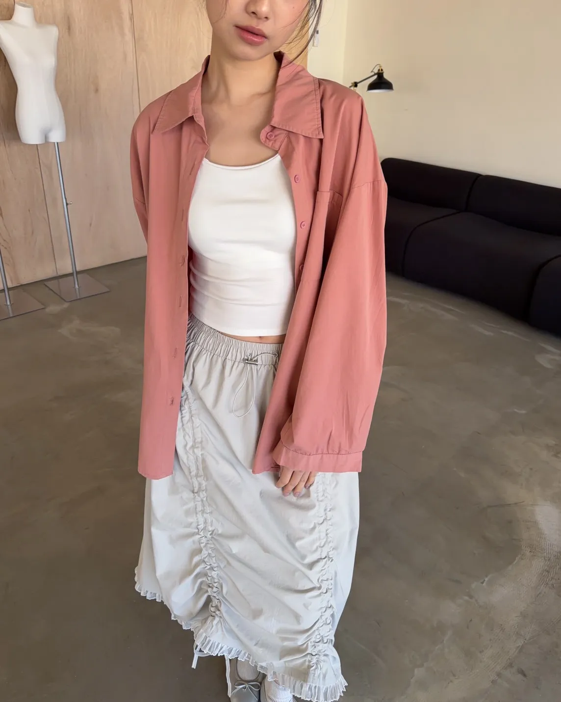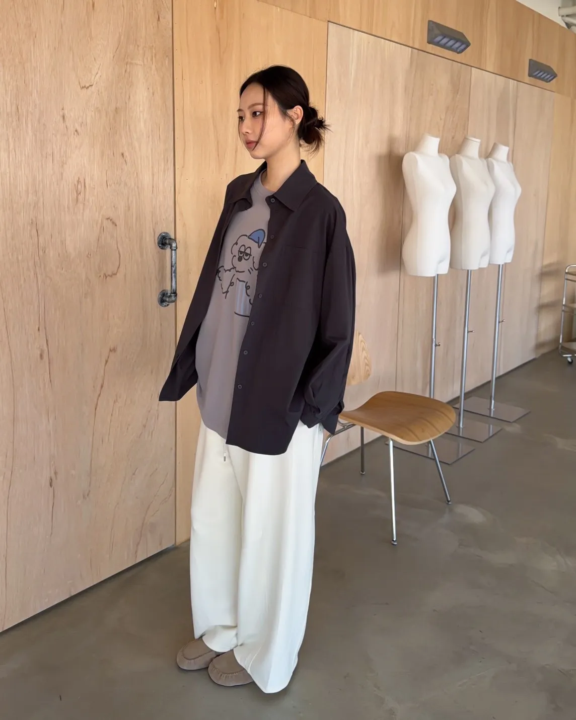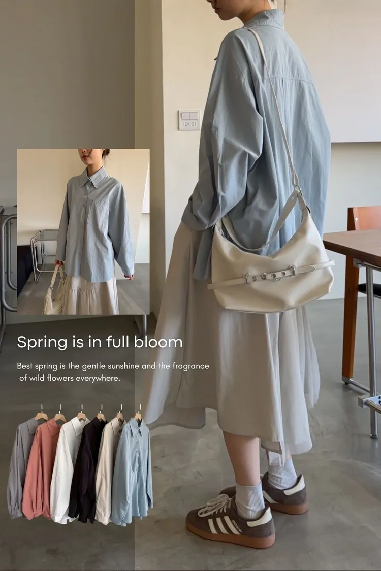 A0059(六色)小畫家同色扣寬版襯衫(白/杏/粉紅/淺藍/灰/深灰)