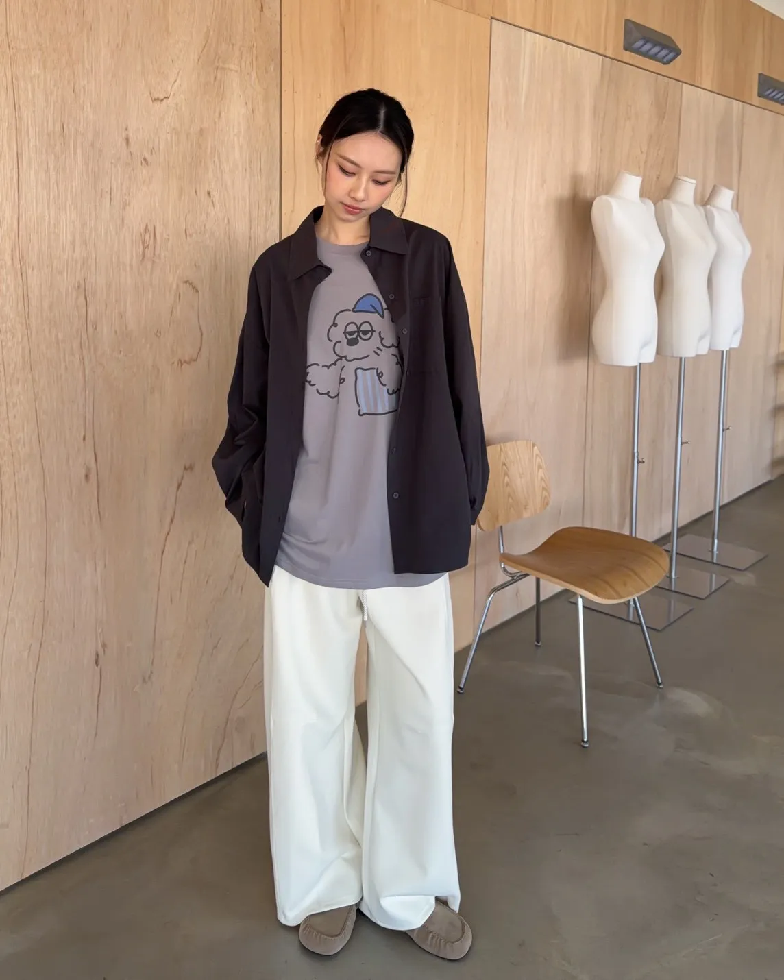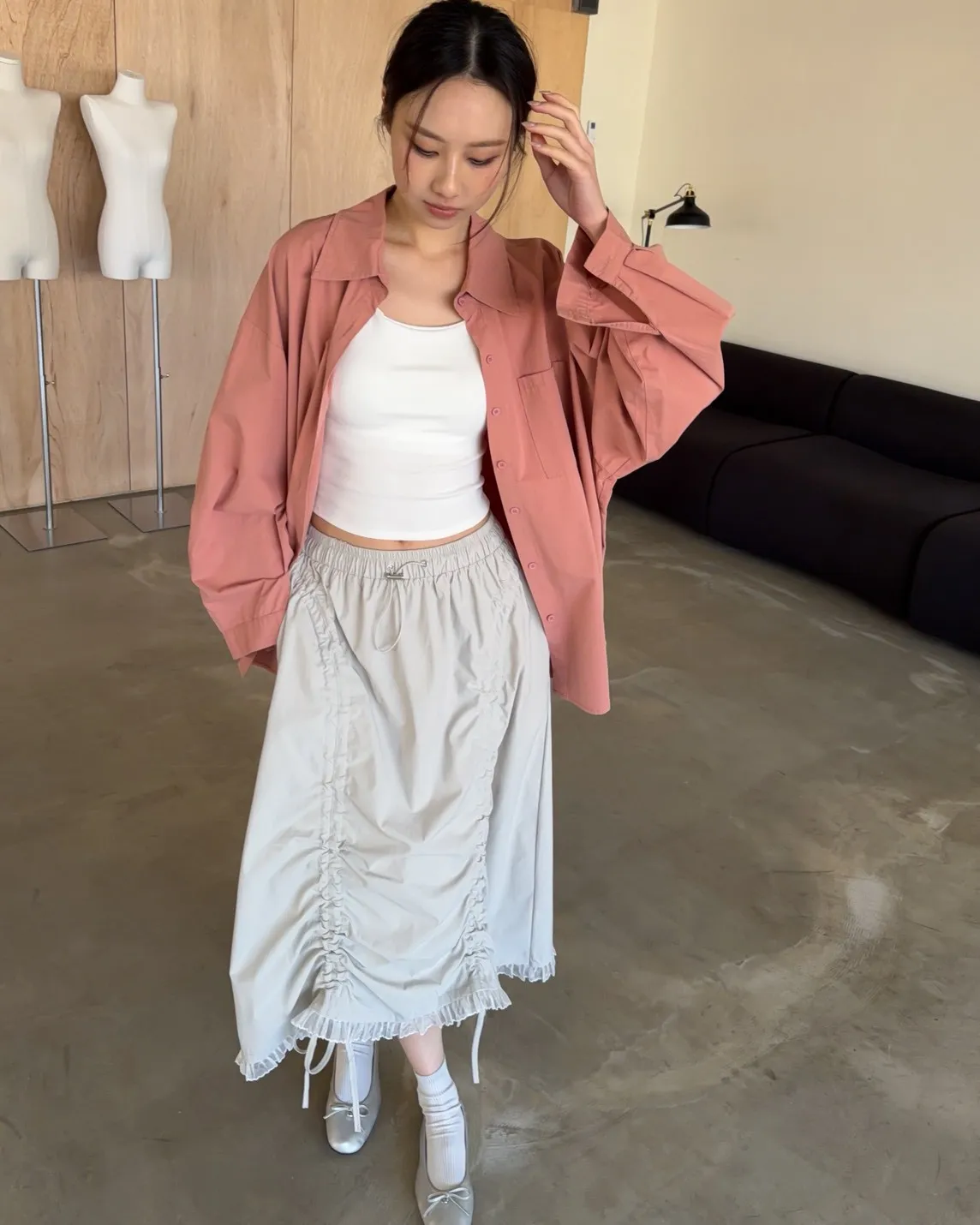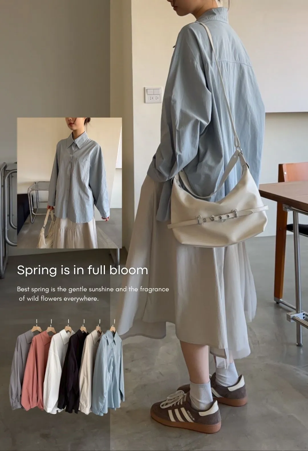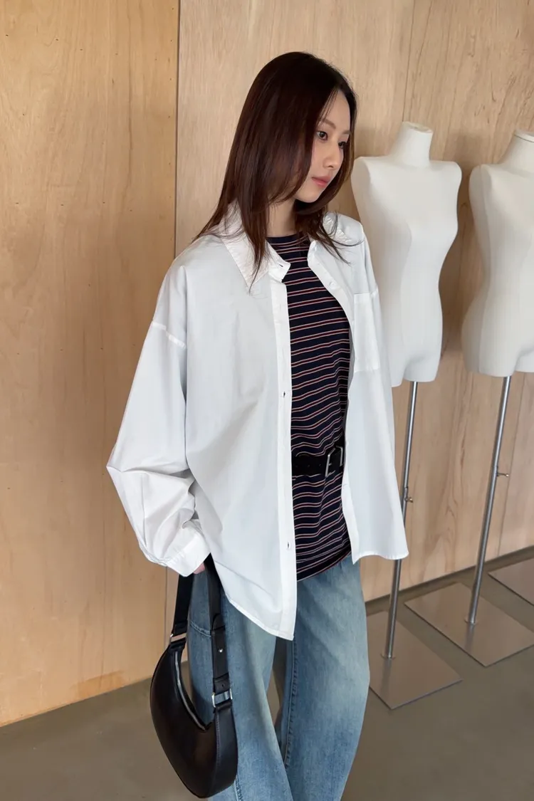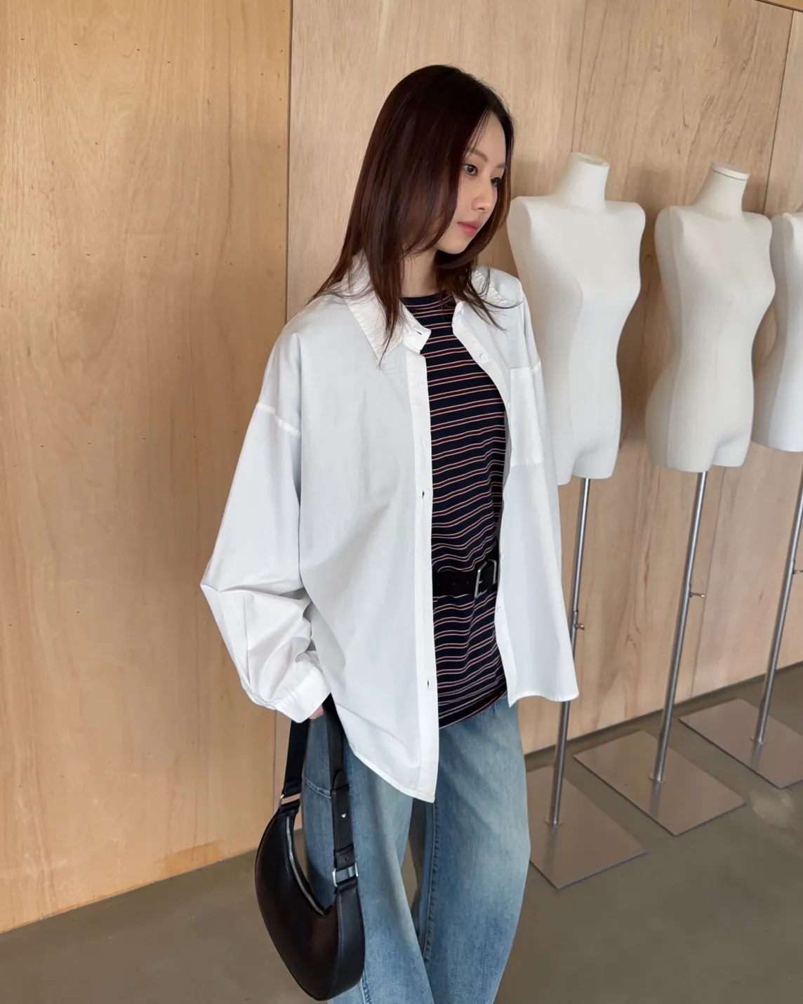 A0059(六色)小畫家同色扣寬版襯衫(白/杏/粉紅/淺藍/灰/深灰)
