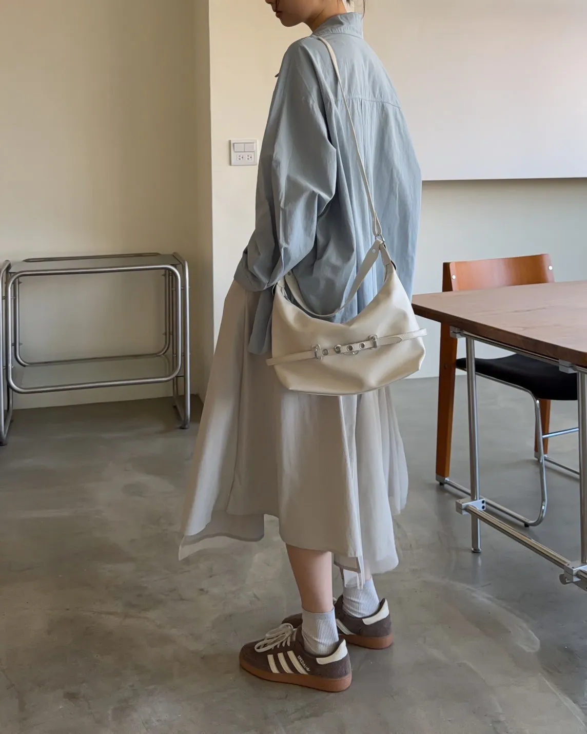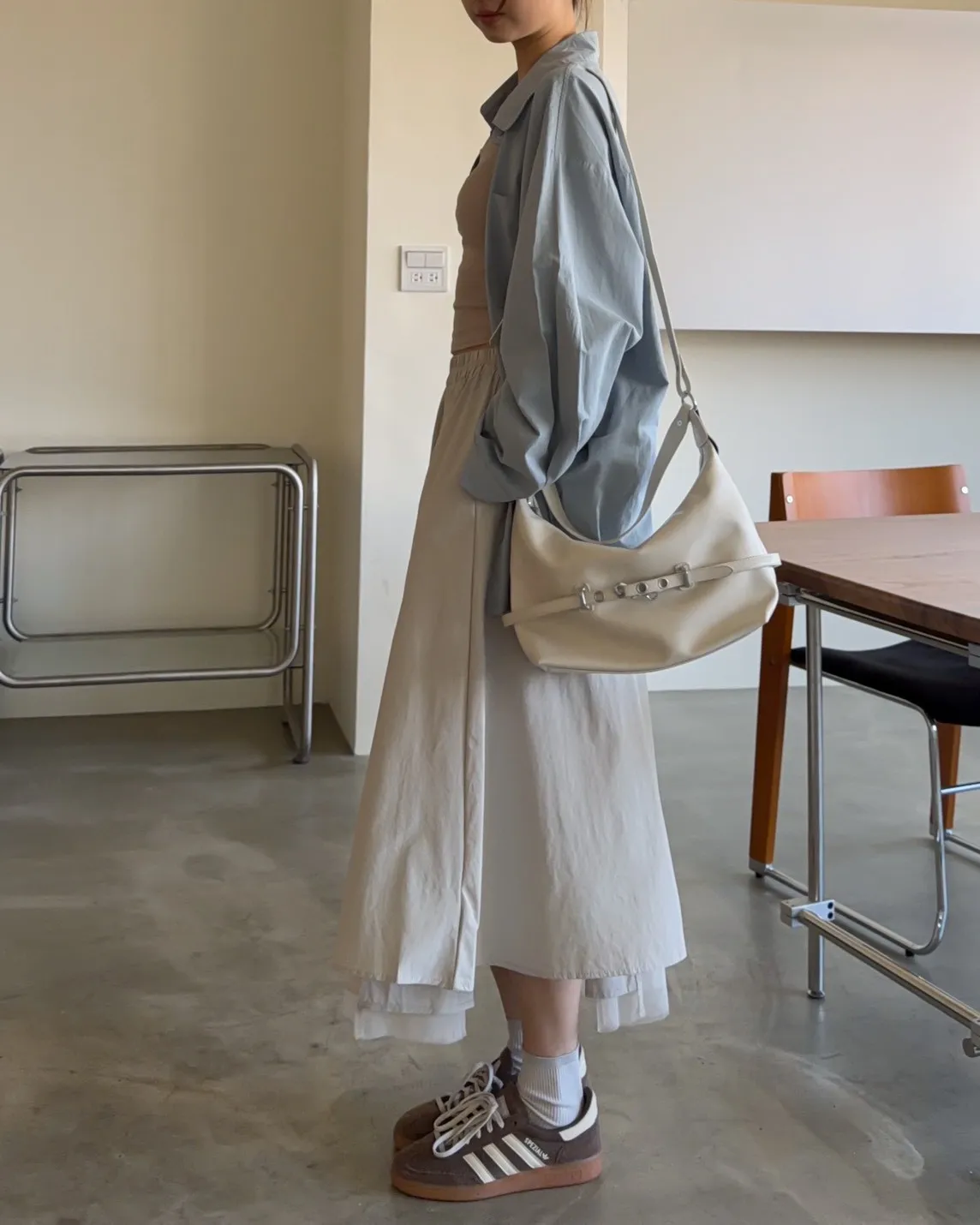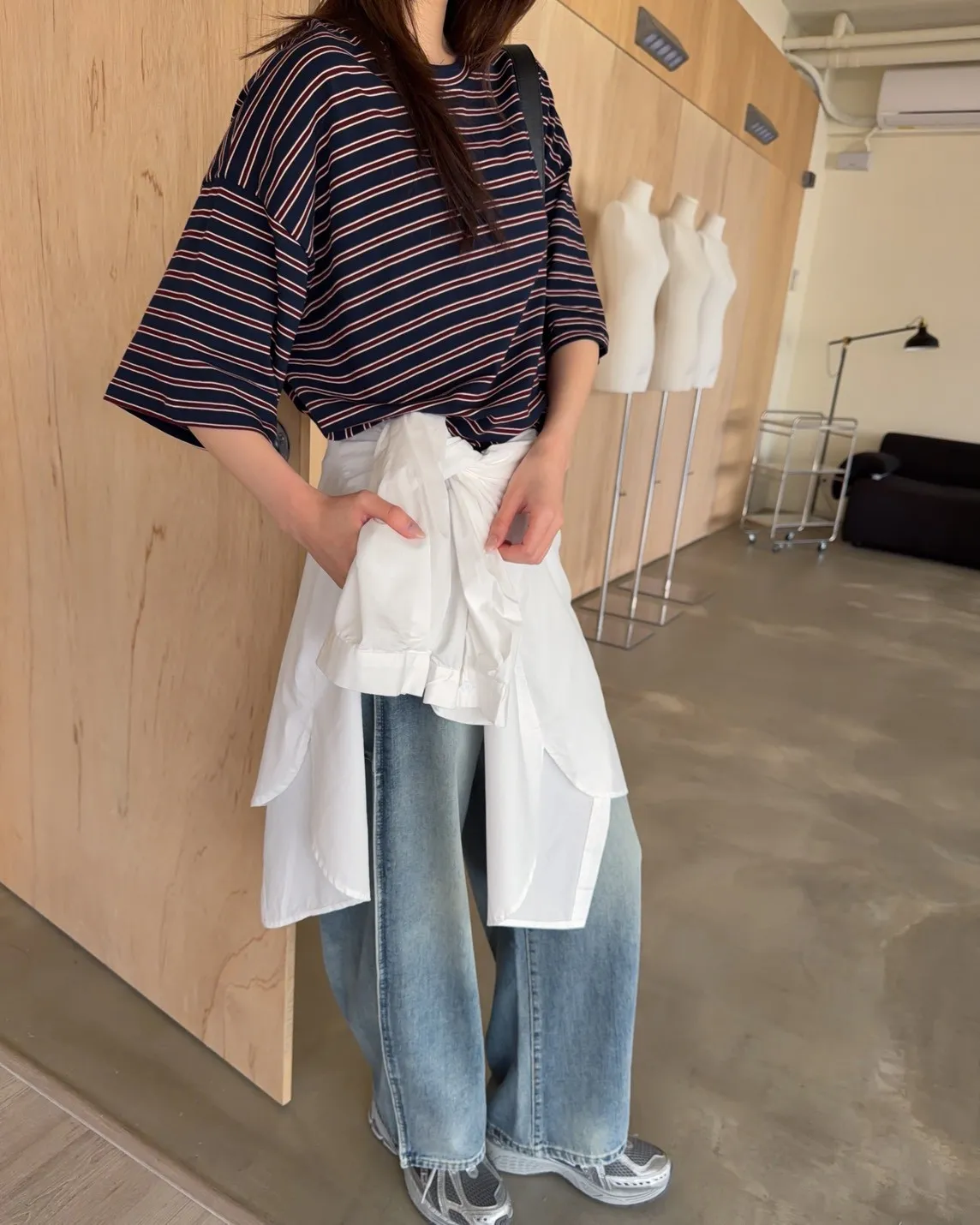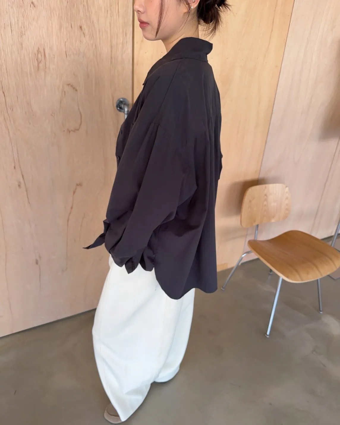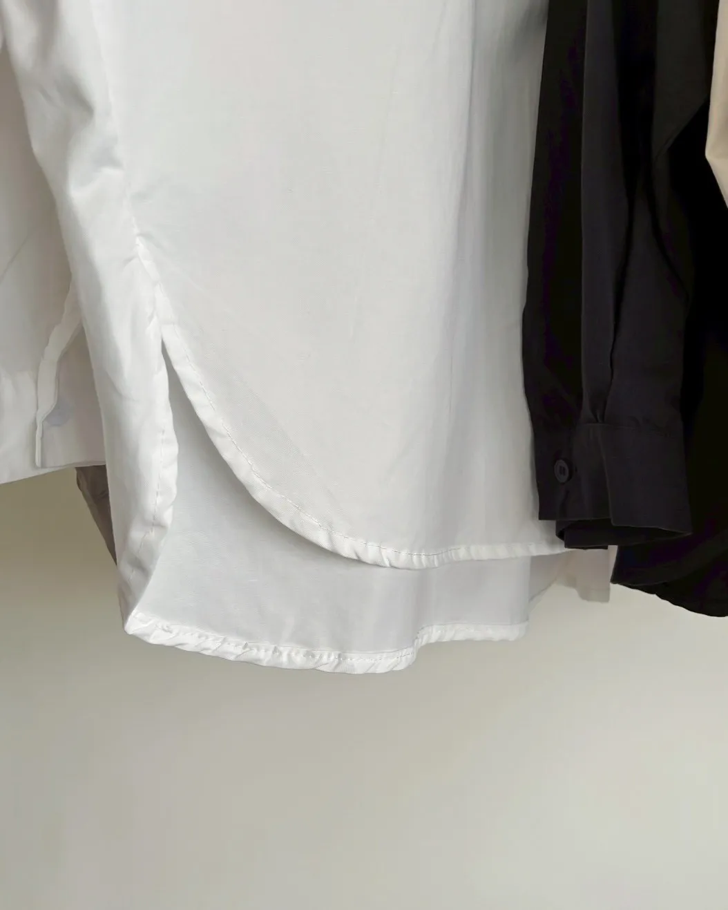 寬版 同色系鈕扣 前短後長 兩側開衩 霧感色調 後打折 前單側口袋