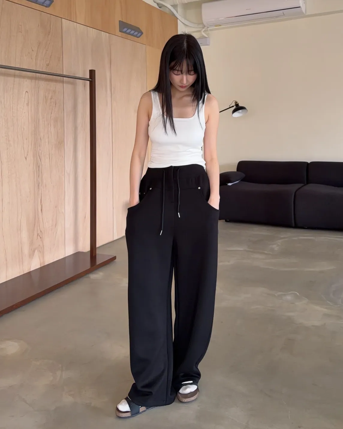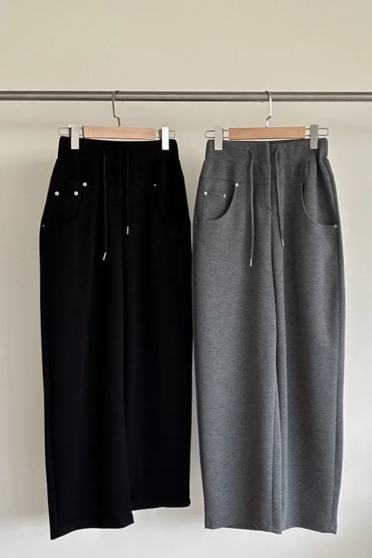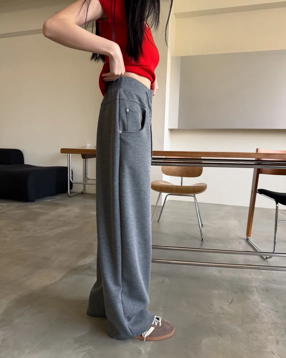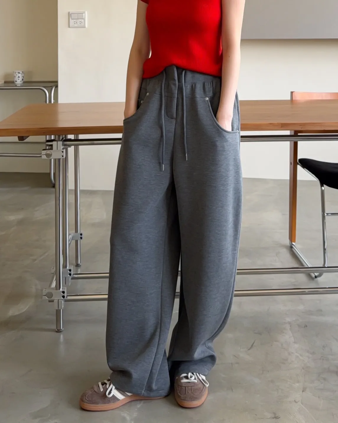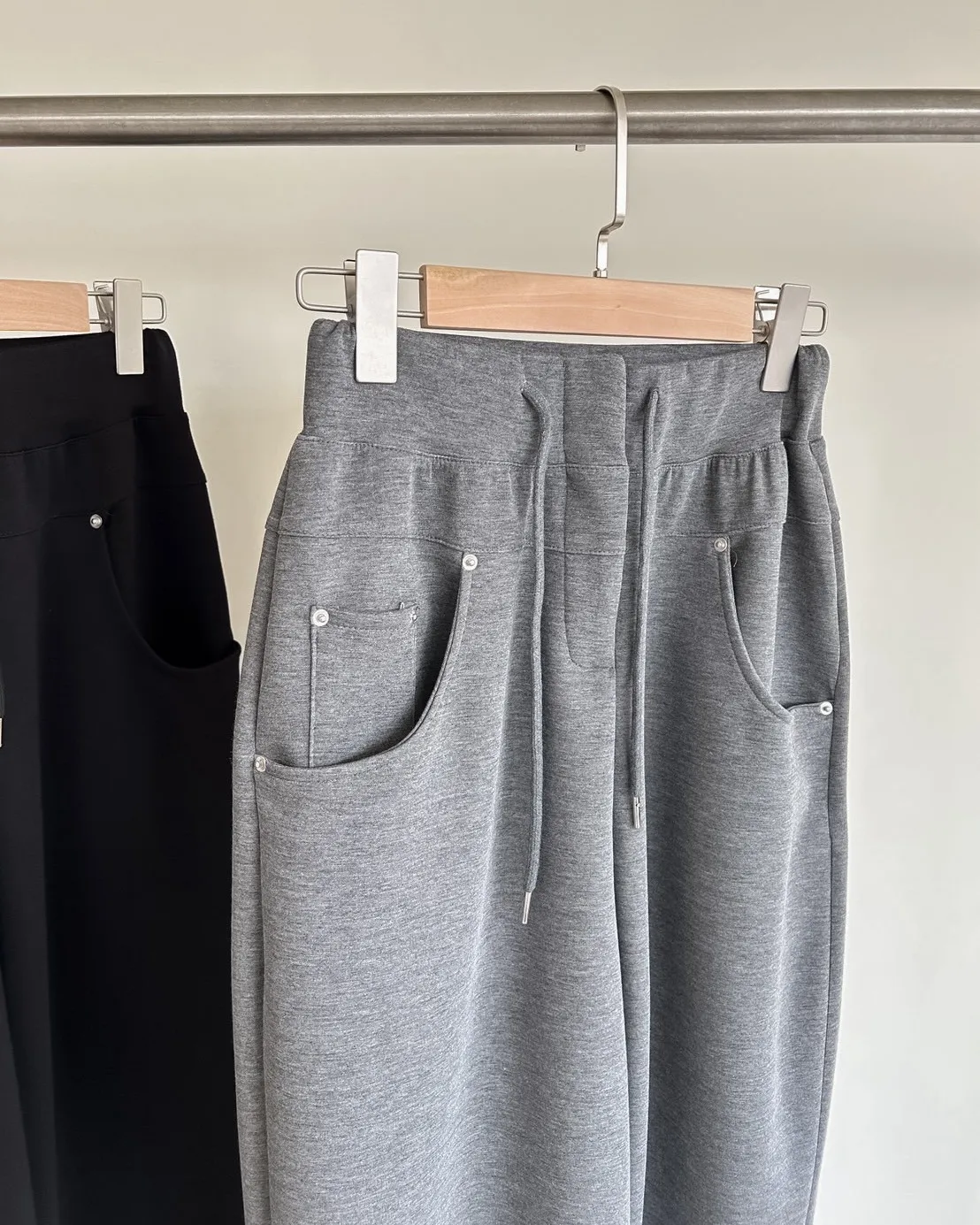 A0024小腰寬鬆緊太空棉褲(灰/黑)