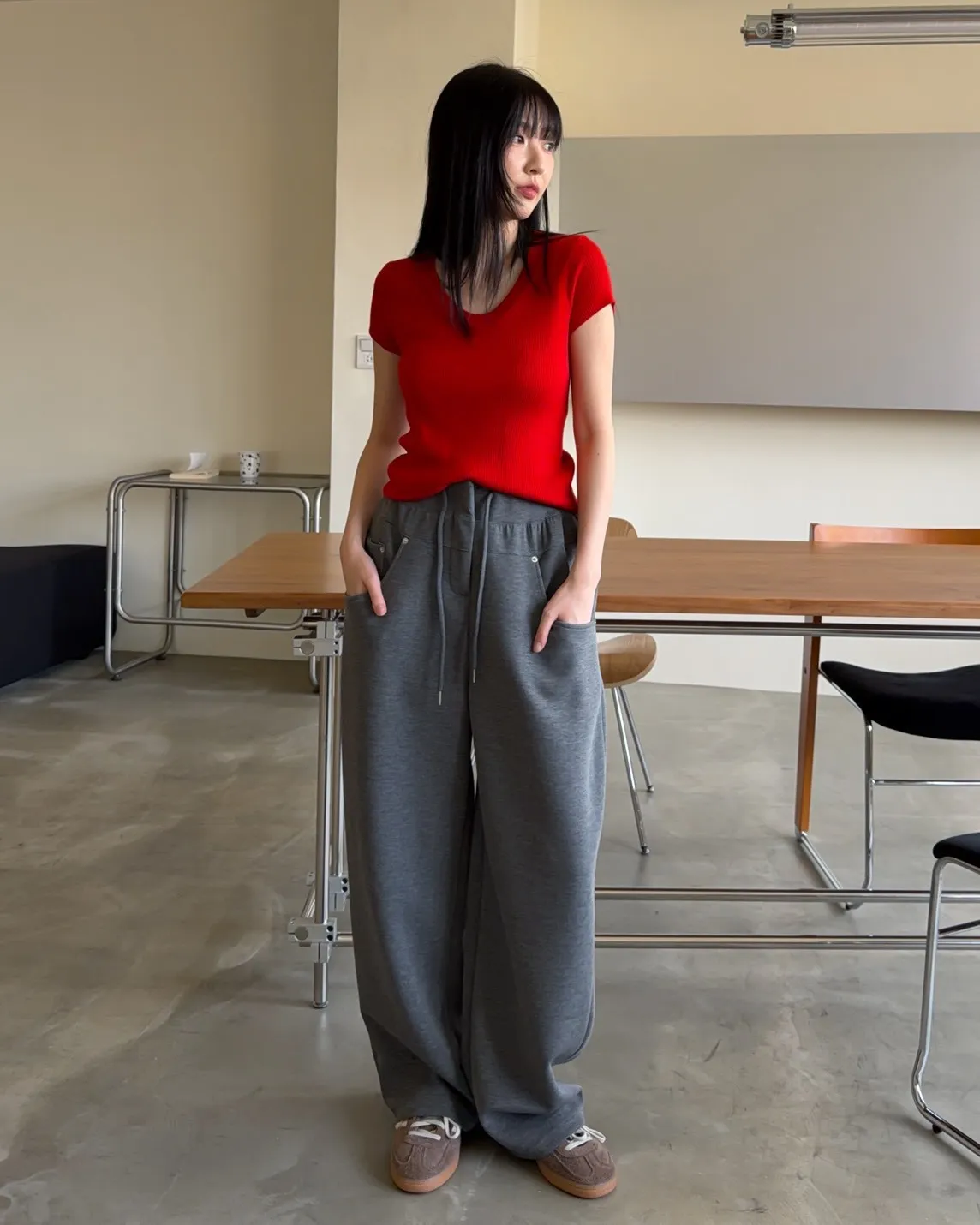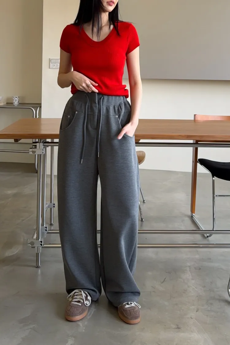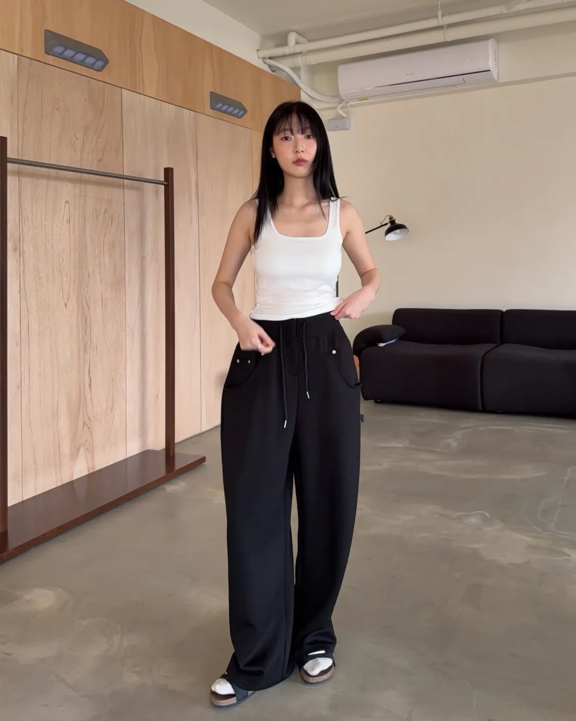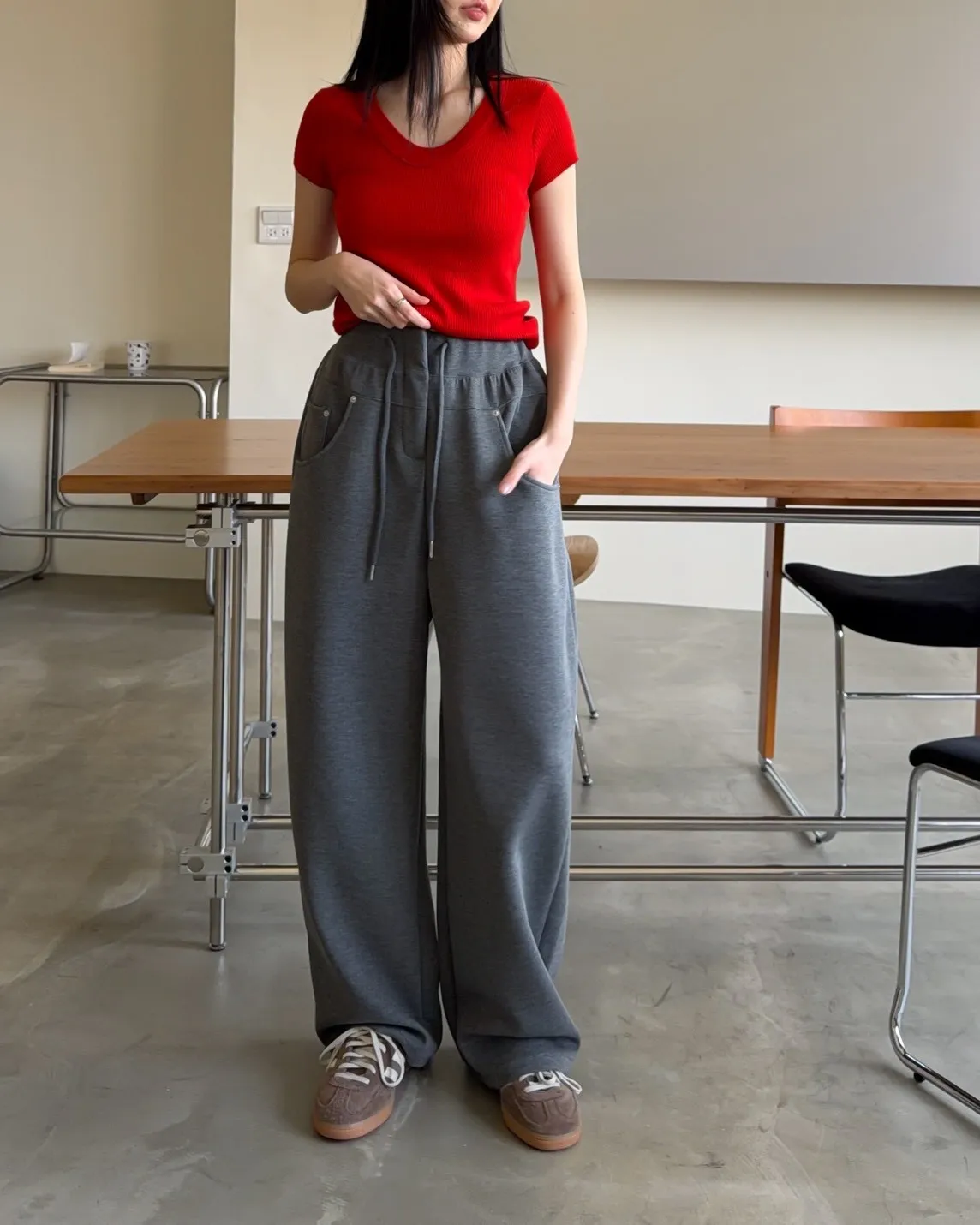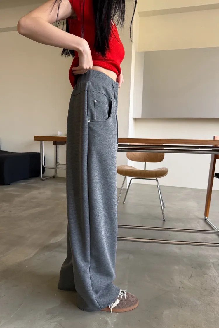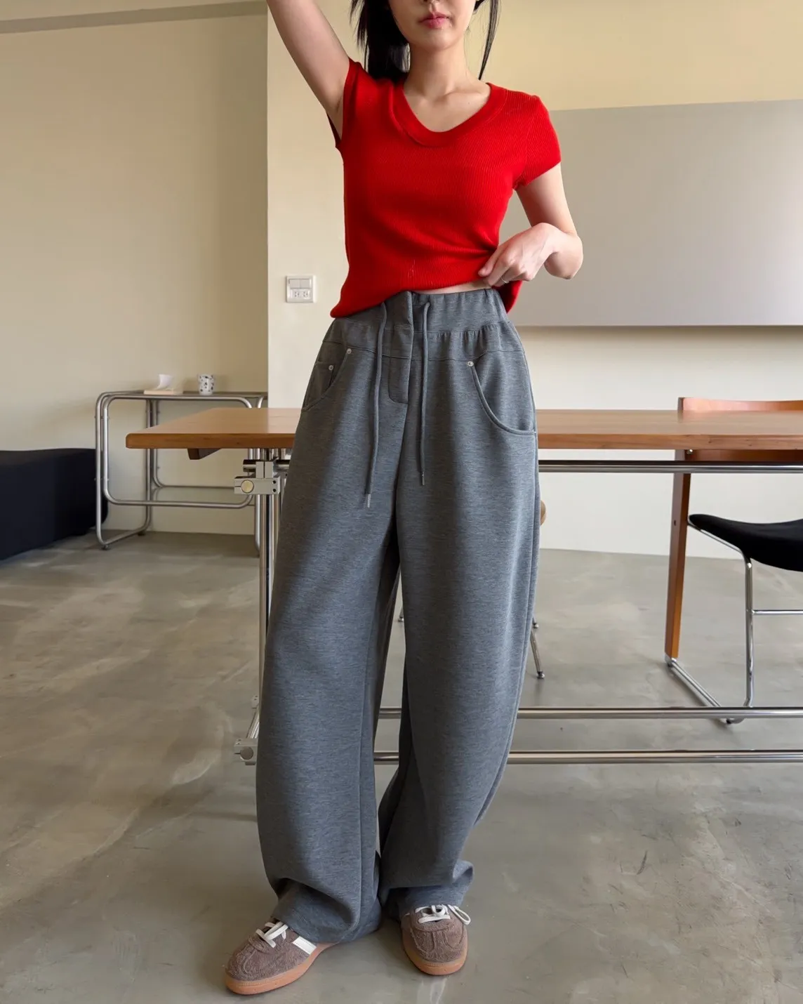 A0024小腰寬鬆緊太空棉褲(灰/黑)
