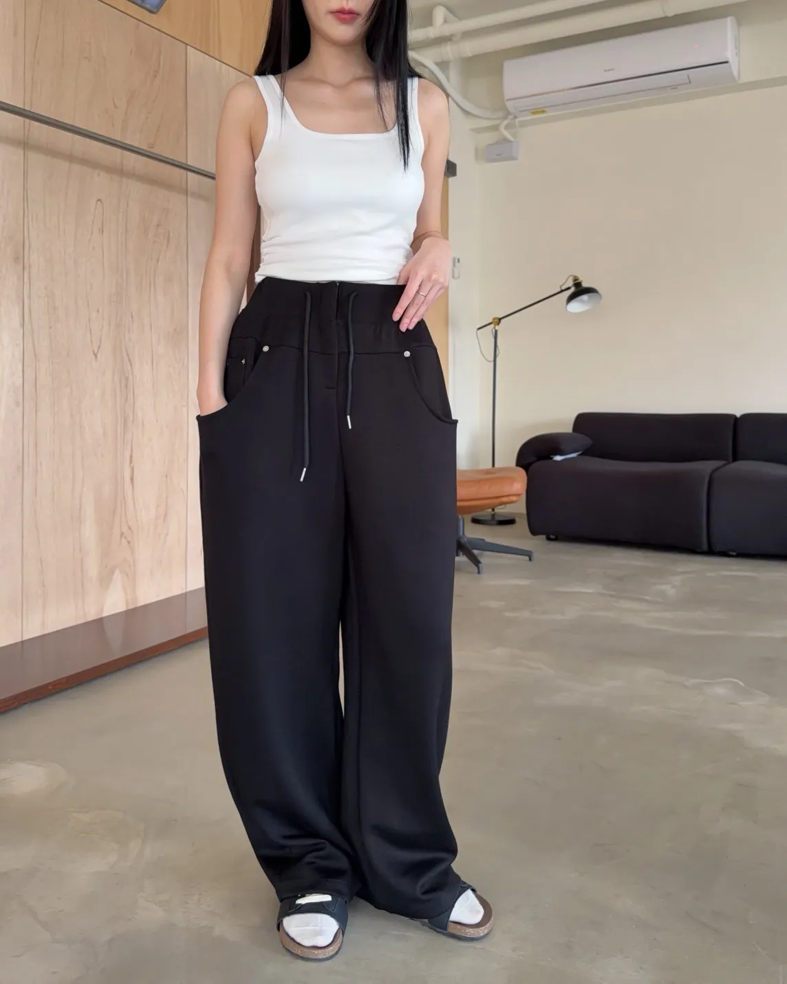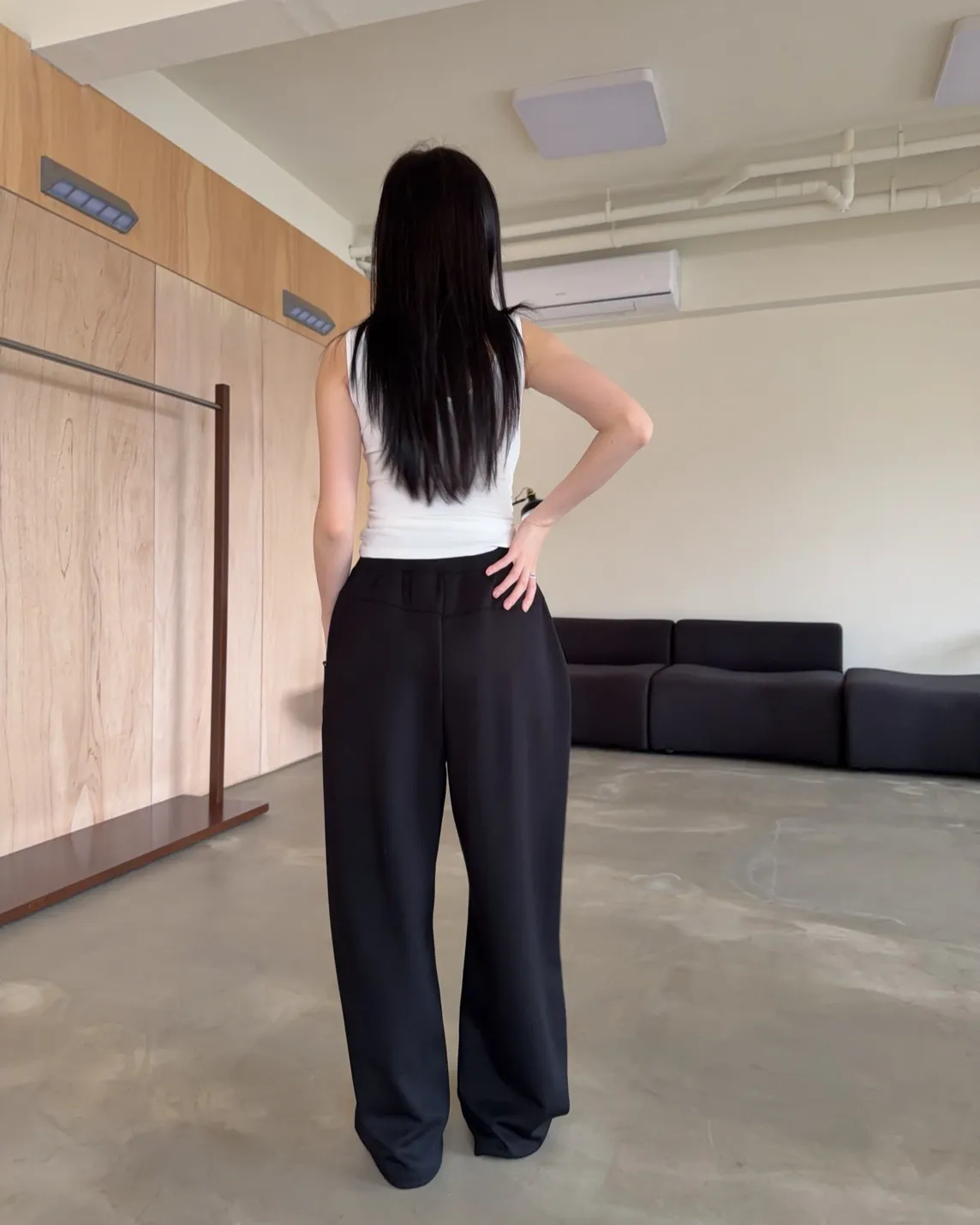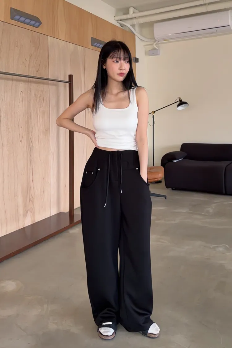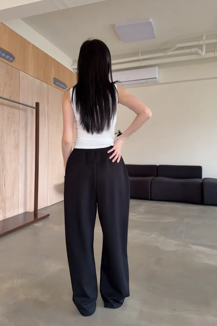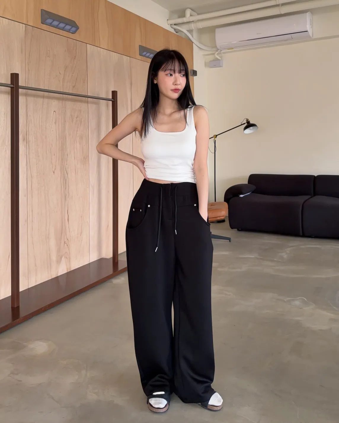 A0024小腰寬鬆緊太空棉褲(灰/黑)