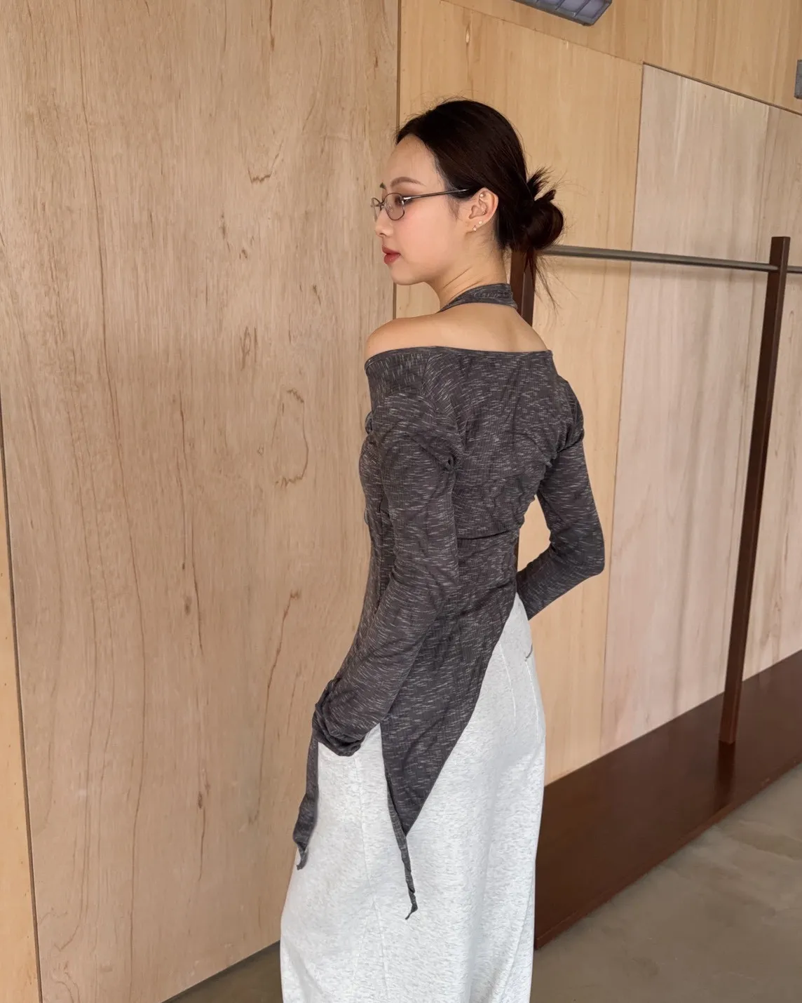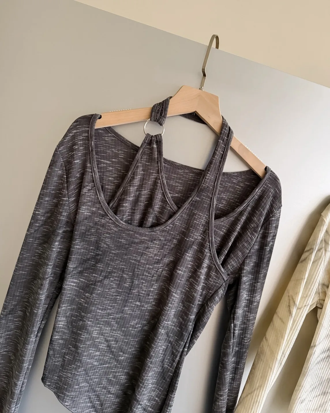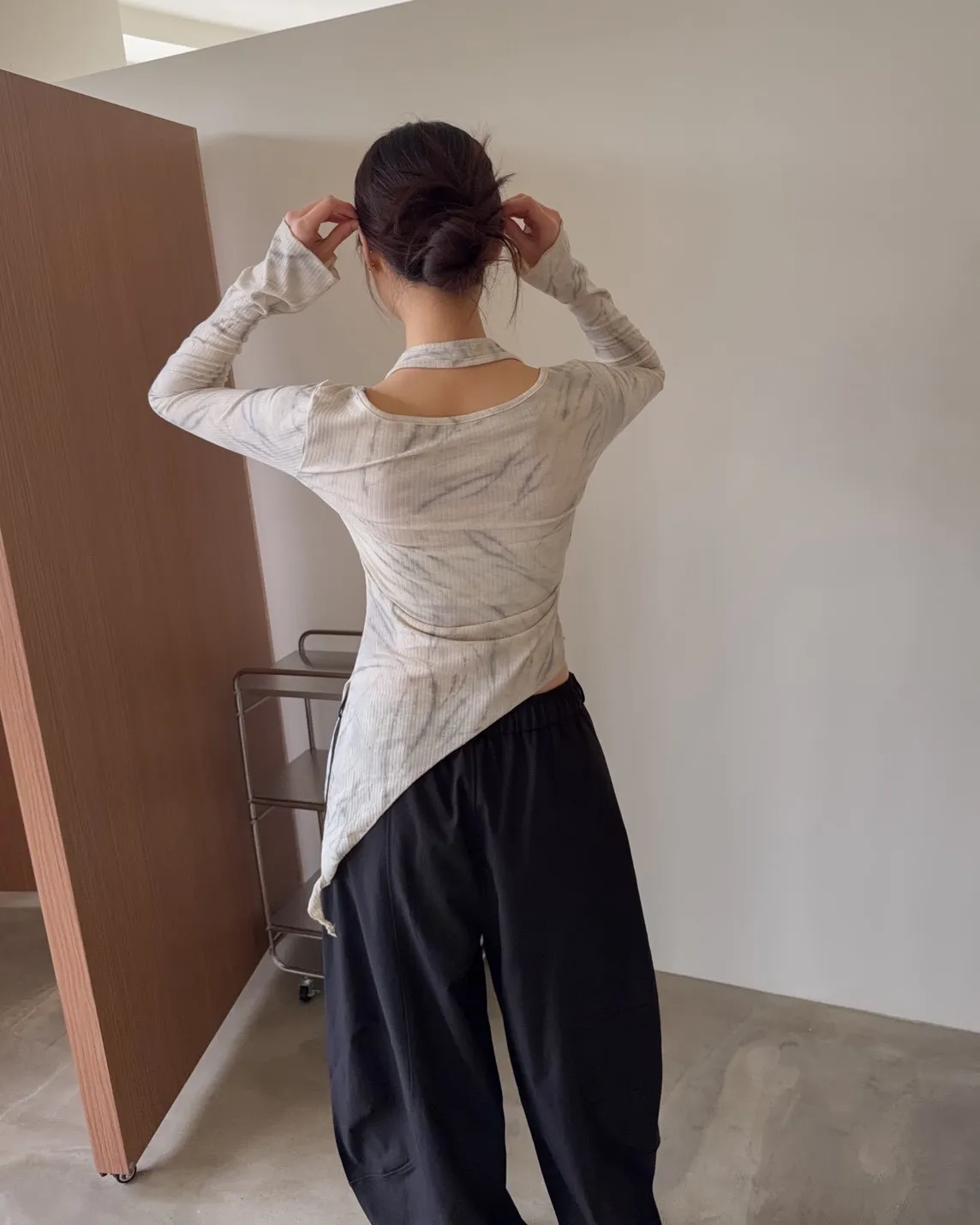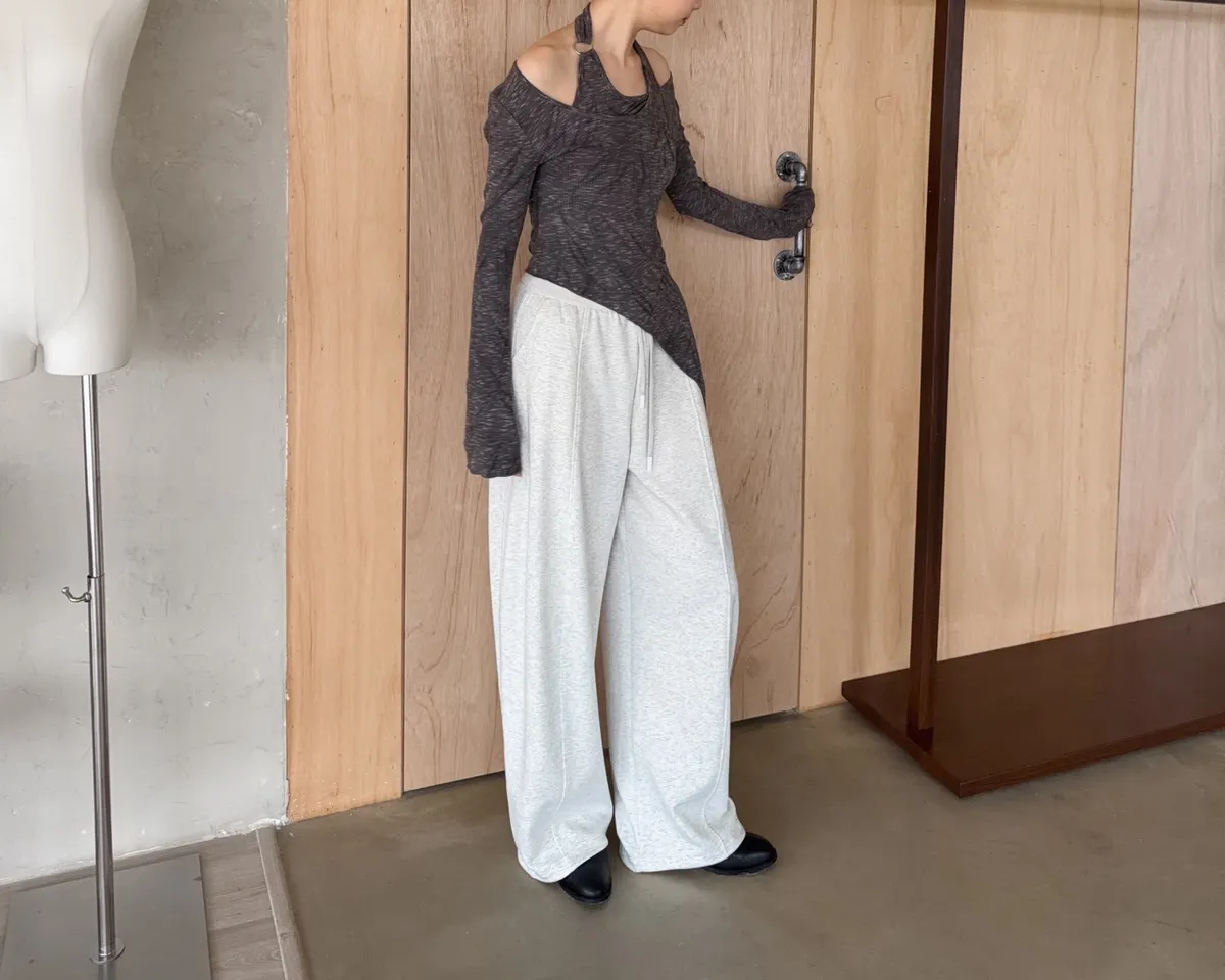 A0005不規則繞頸暈染上衣(杏/深灰)