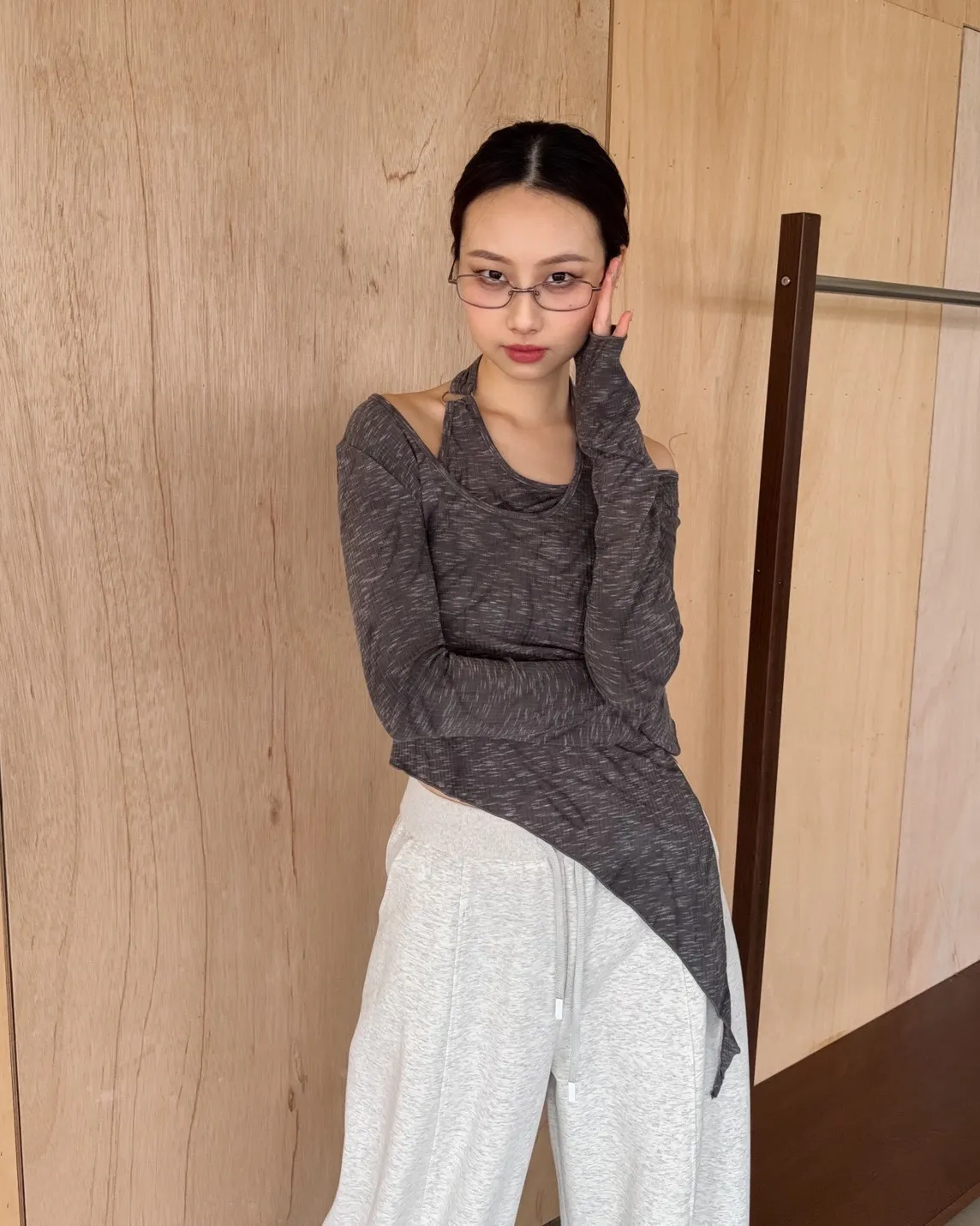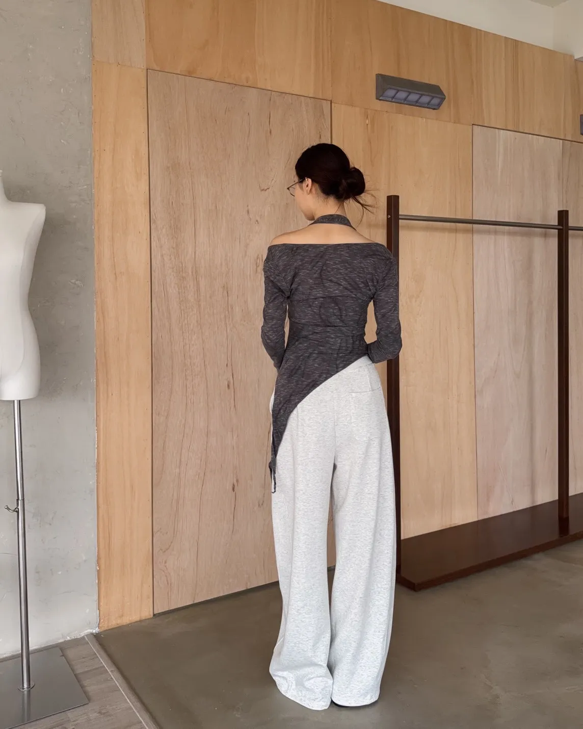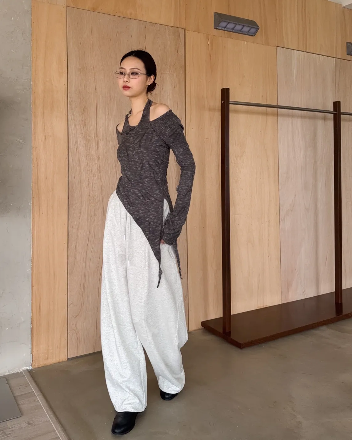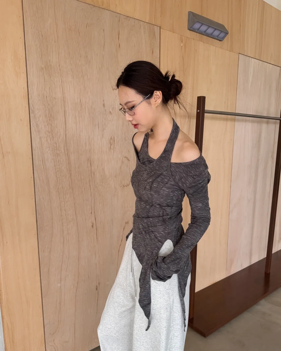 A0005不規則繞頸暈染上衣(杏/深灰)