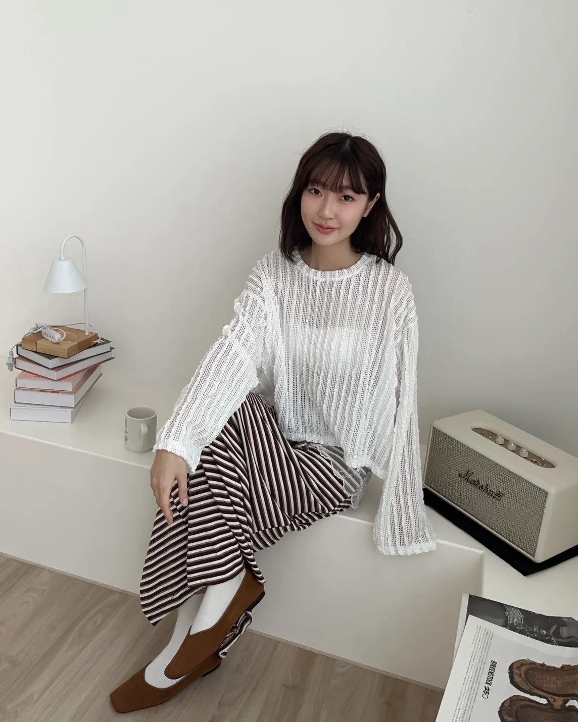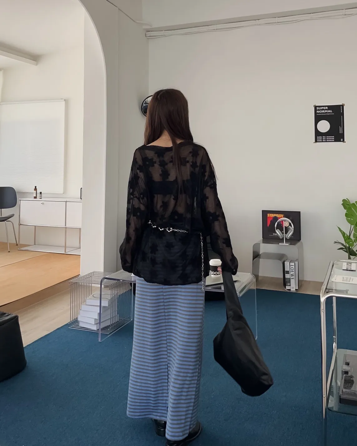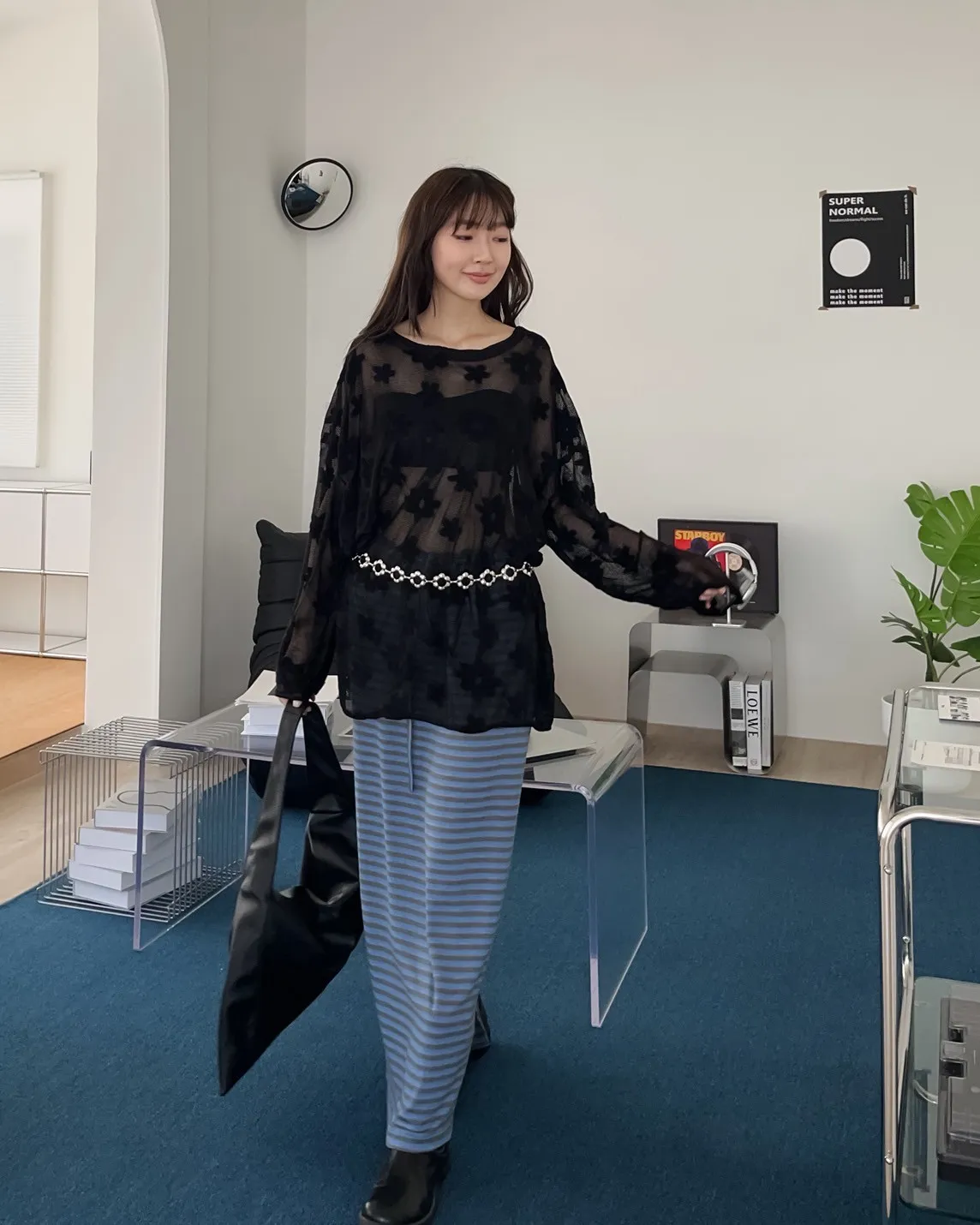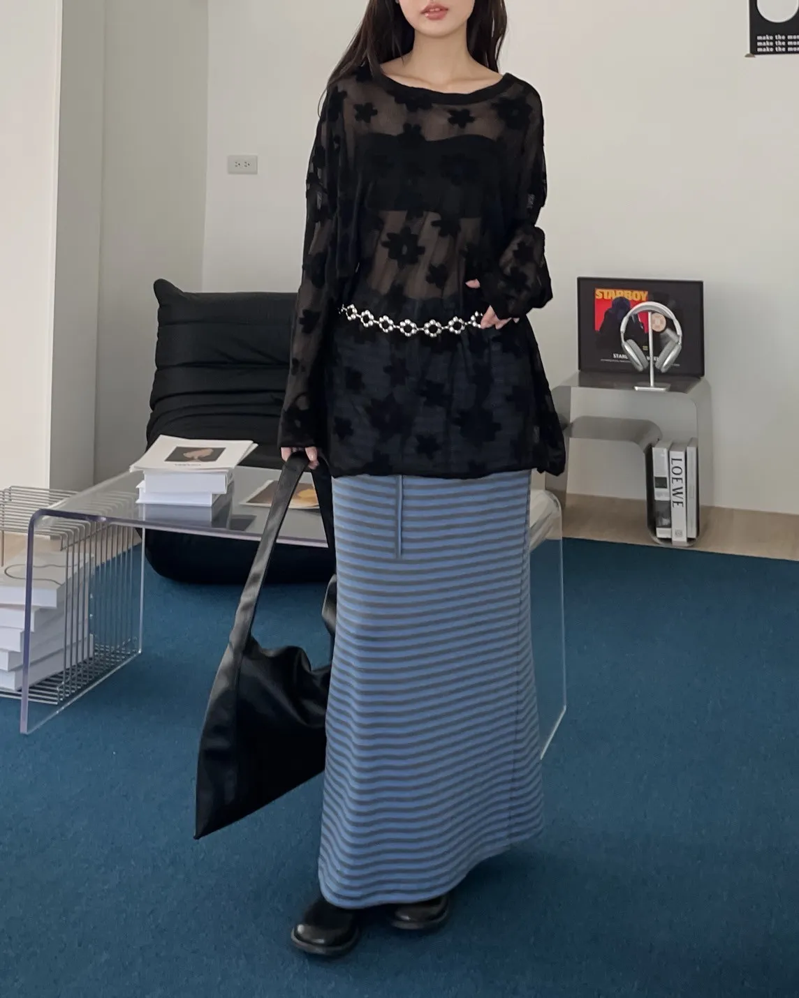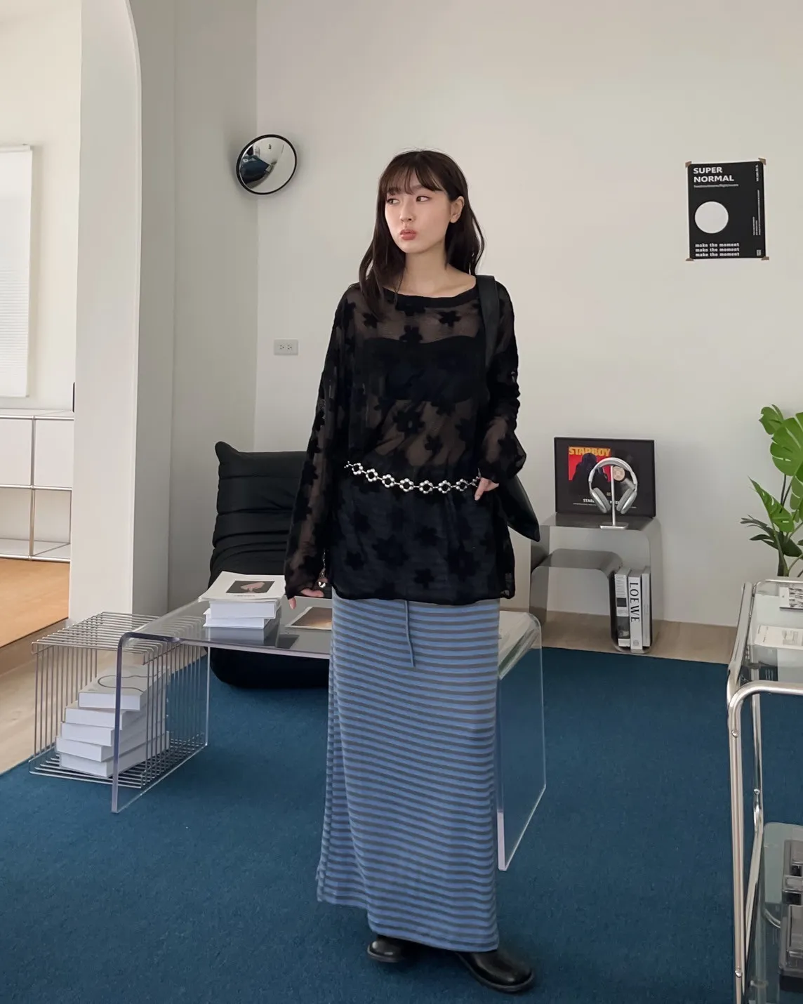抽繩全鬆緊 建議尺寸S-XL(會貼臀) 無口袋 花苞腰頭鬆緊 可以穿低腰 後開岔 配色橫條紋 棉料彈性很好