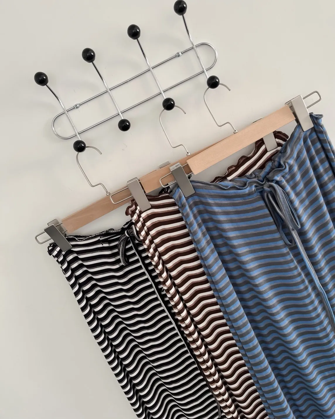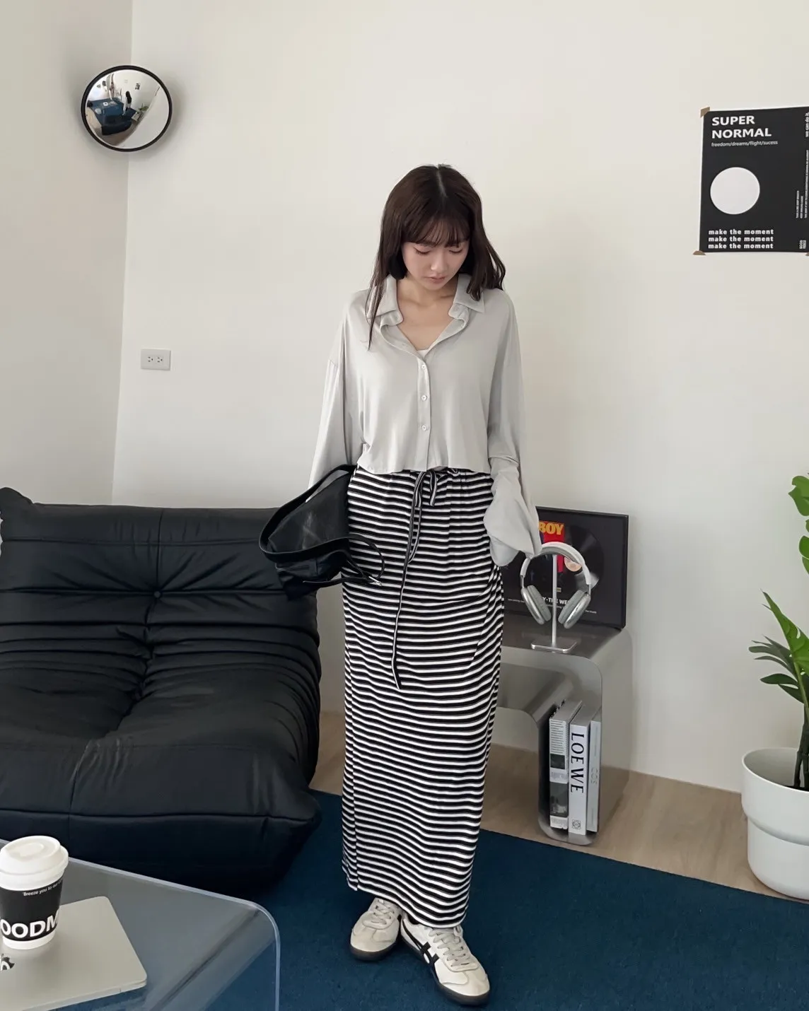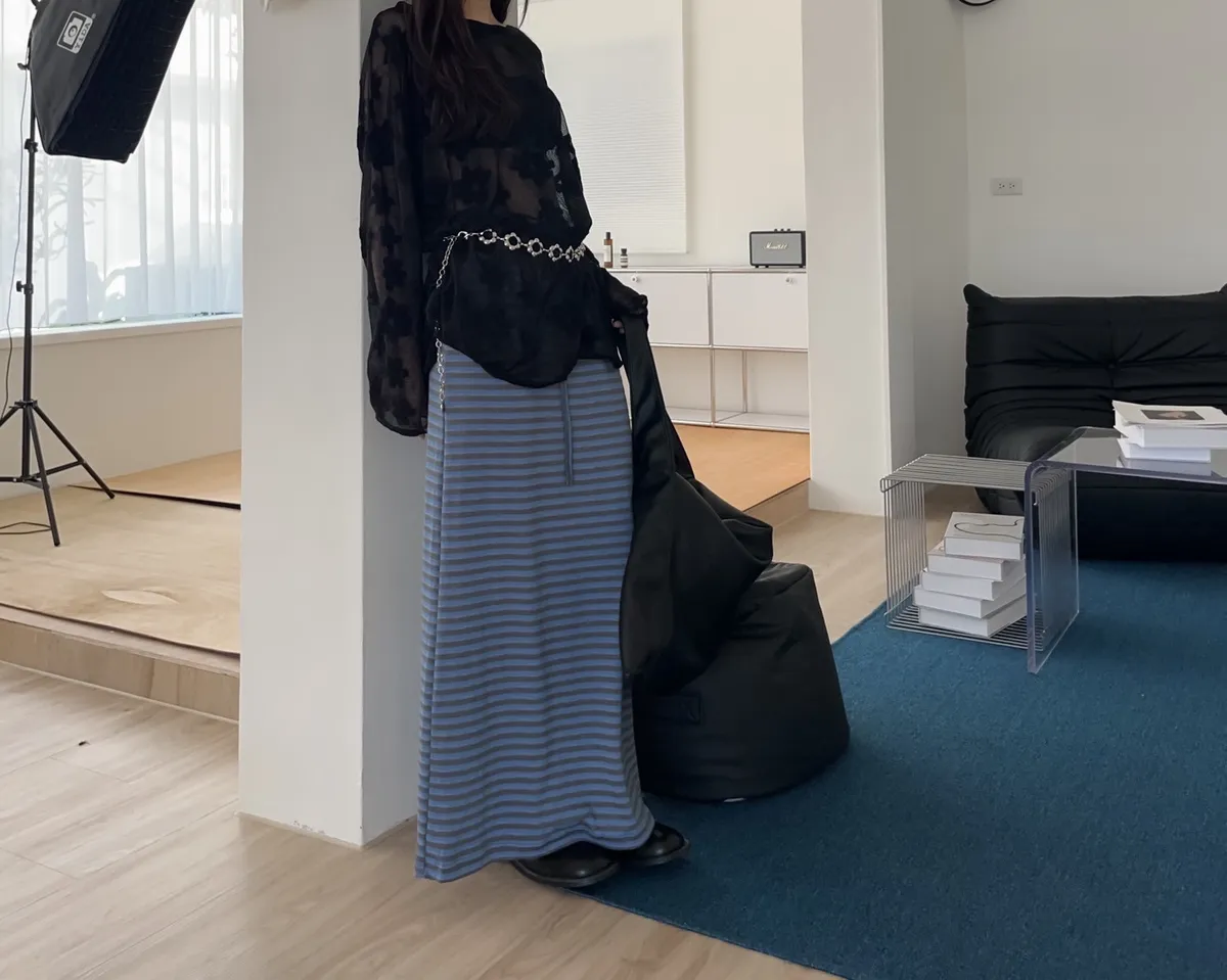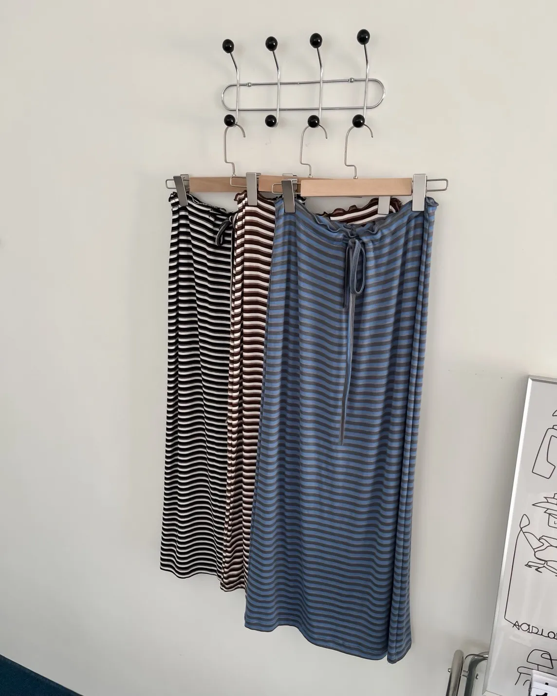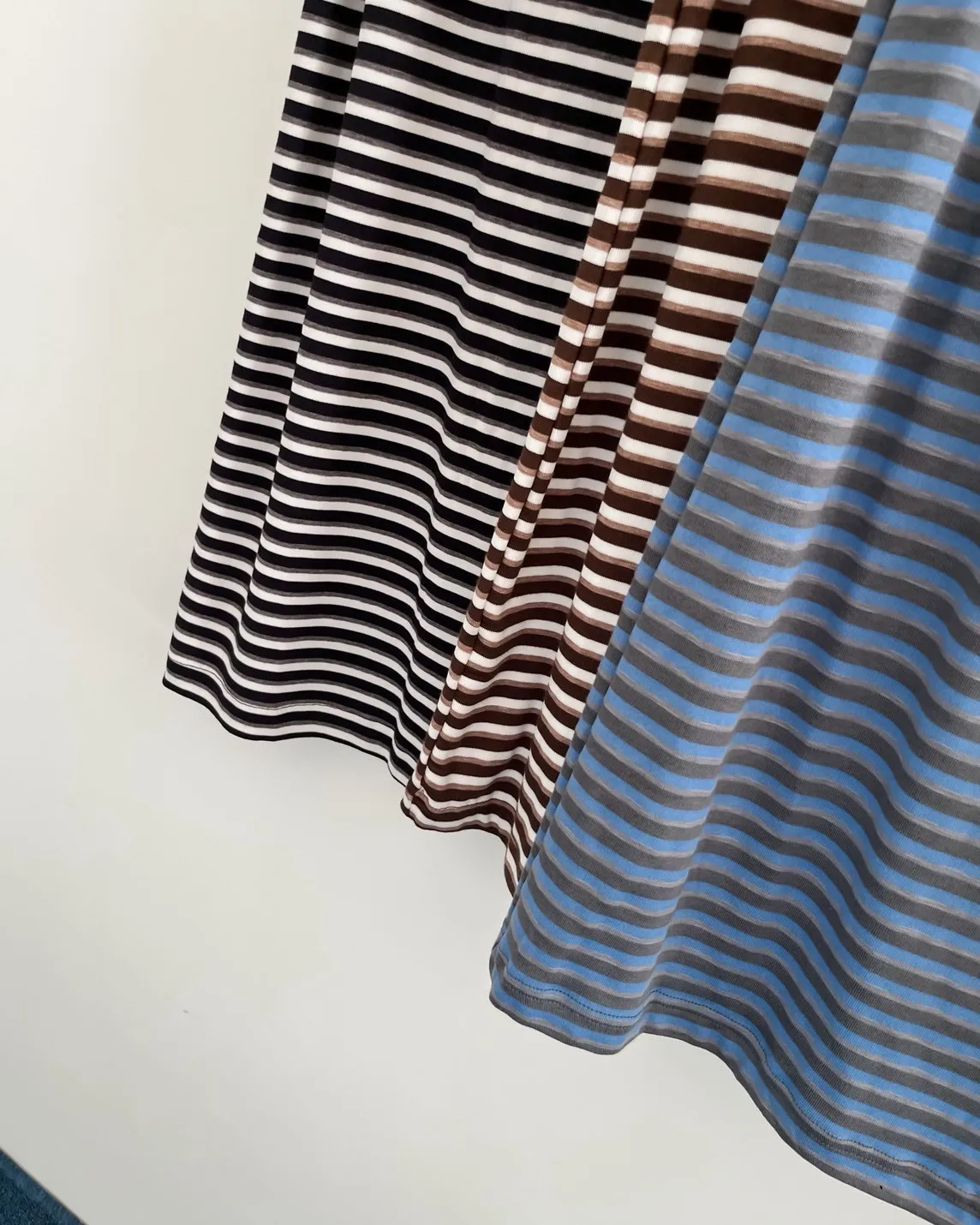U0028配色條紋腰抽繩棉裙(咖啡/藍/黑)(售完不補)