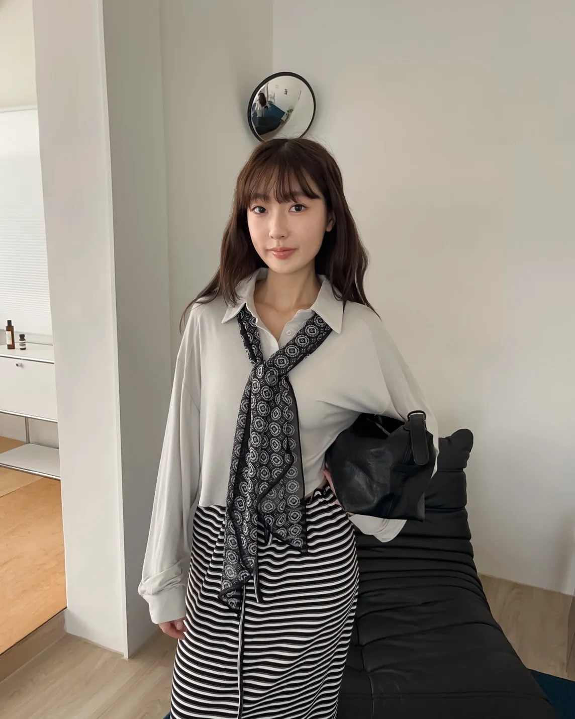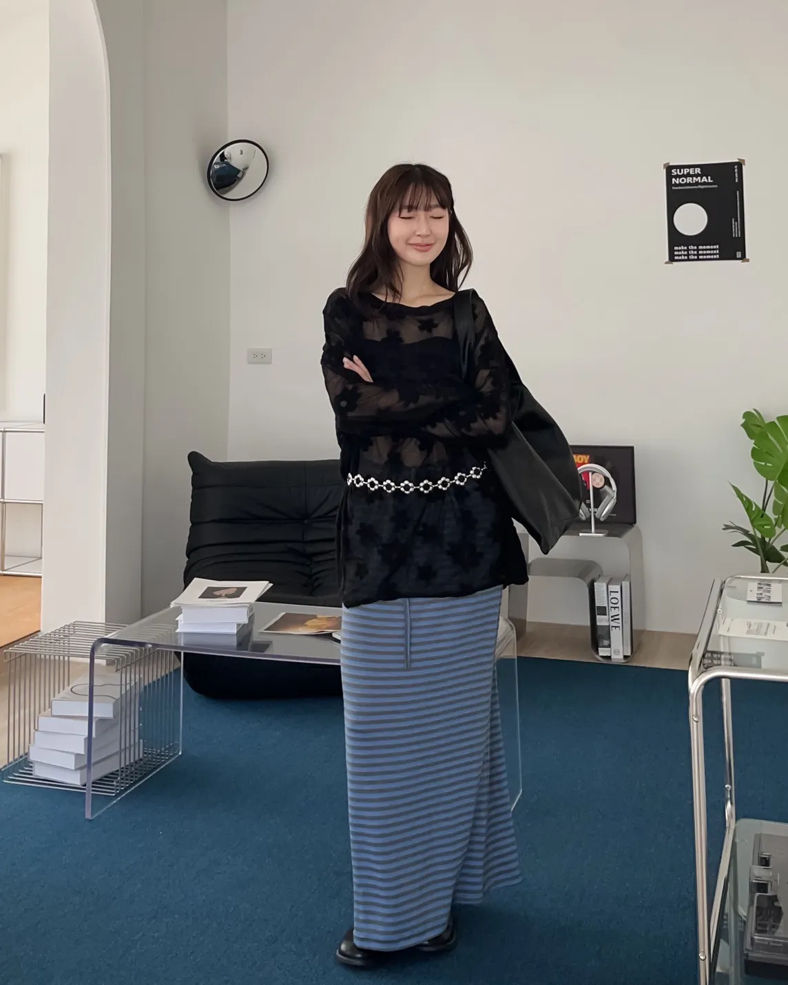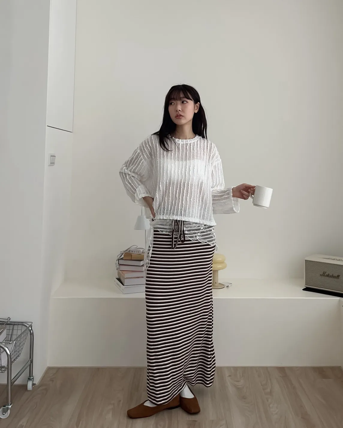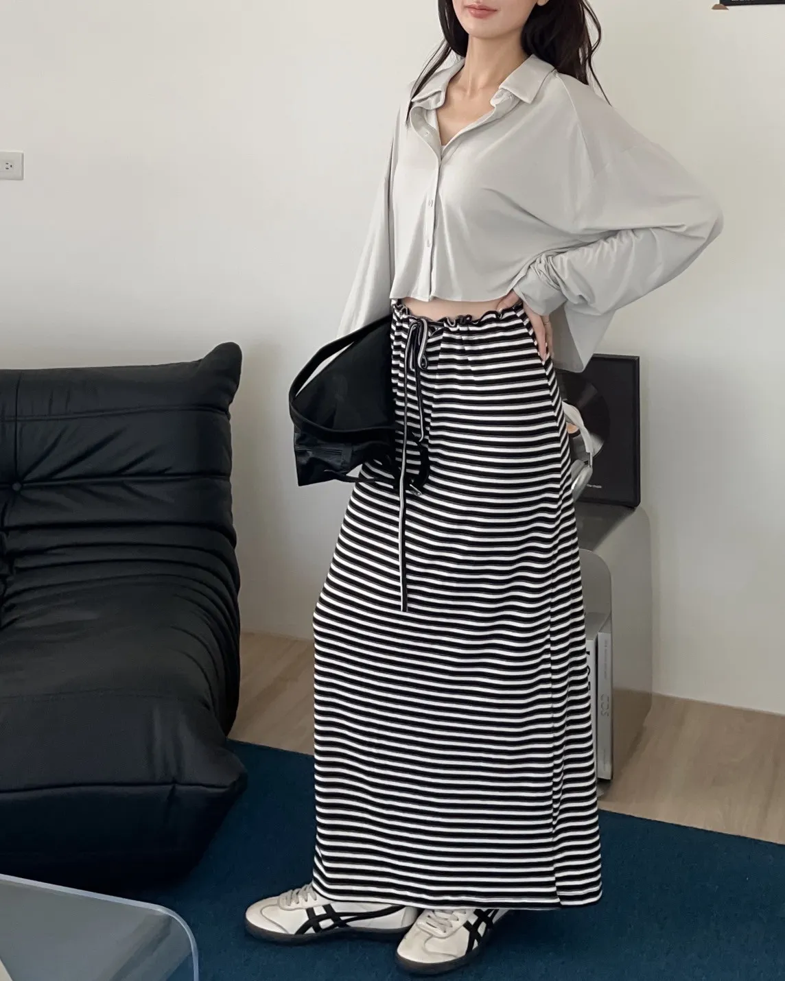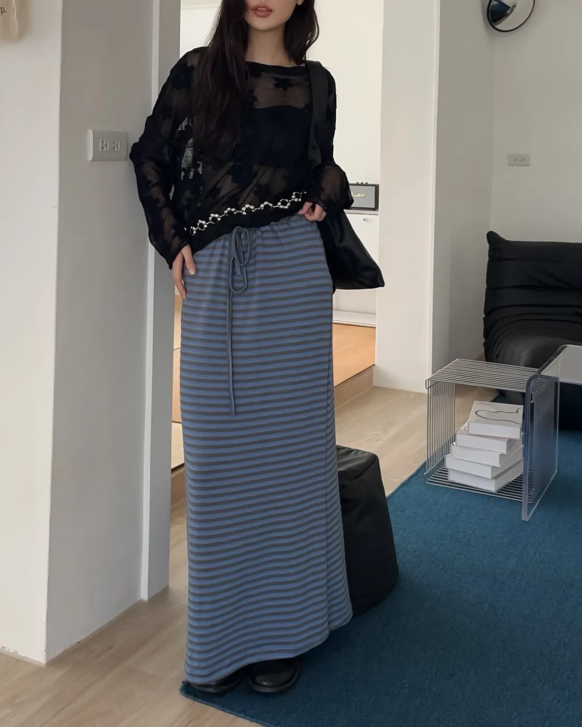 U0028配色條紋腰抽繩棉裙(咖啡/藍/黑)(售完不補)