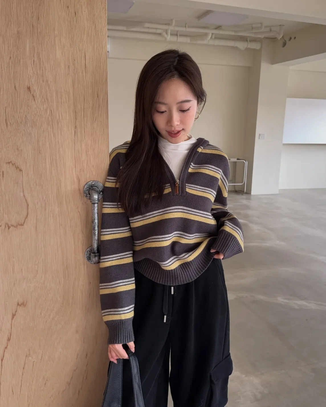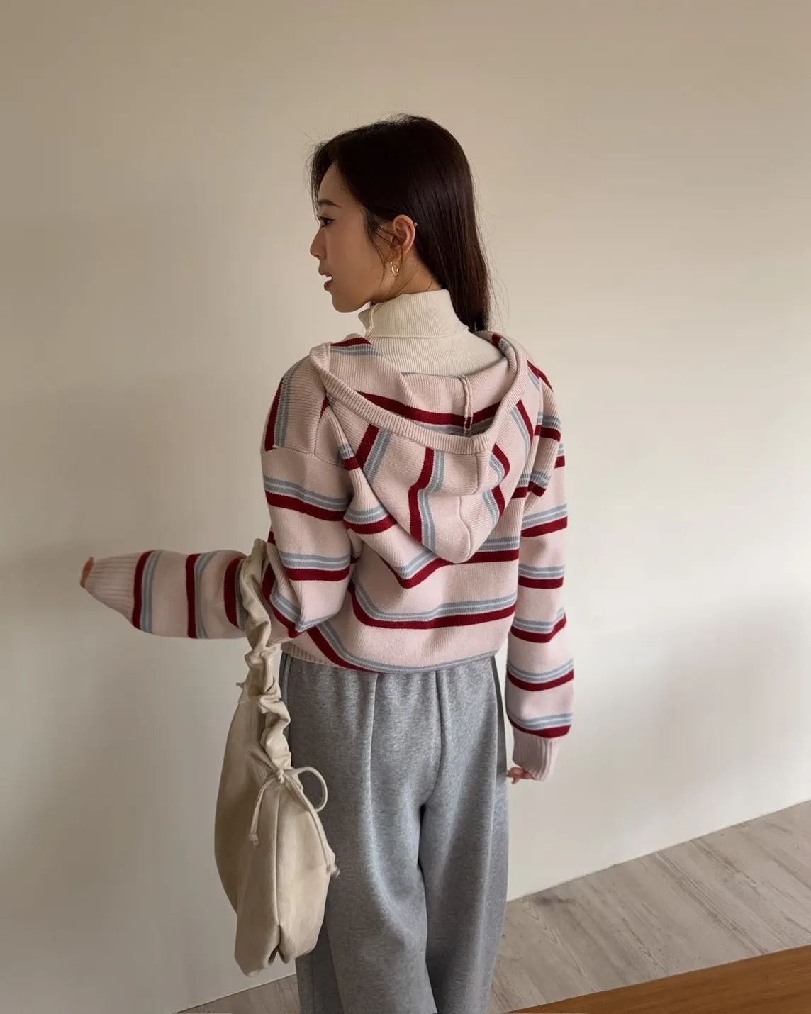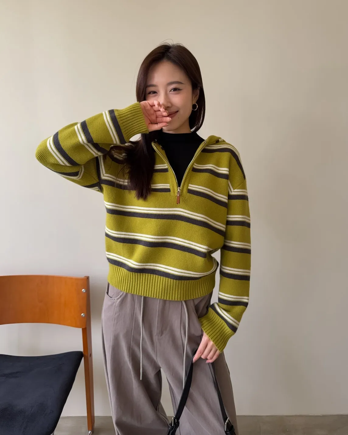 X0042果味夾心皮革拉鍊連帽毛衣(綠/粉紅/深灰/黑)