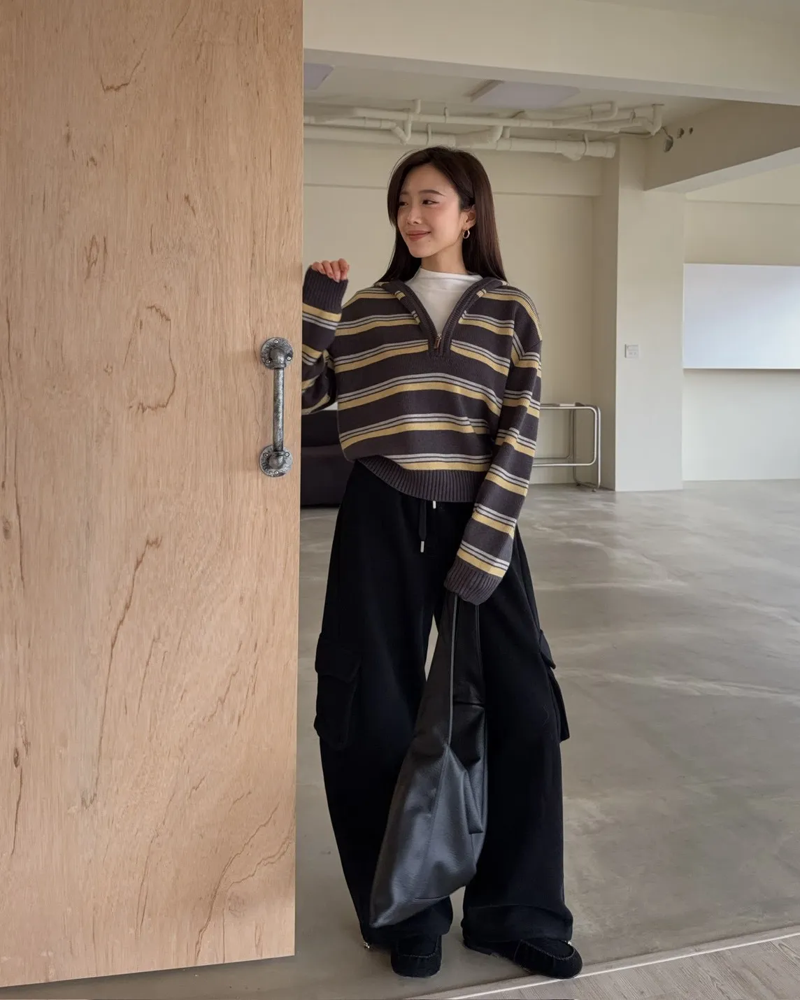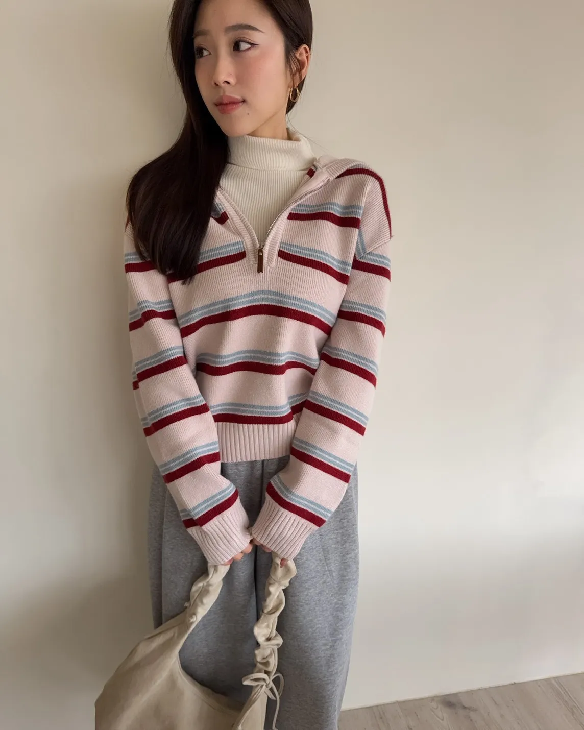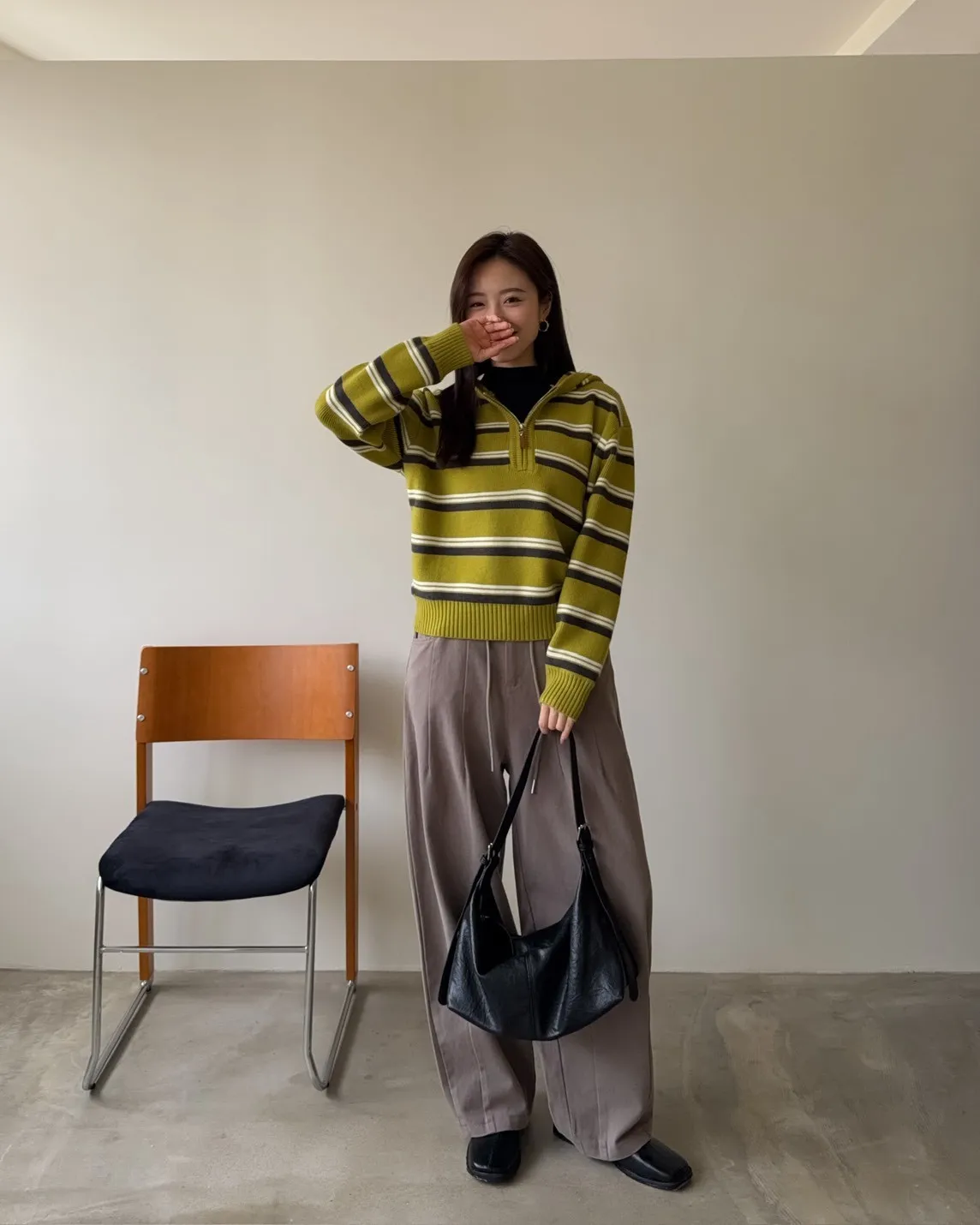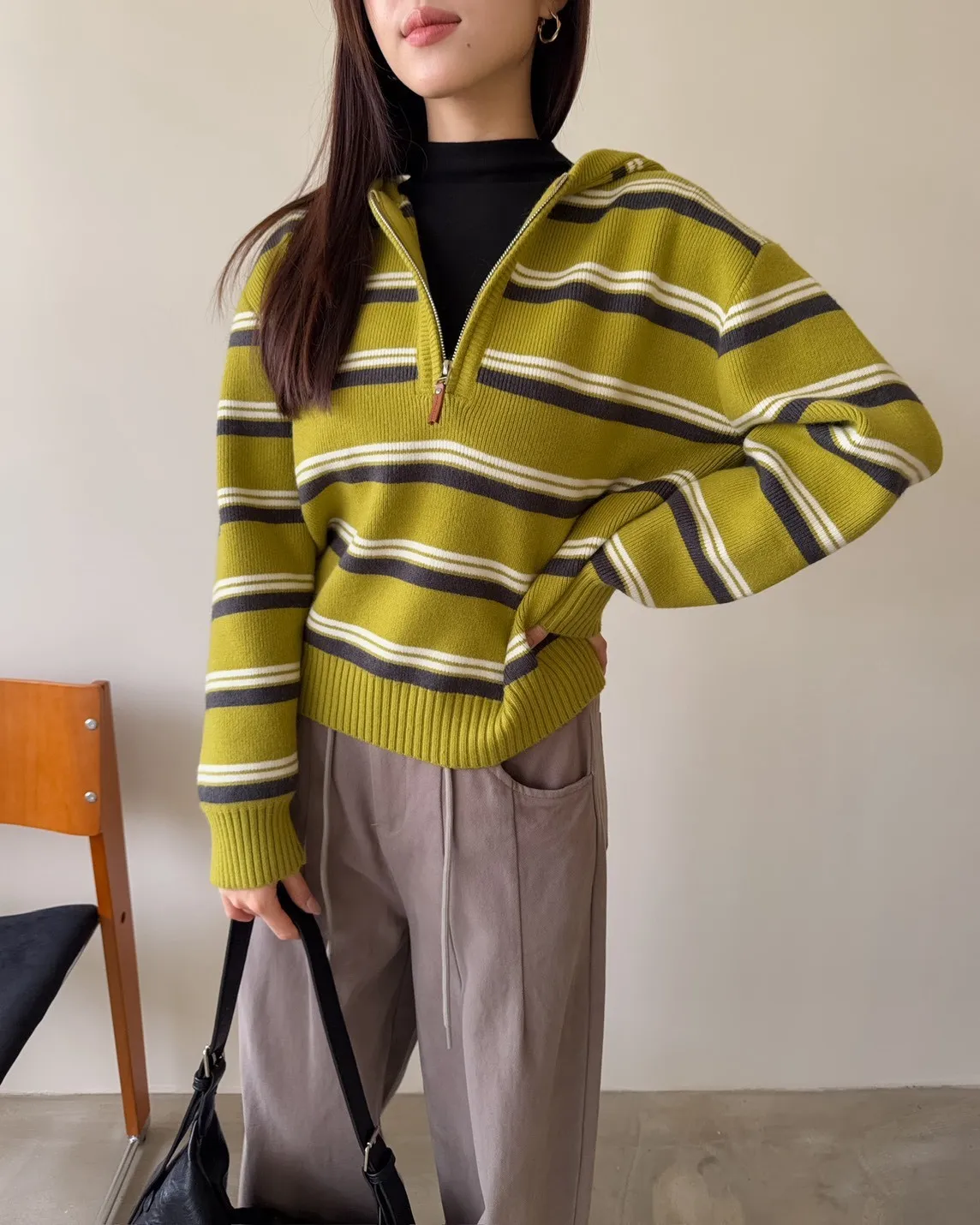 X0042果味夾心皮革拉鍊連帽毛衣(綠/粉紅/深灰/黑)