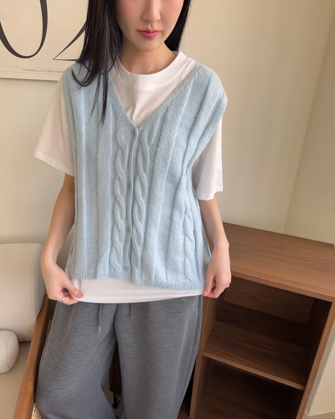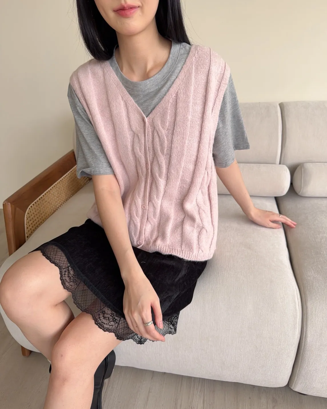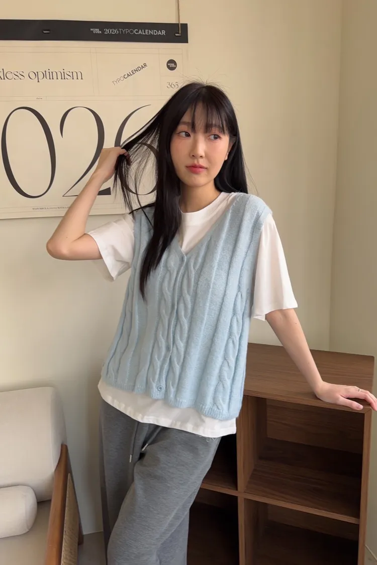 V領 排扣 麻花造型 顏色粉嫩可愛 同色系鈕扣