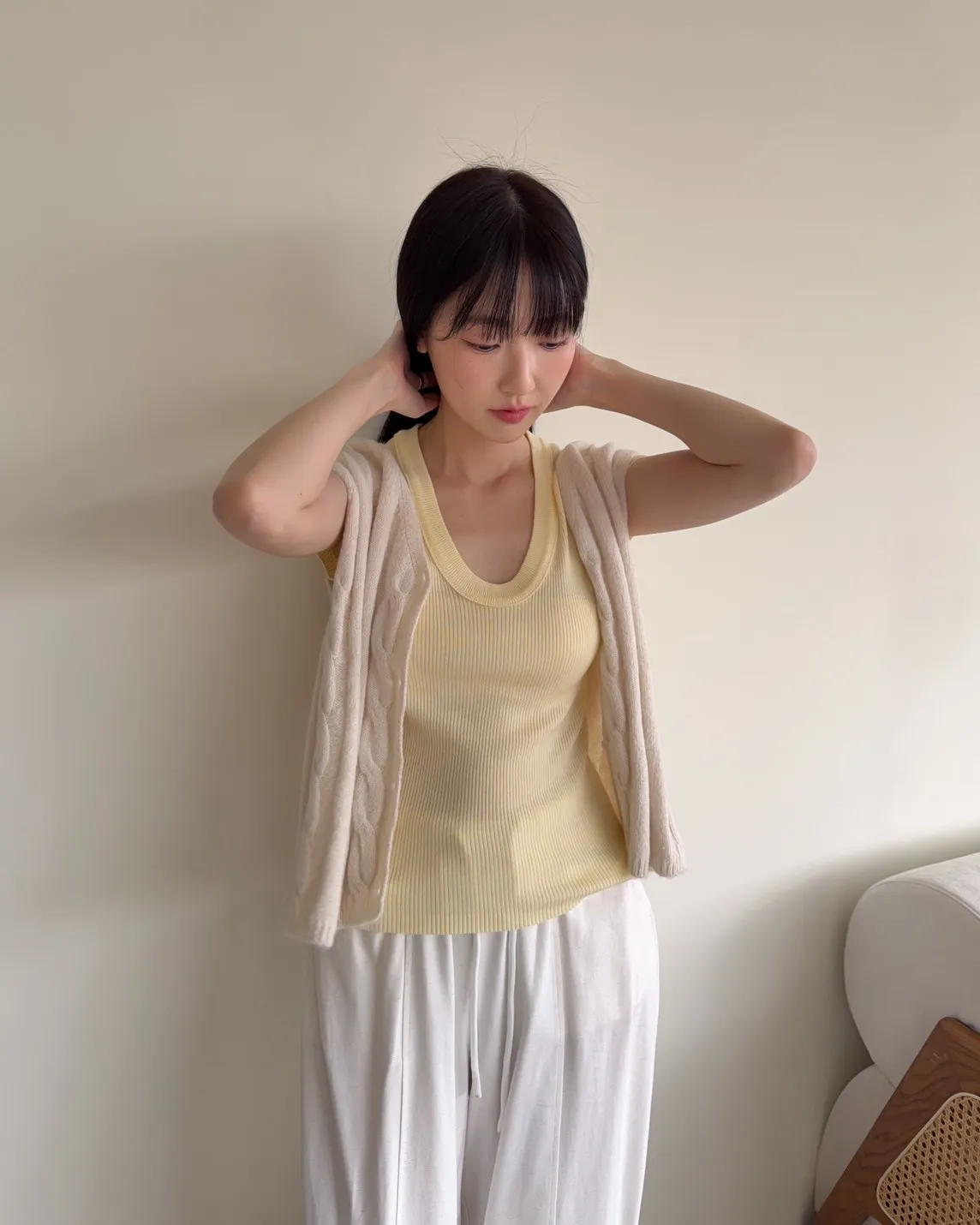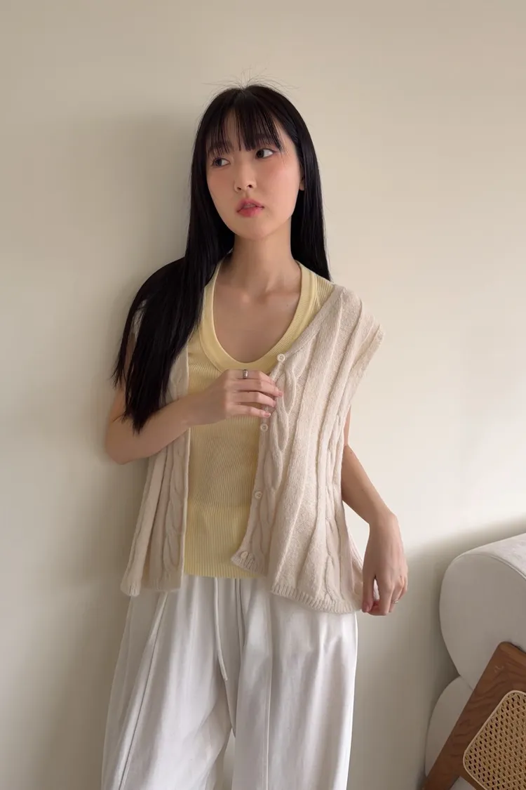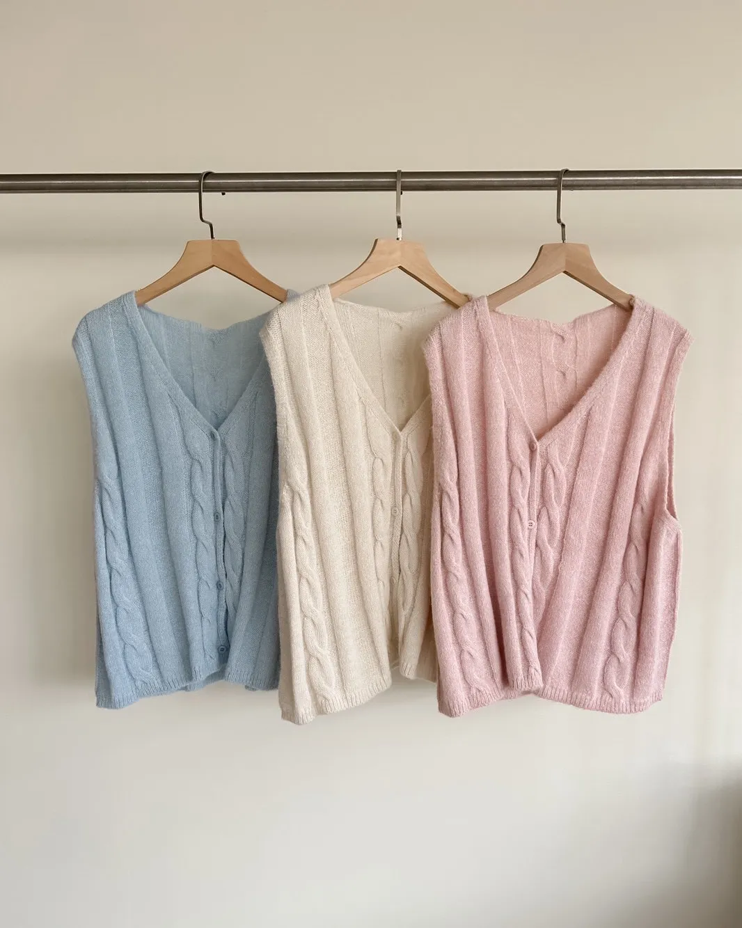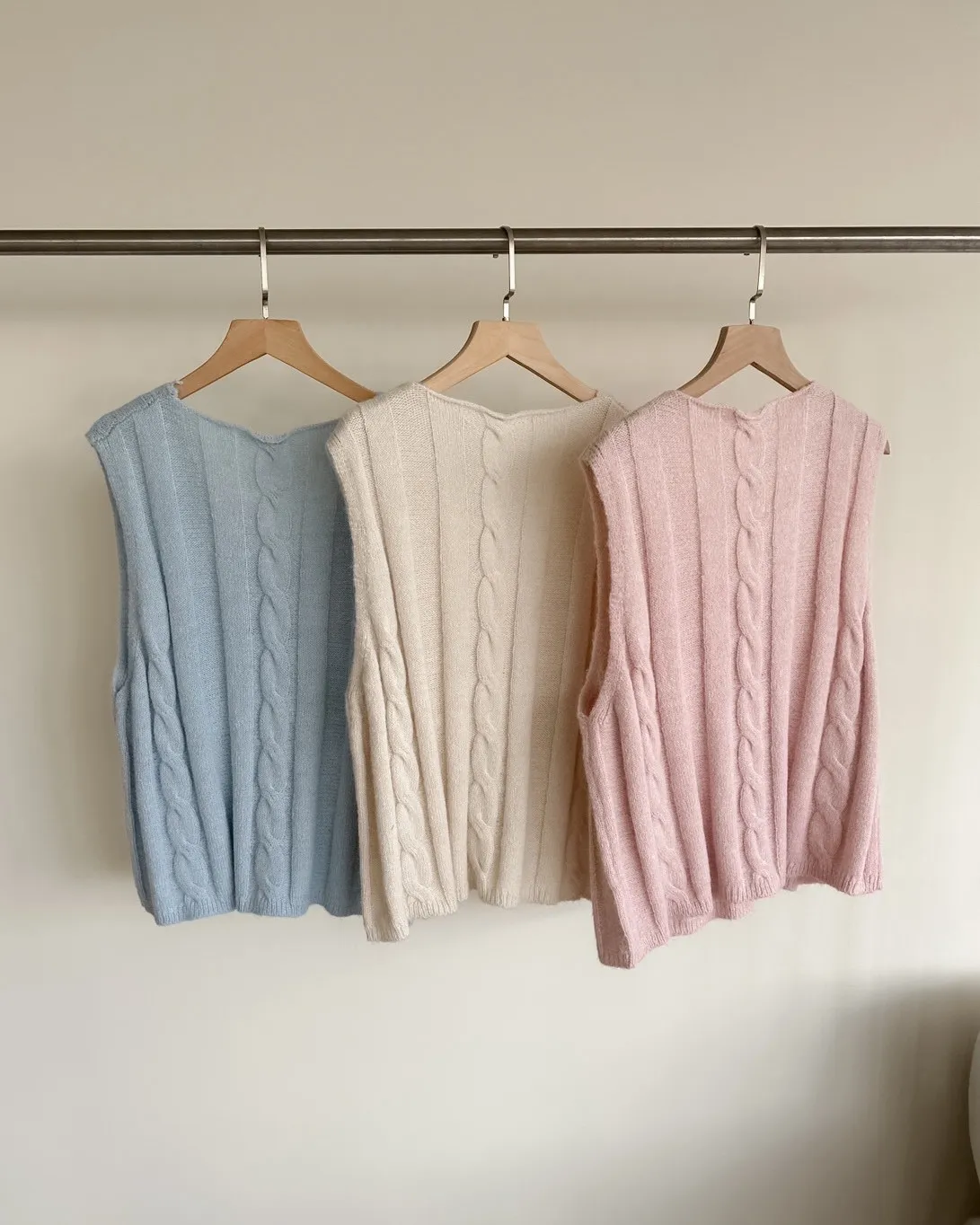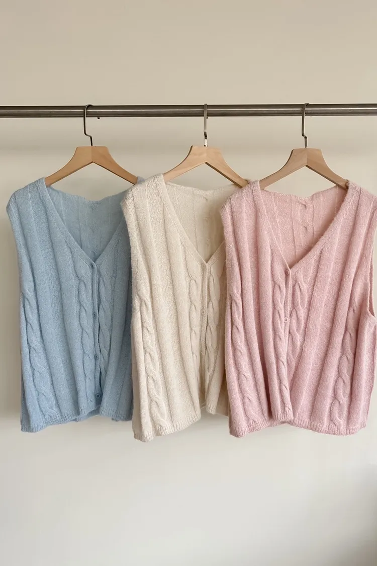 A0028鬱金香針織背心(米/粉紅/藍)