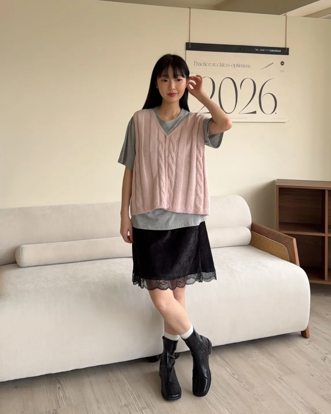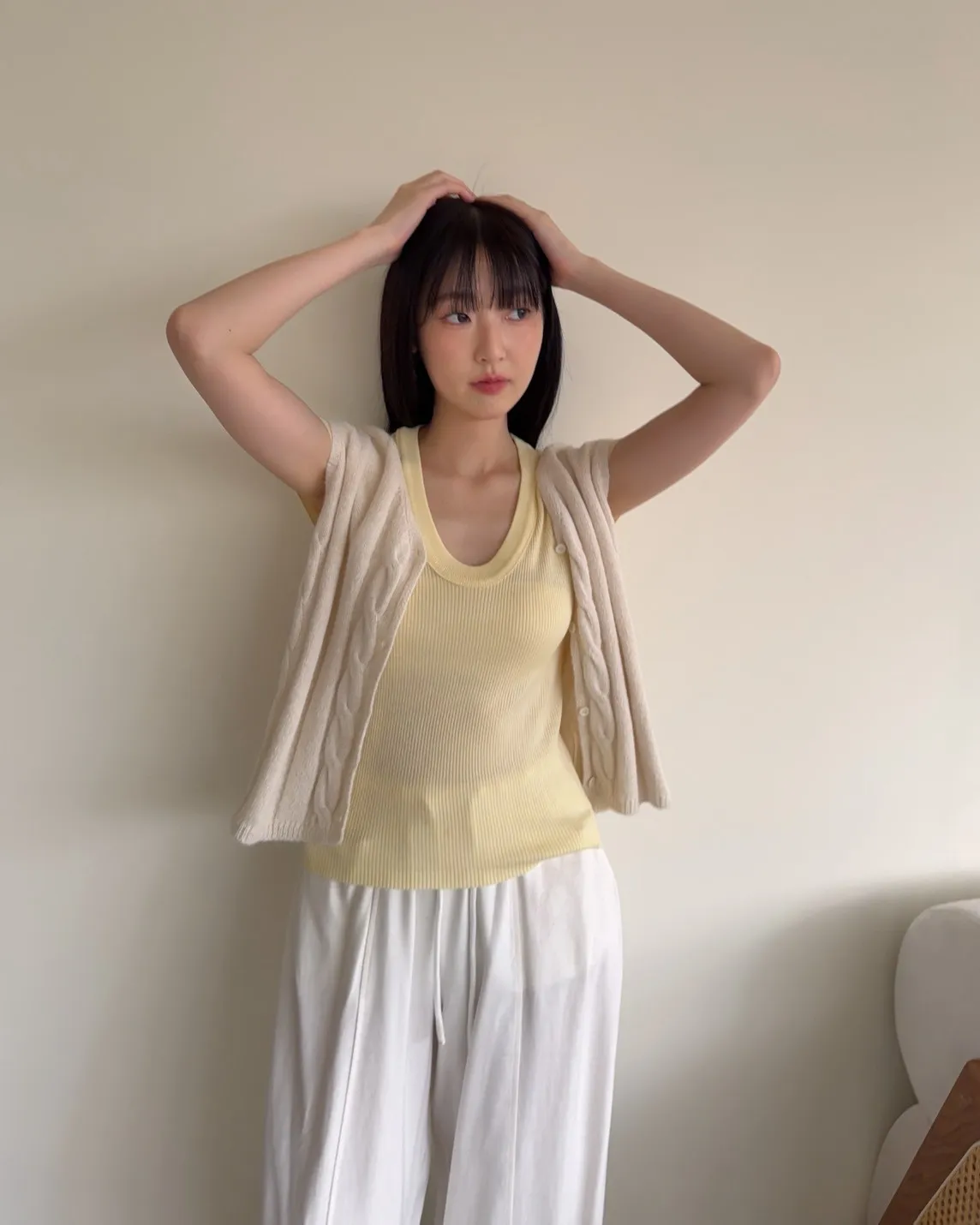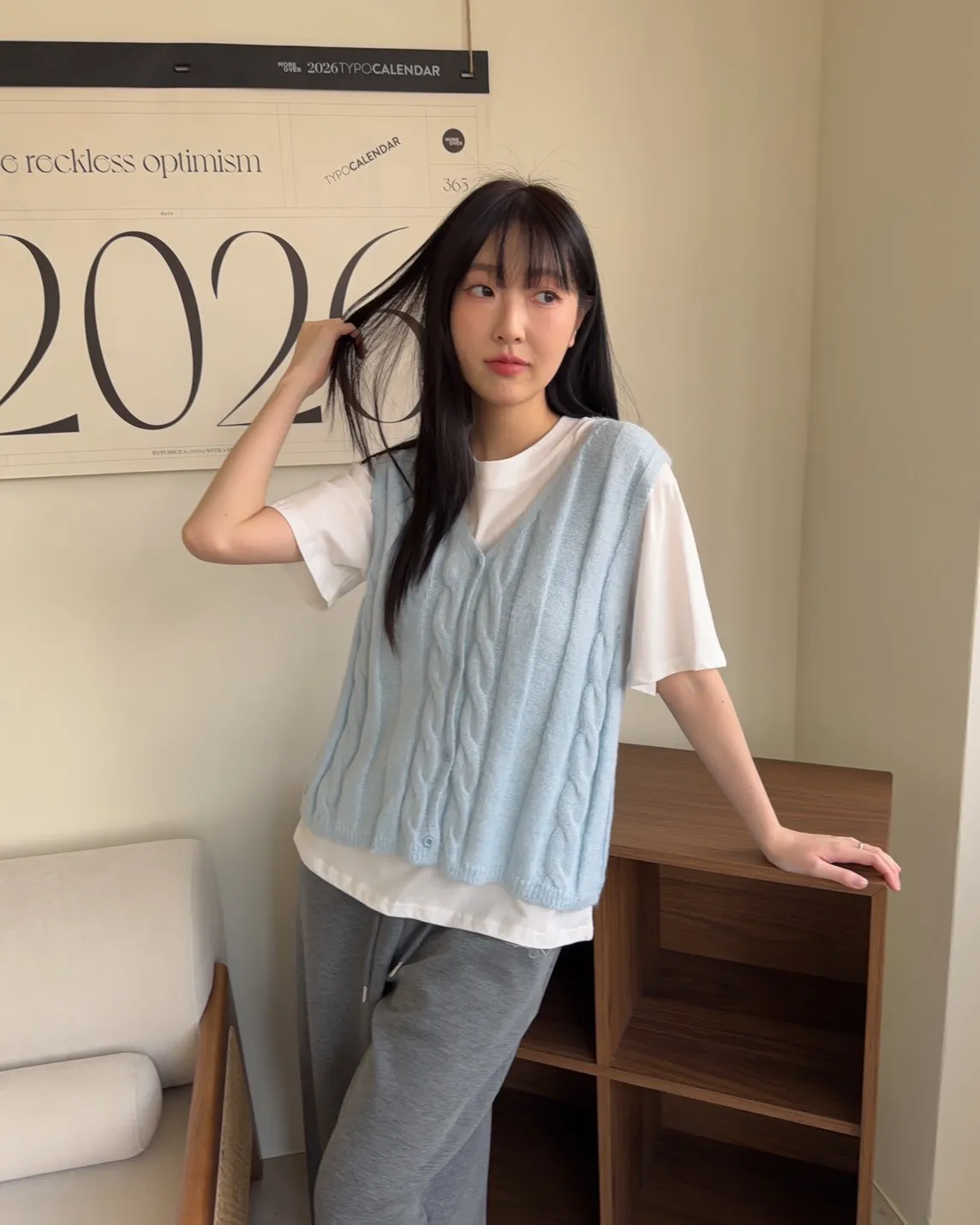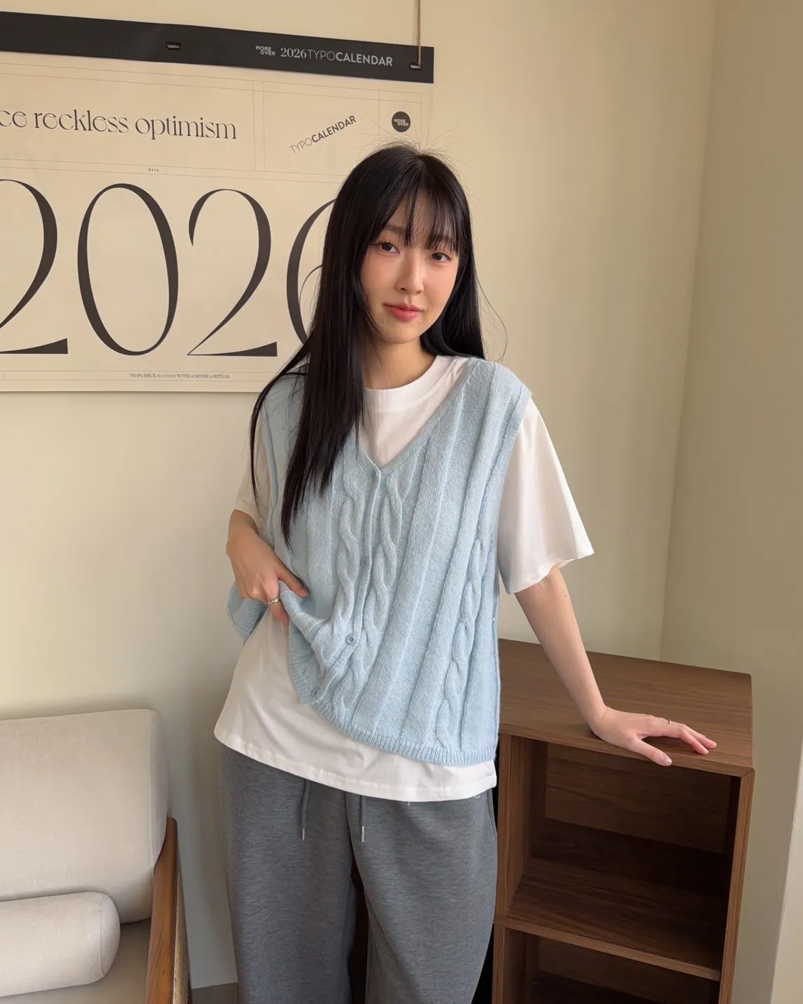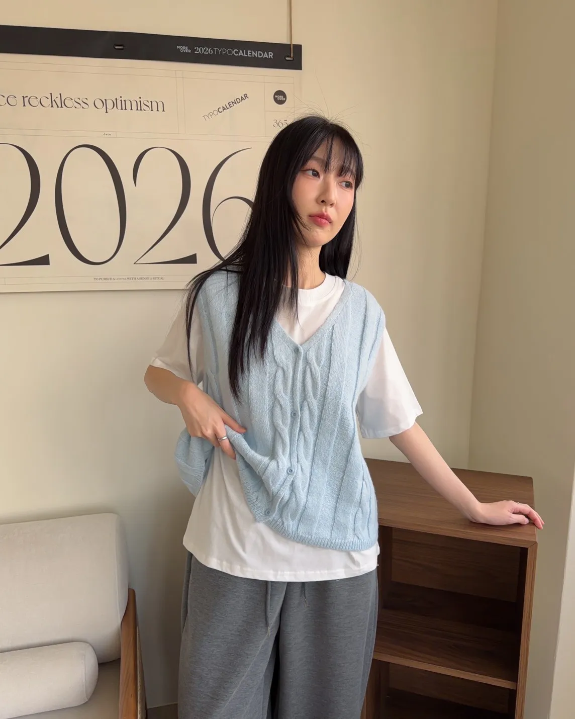 A0028鬱金香針織背心(米/粉紅/藍)