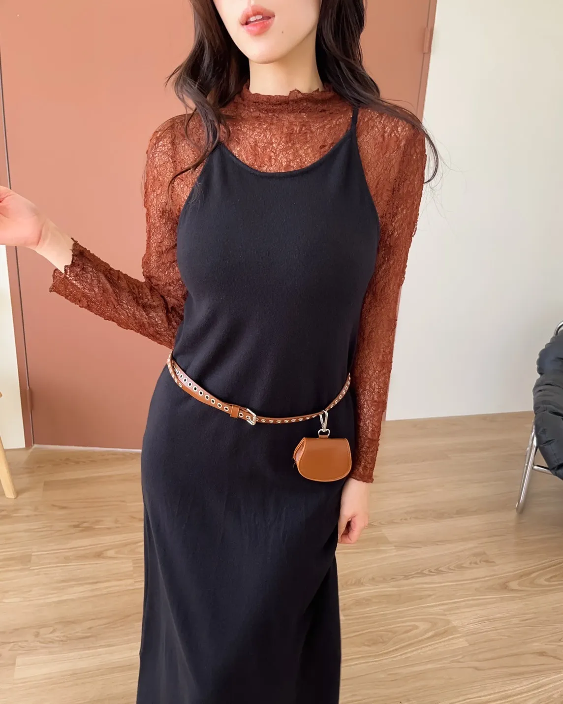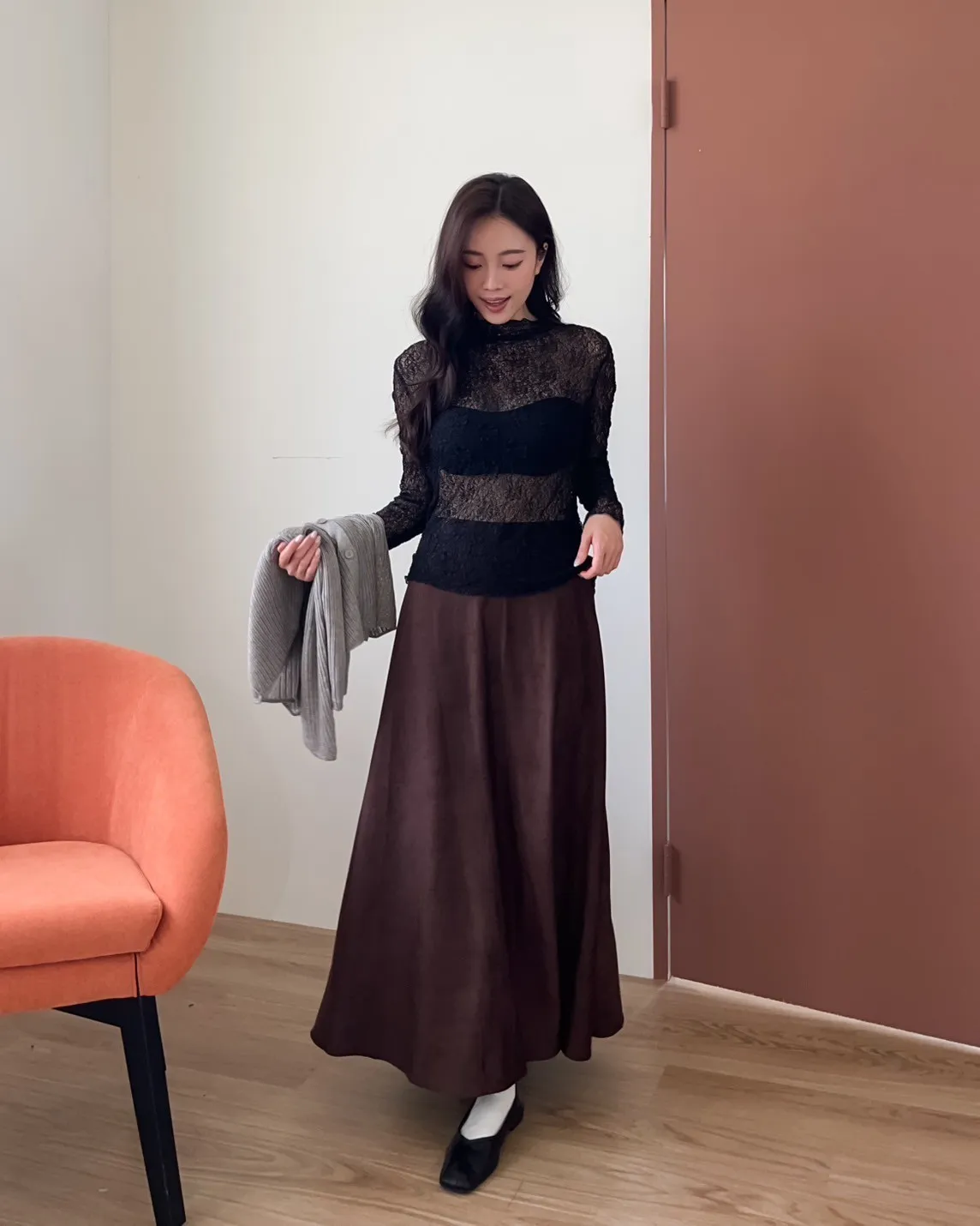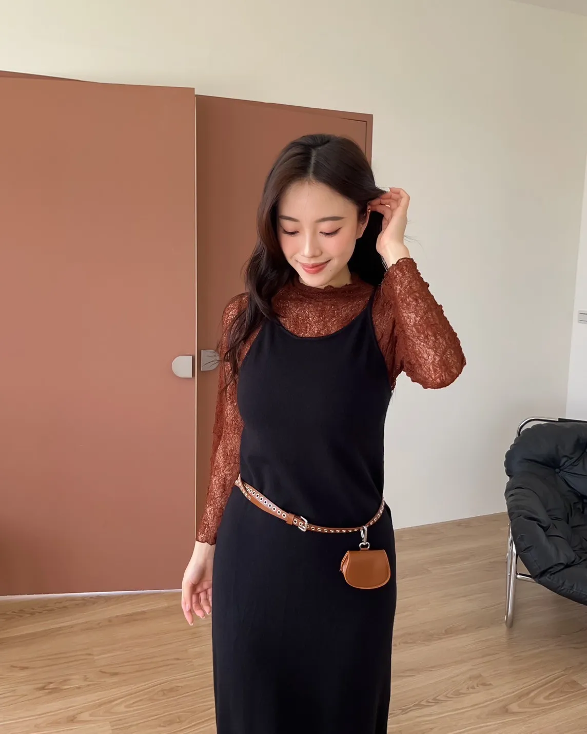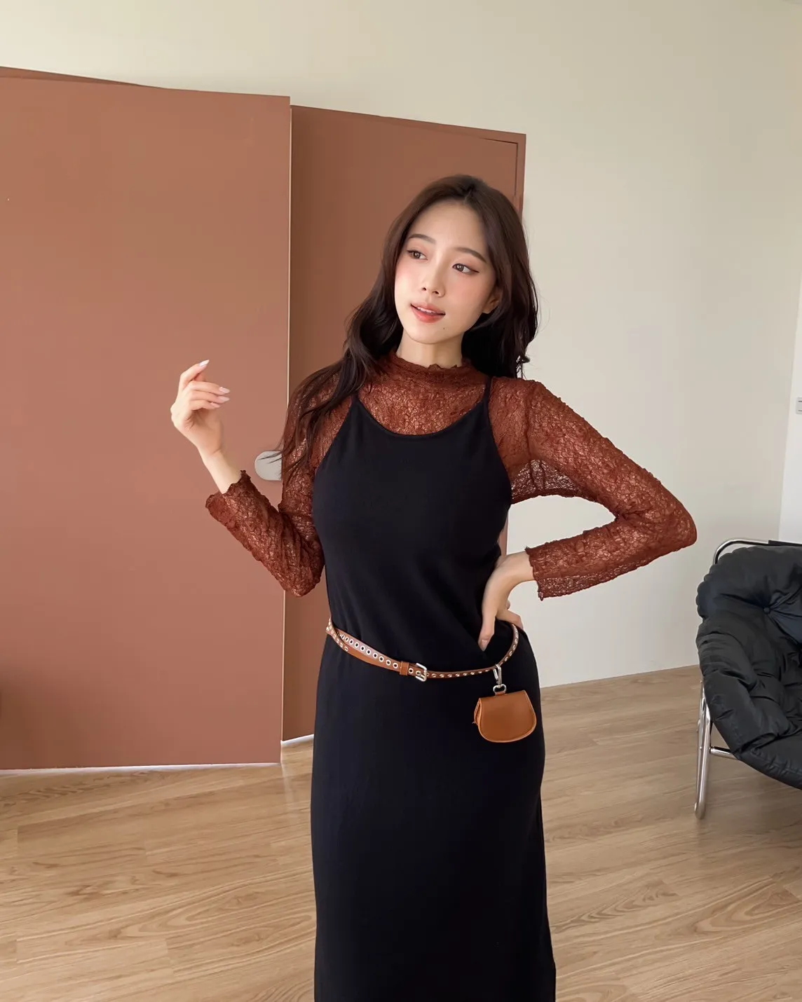 U0088毛線團立領透膚上衣(白/咖啡/紅/黑)