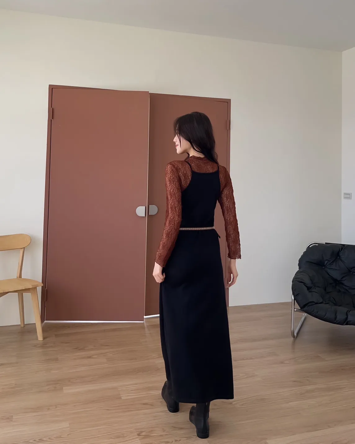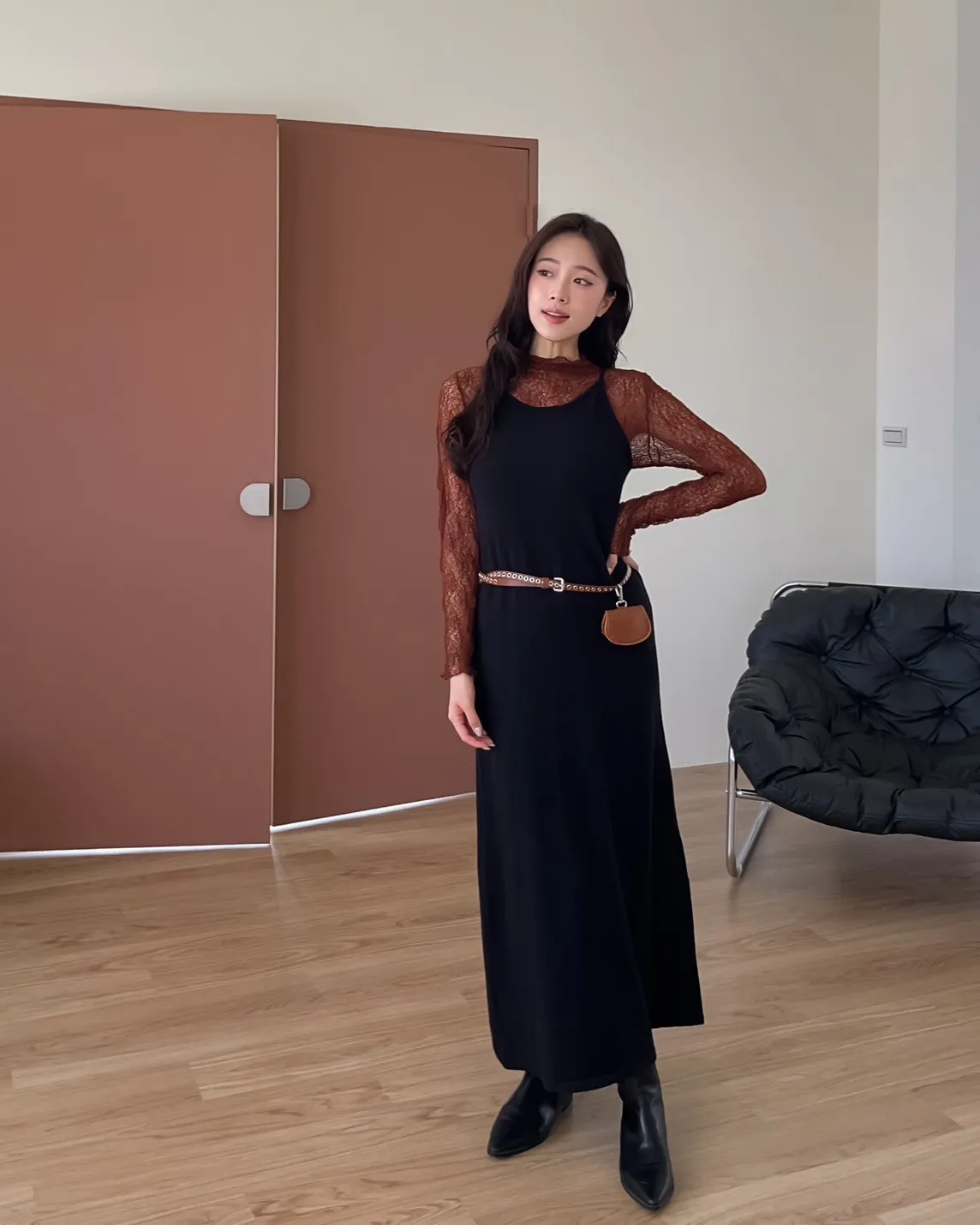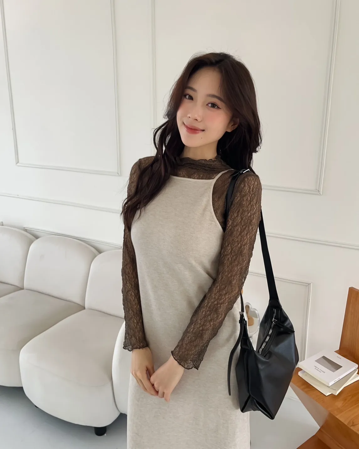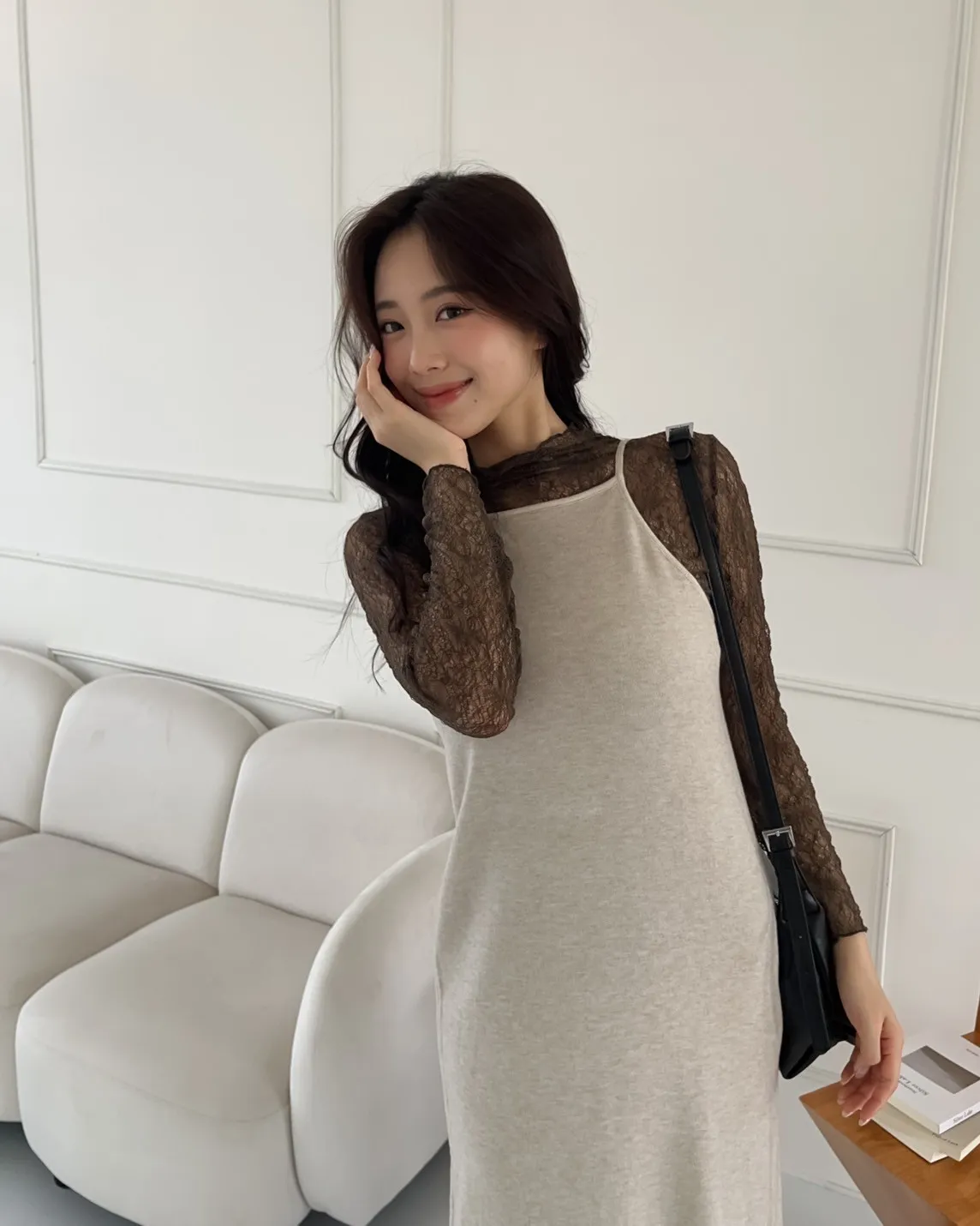 U0088毛線團立領透膚上衣(白/咖啡/紅/黑)