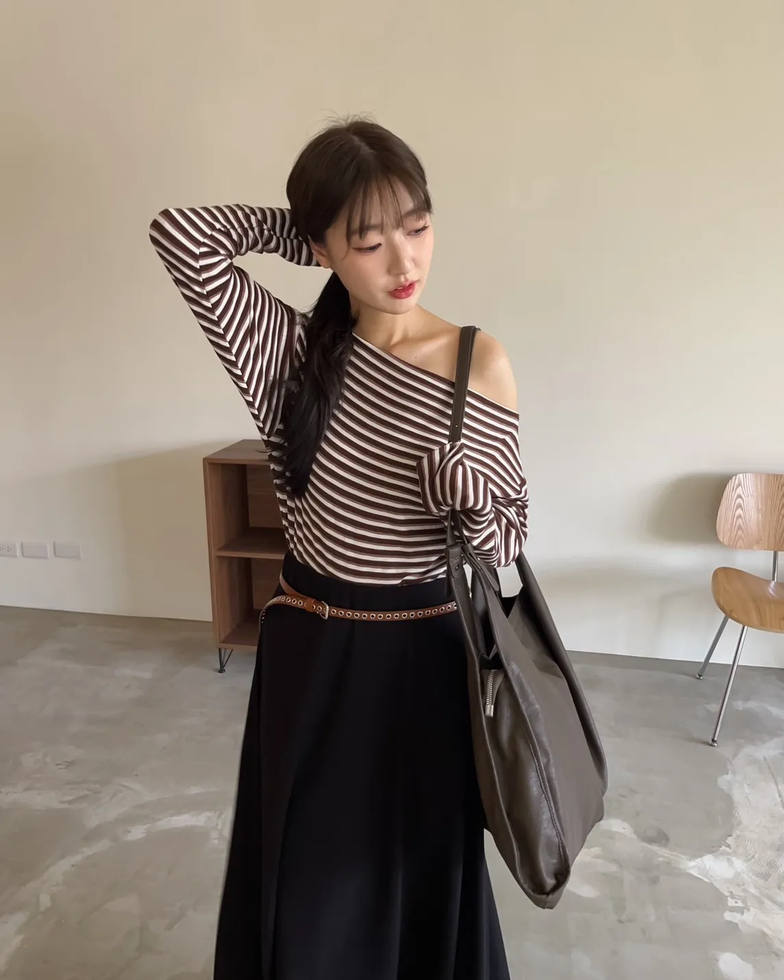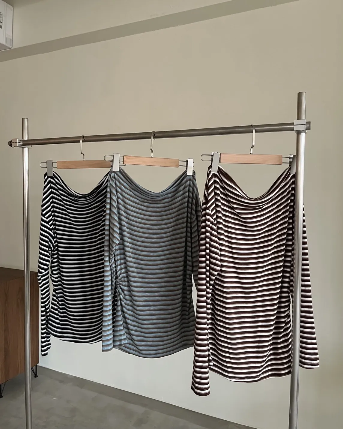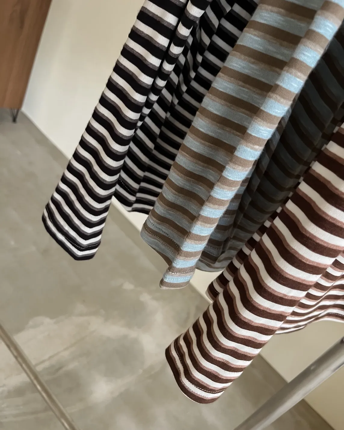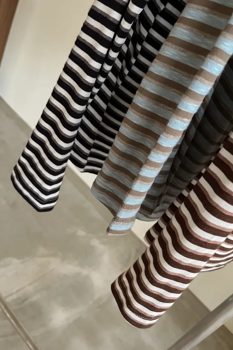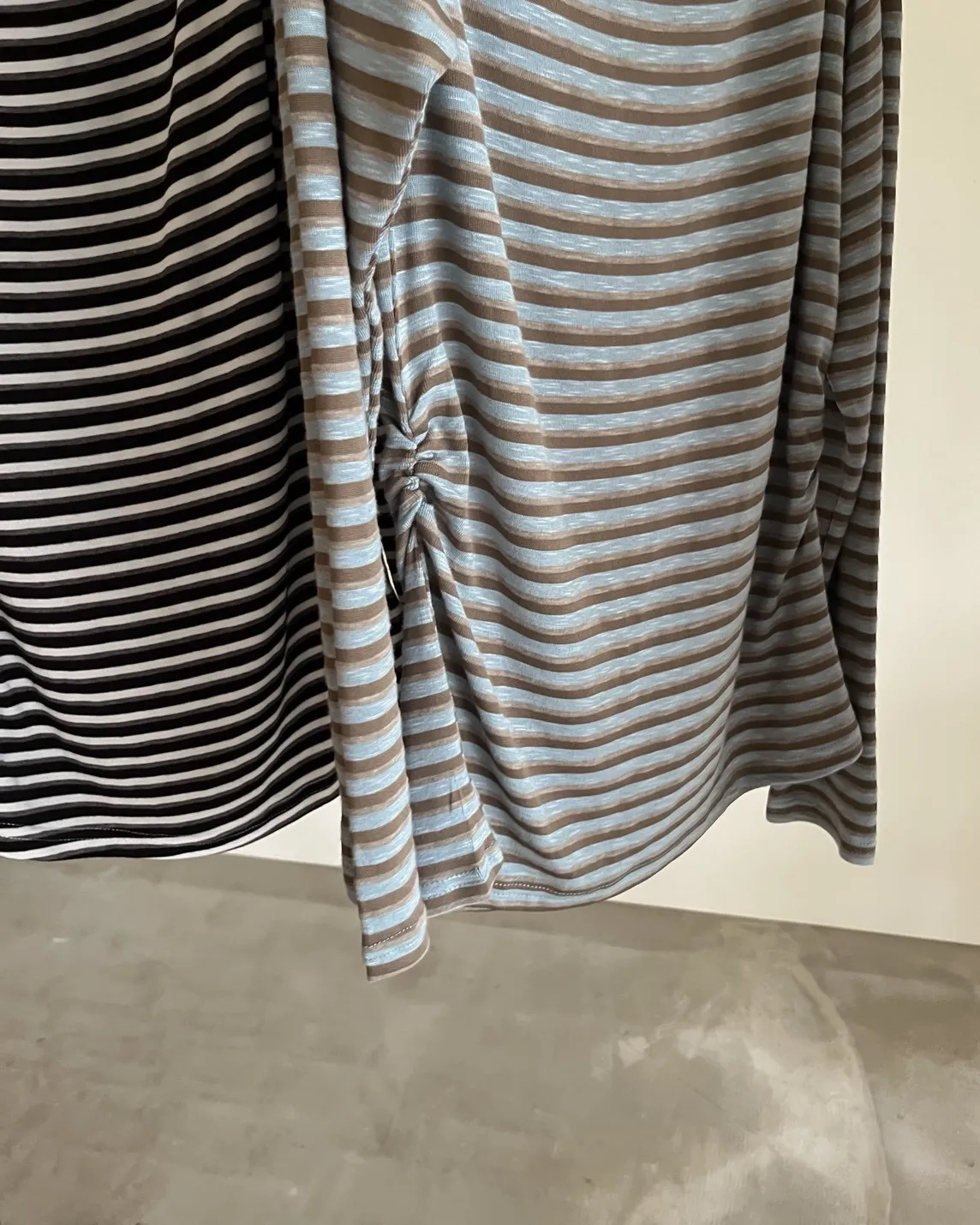 V0074夾心軟糖平領縮腰條紋衣(咖啡/藍/黑)(售完不補)