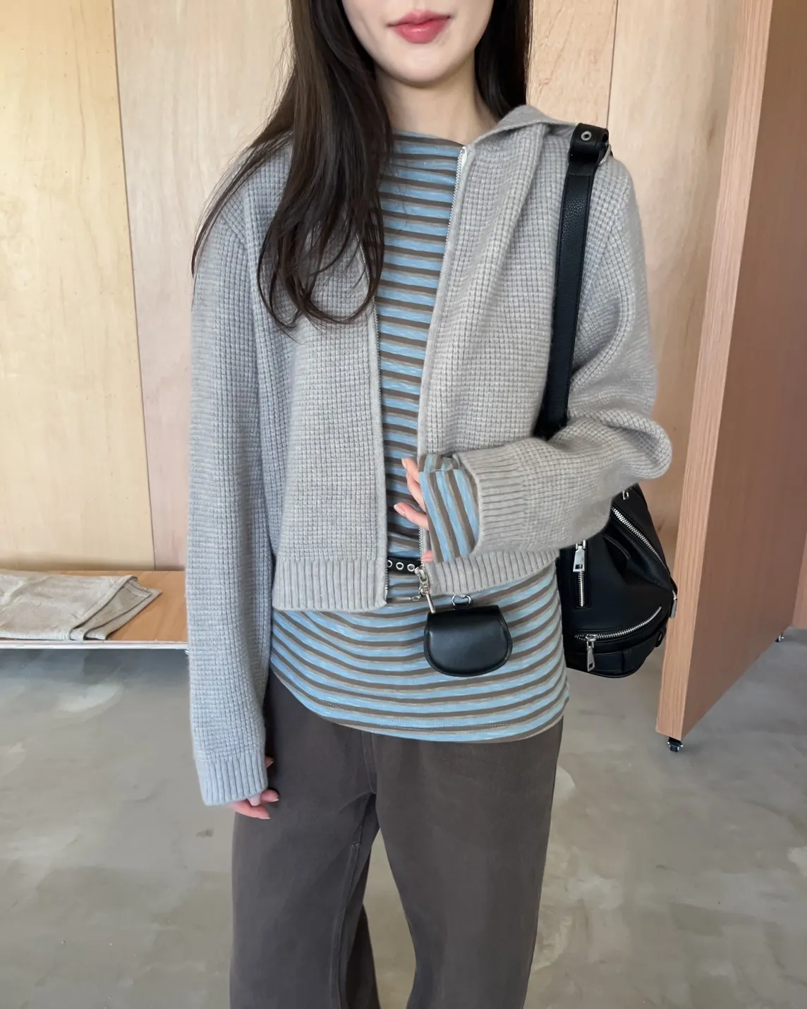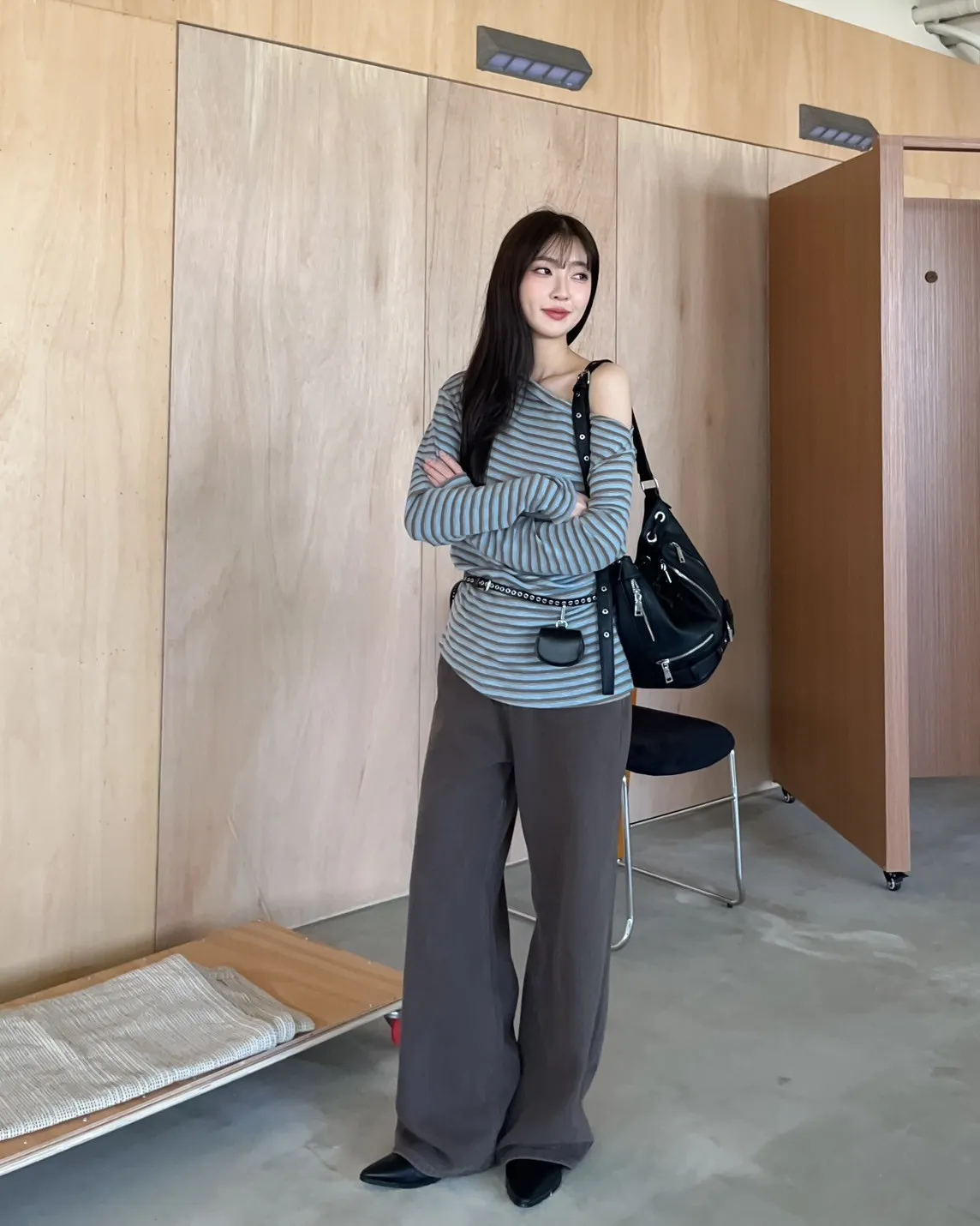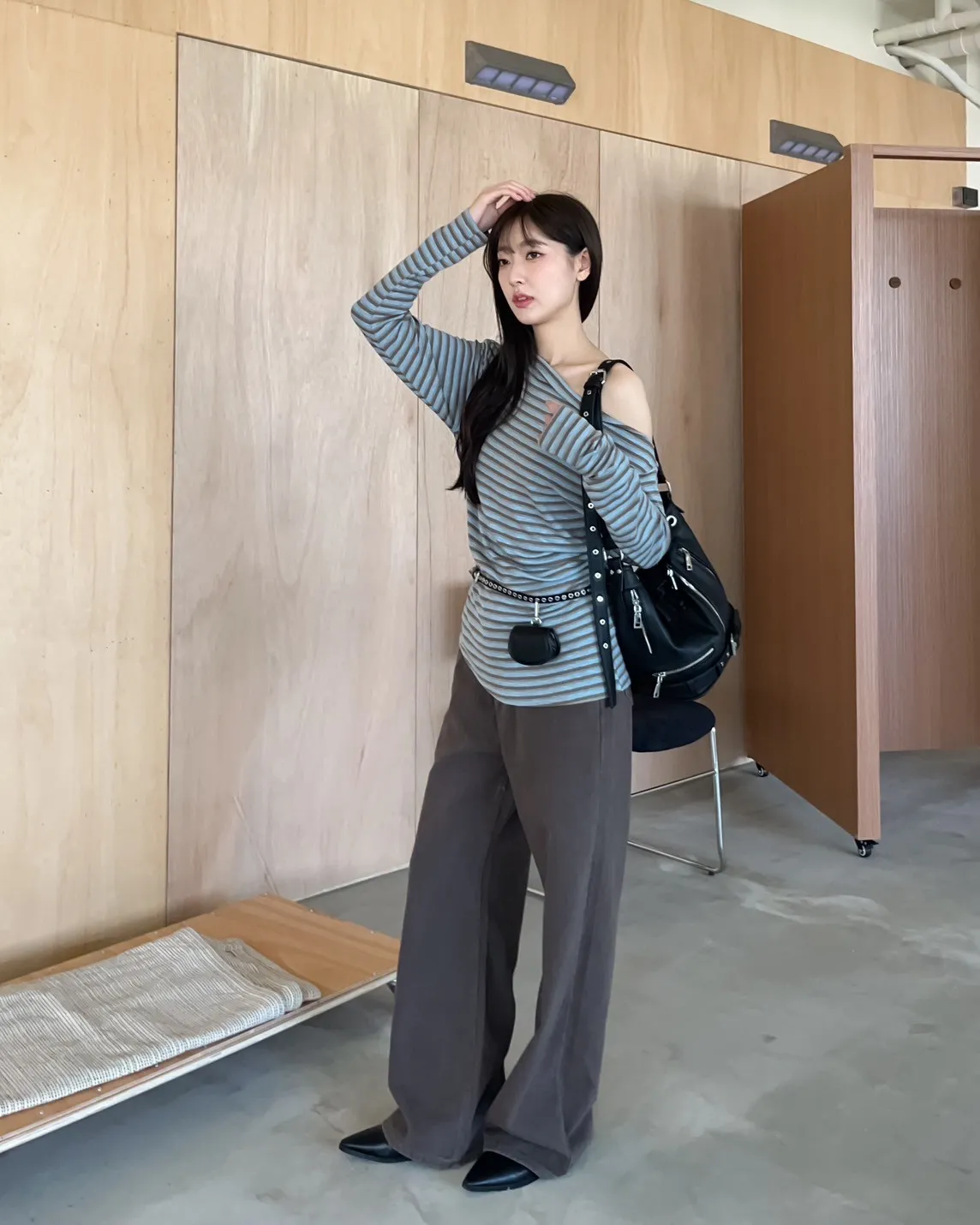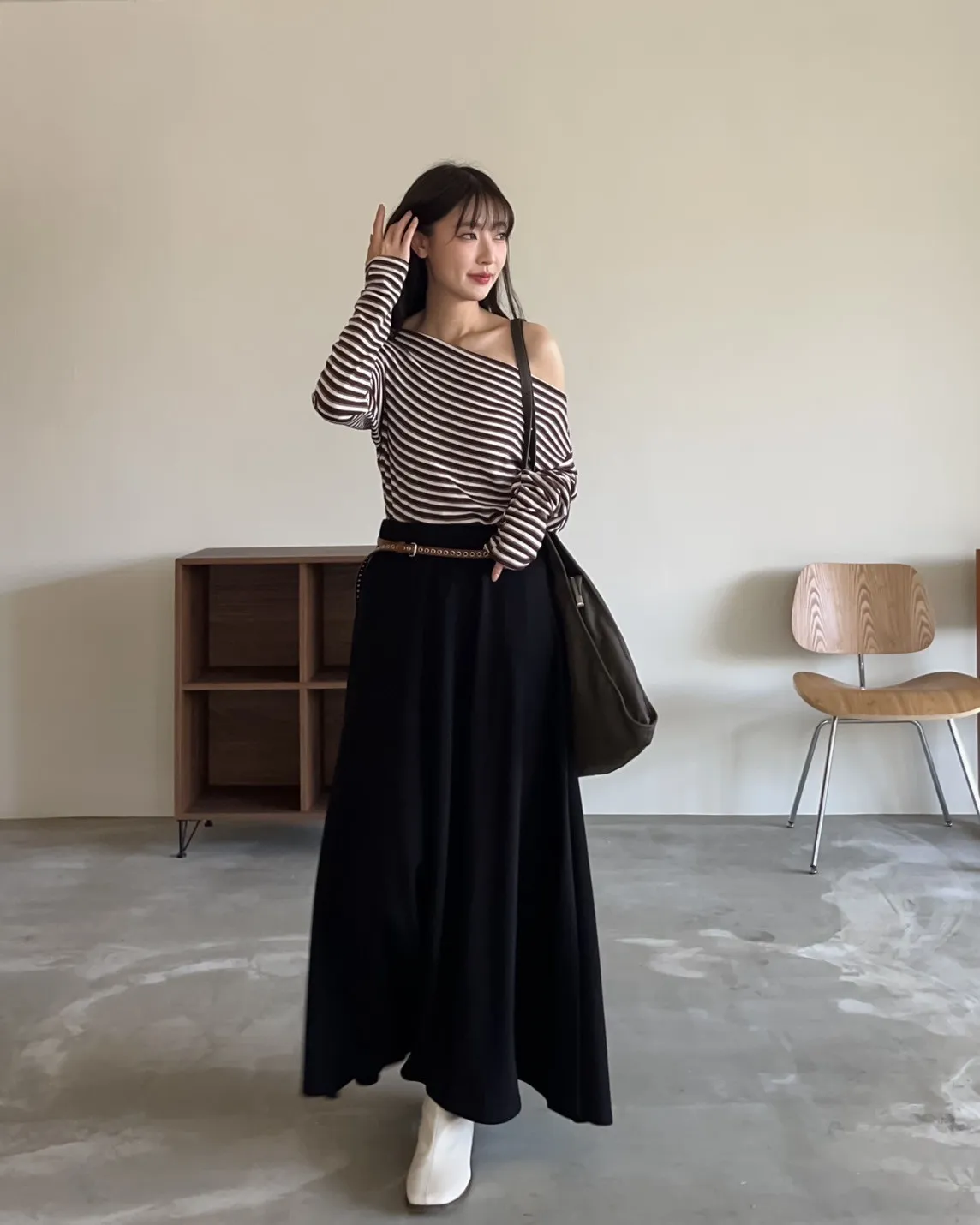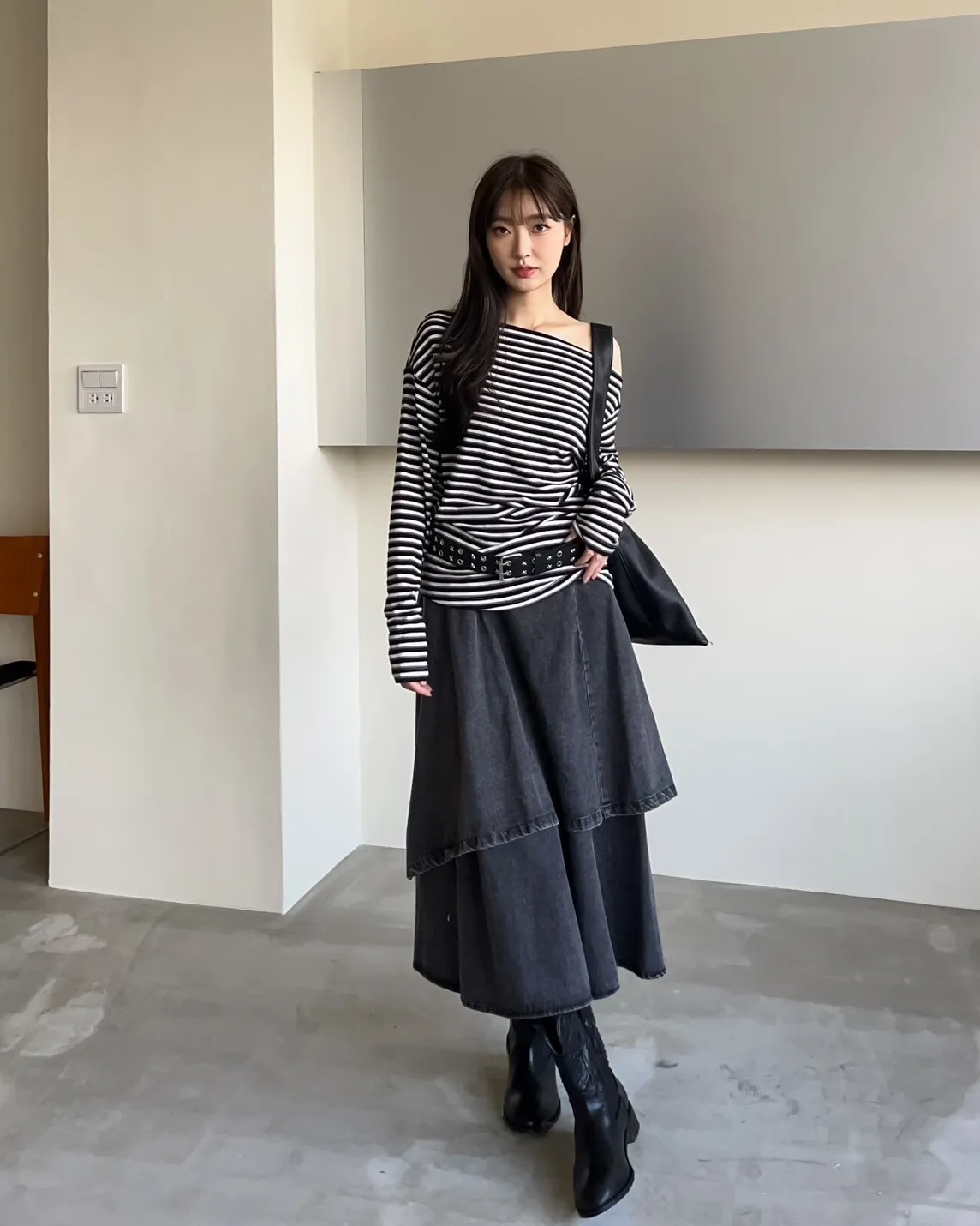 V0074夾心軟糖平領縮腰條紋衣(咖啡/藍/黑)(售完不補)