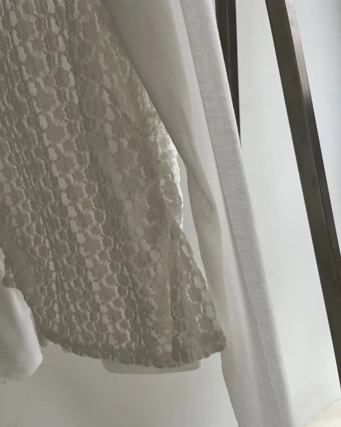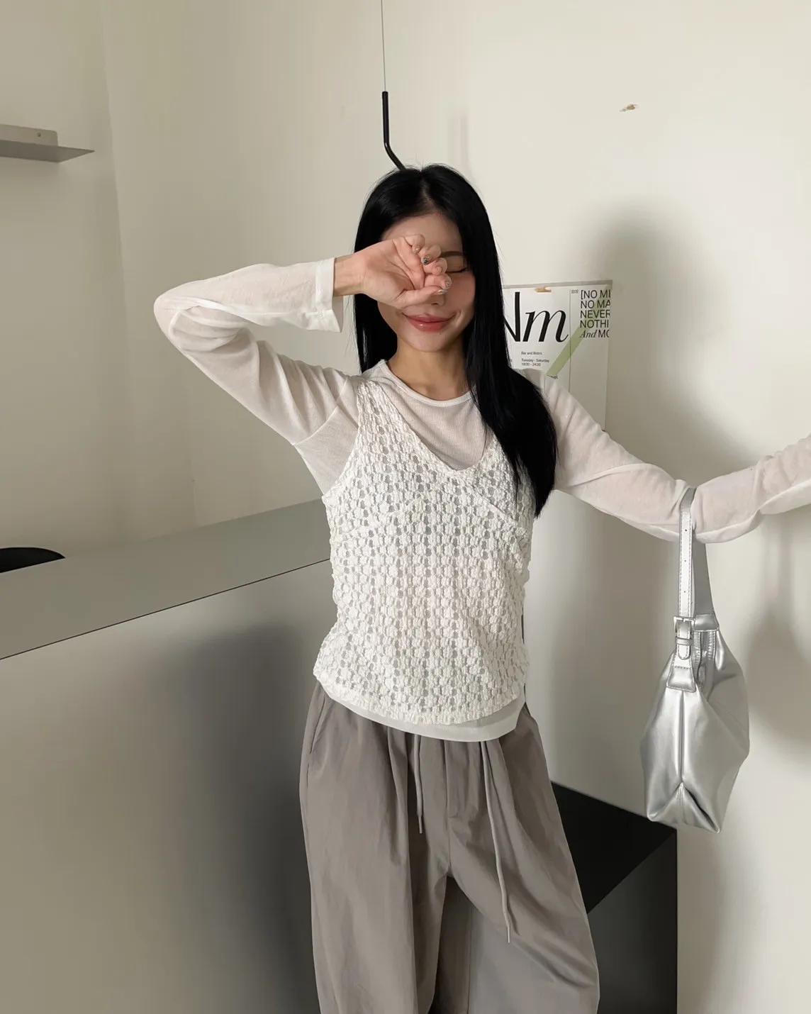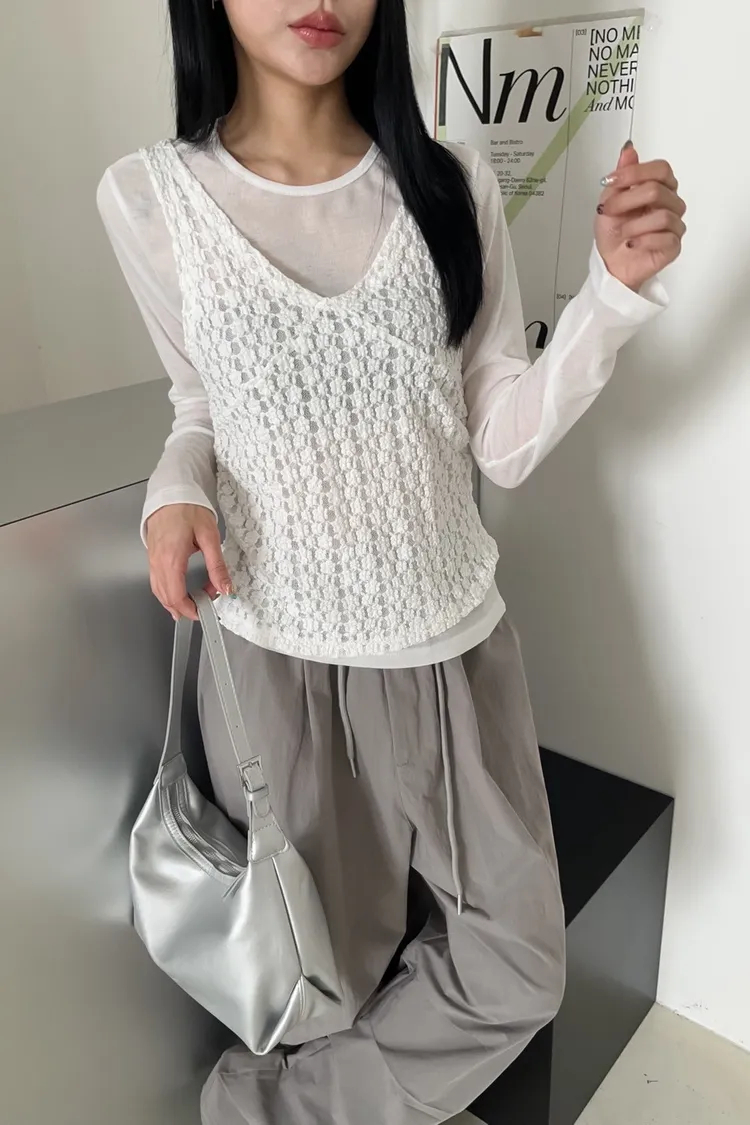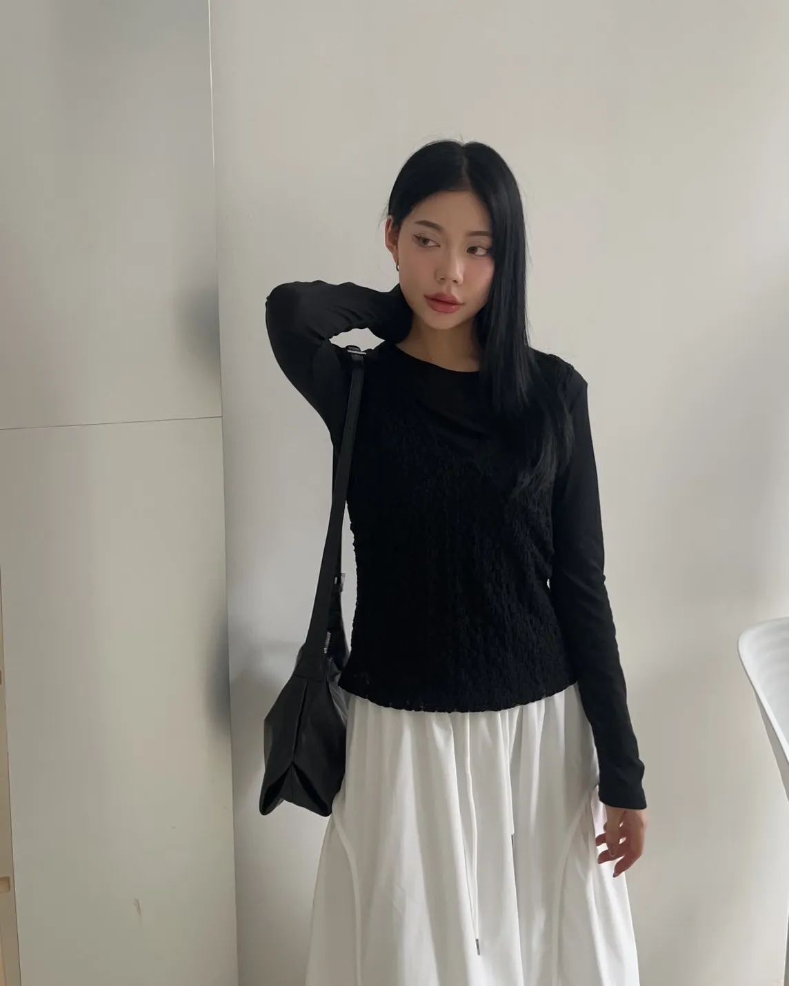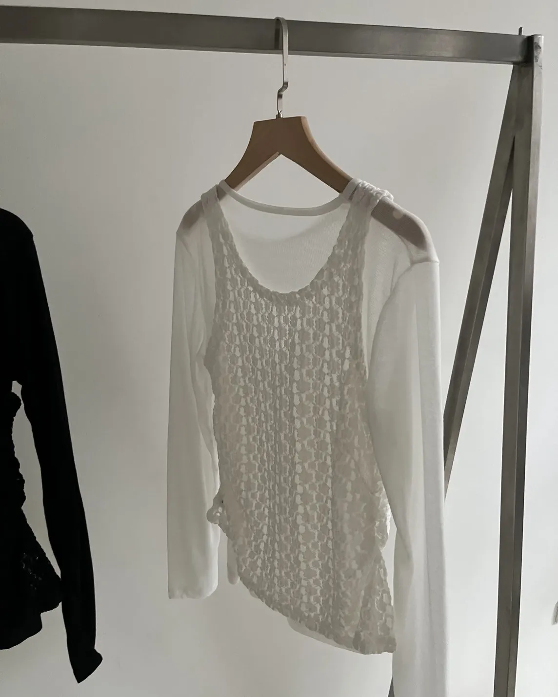 U0040(SET)法式蕾絲抓腰背心+薄棉長袖(白/黑)