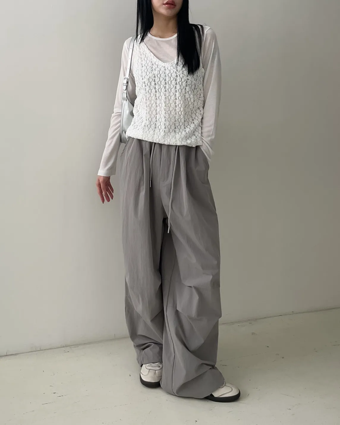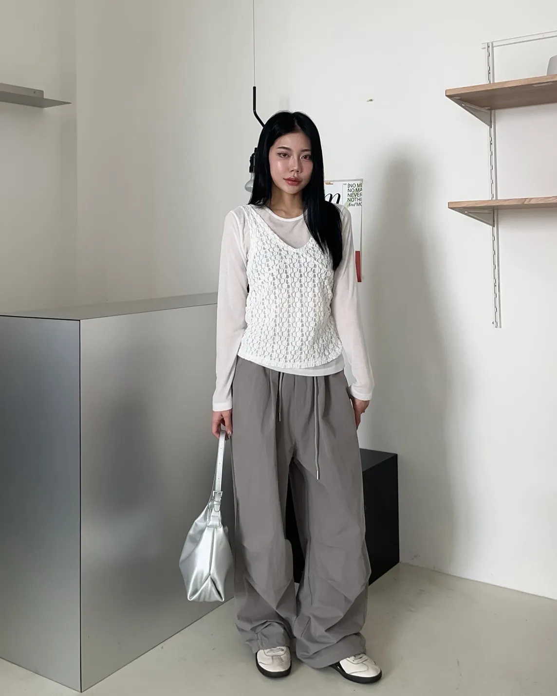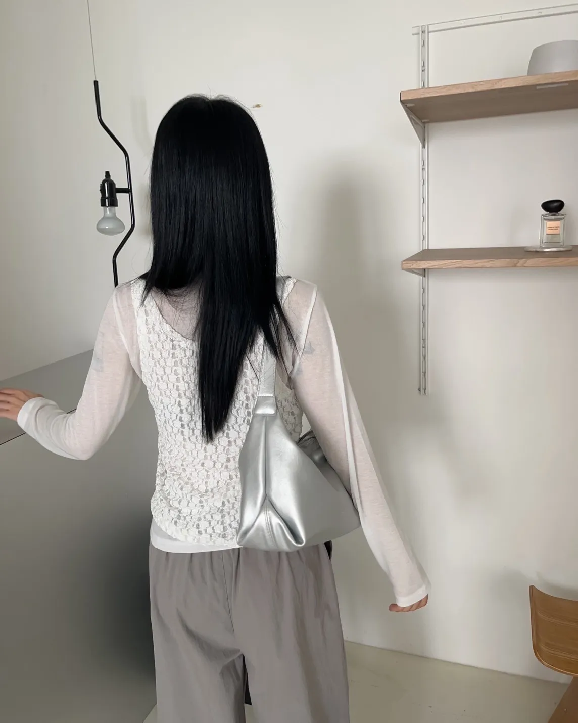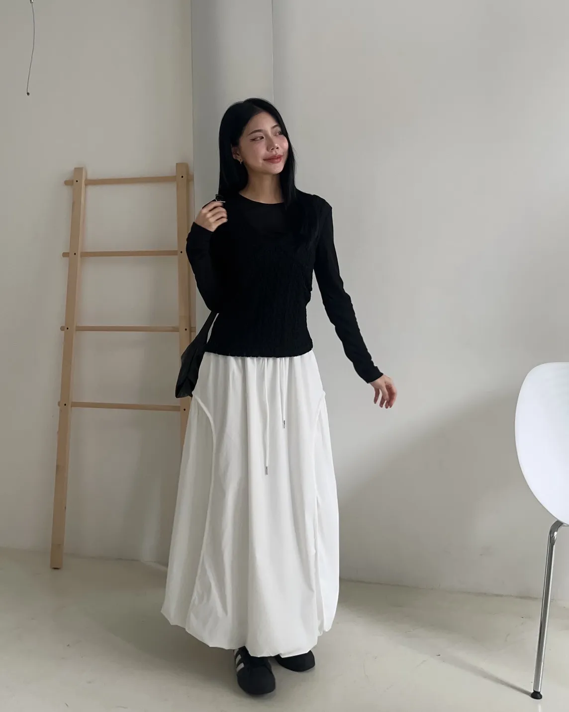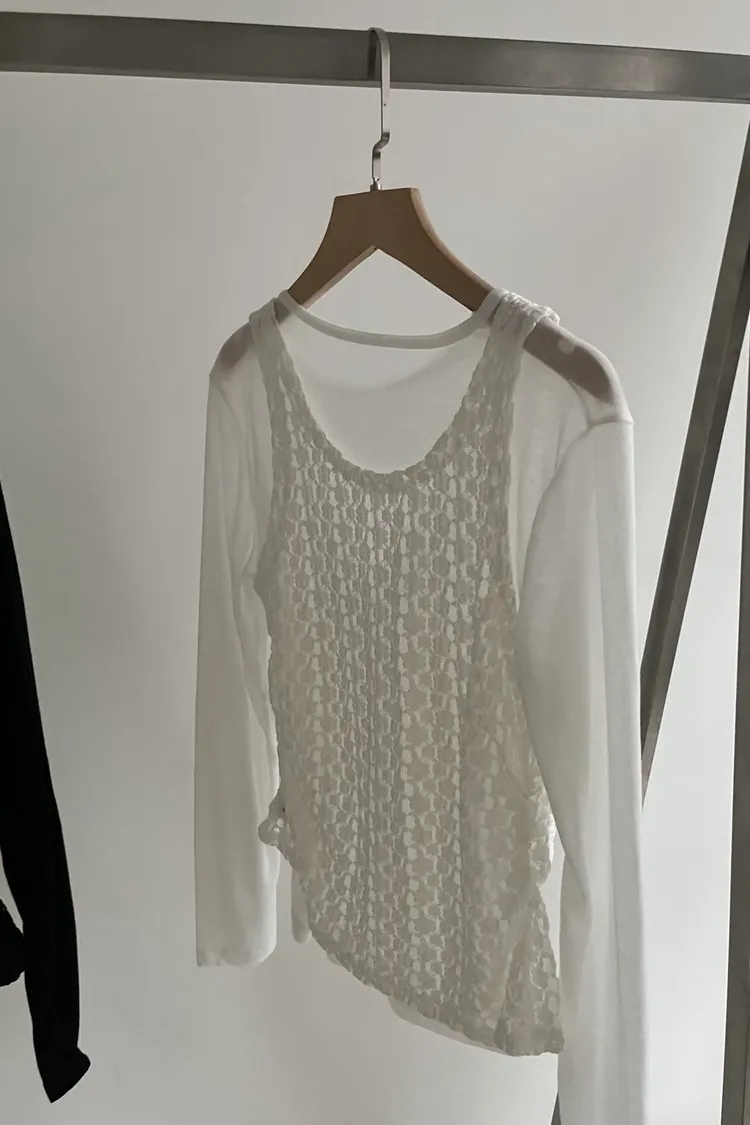 U0040(SET)法式蕾絲抓腰背心+薄棉長袖(白/黑)