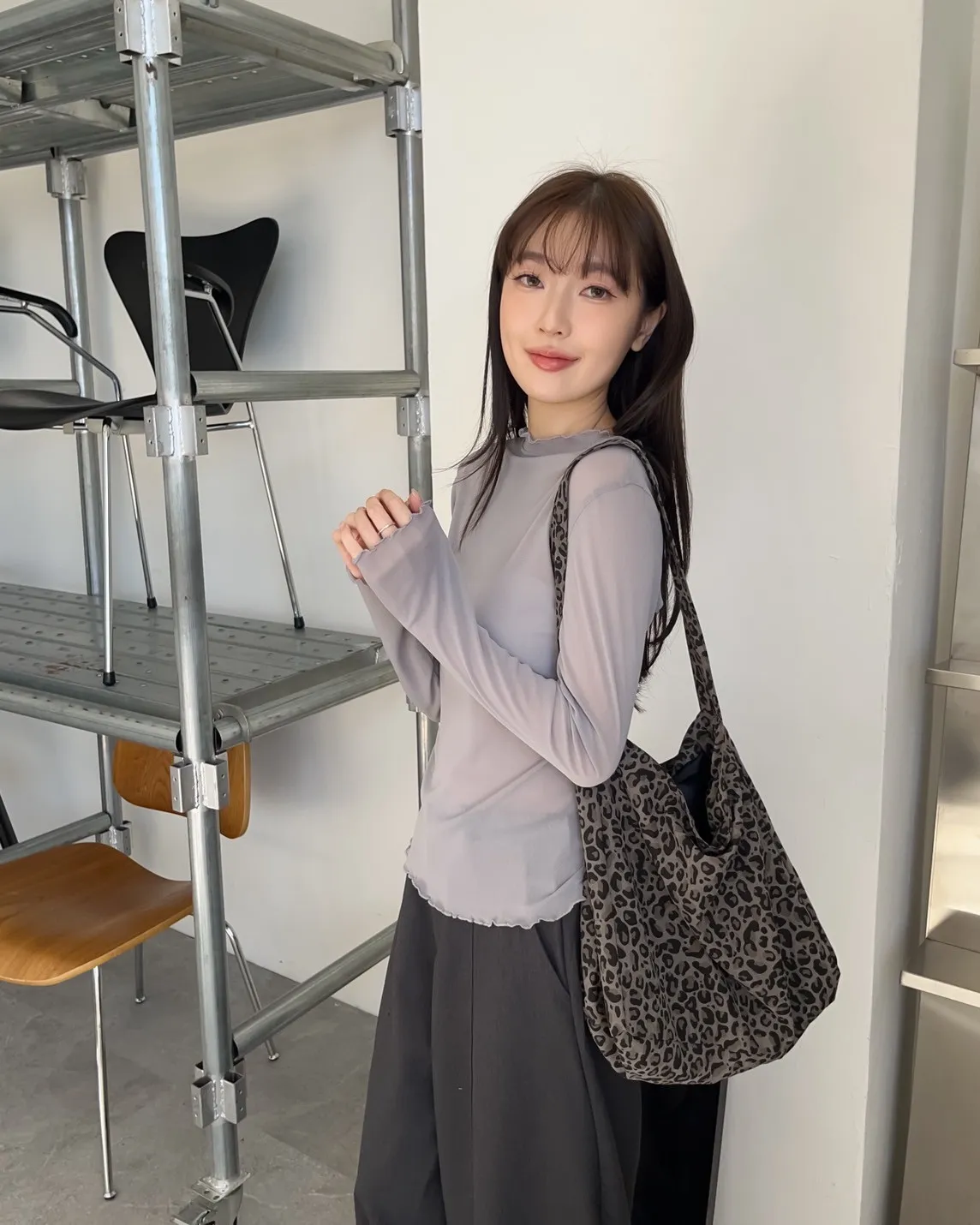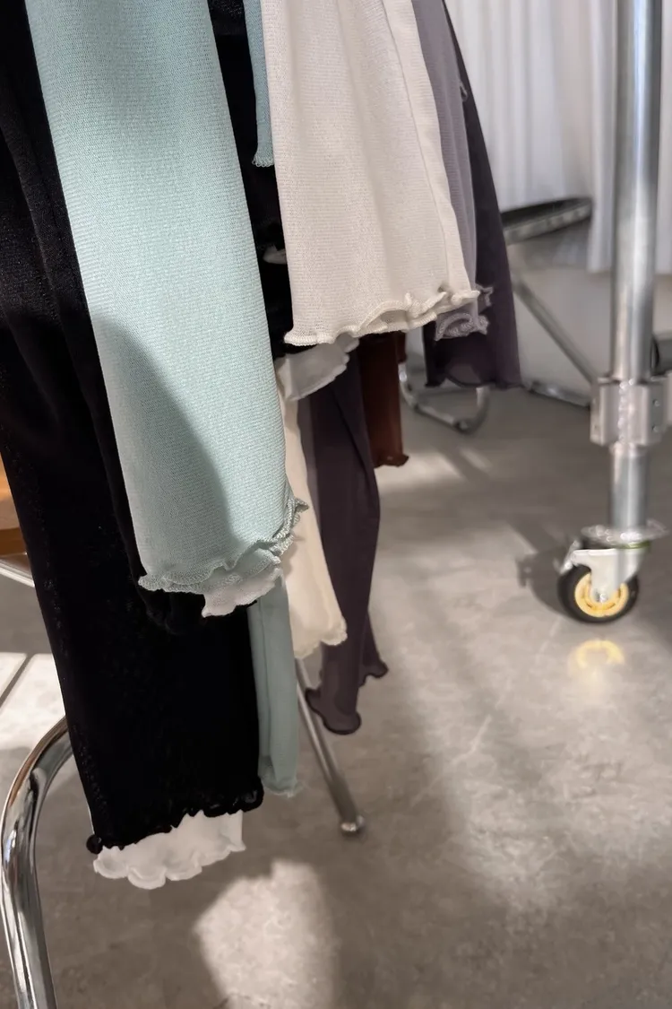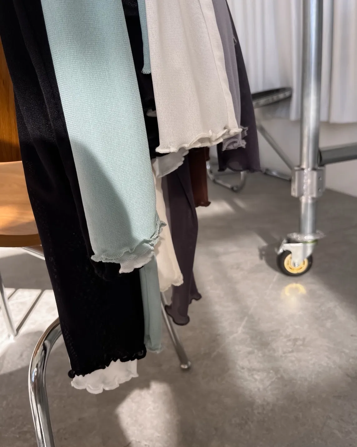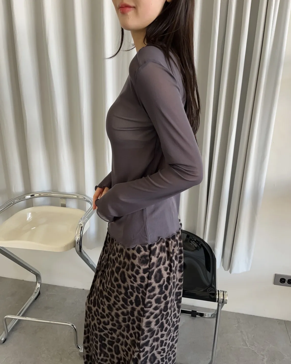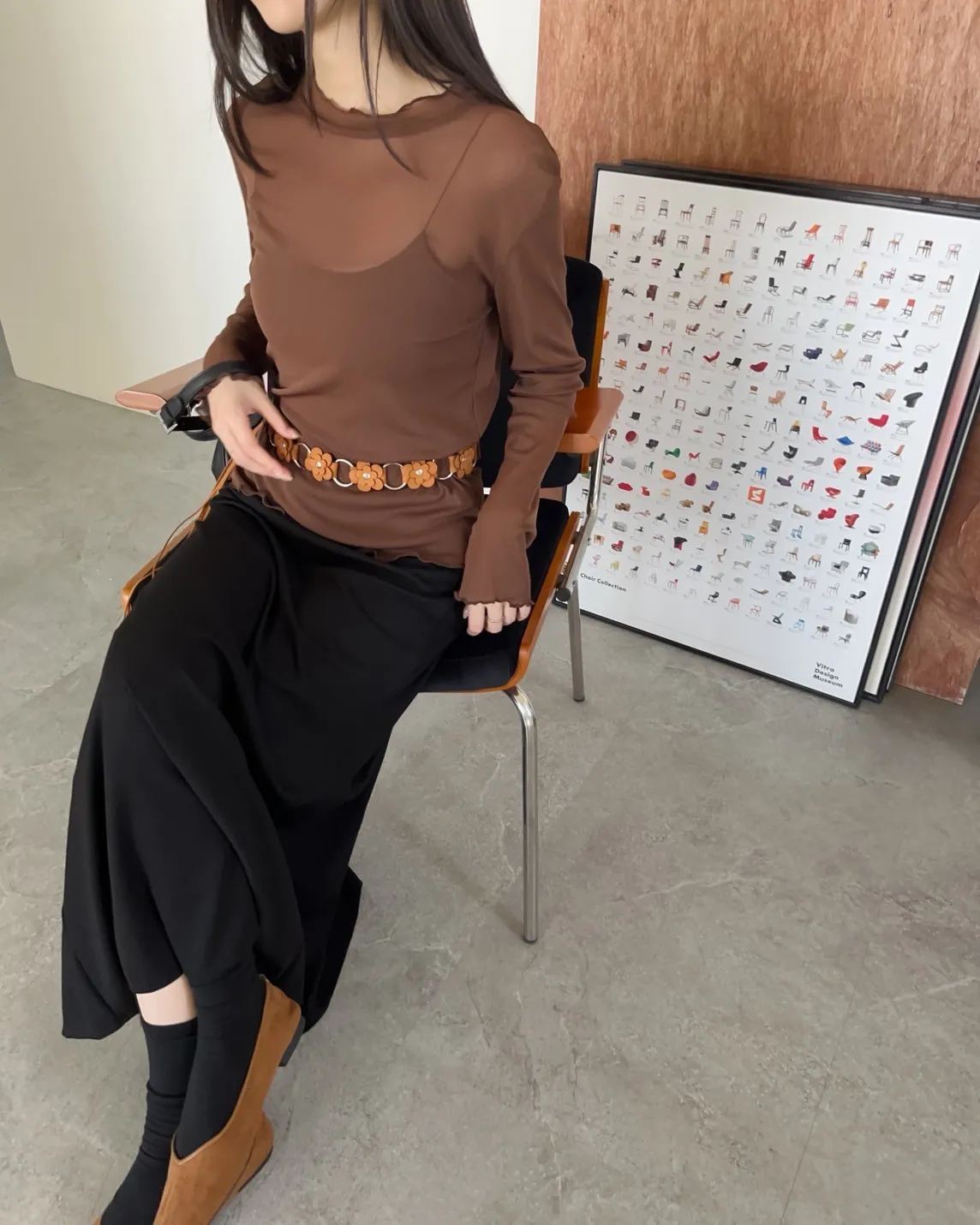 U0070(七色)木耳邊透膚上衣(白/米/咖啡/藍綠/淺灰/深灰/黑)