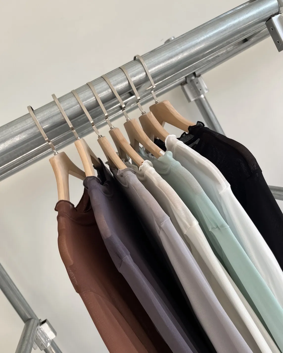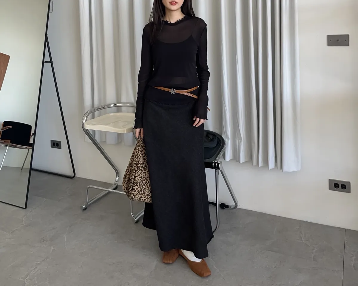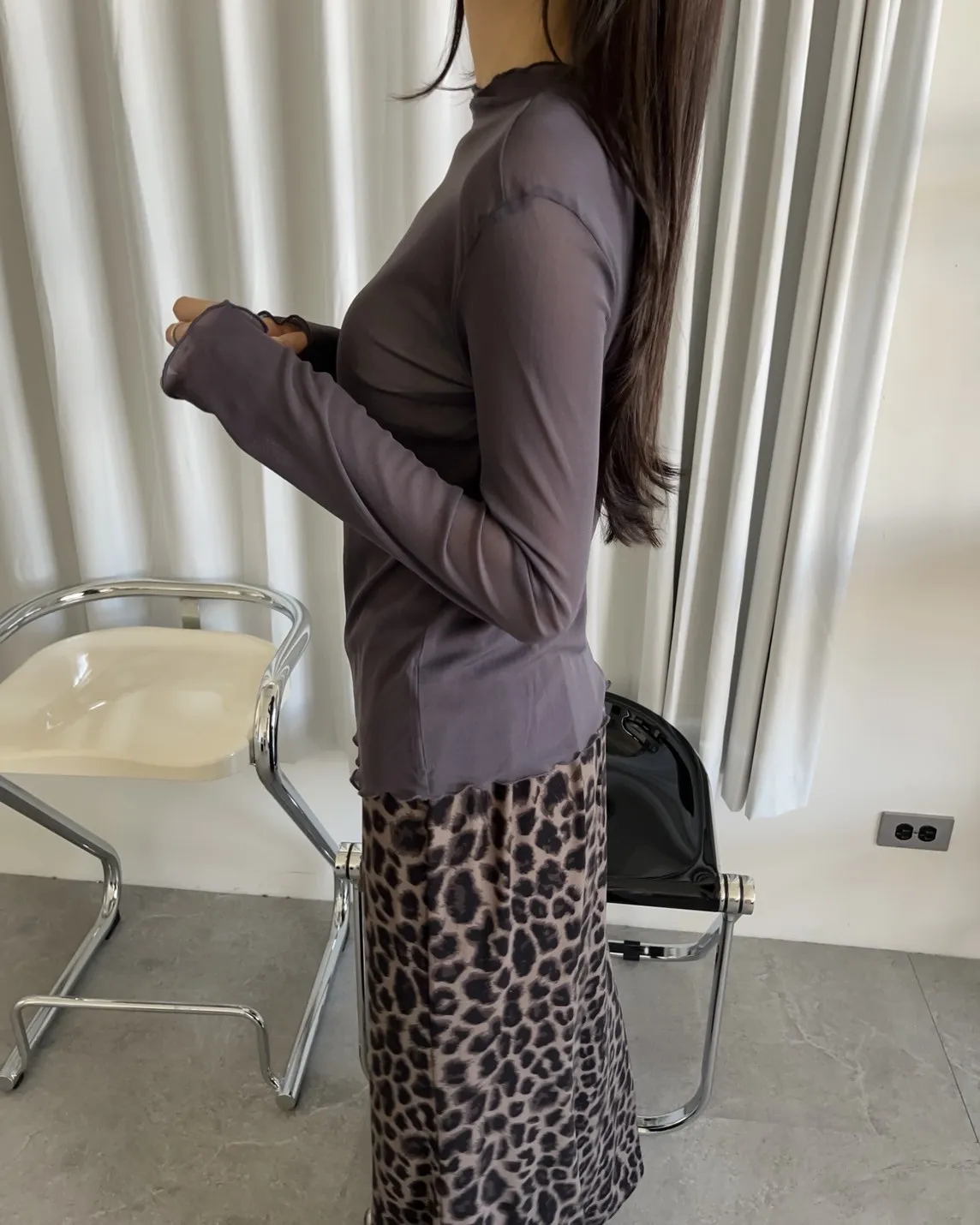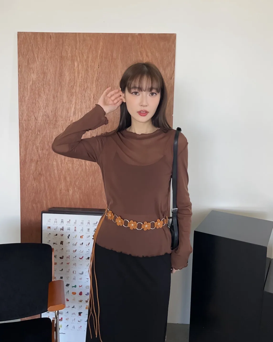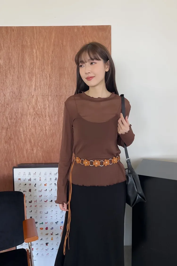U0070(七色)木耳邊透膚上衣(白/米/咖啡/藍綠/淺灰/深灰/黑)