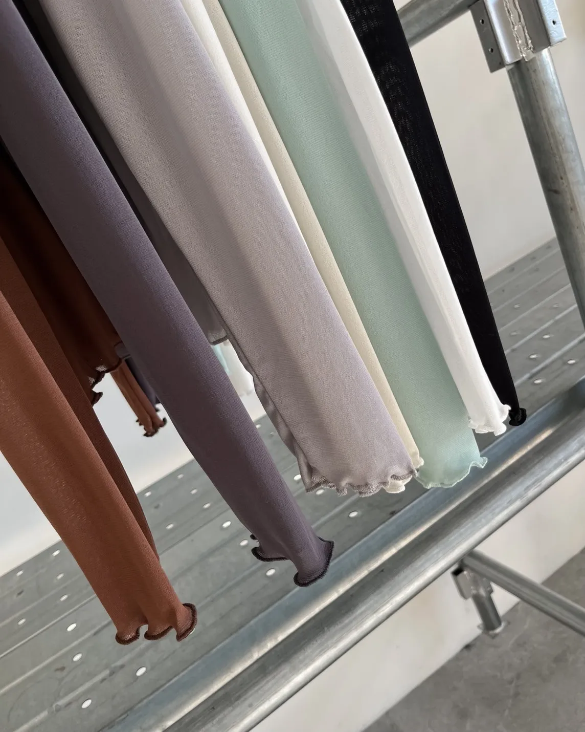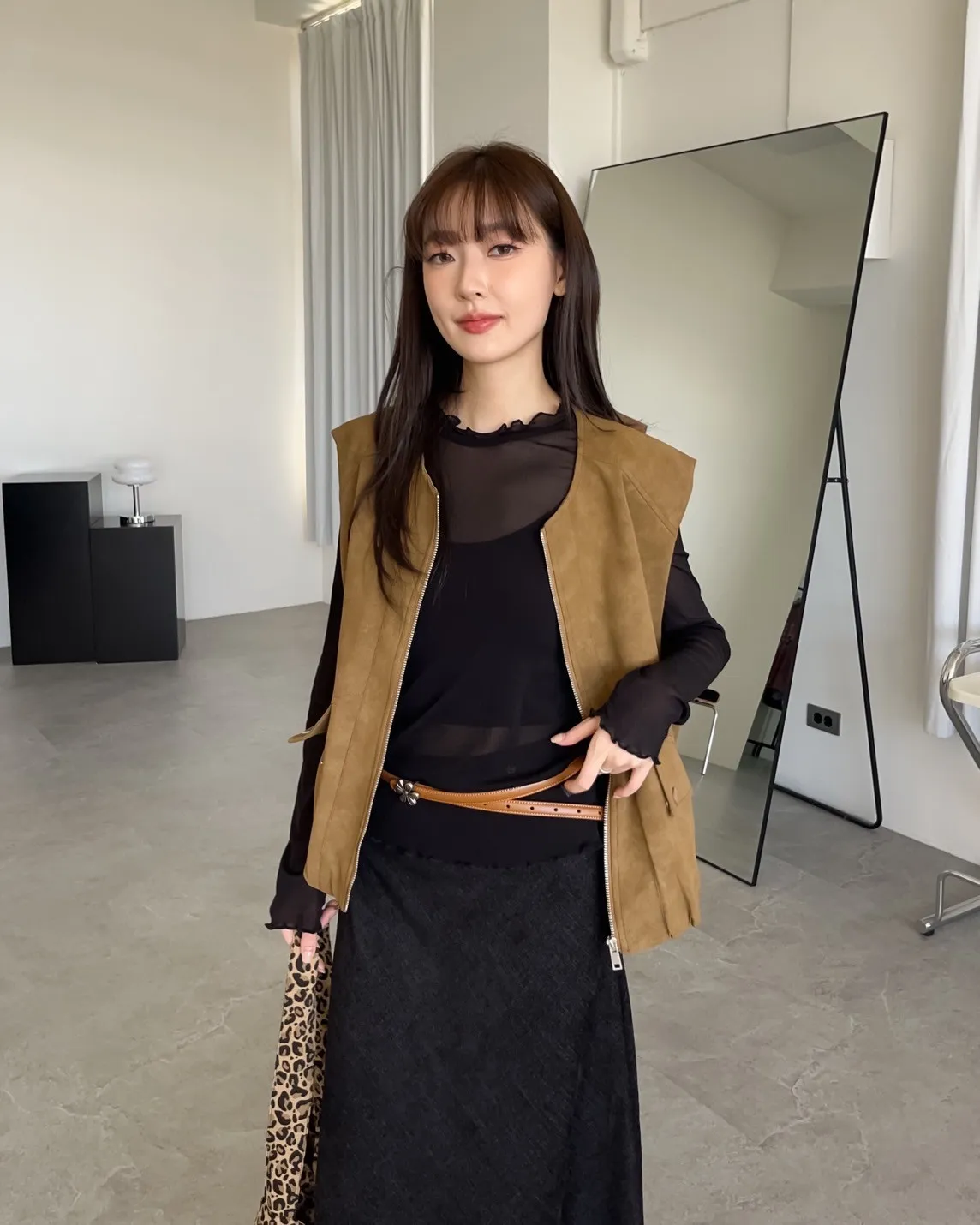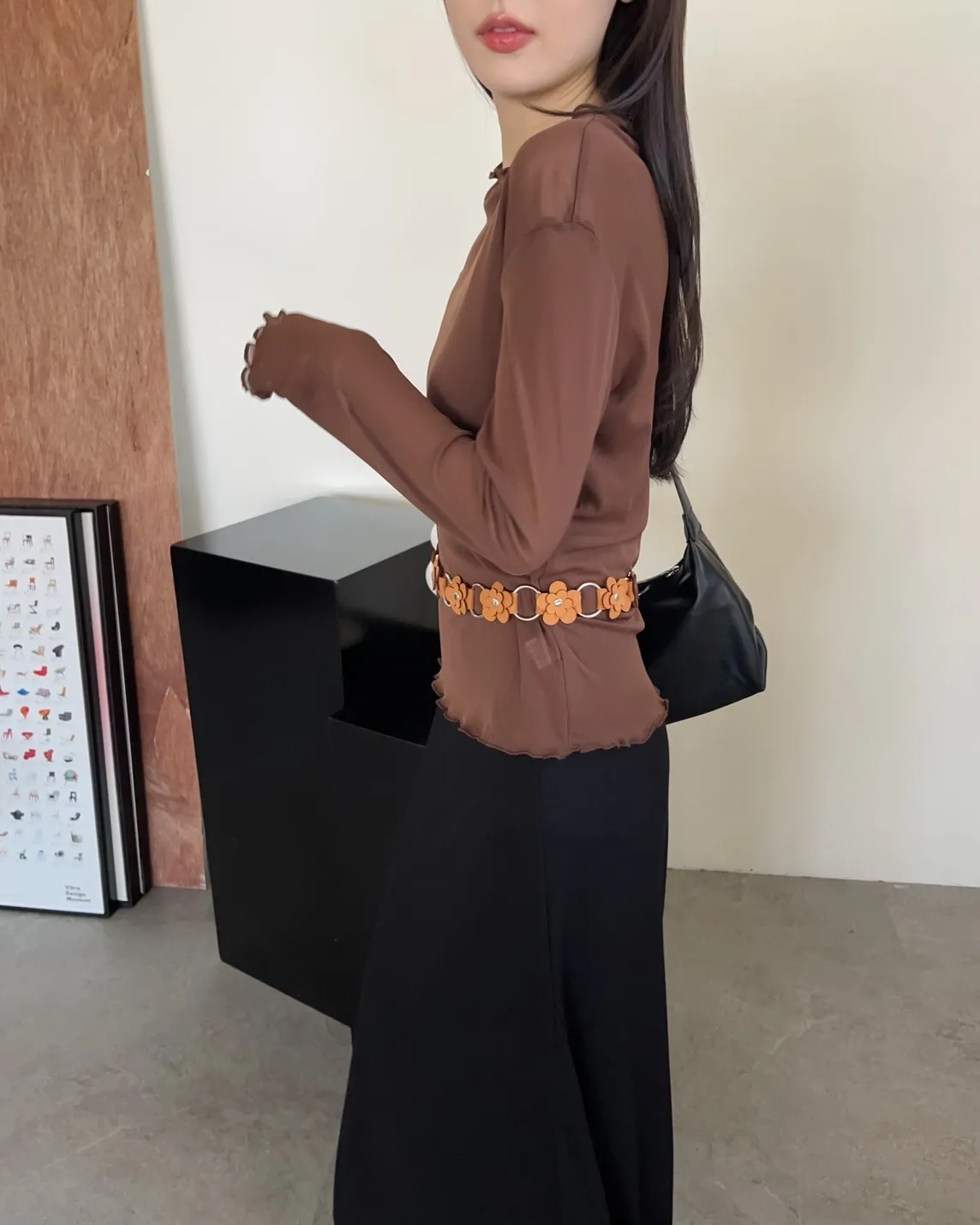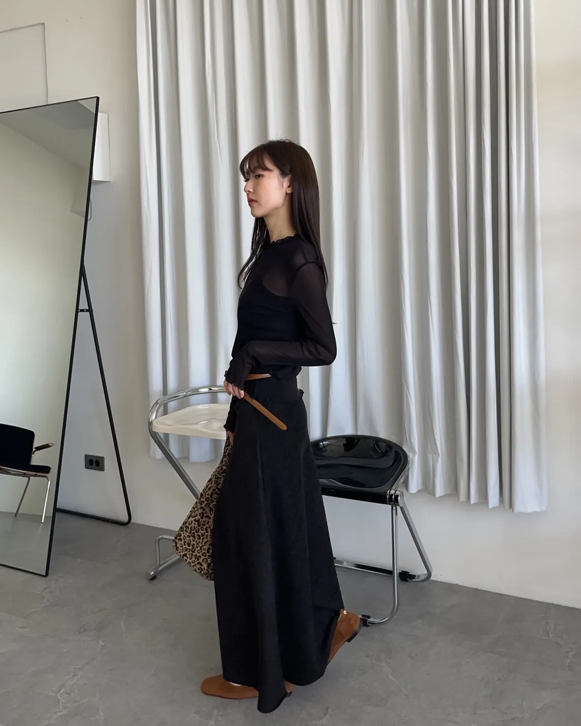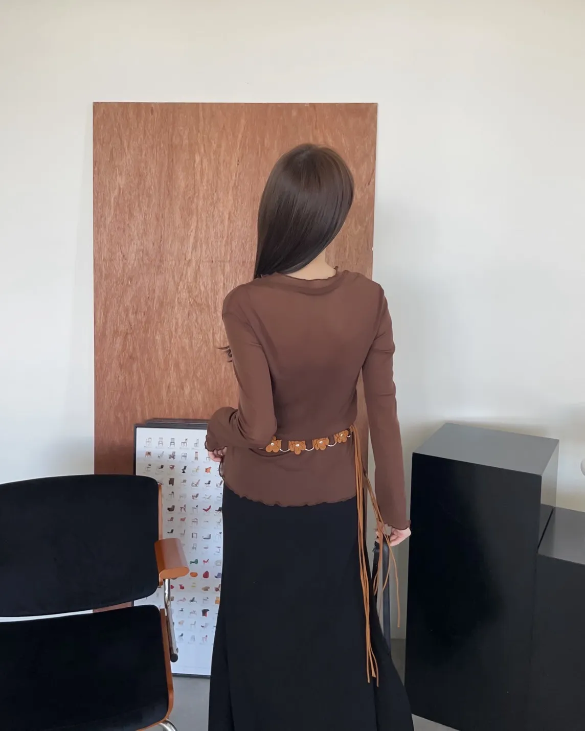 U0070(七色)木耳邊透膚上衣(白/米/咖啡/藍綠/淺灰/深灰/黑)