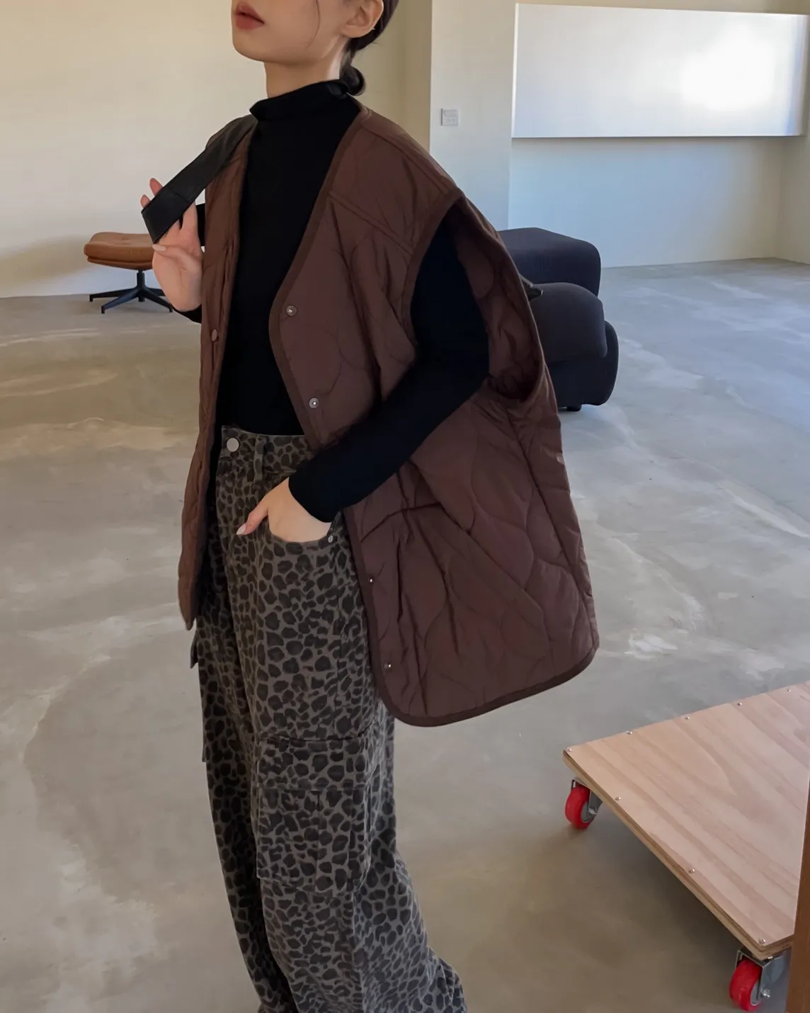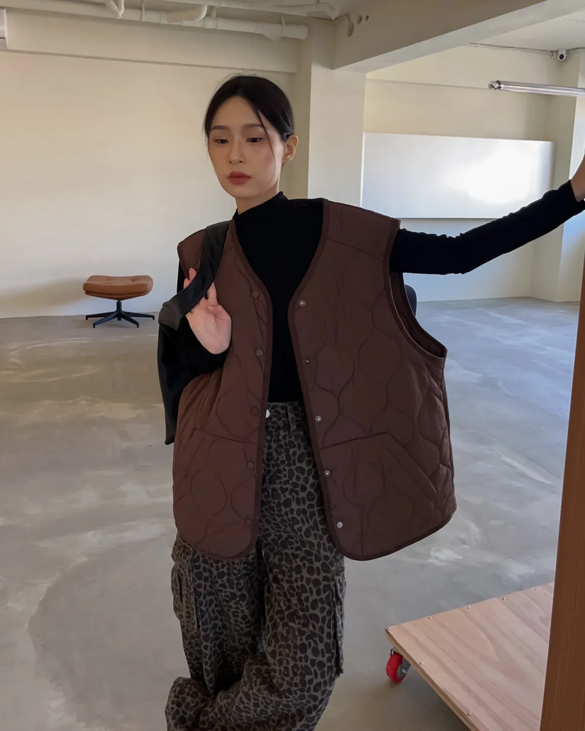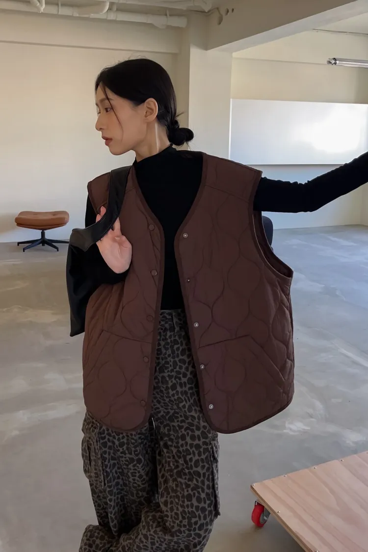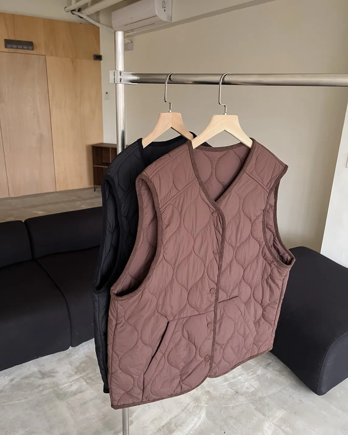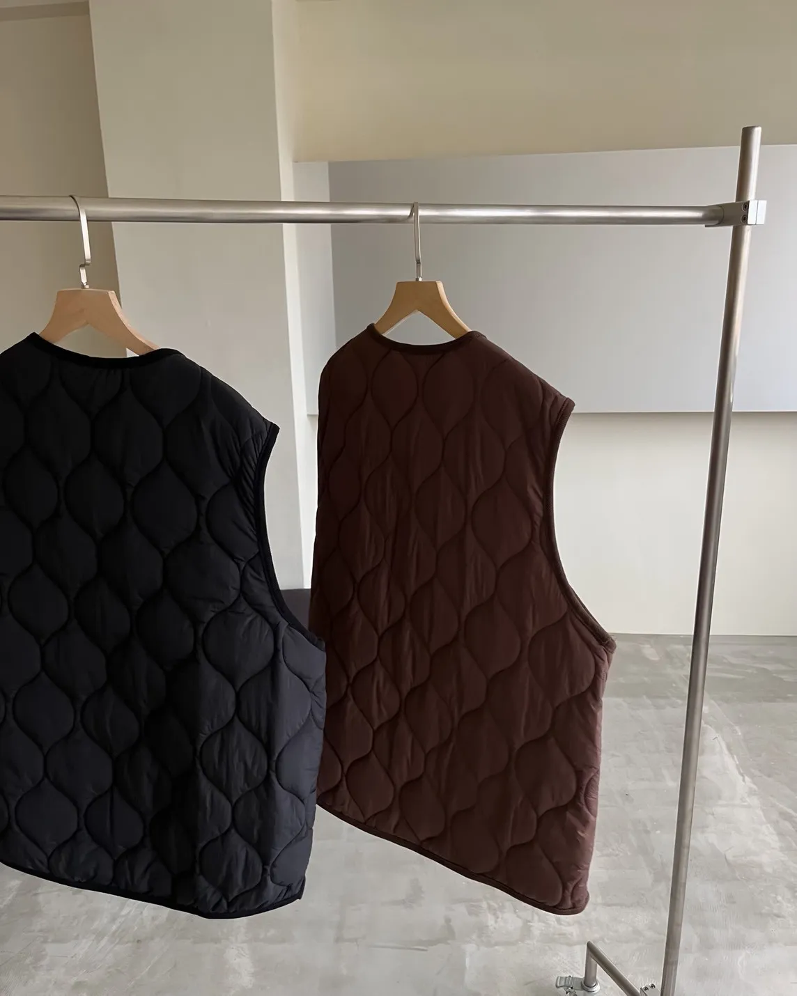 W0033日系の葫蘆紋鋪棉背心(咖啡/黑)