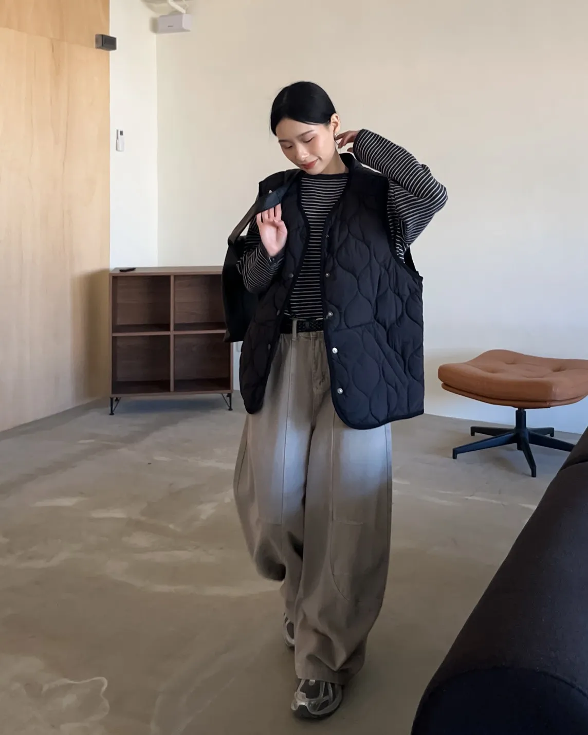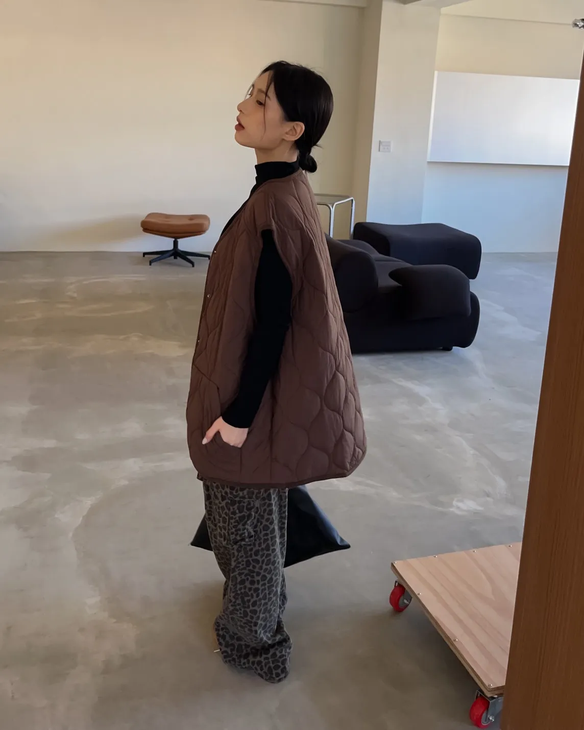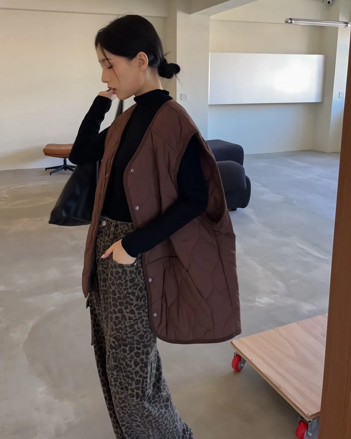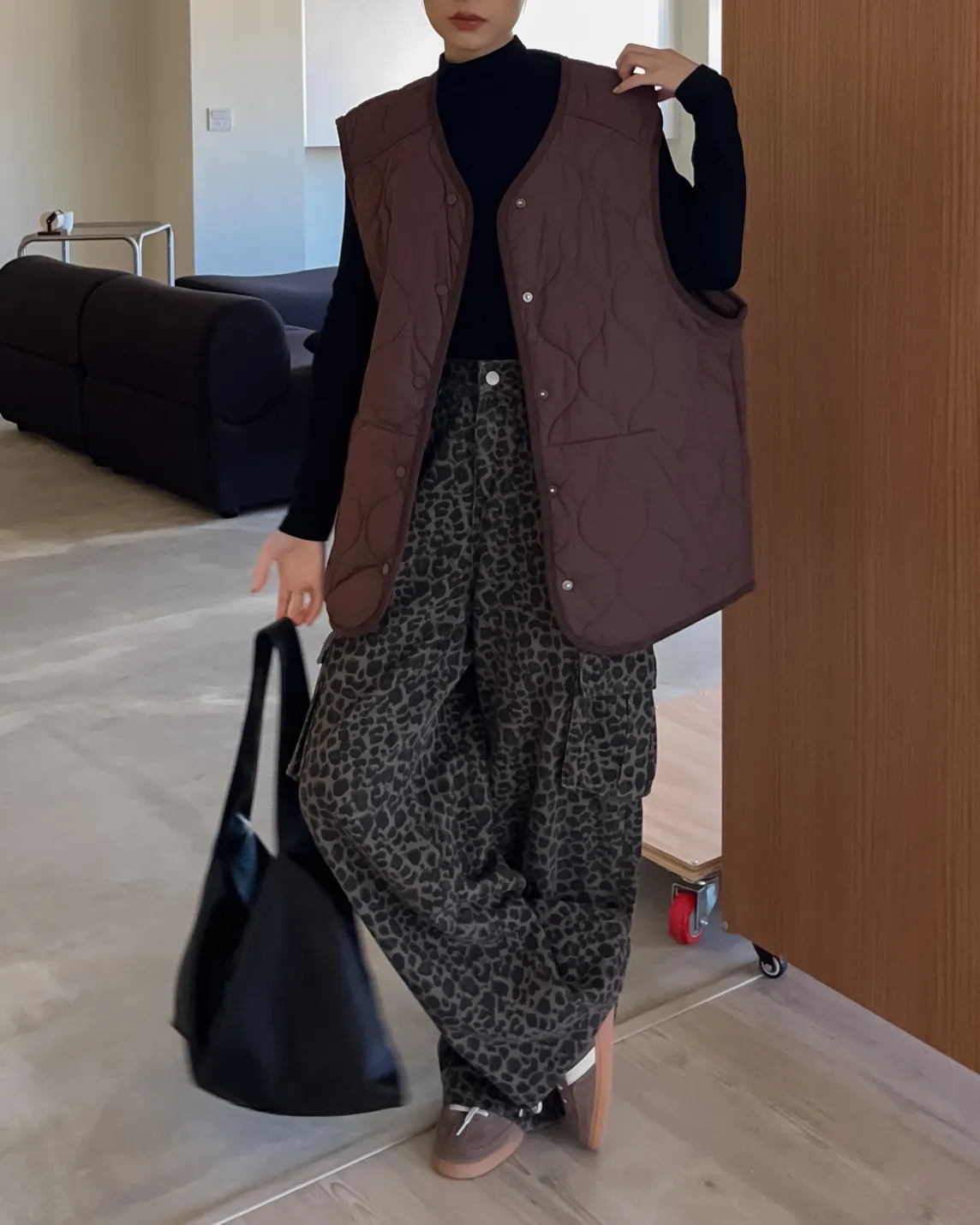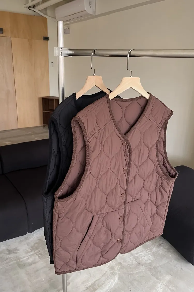 W0033日系の葫蘆紋鋪棉背心(咖啡/黑)