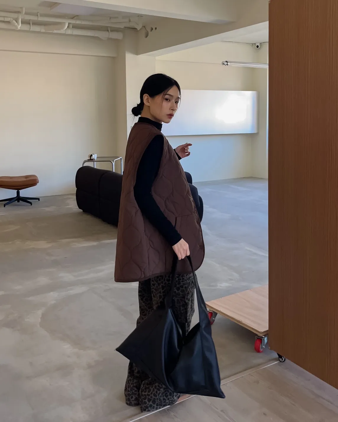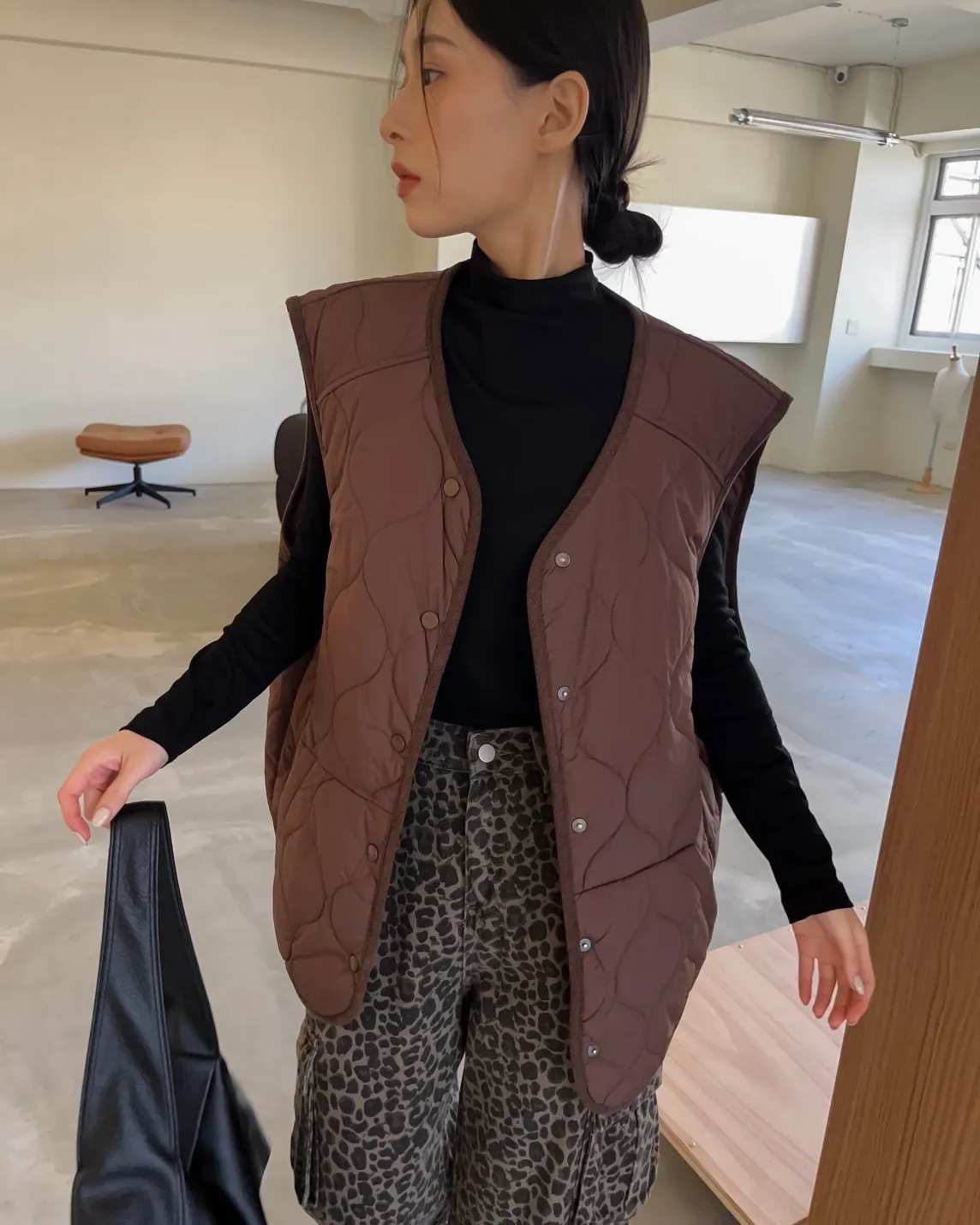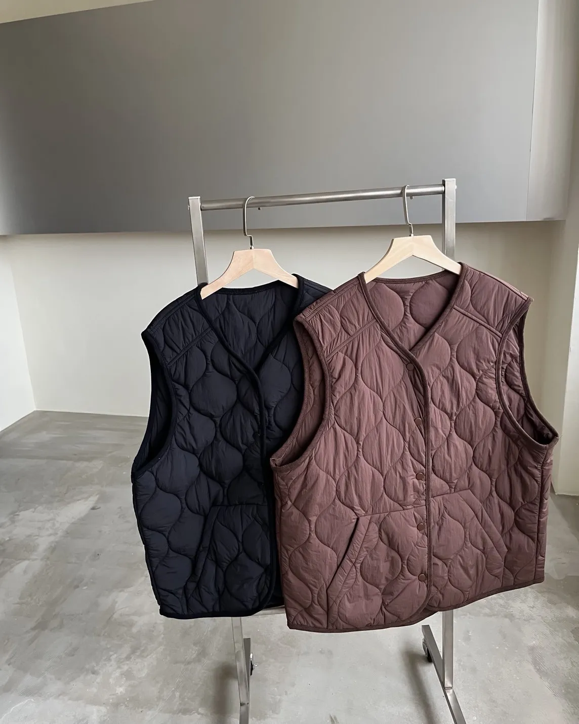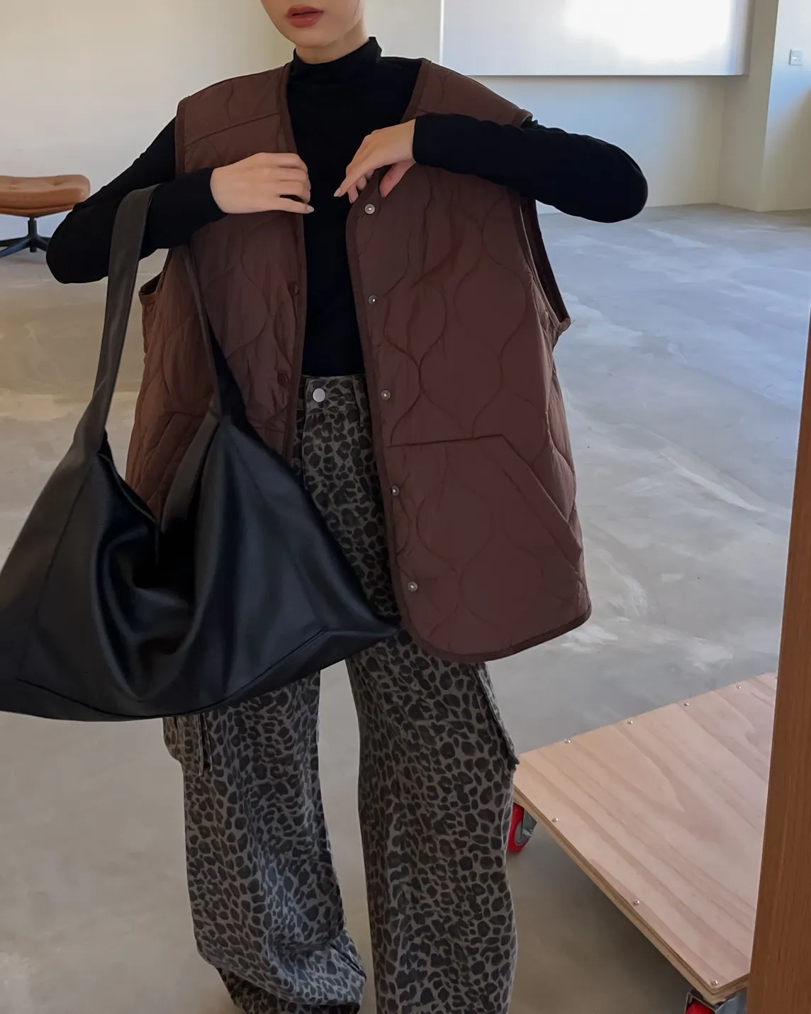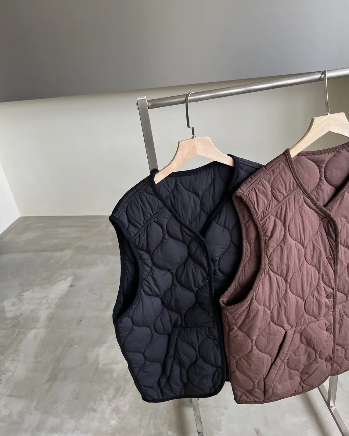 W0033日系の葫蘆紋鋪棉背心(咖啡/黑)
