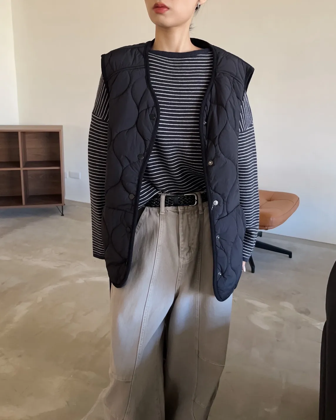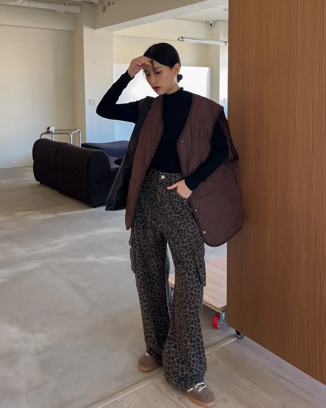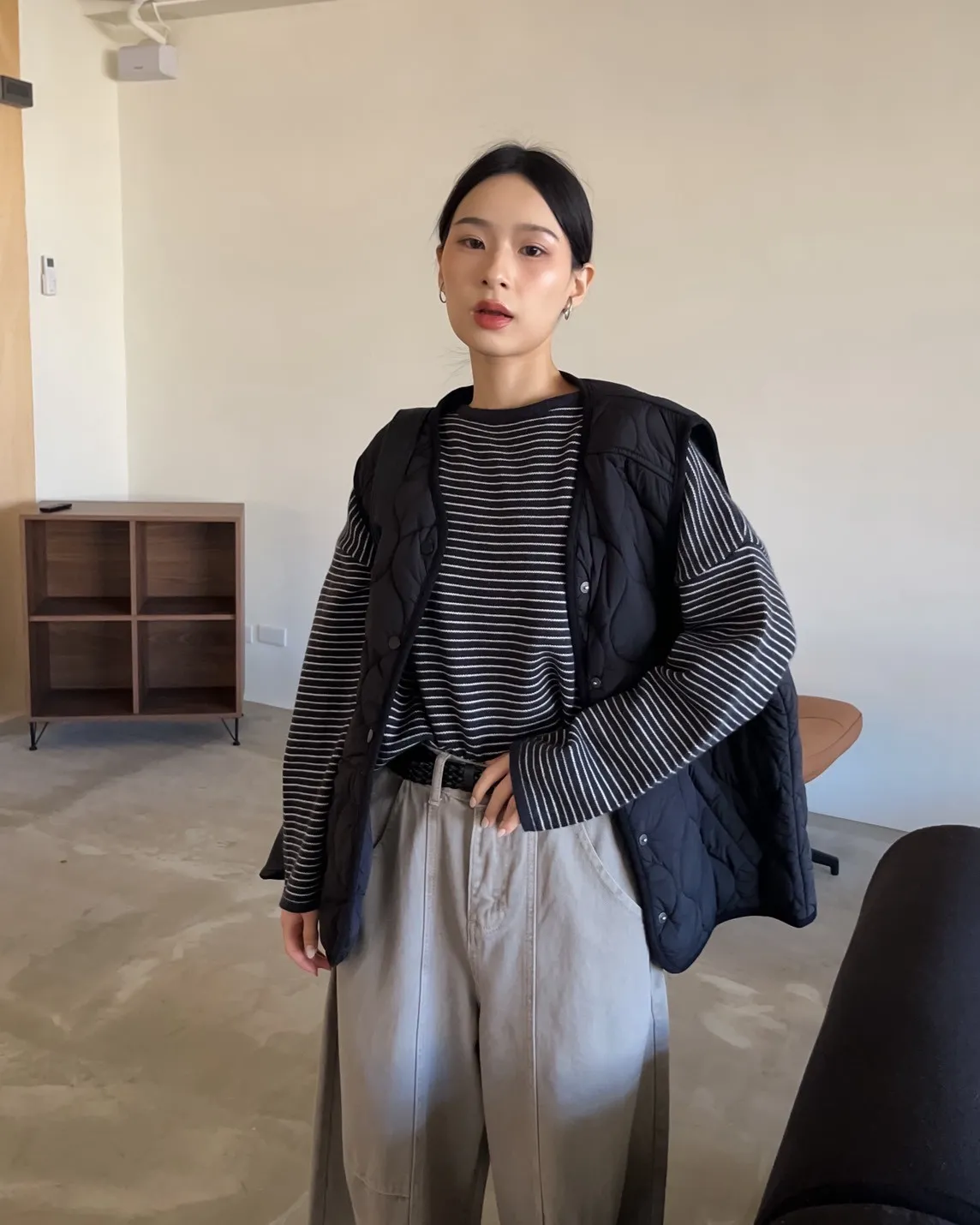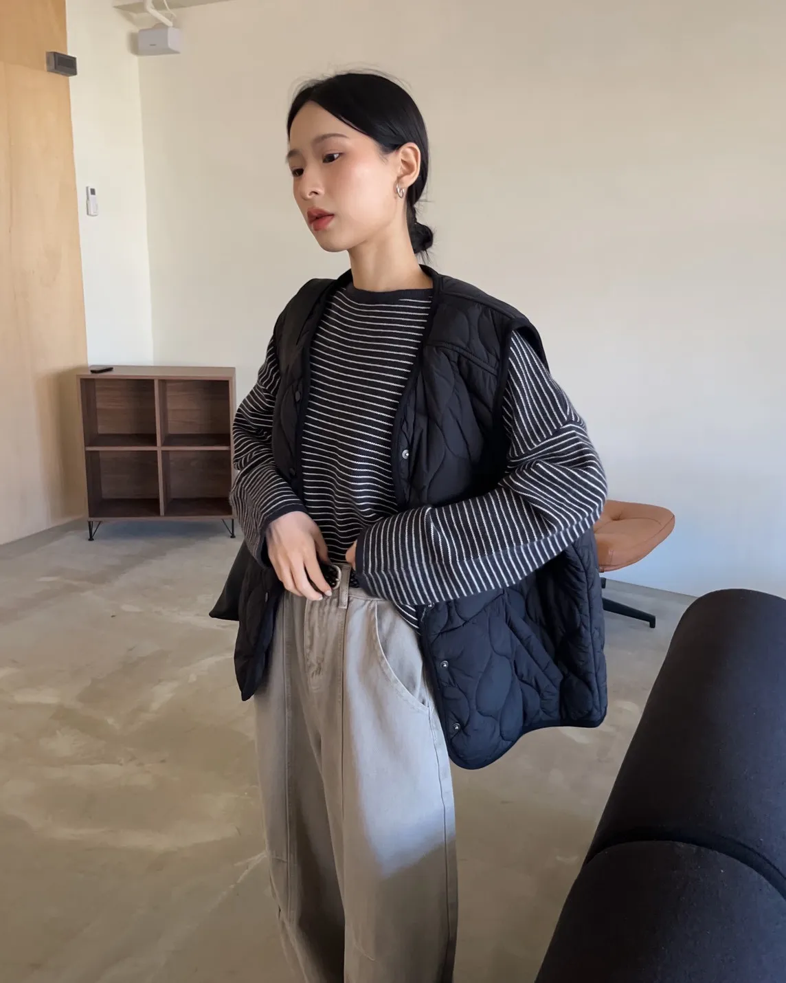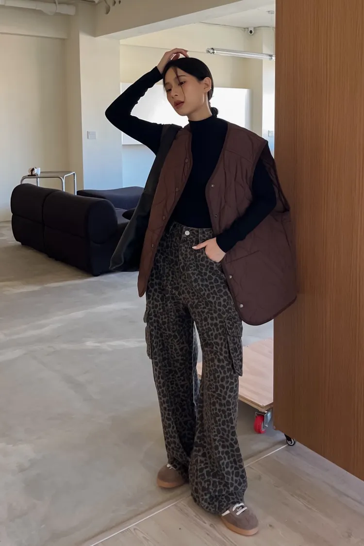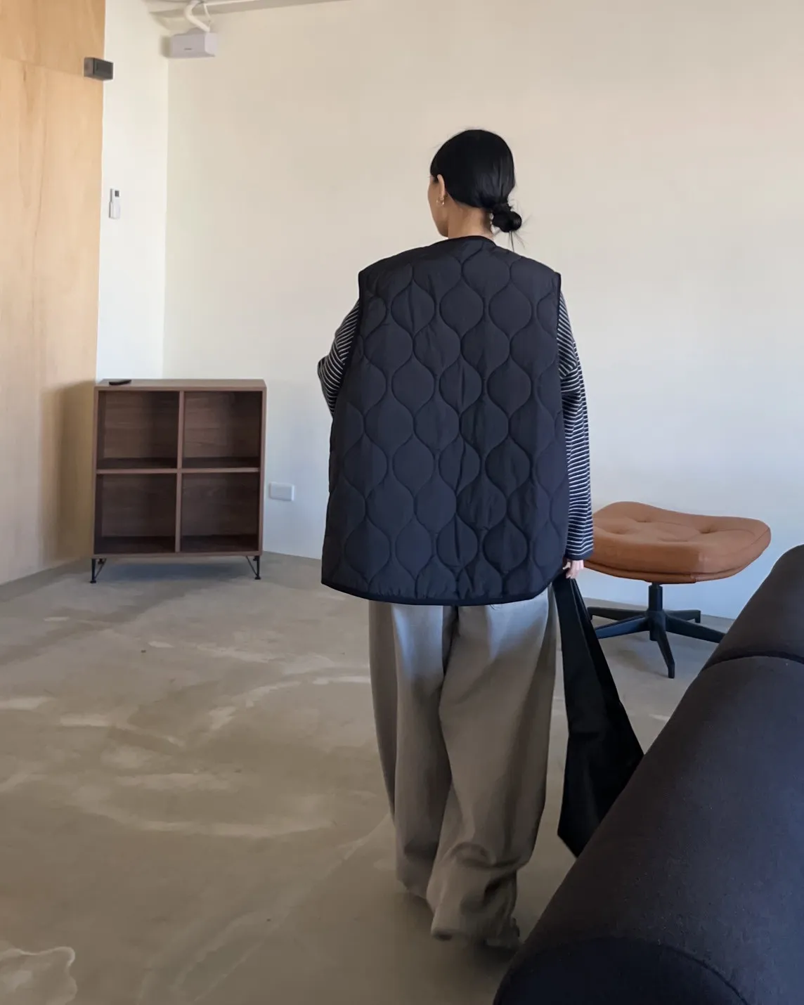 W0033日系の葫蘆紋鋪棉背心(咖啡/黑)