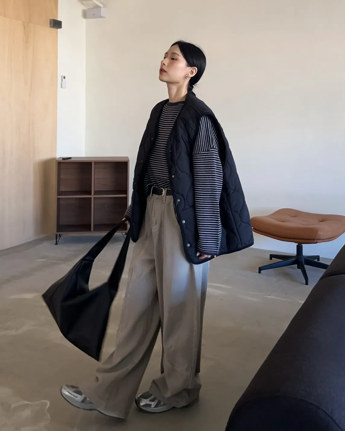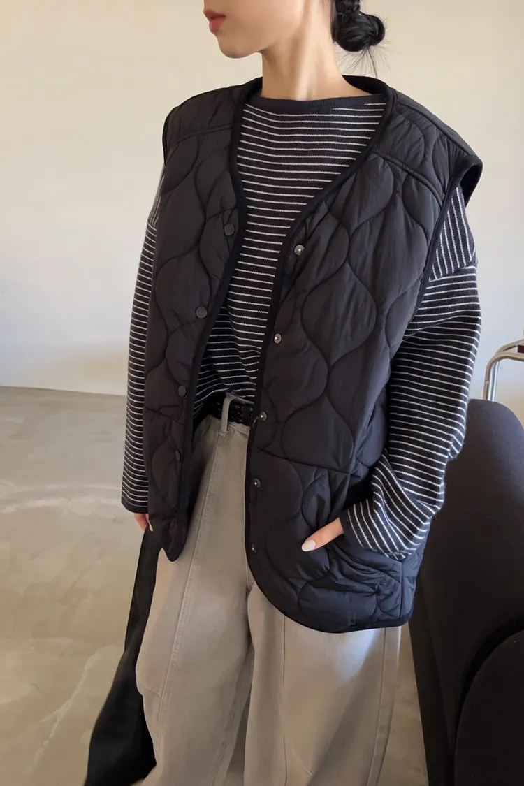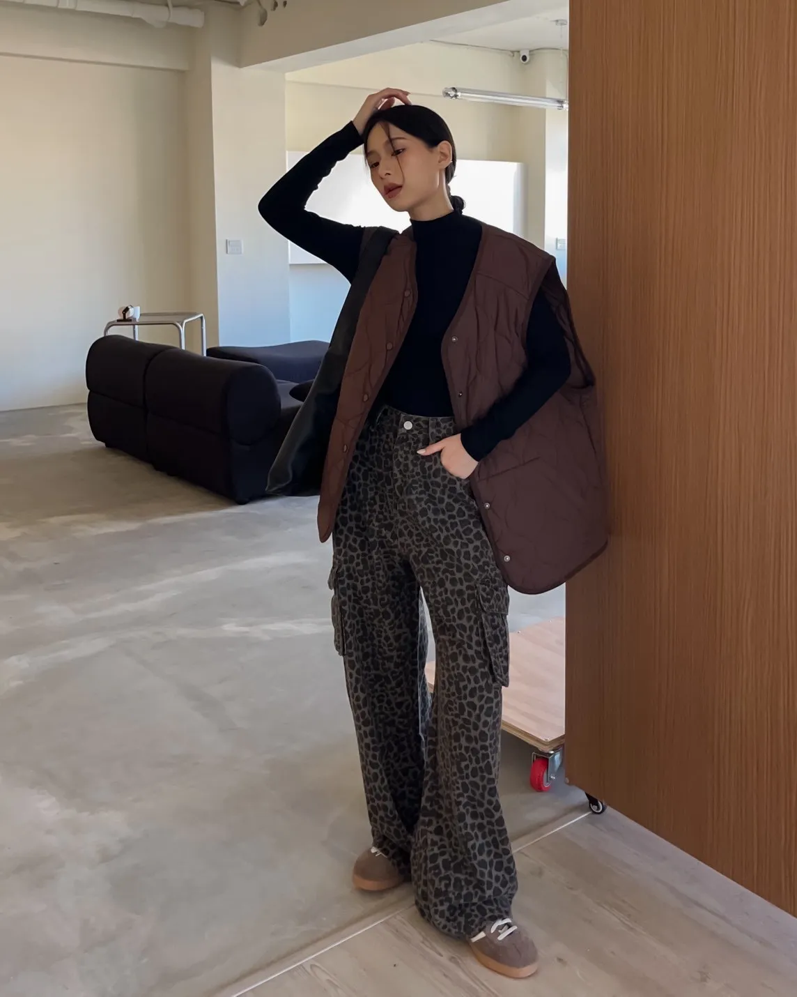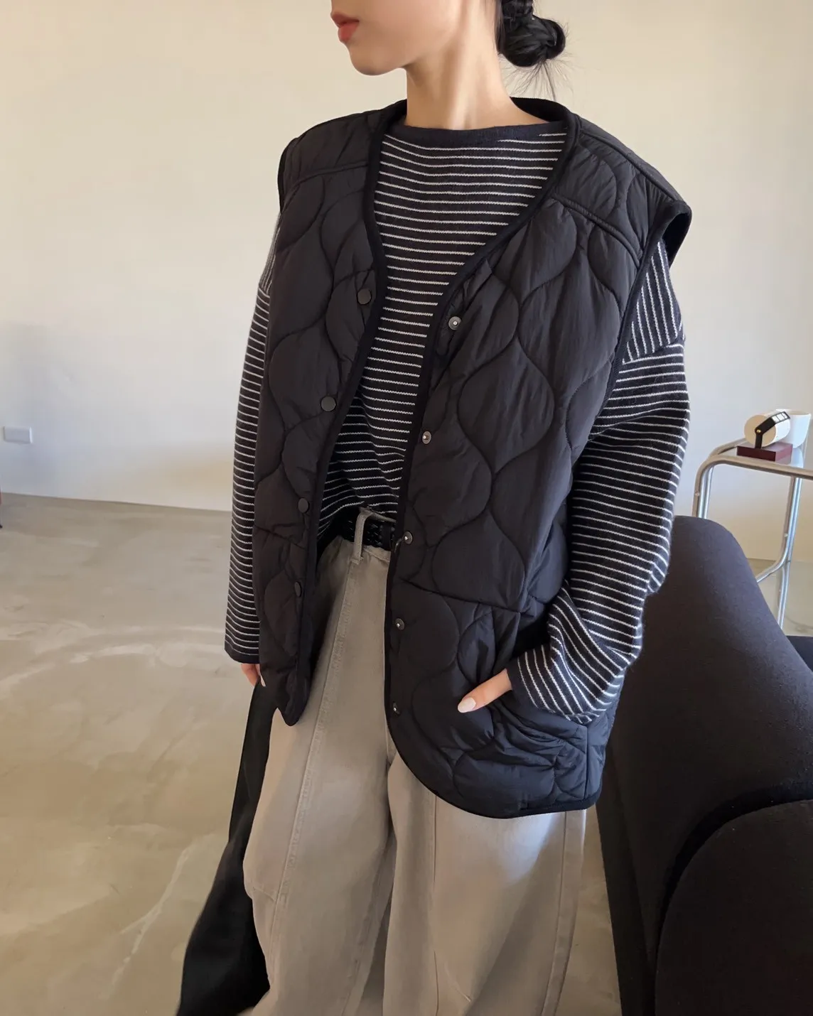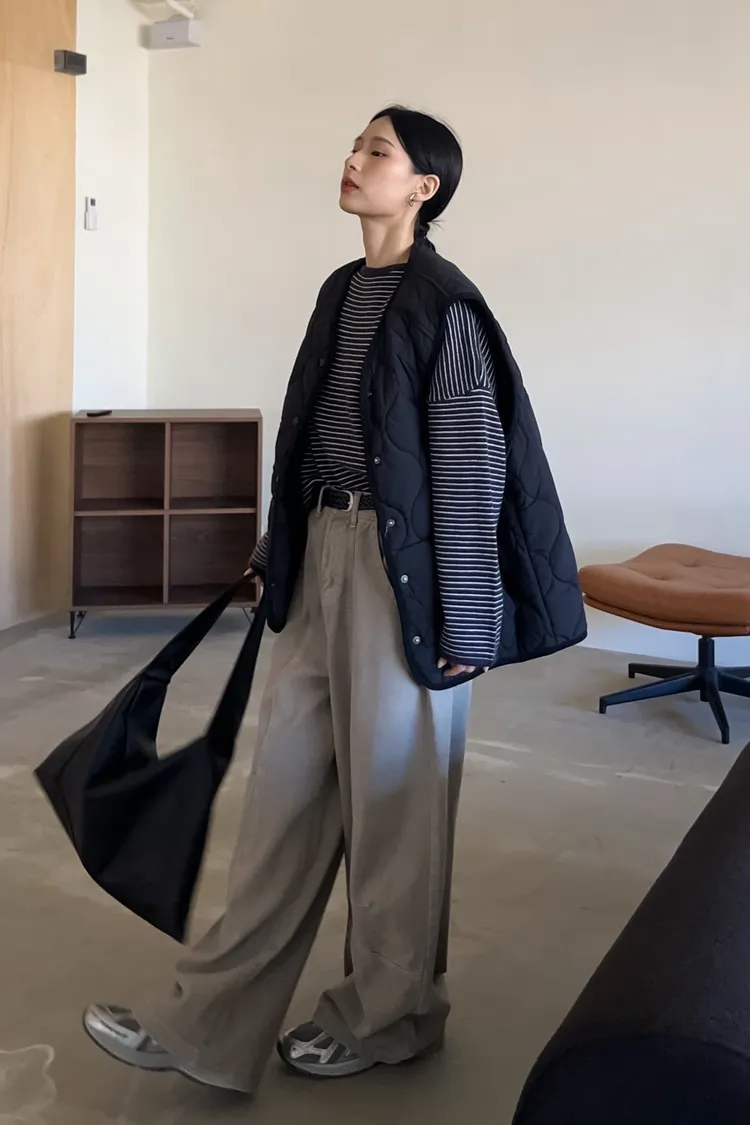 W0033日系の葫蘆紋鋪棉背心(咖啡/黑)