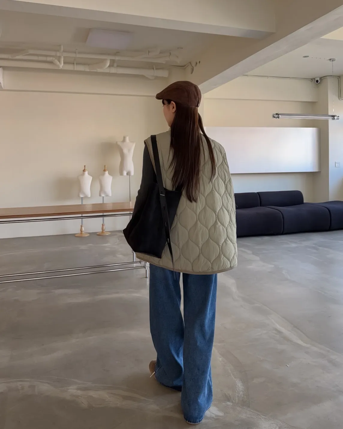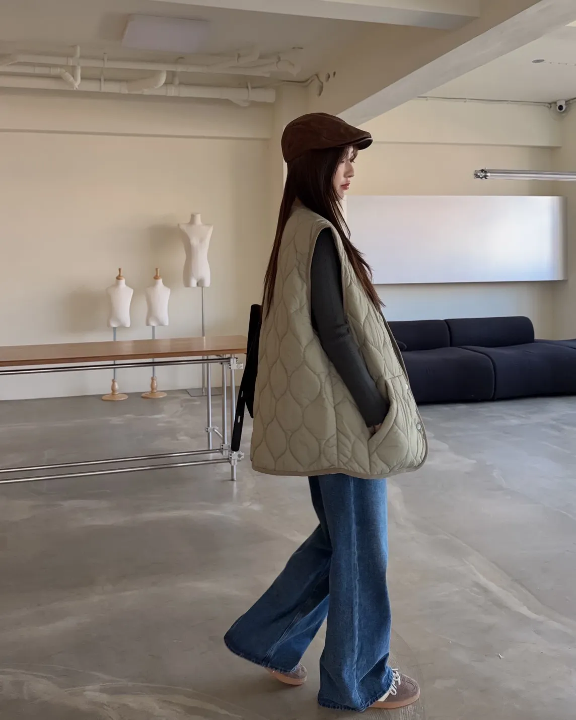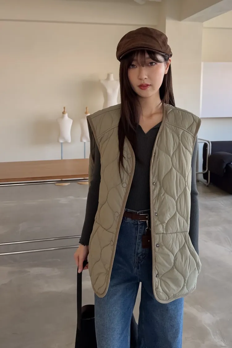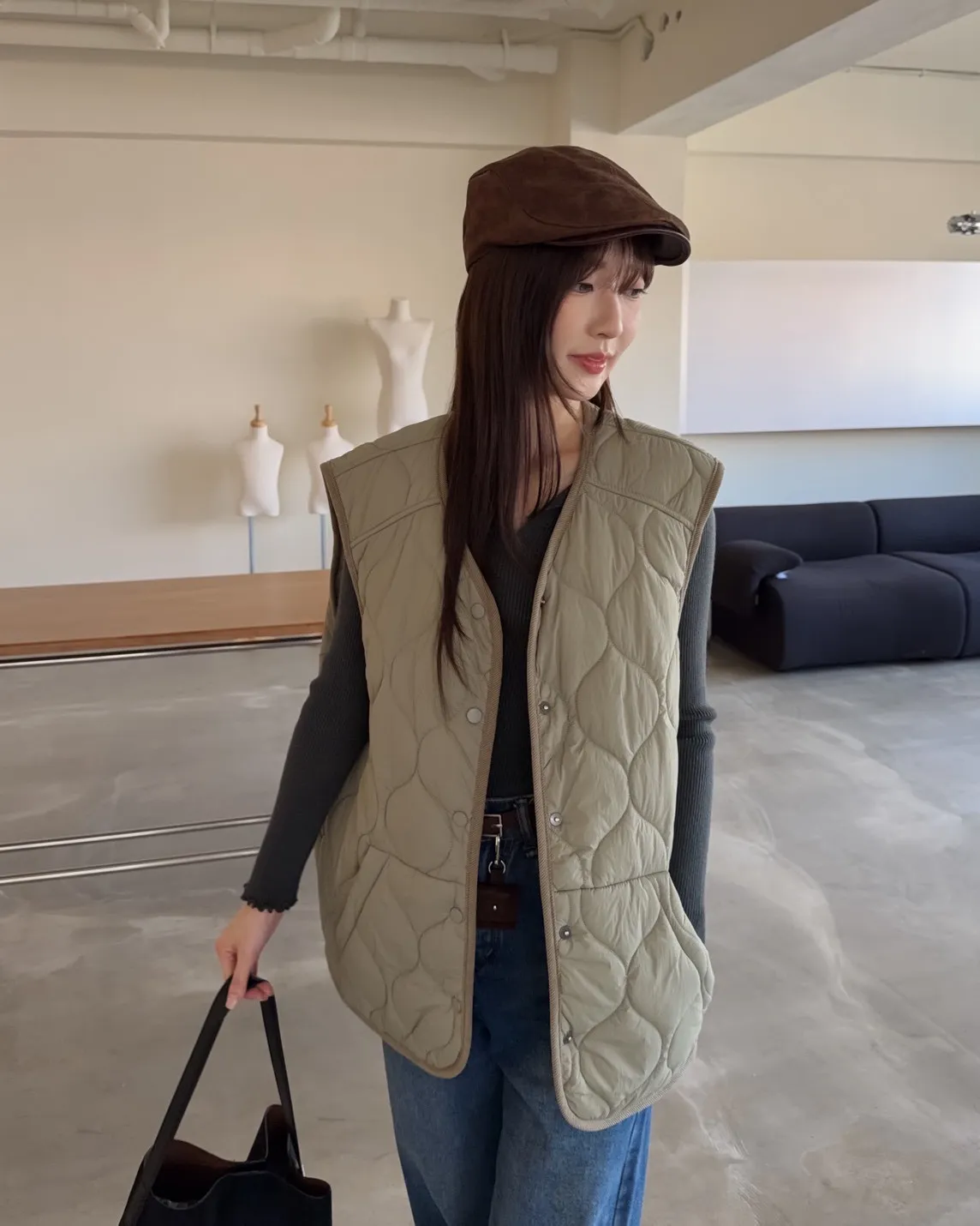 W0033日系の葫蘆紋鋪棉背心(咖啡/黑/綠)