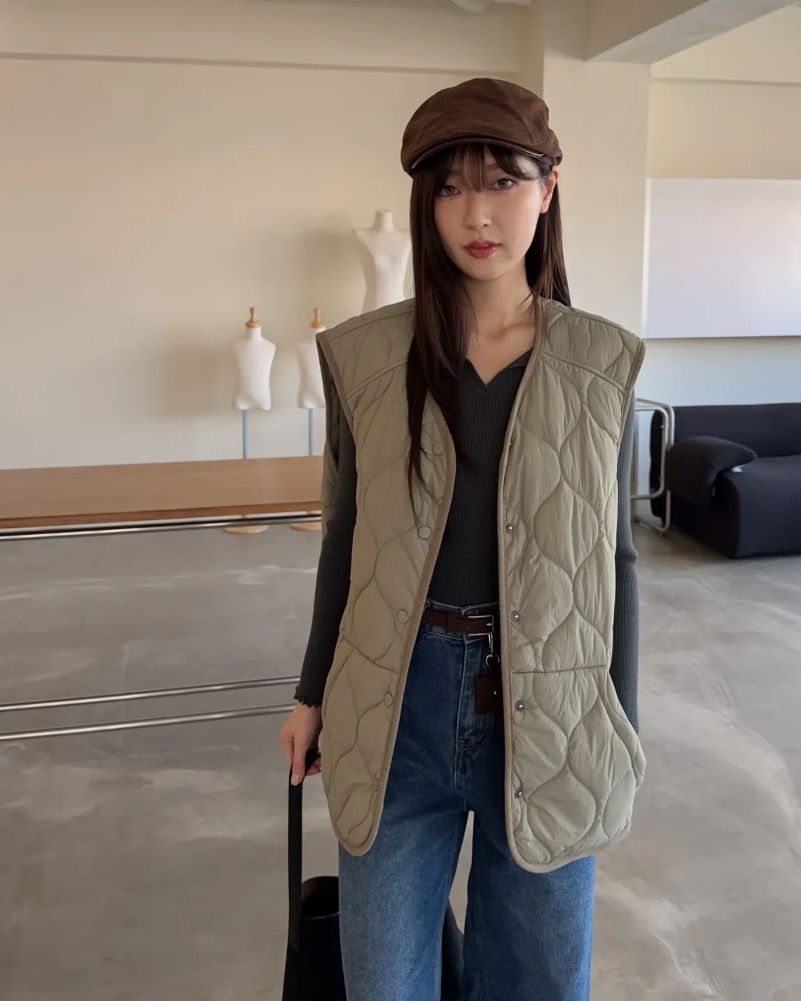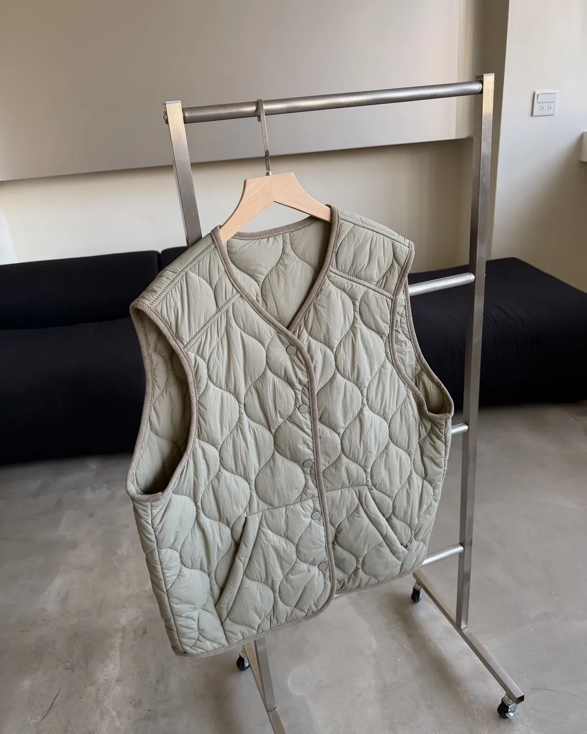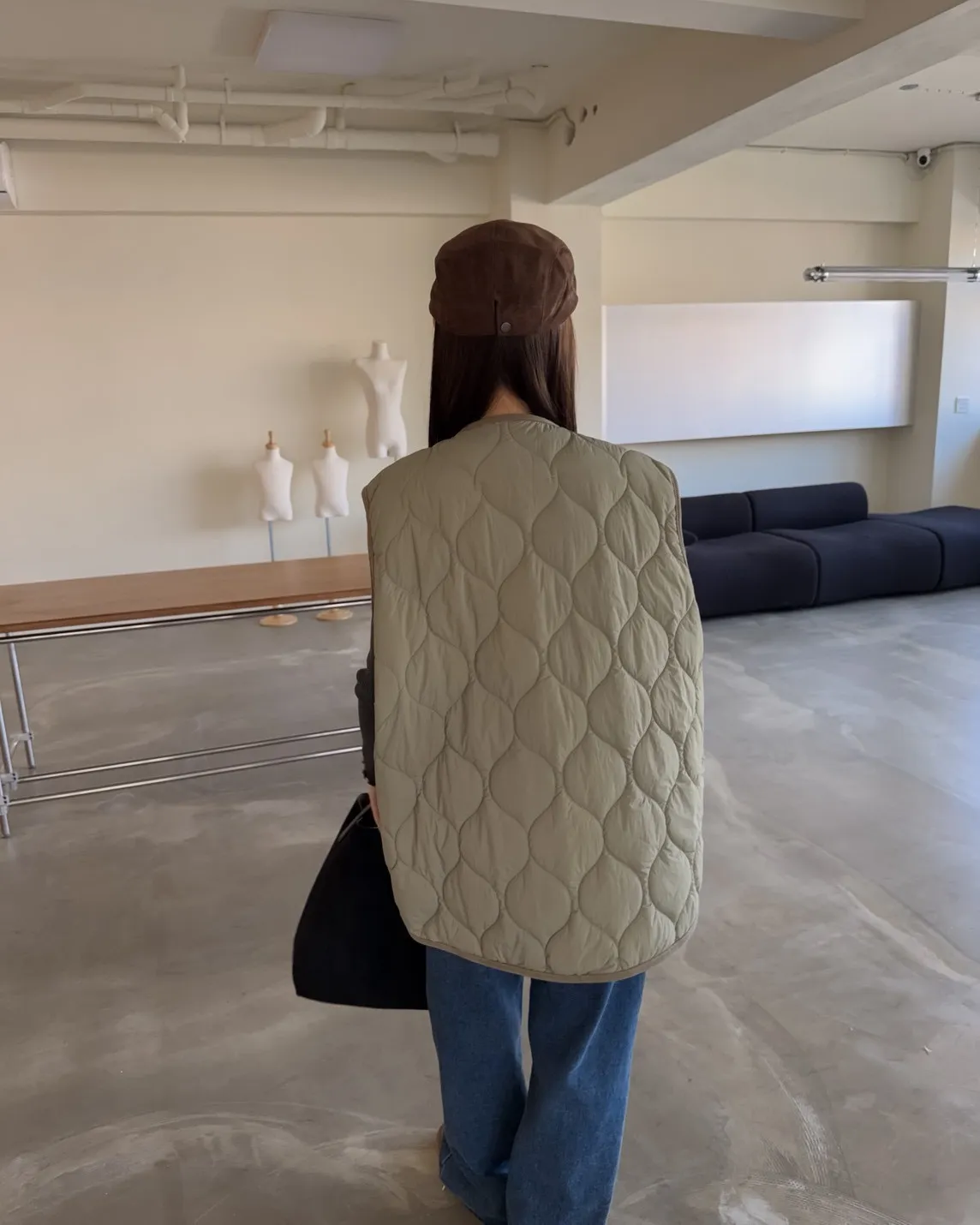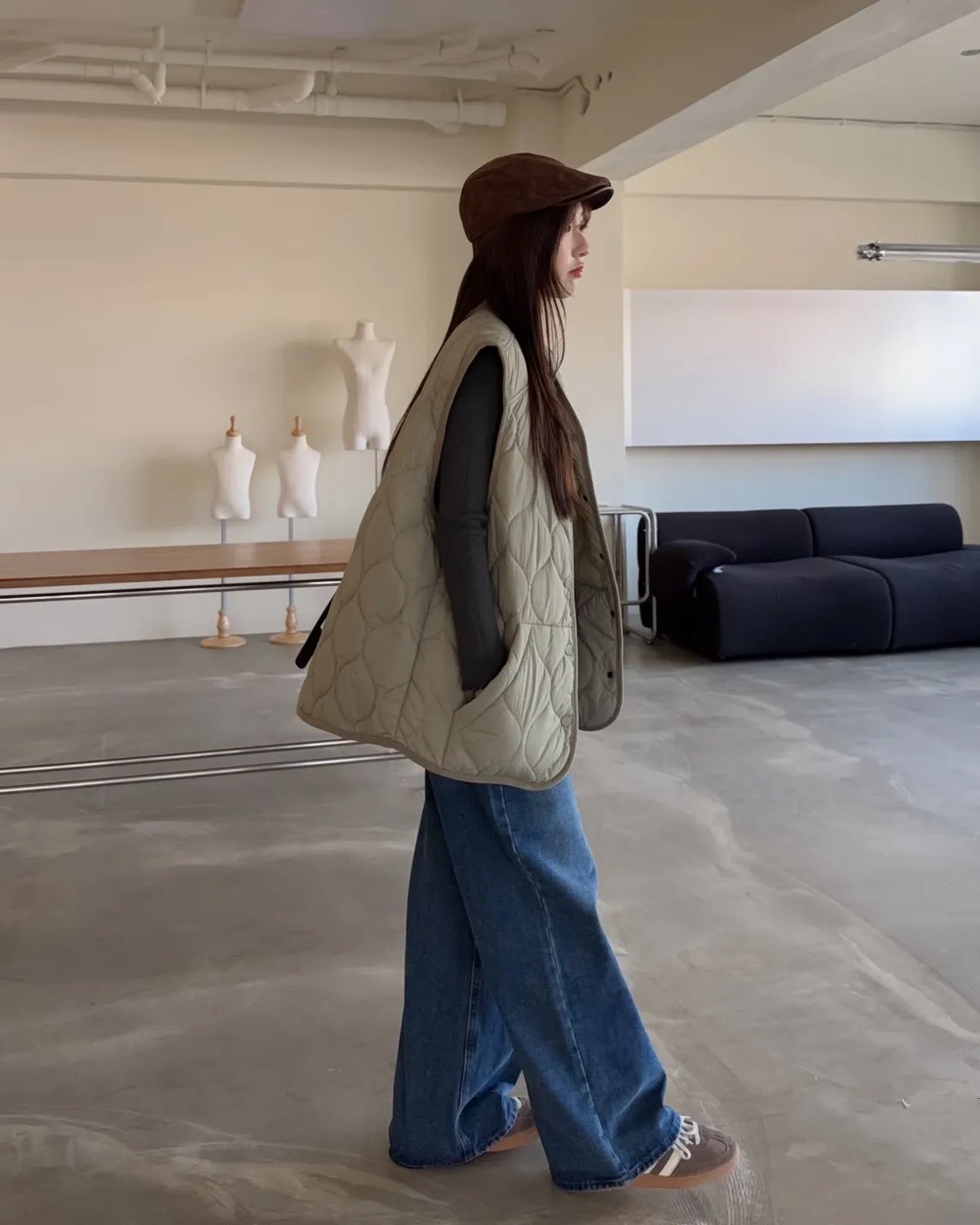 W0033日系の葫蘆紋鋪棉背心(咖啡/黑/綠)